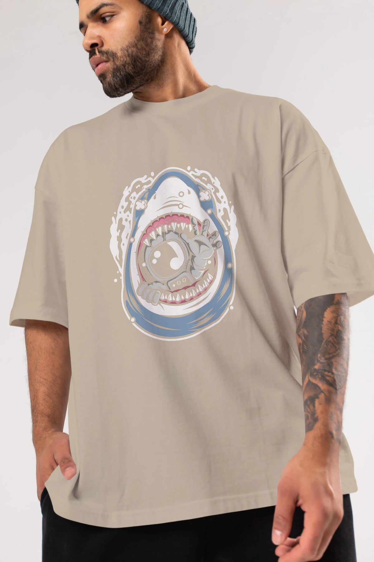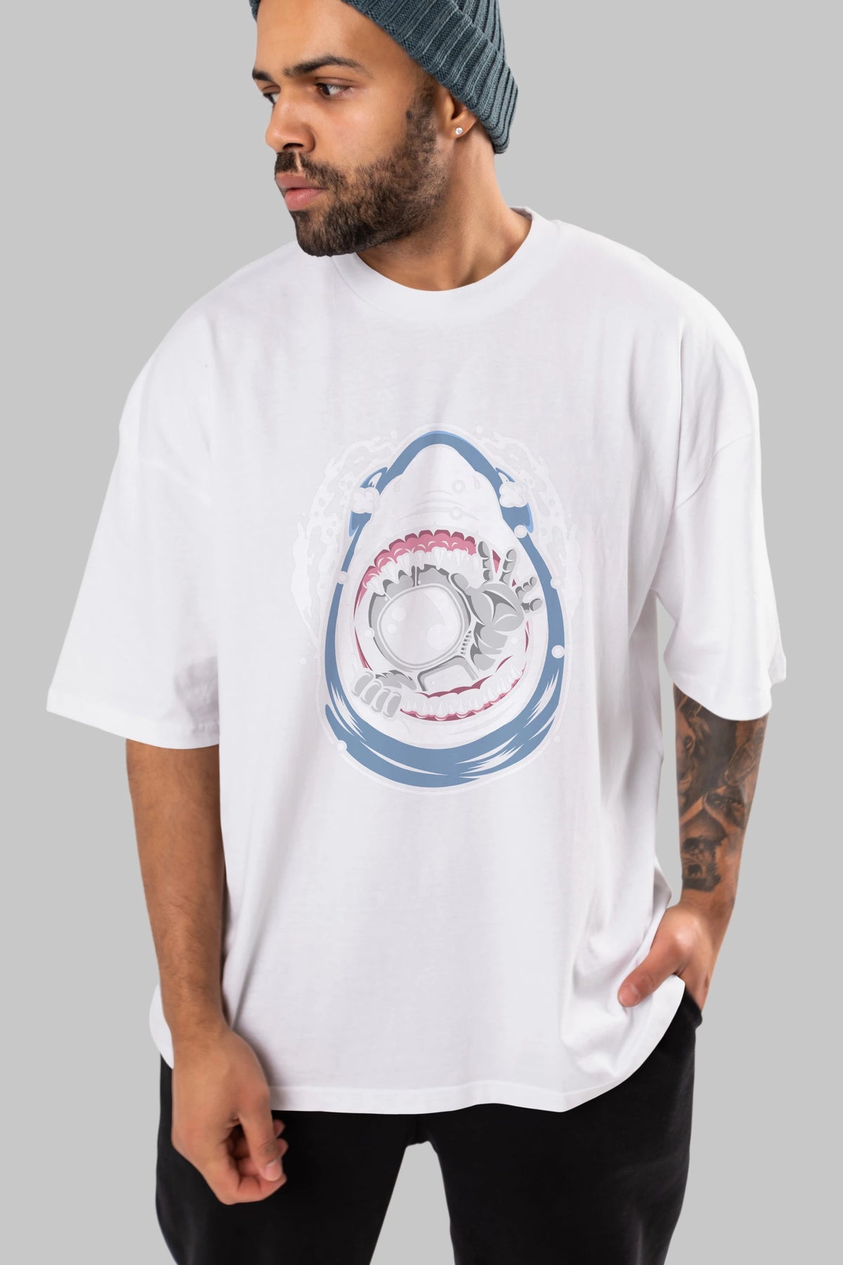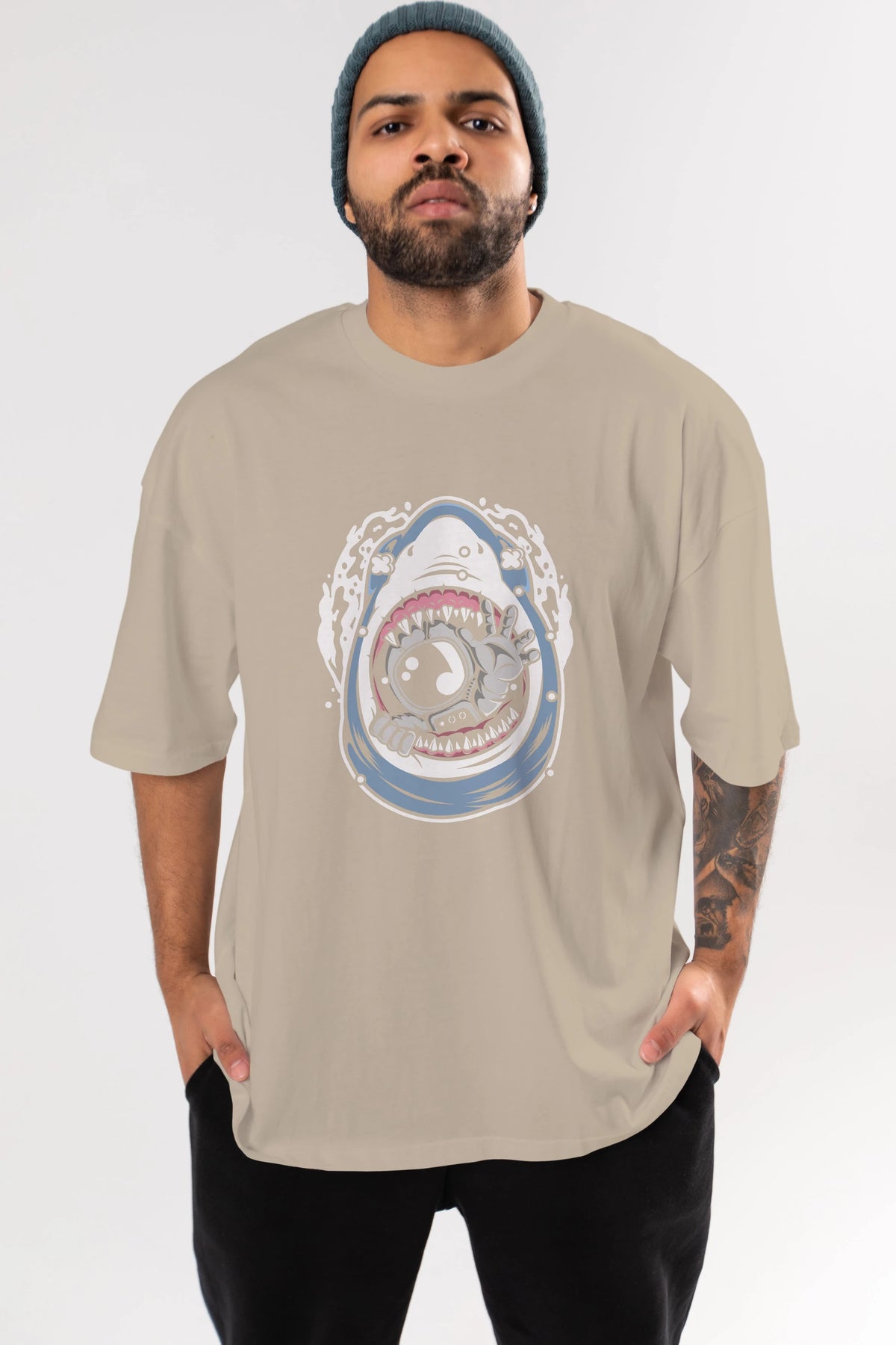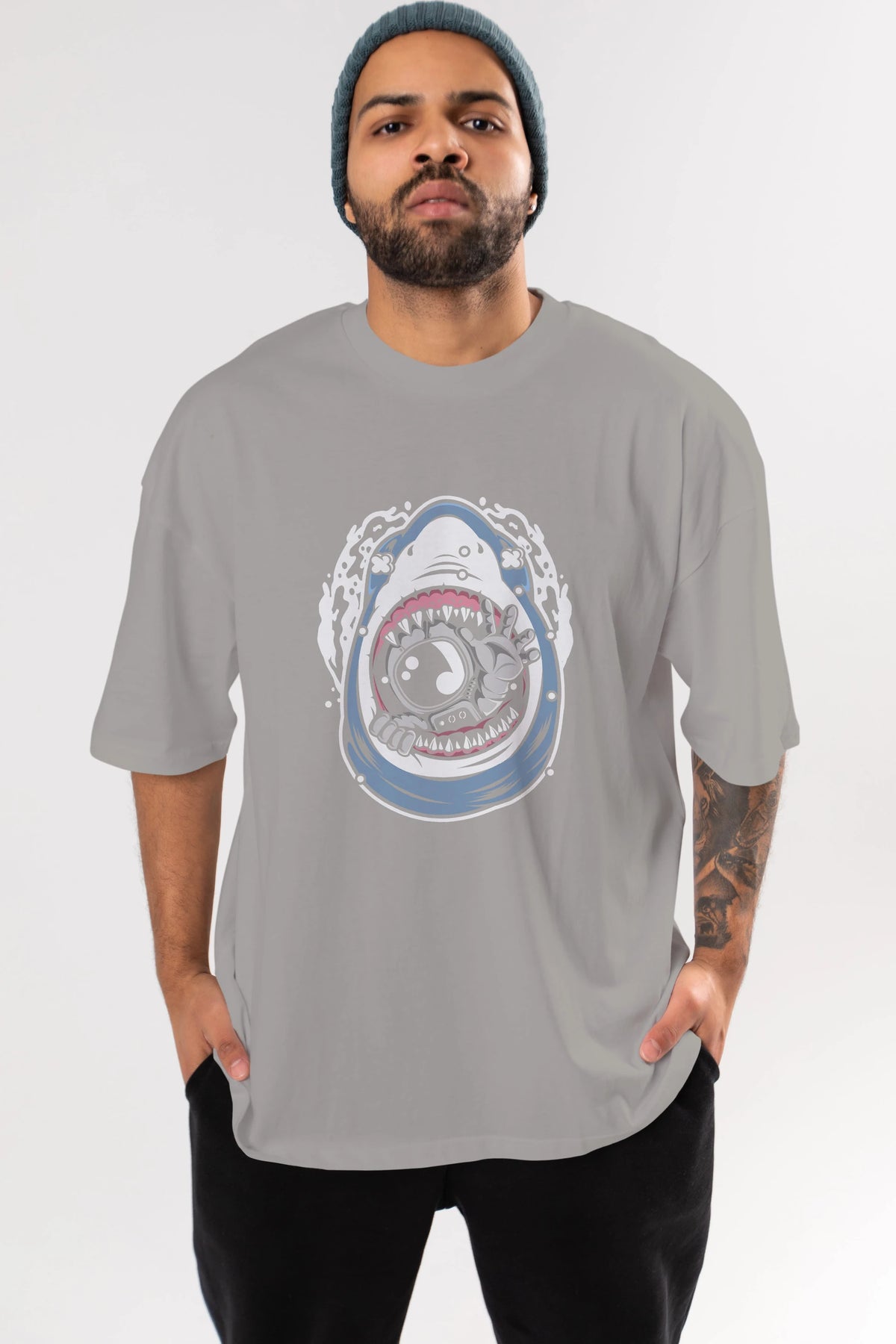 Astronaut Shark Ön Baskılı Oversize t-shirt Erkek Kadın Unisex