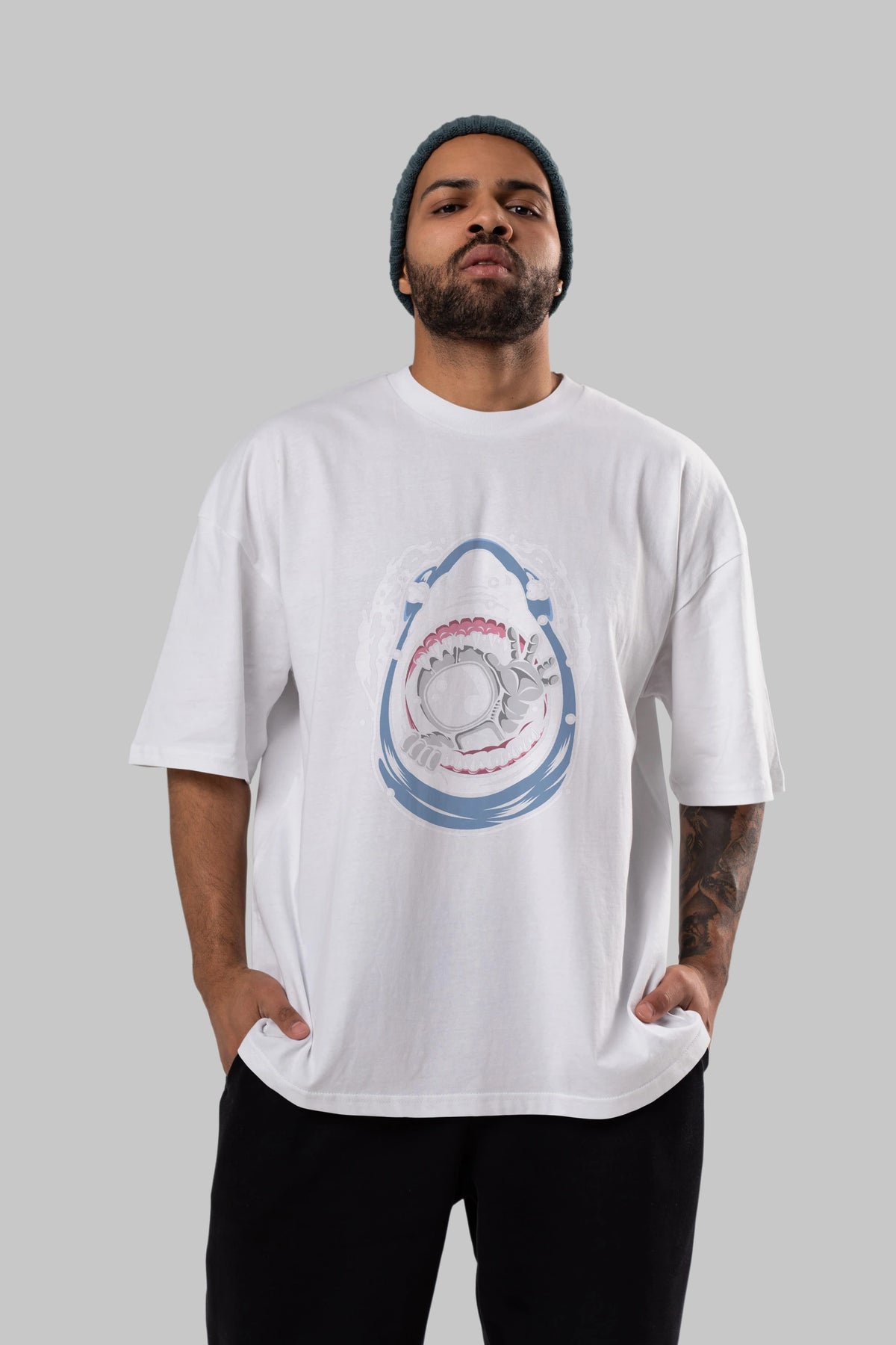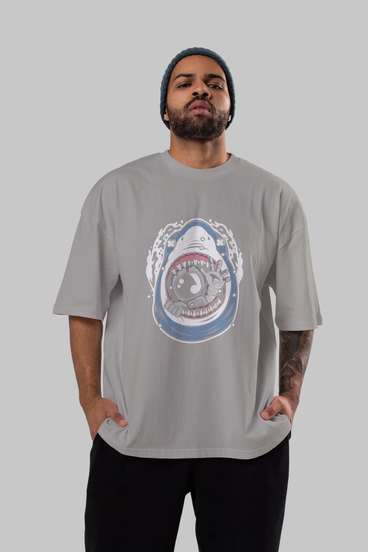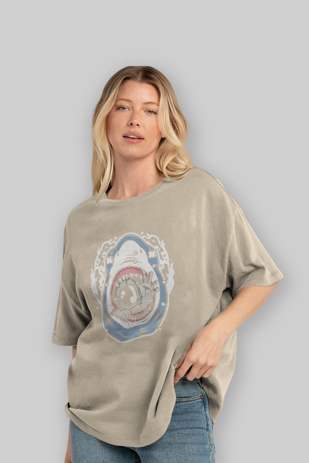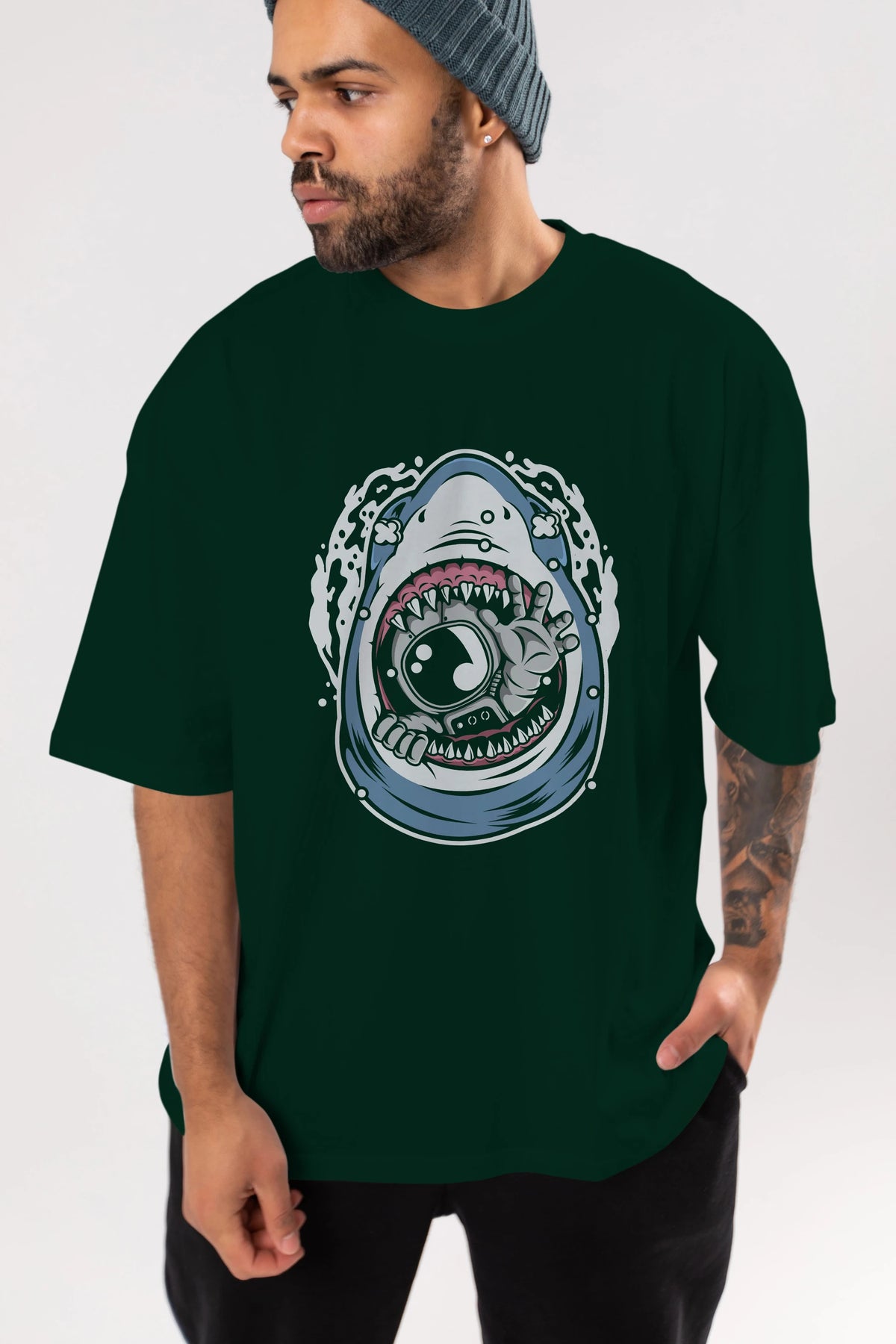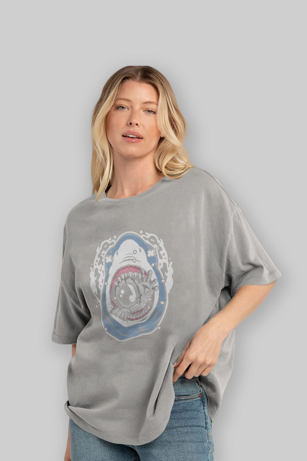 Astronaut Shark Ön Baskılı Oversize t-shirt Erkek Kadın Unisex