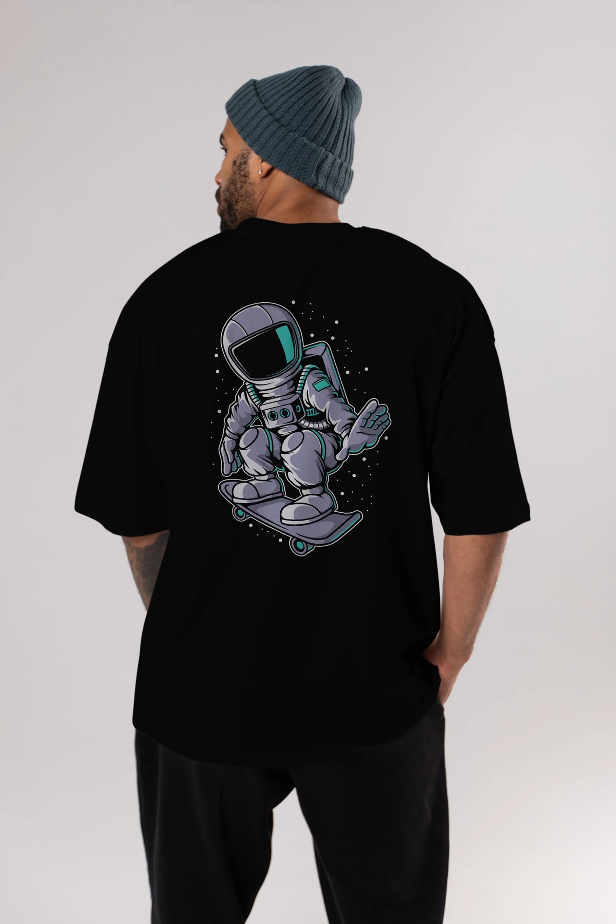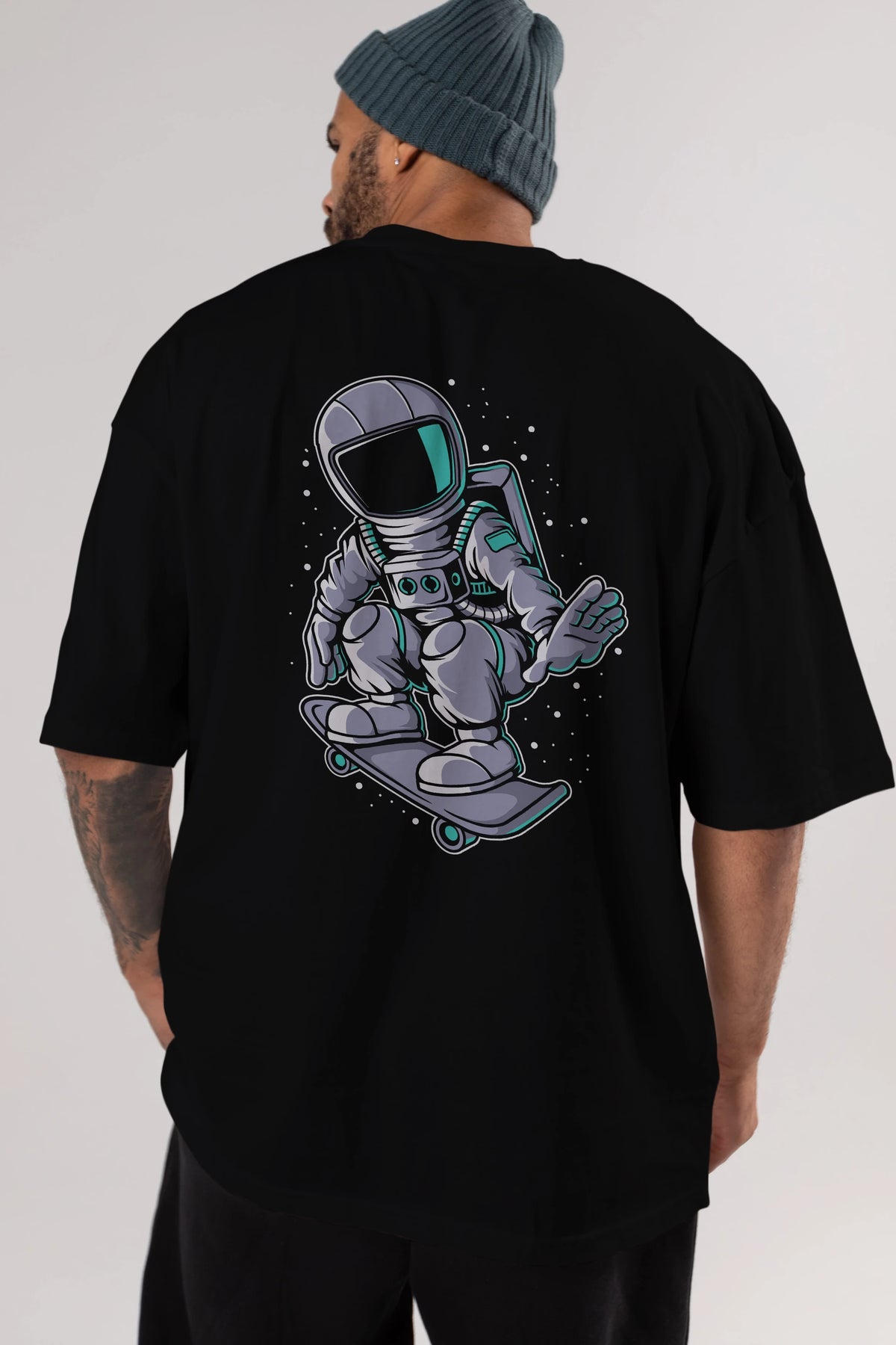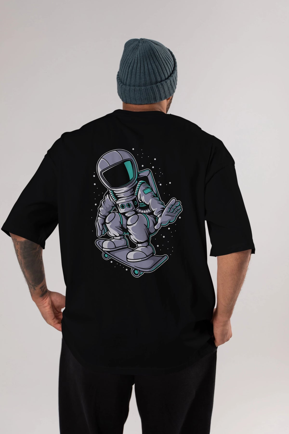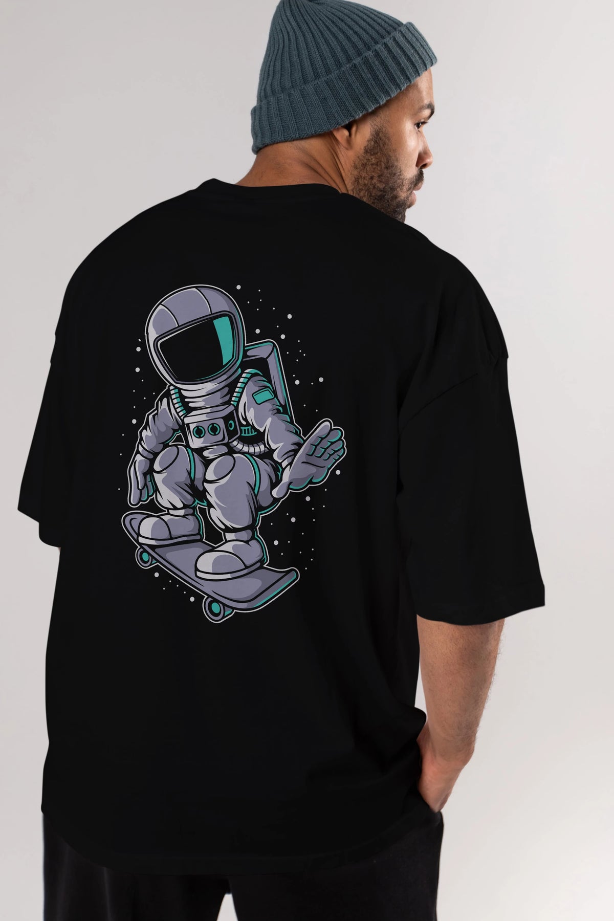 Astronaut Skater Arka Baskılı Oversize t-shirt Erkek Kadın Unisex