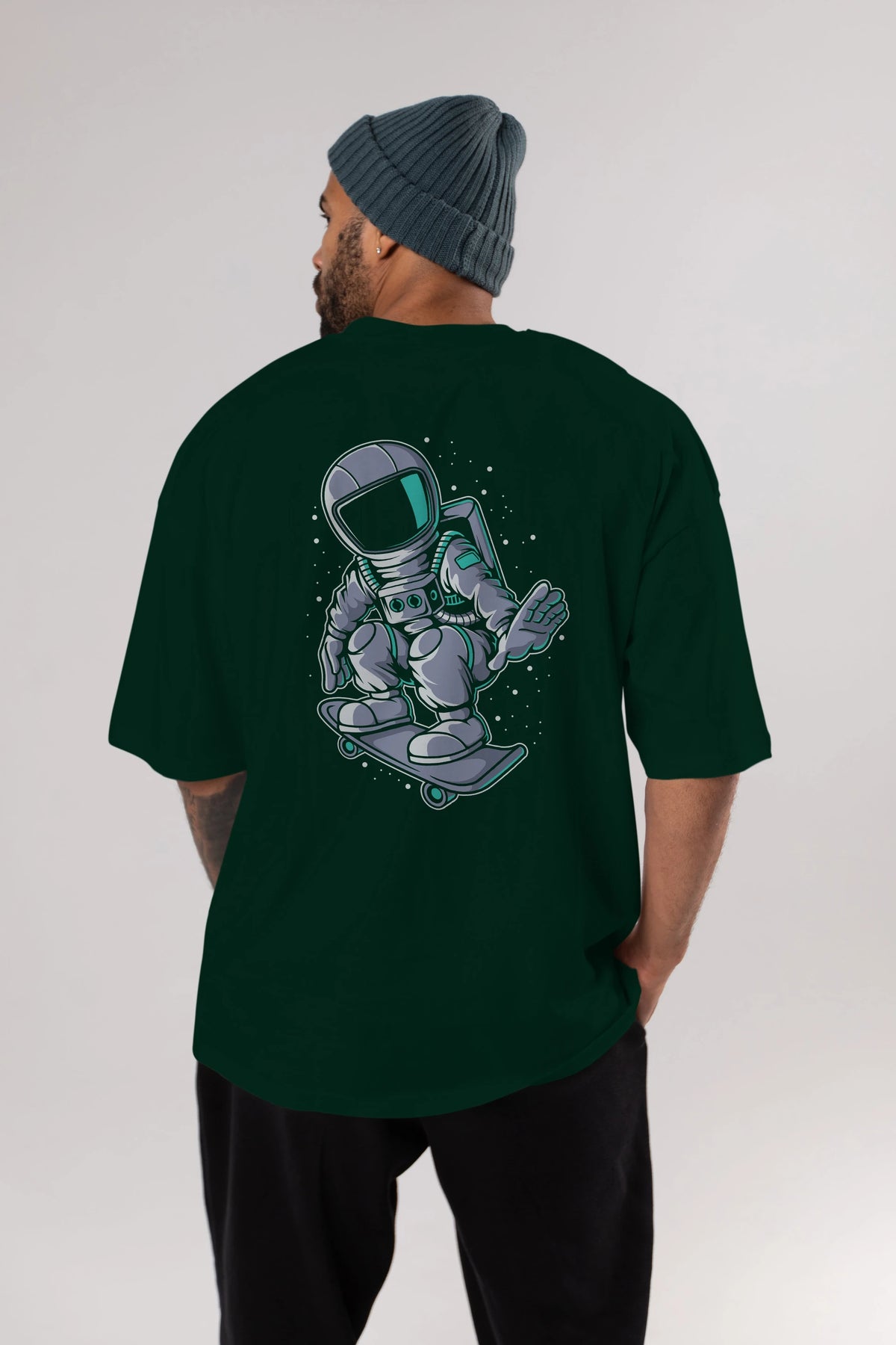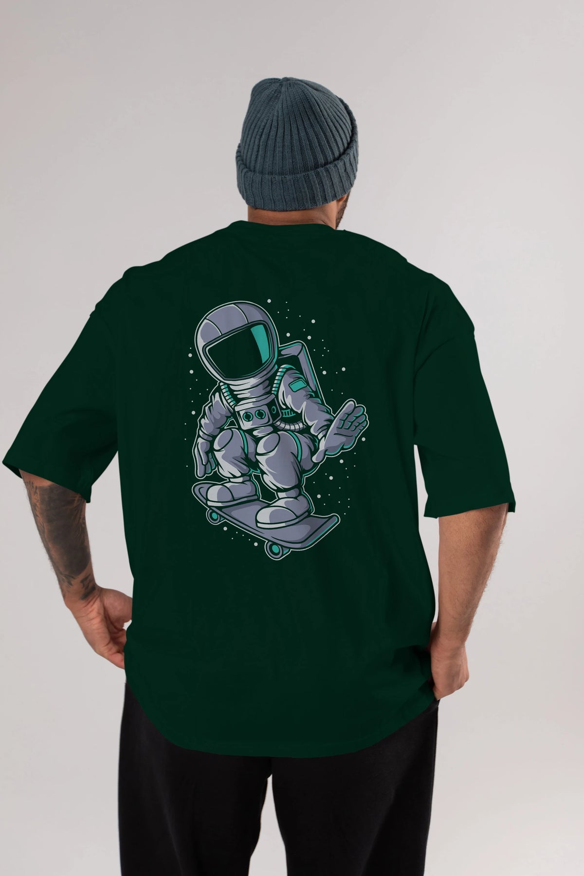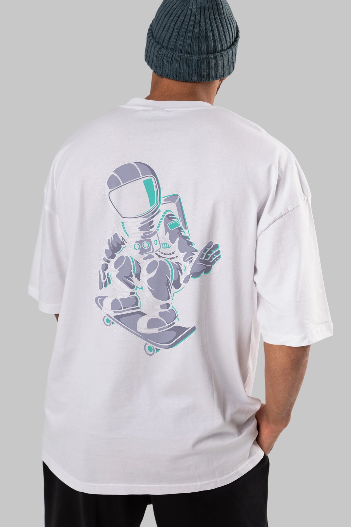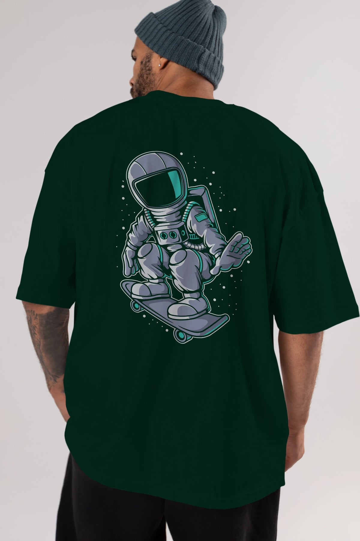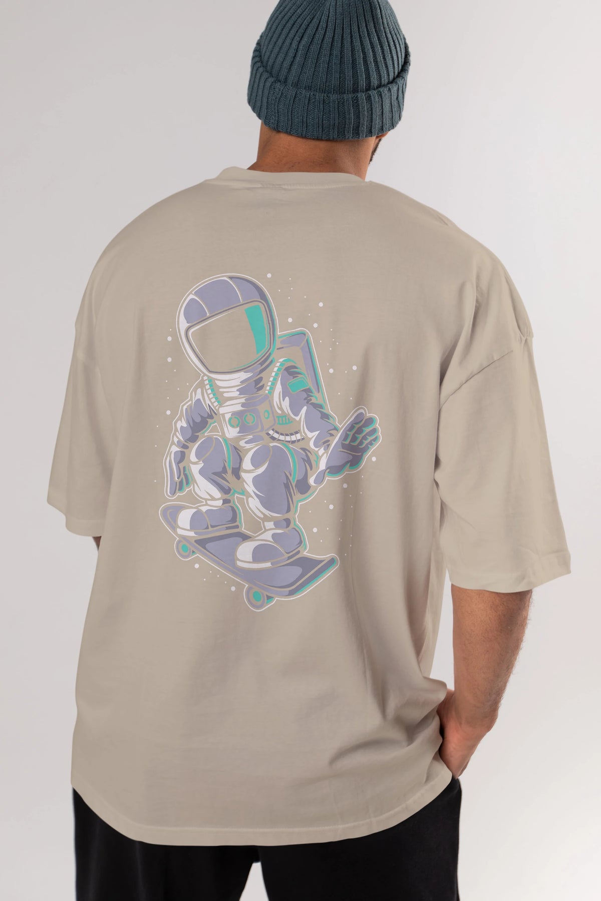 Astronaut Skater Arka Baskılı Oversize t-shirt Erkek Kadın Unisex