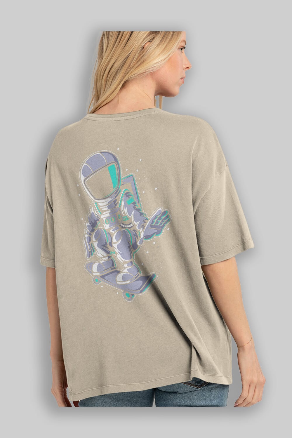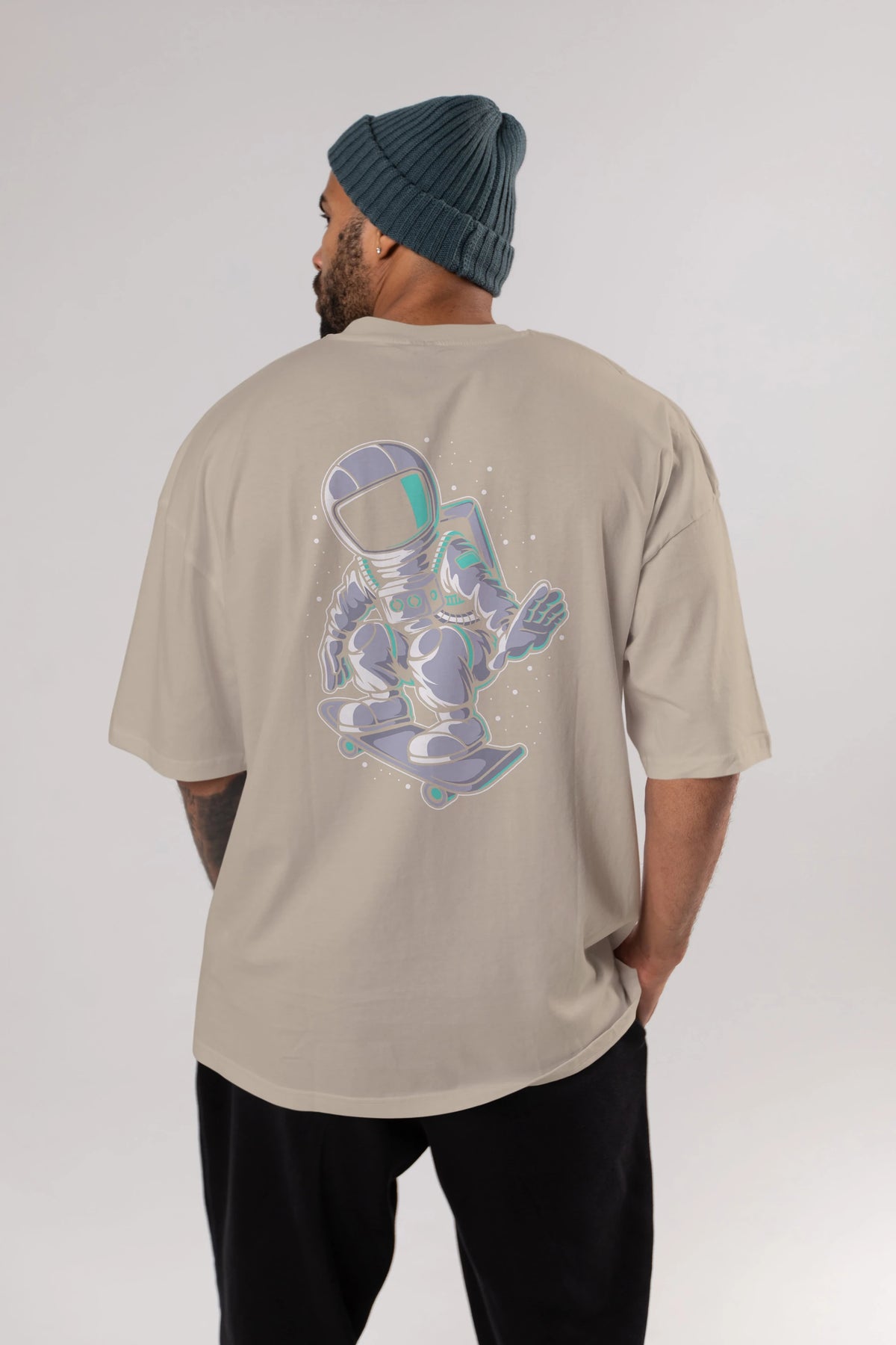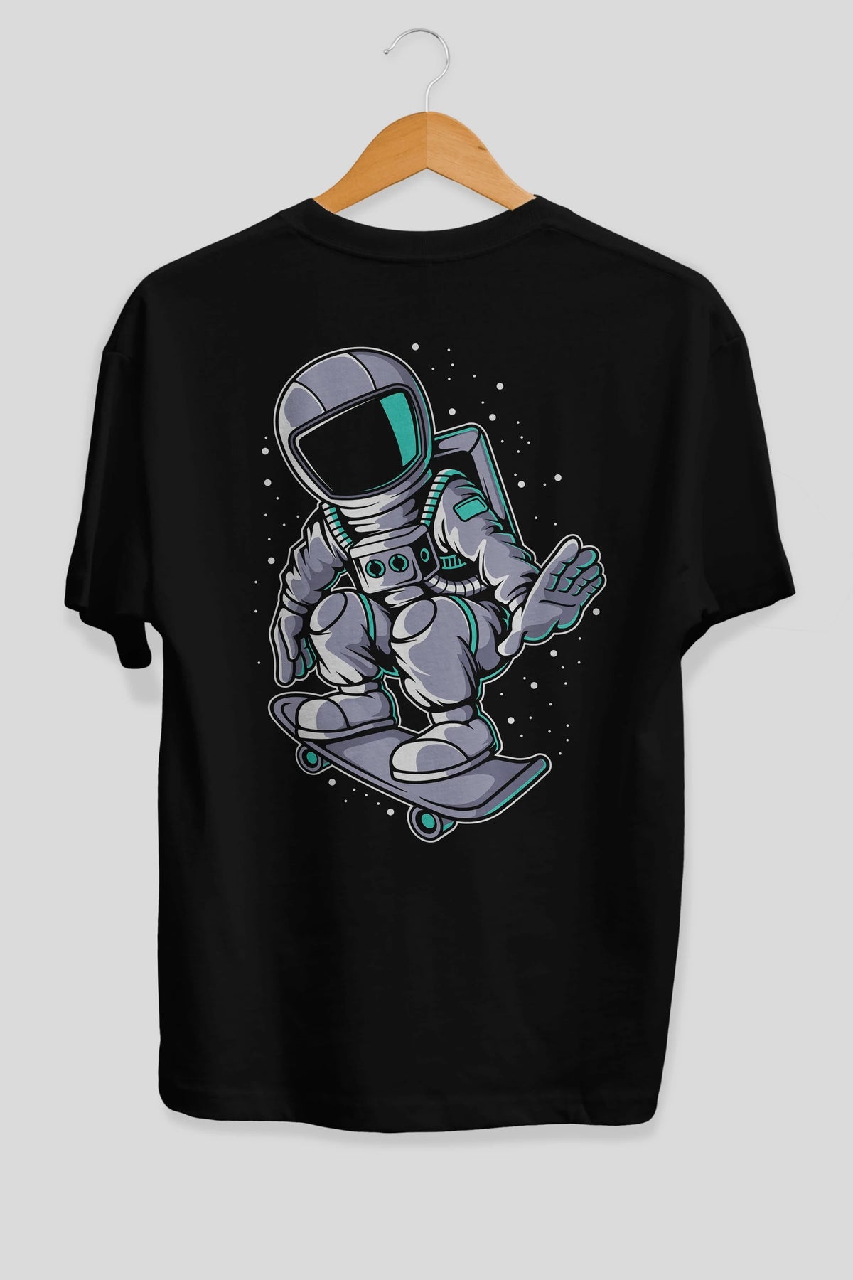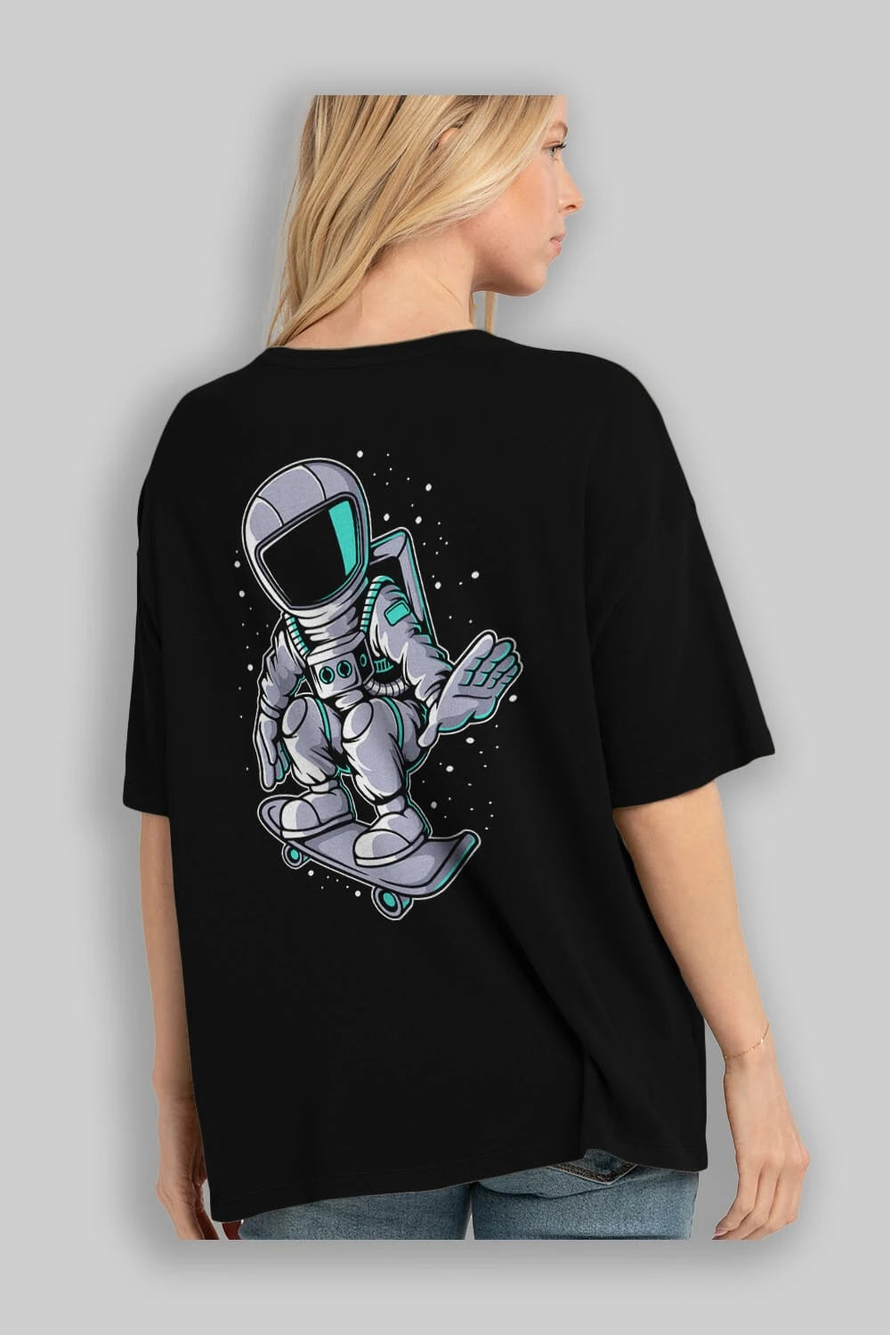 Astronaut Skater Arka Baskılı Oversize t-shirt Erkek Kadın Unisex