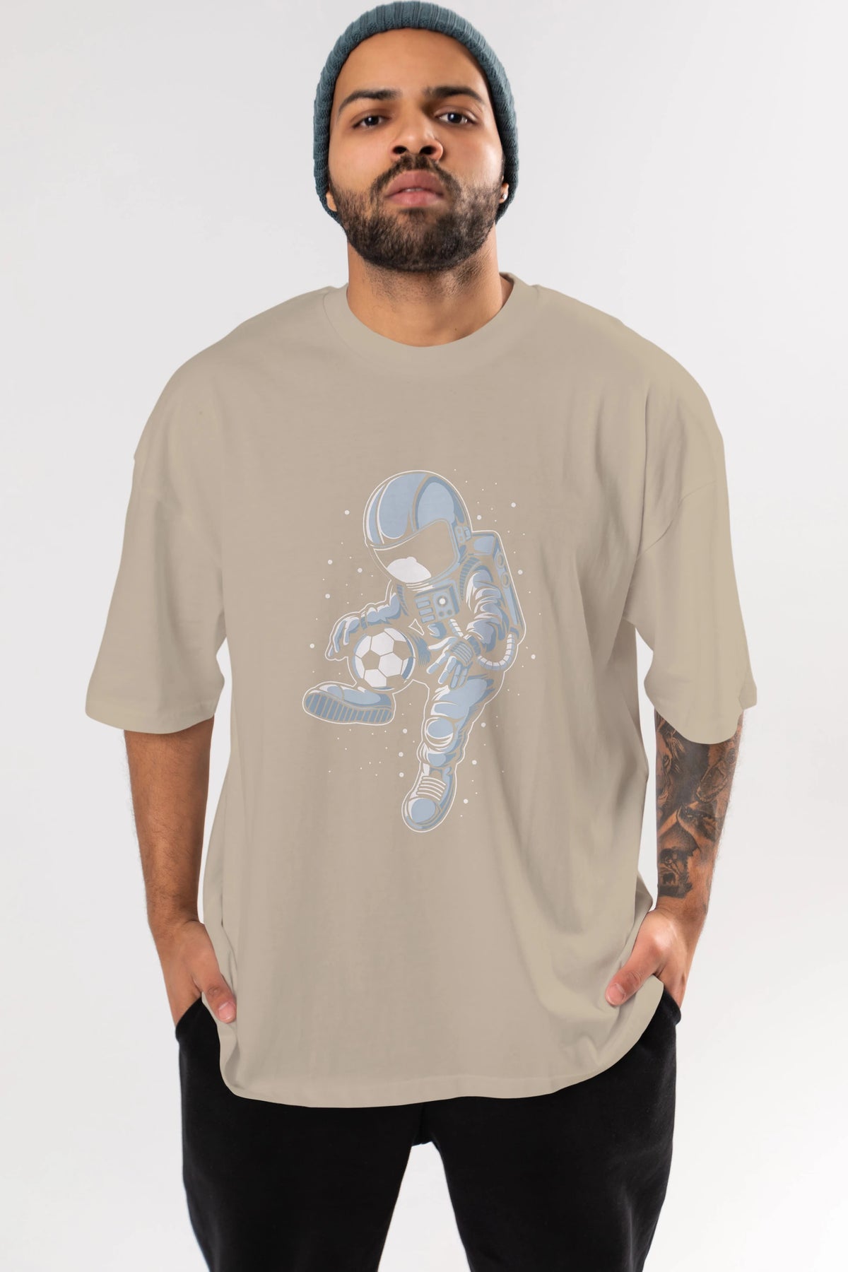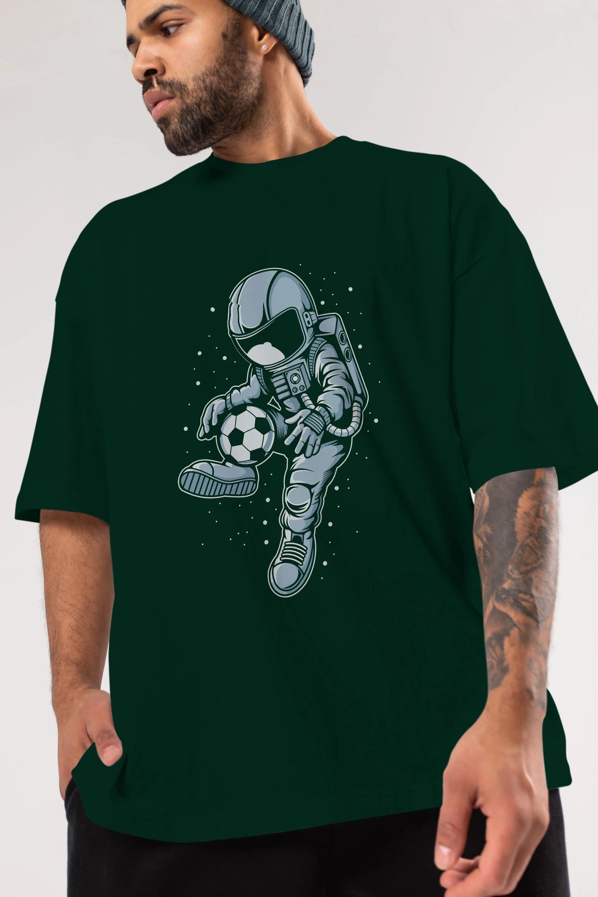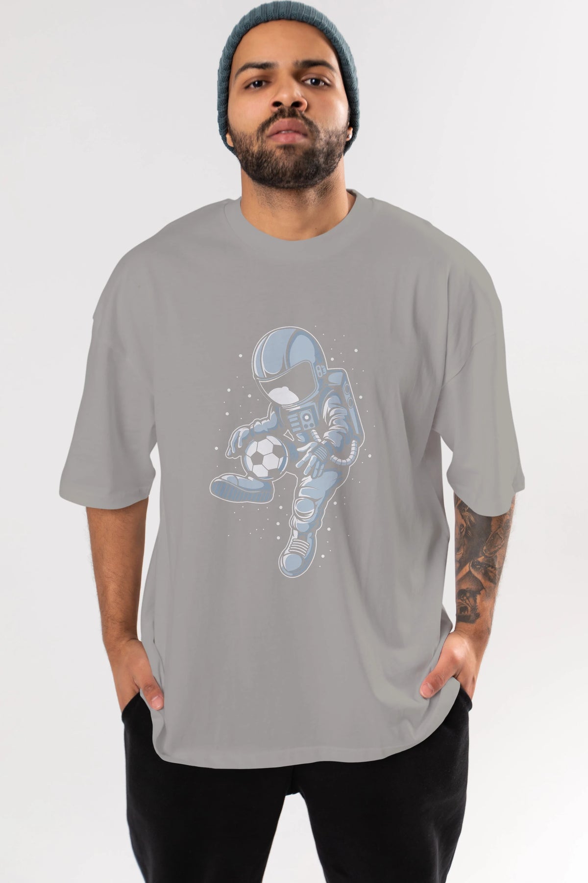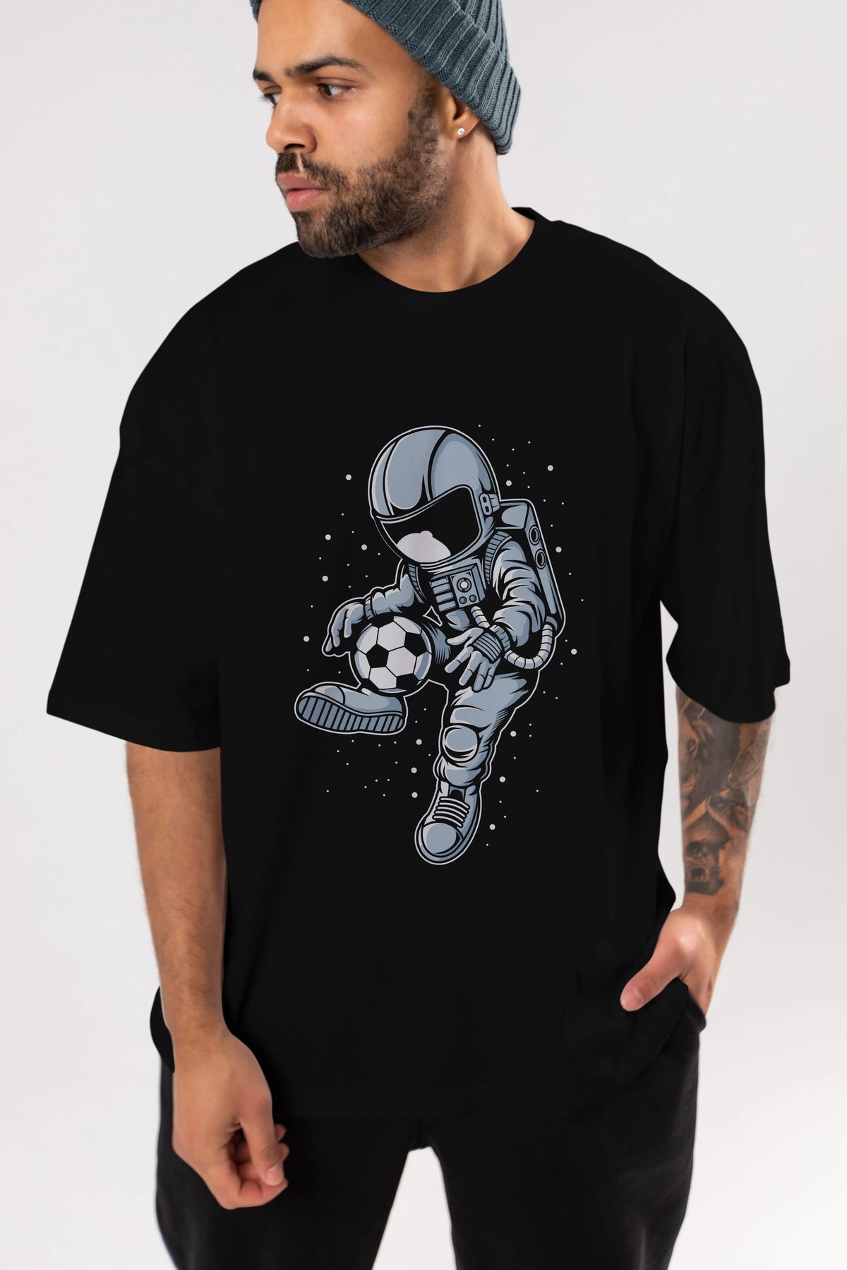 Astronaut Soccer Player Ön Baskılı Oversize t-shirt Erkek Kadın Unisex