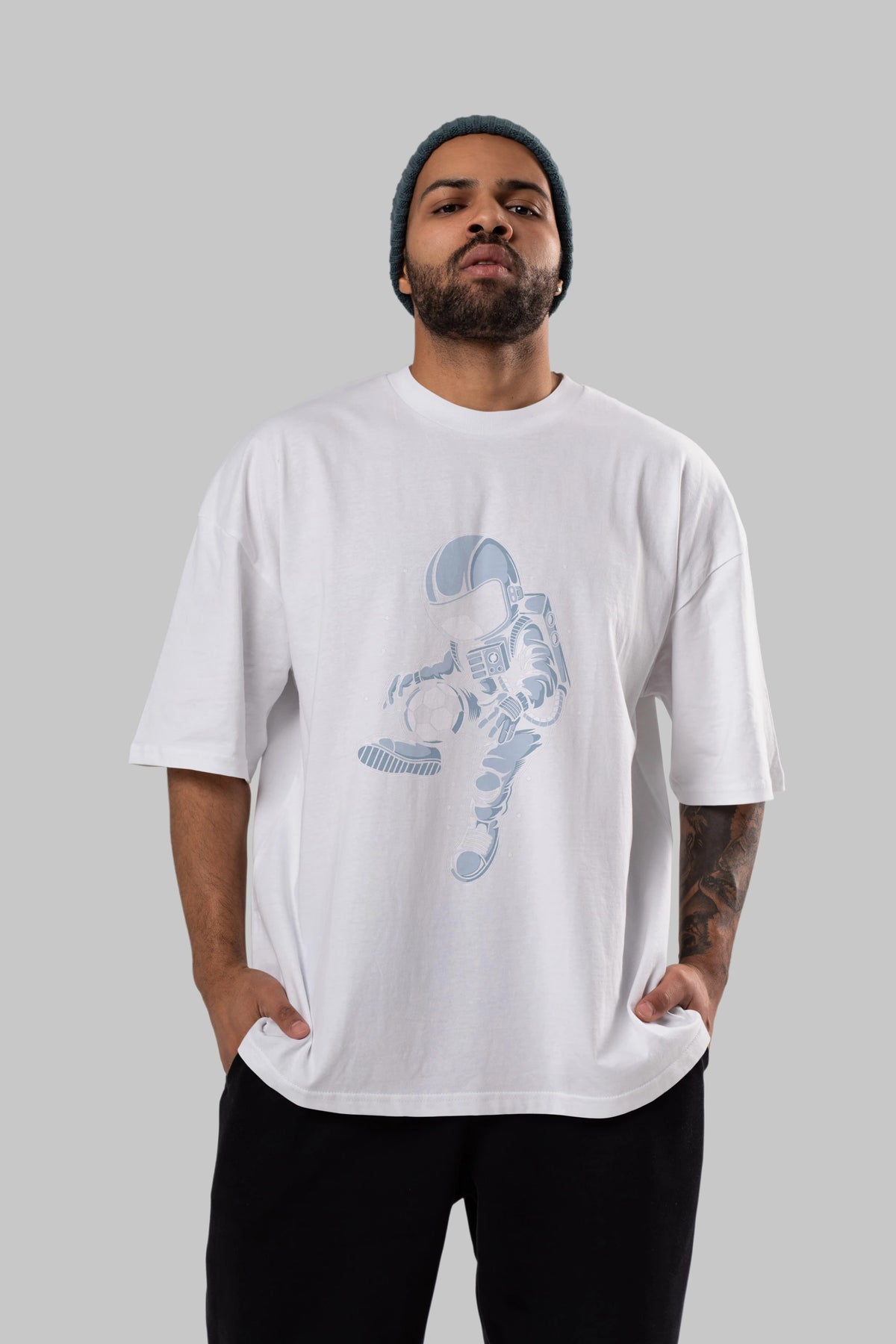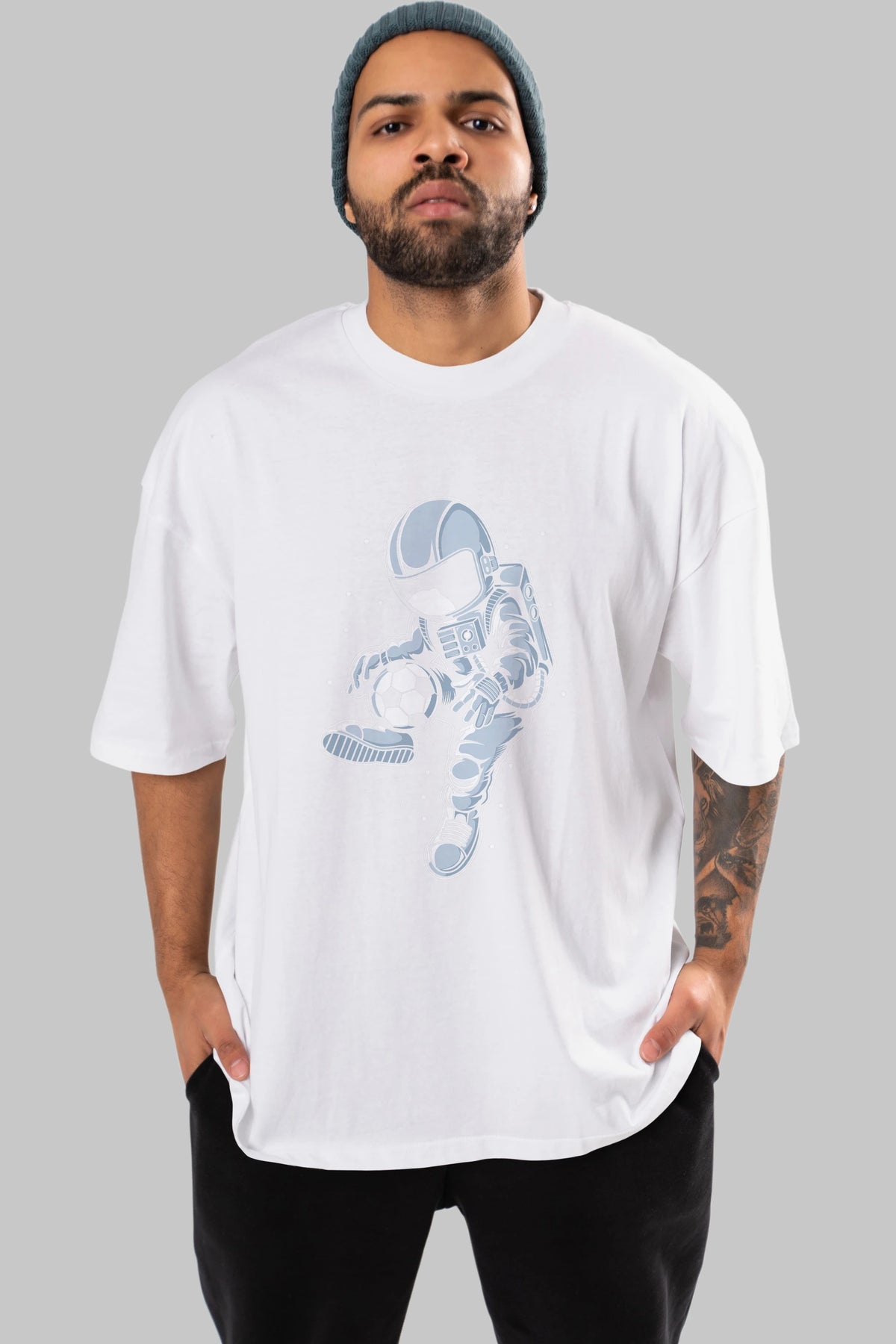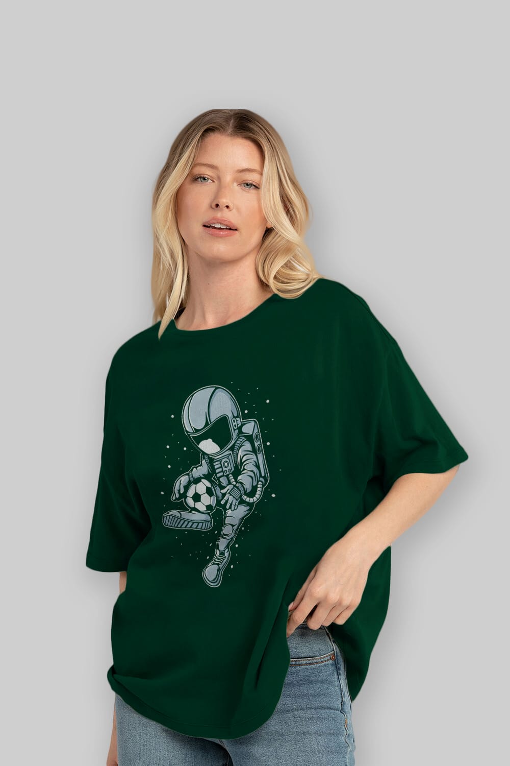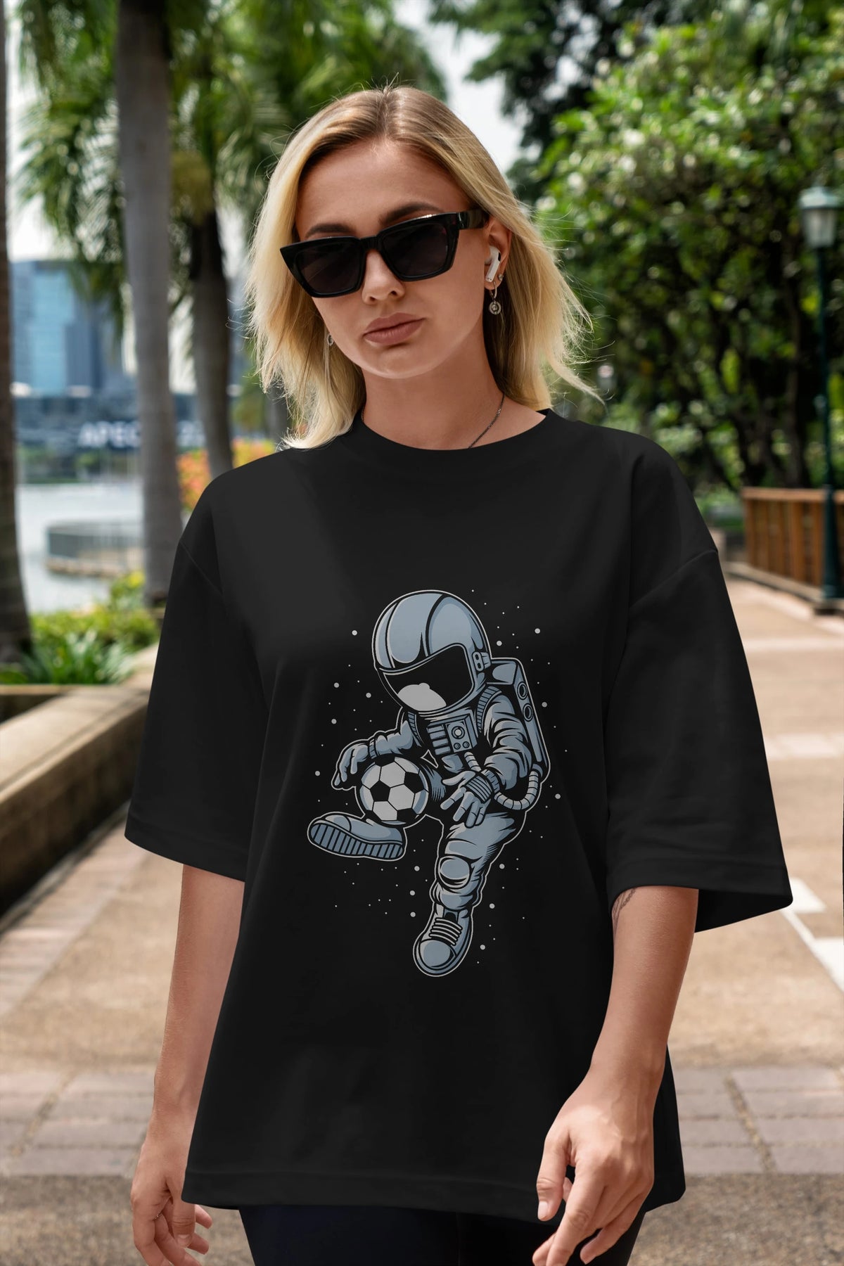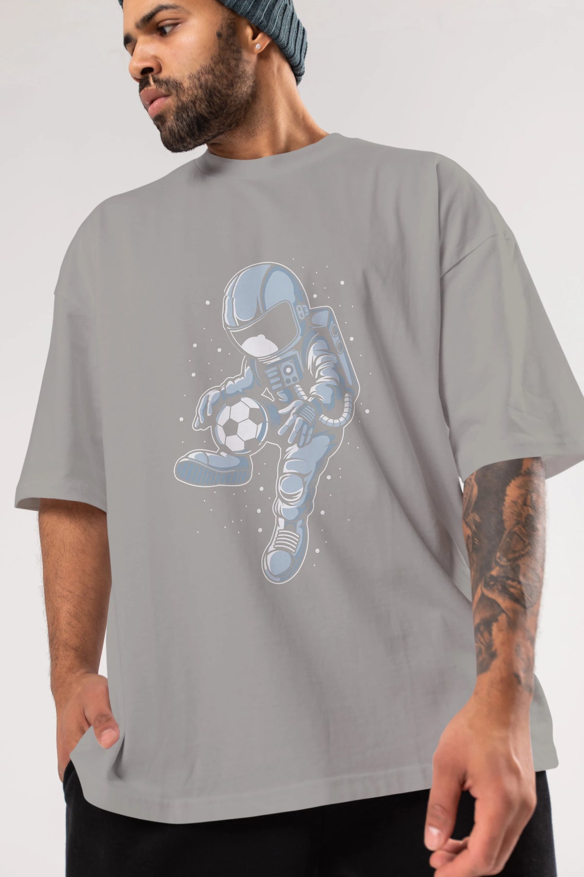 Astronaut Soccer Player Ön Baskılı Oversize t-shirt Erkek Kadın Unisex