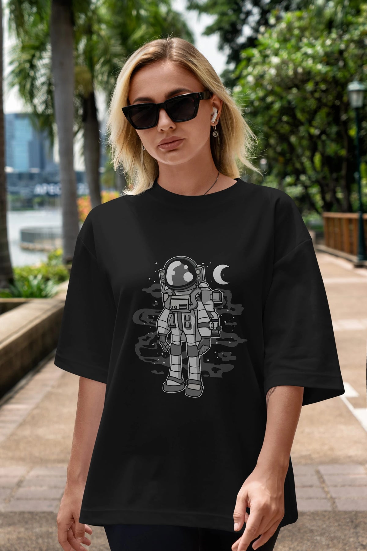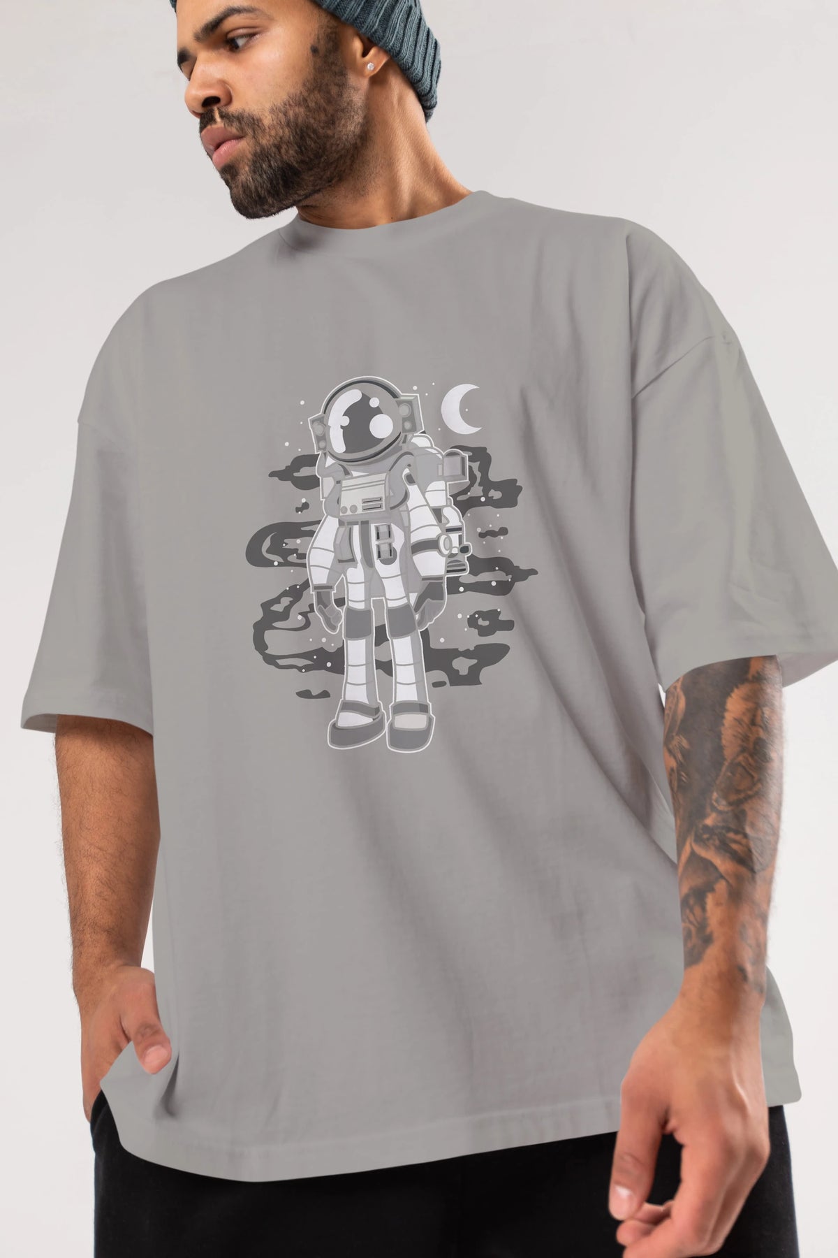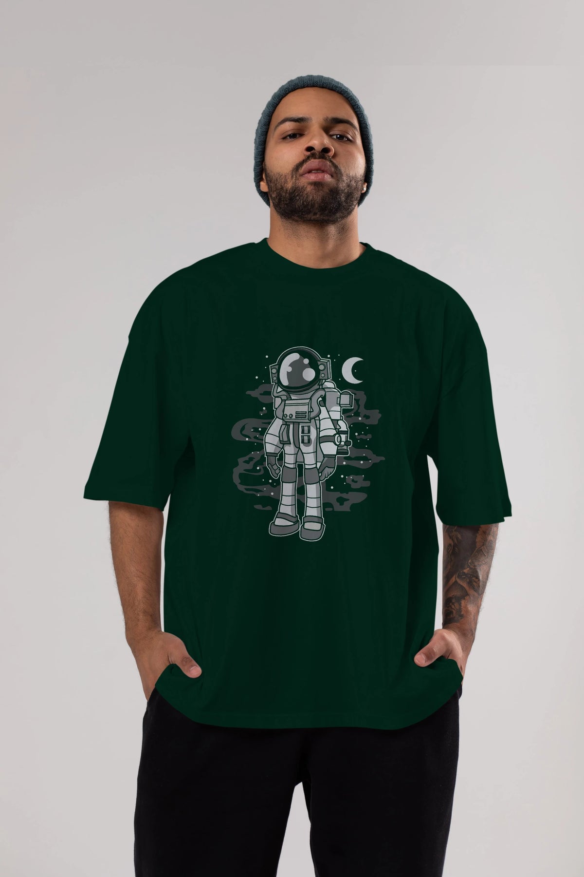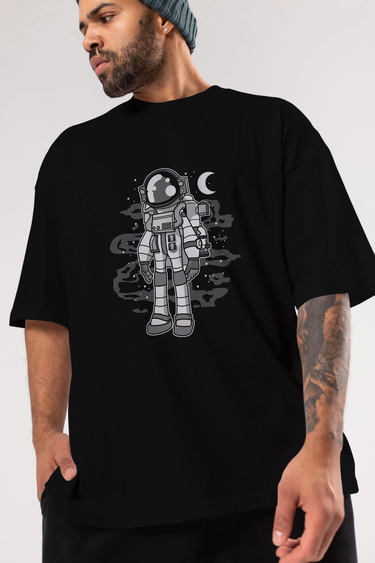 Astronaut Stand Ön Baskılı Oversize t-shirt Erkek Kadın Unisex