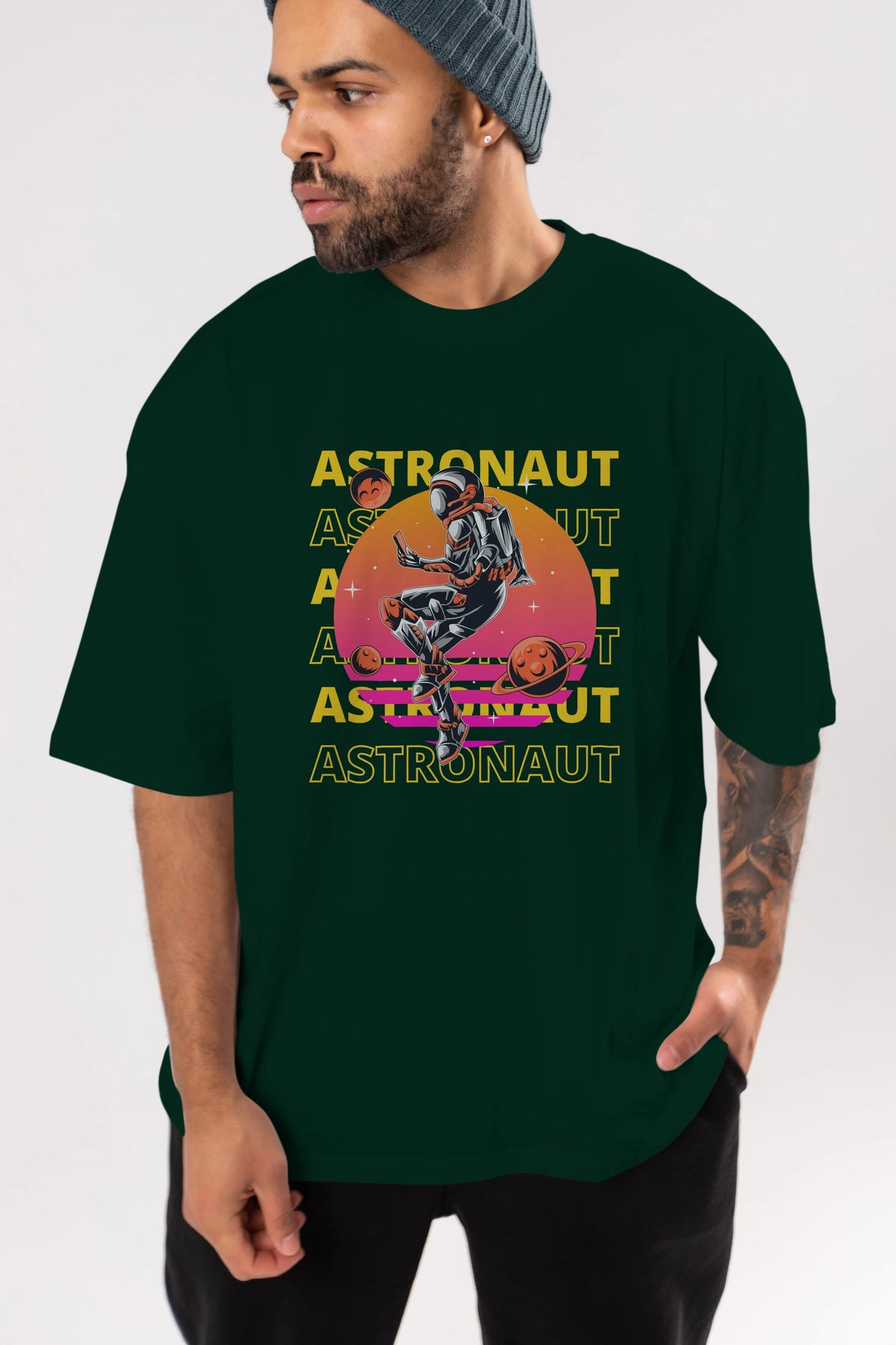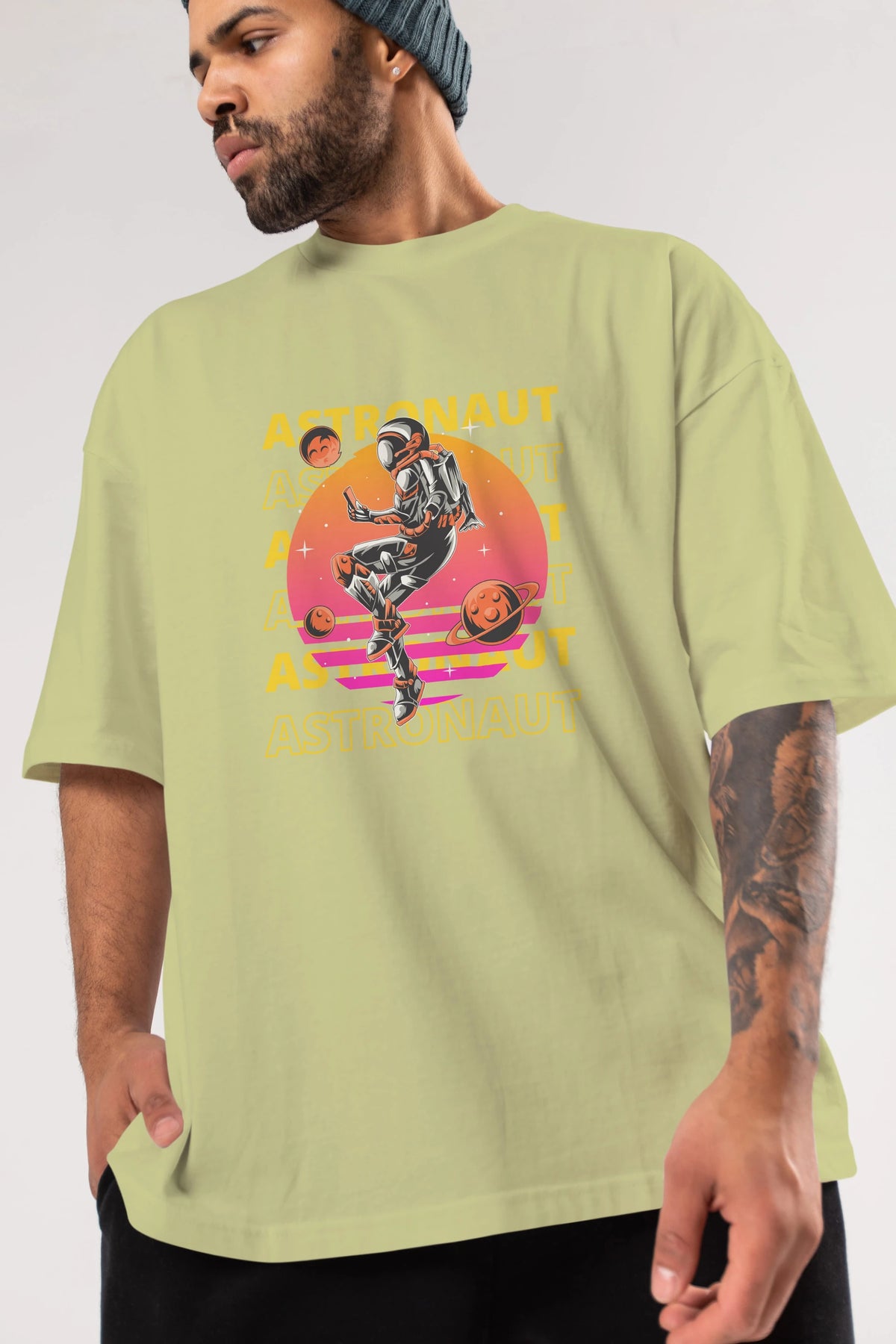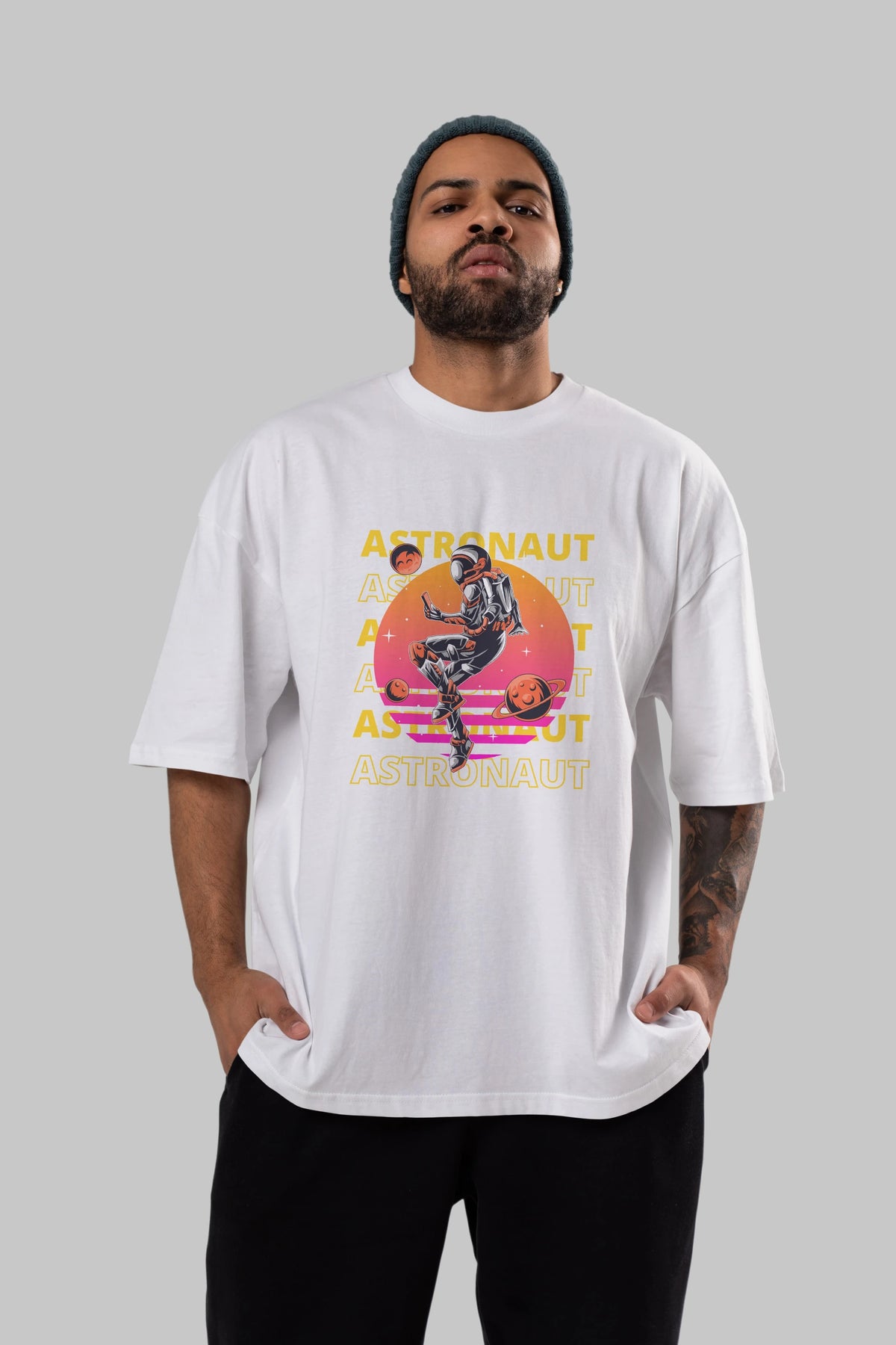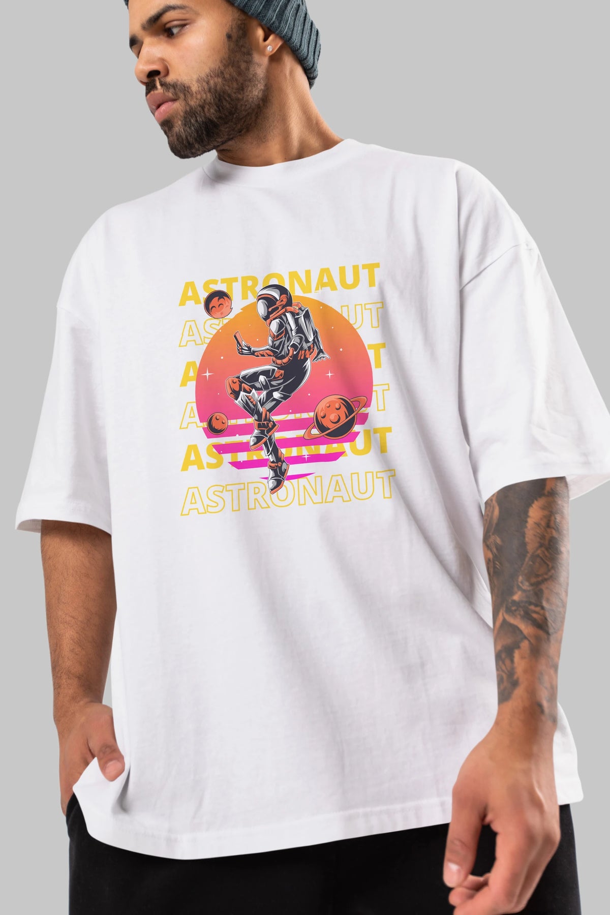 Astronaut Streetwear 2 Ön Baskılı Oversize t-shirt Erkek Kadın Unisex