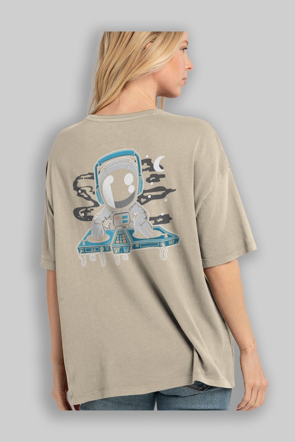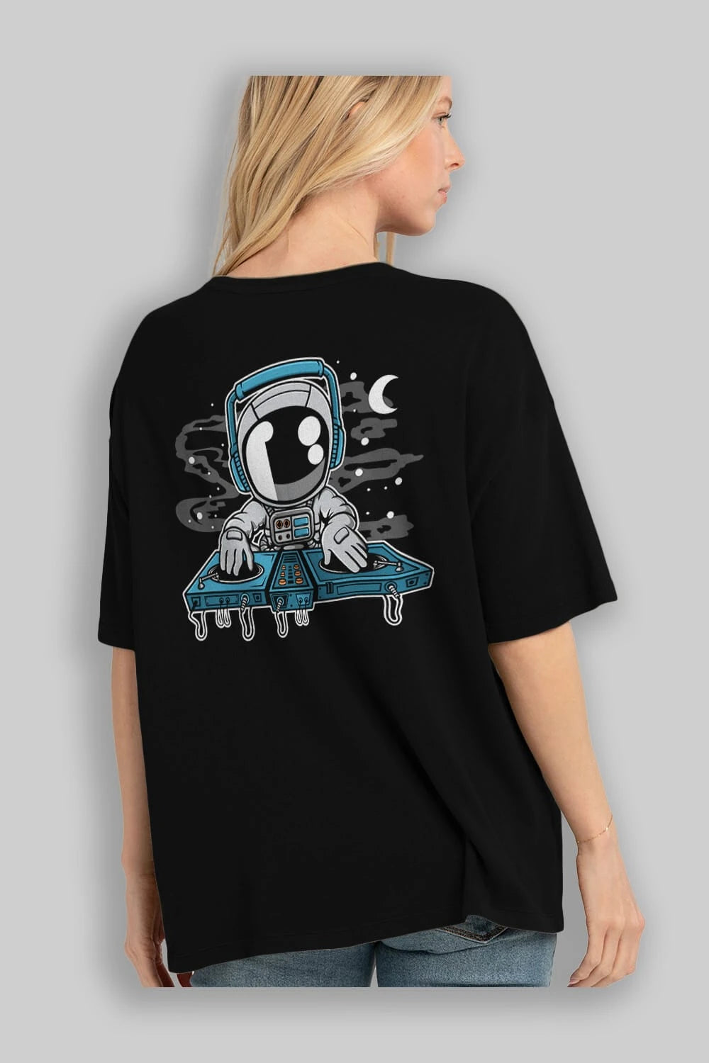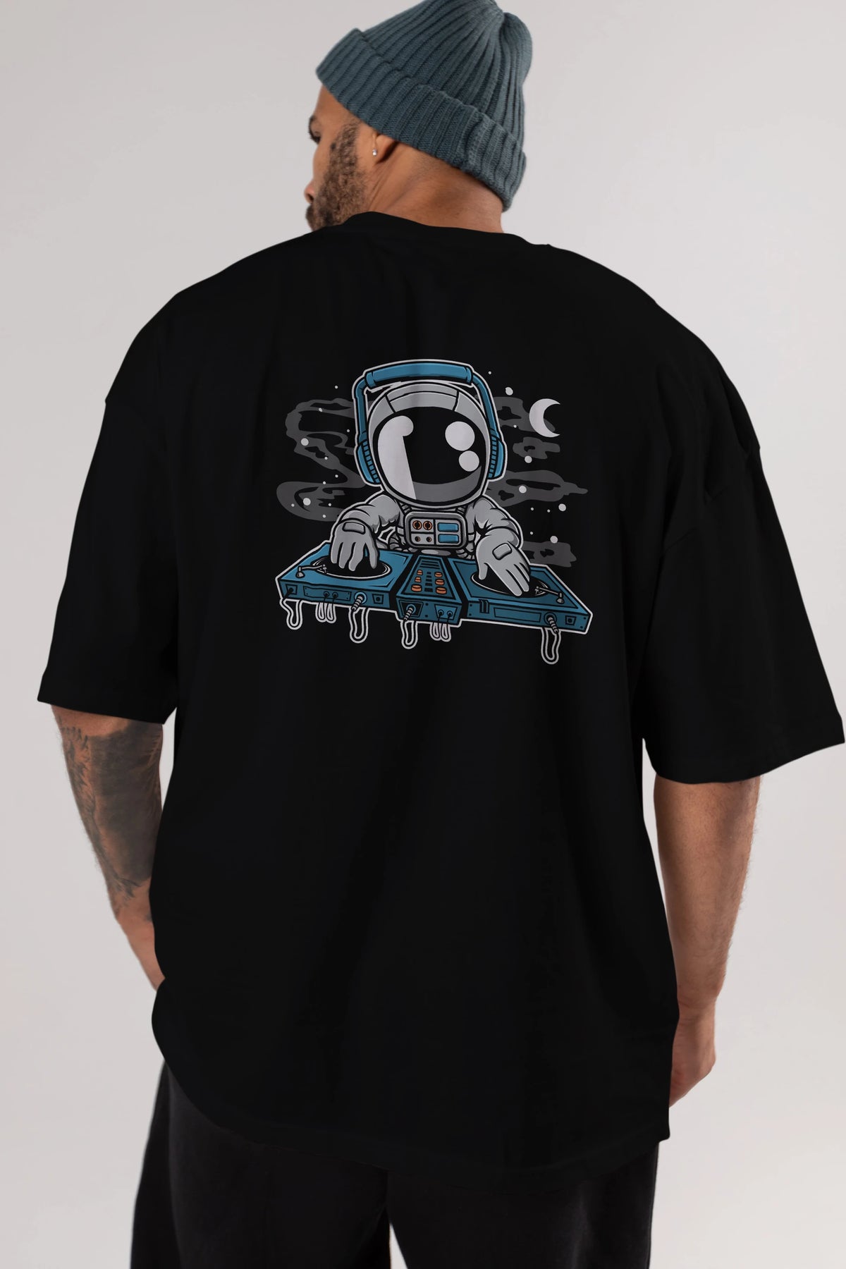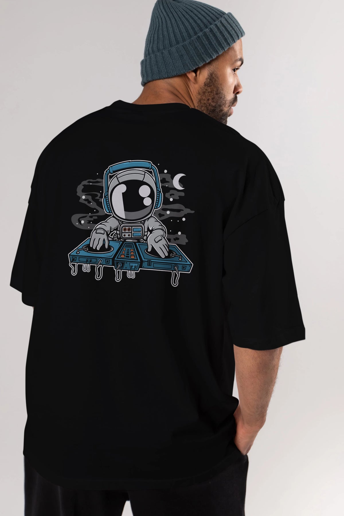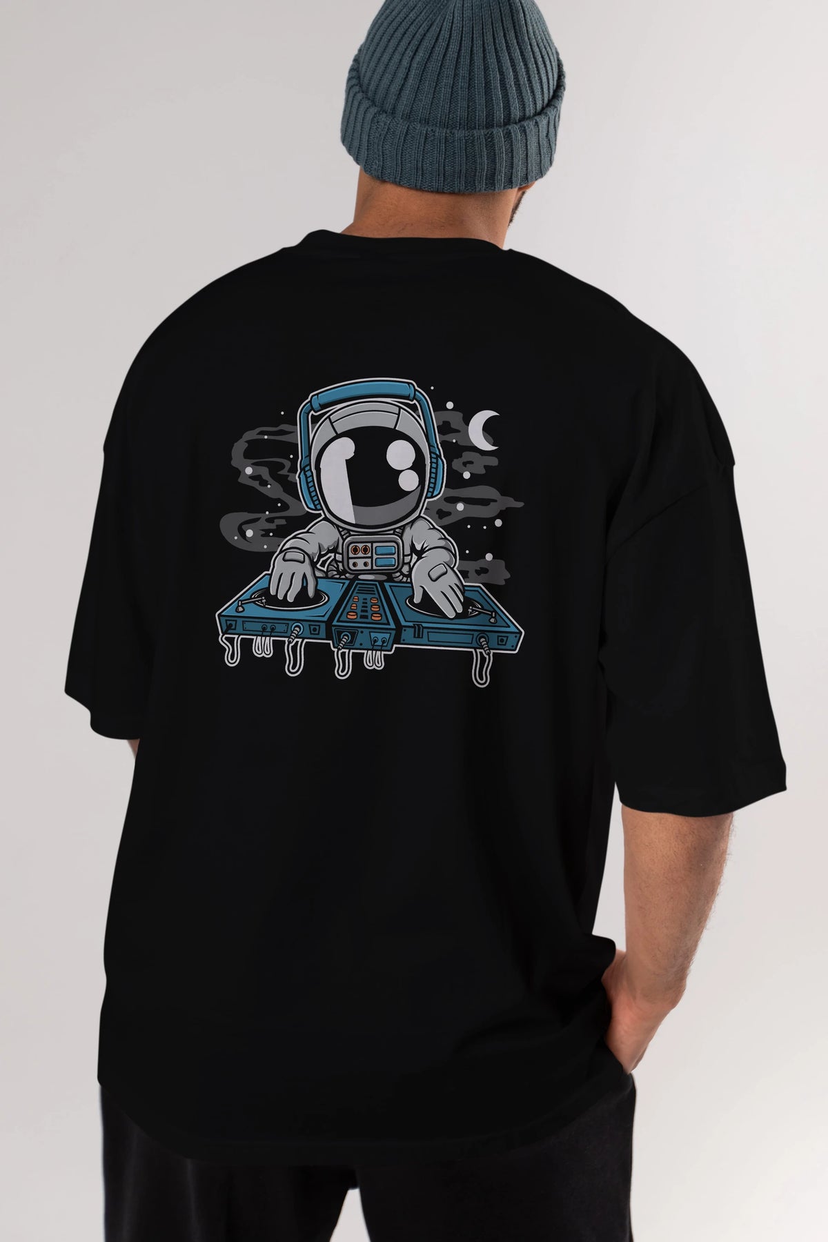 Astronaut Turntable Arka Baskılı Oversize t-shirt Erkek Kadın Unisex