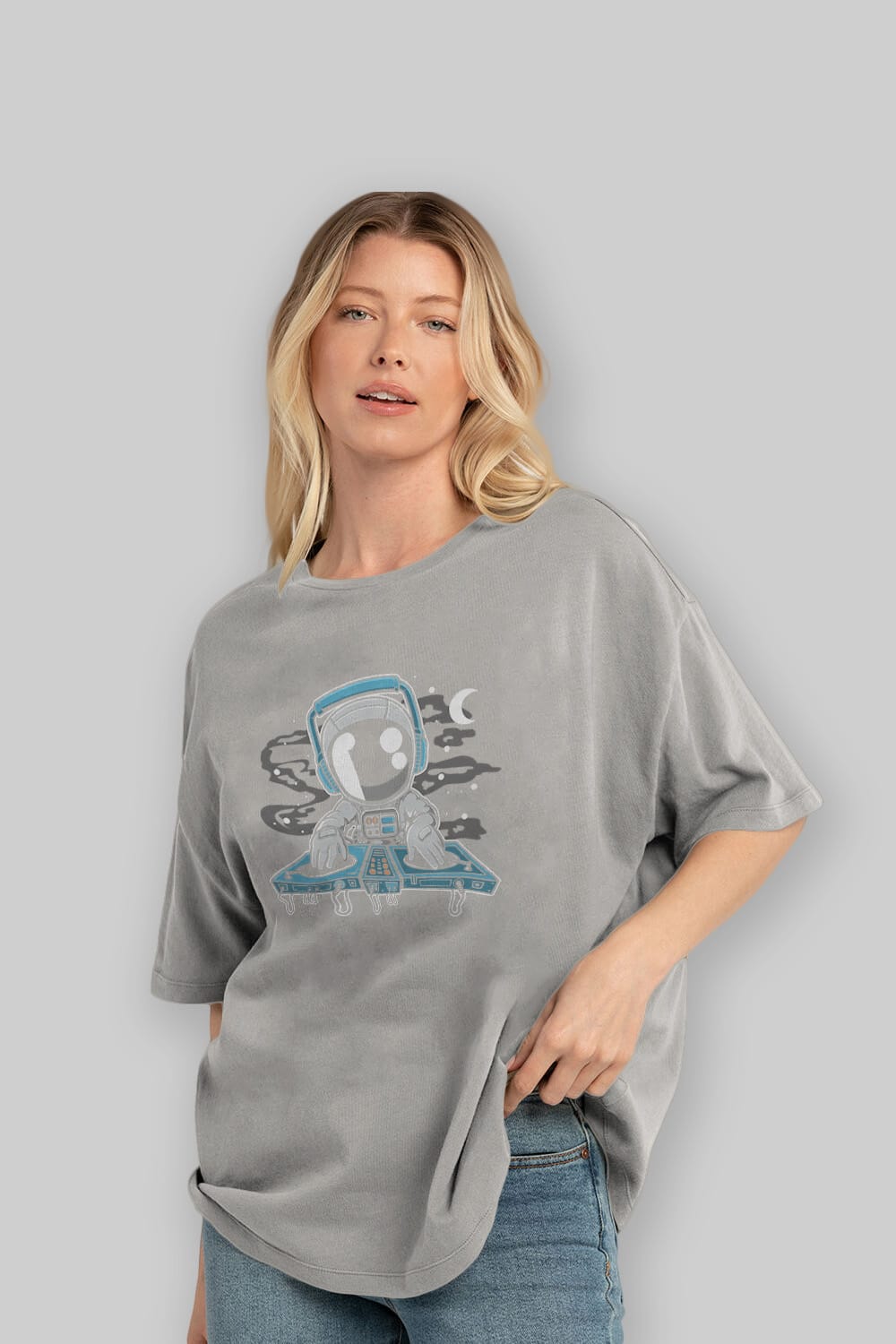 Astronaut Turntable Ön Baskılı Oversize t-shirt Erkek Kadın Unisex