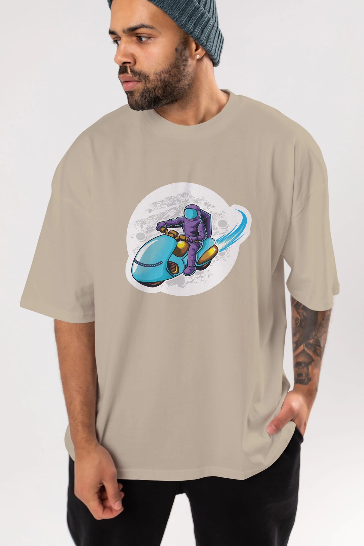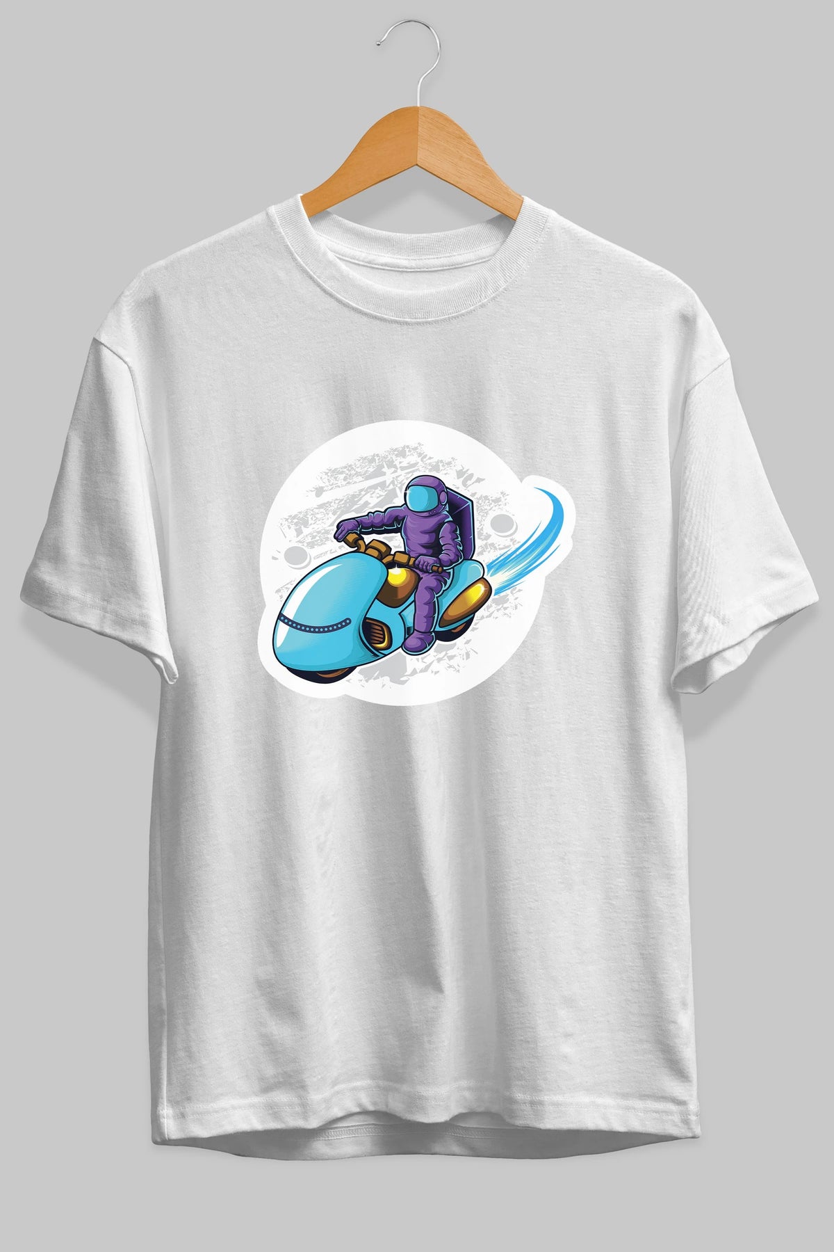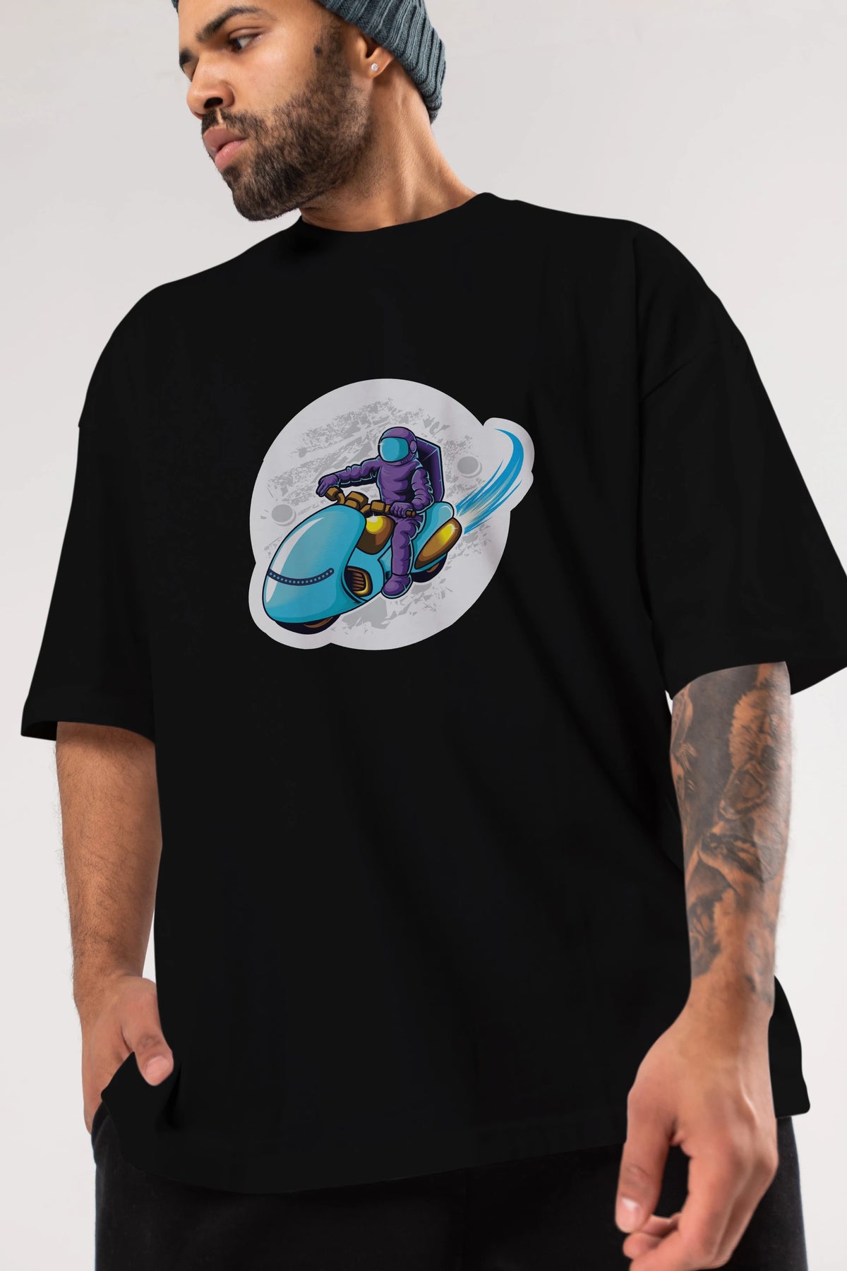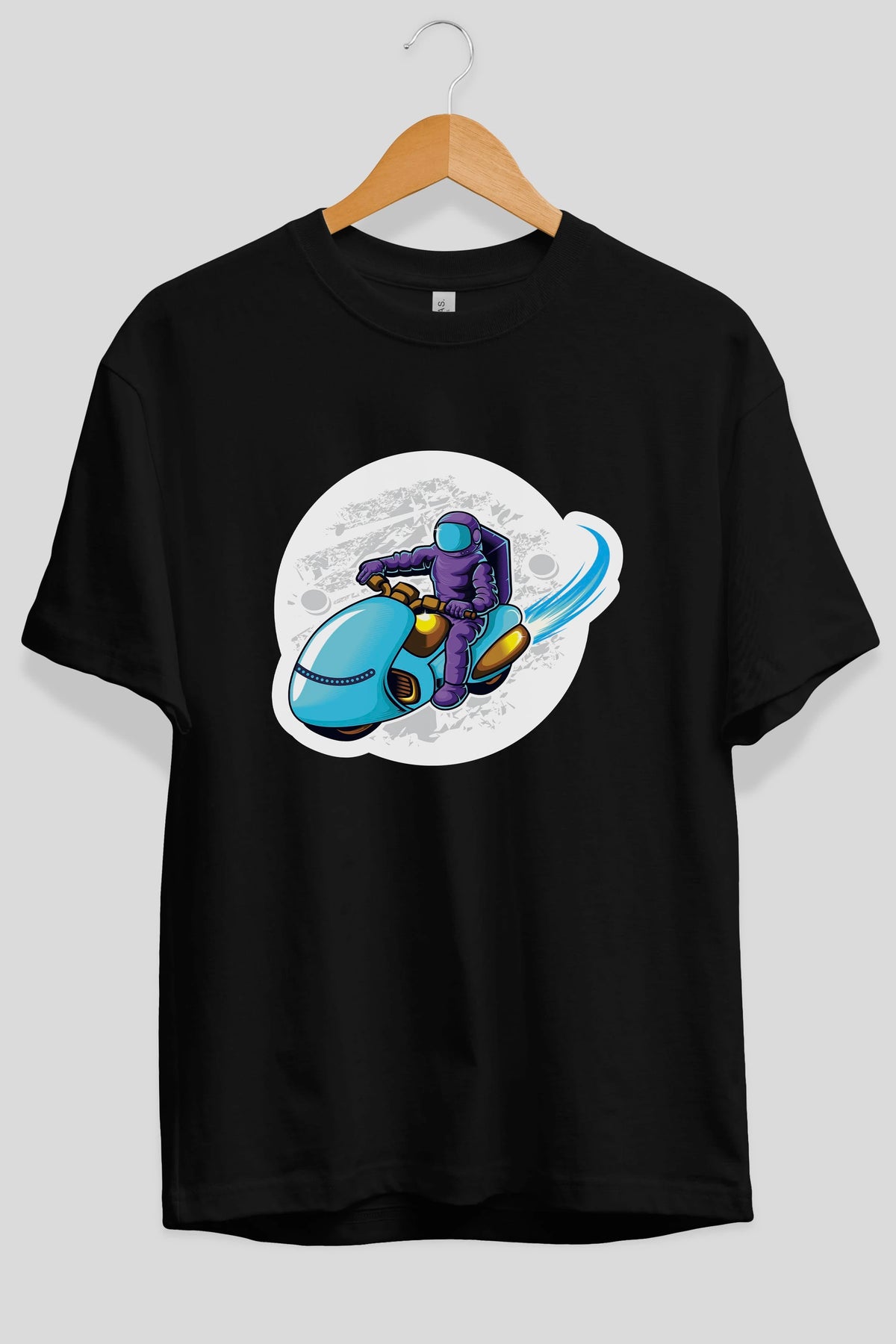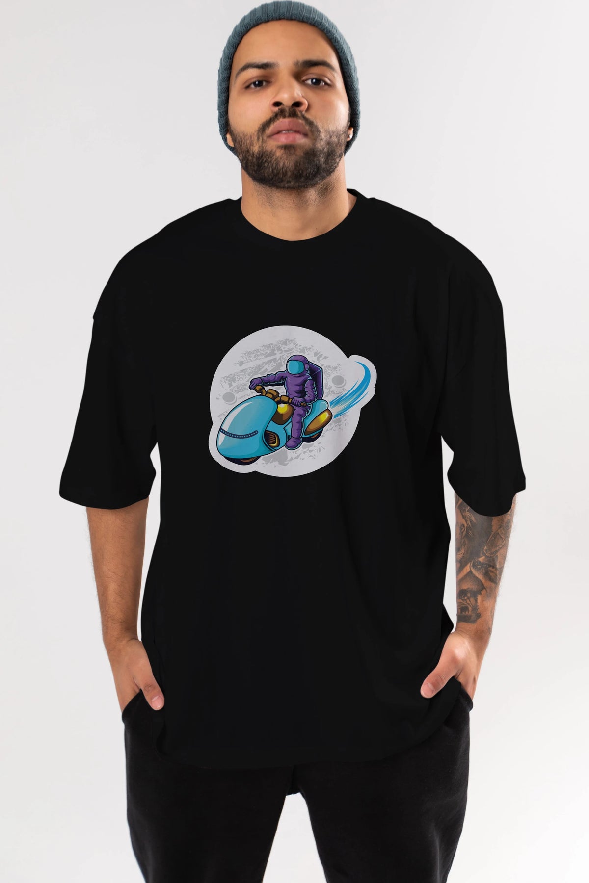Astrorider in Space Sticker Ön Baskılı Oversize t-shirt Erkek Kadın Unisex