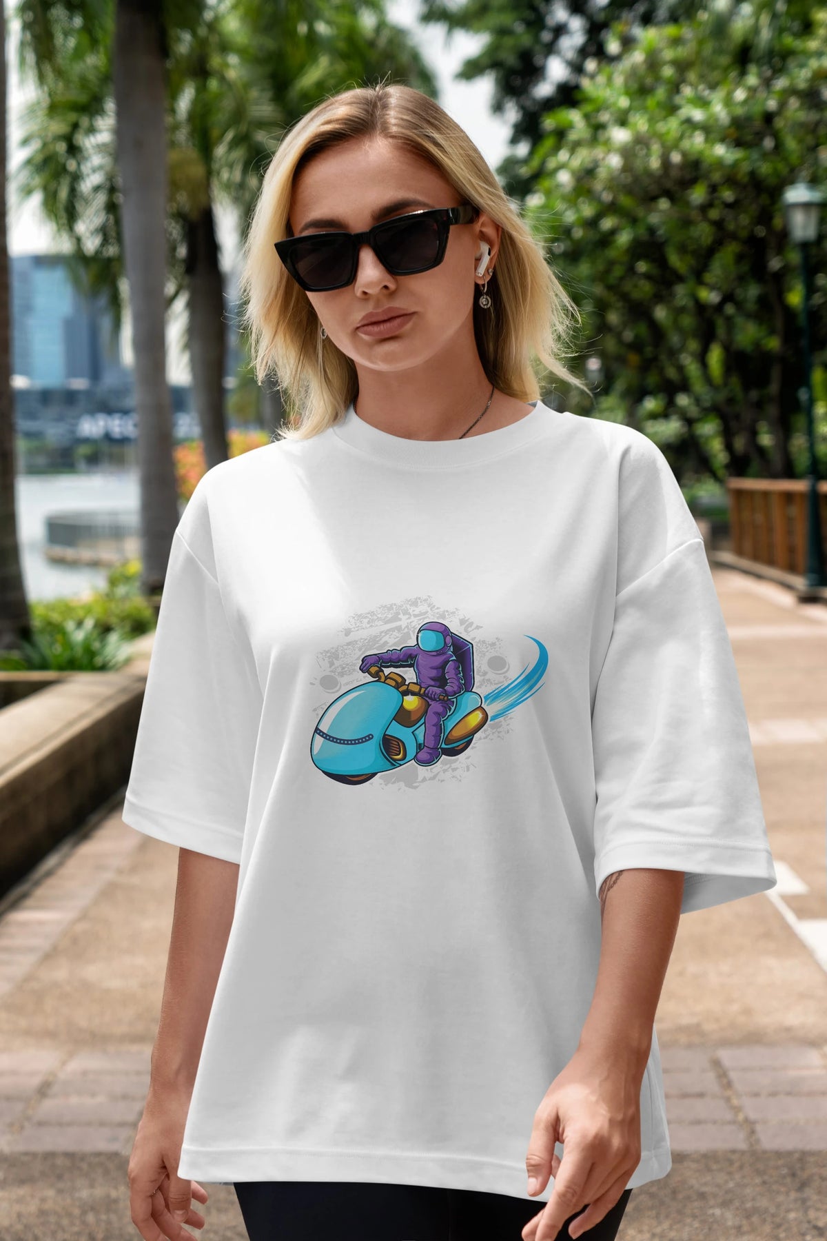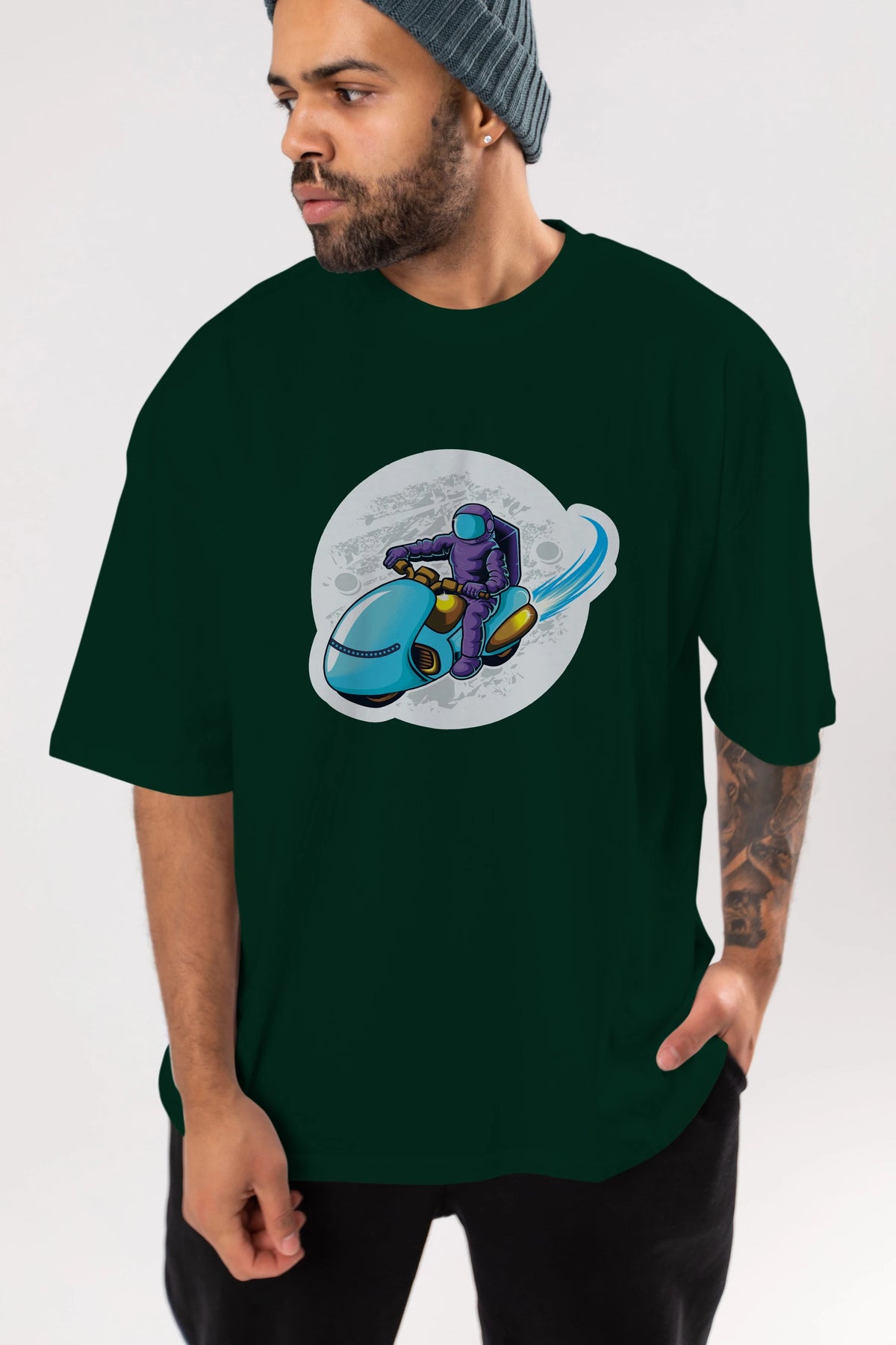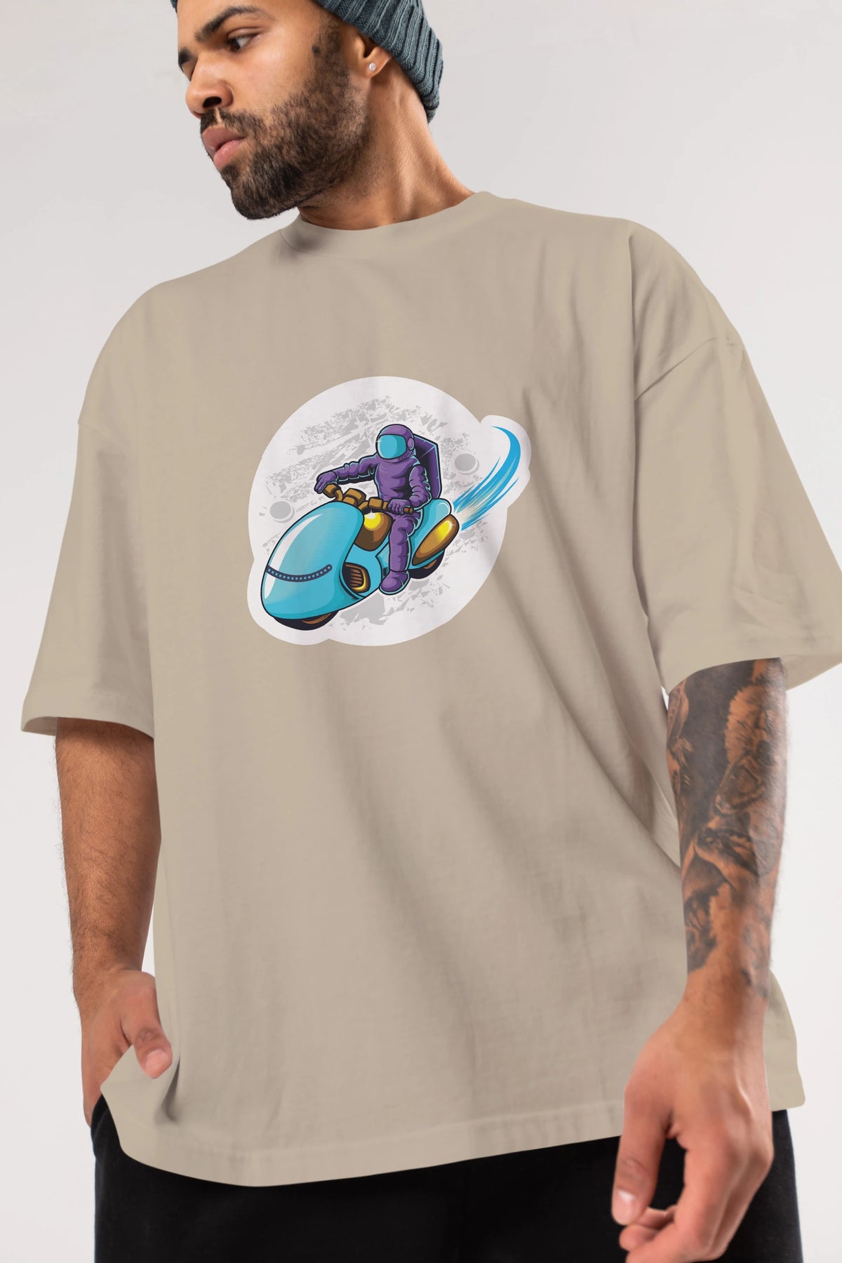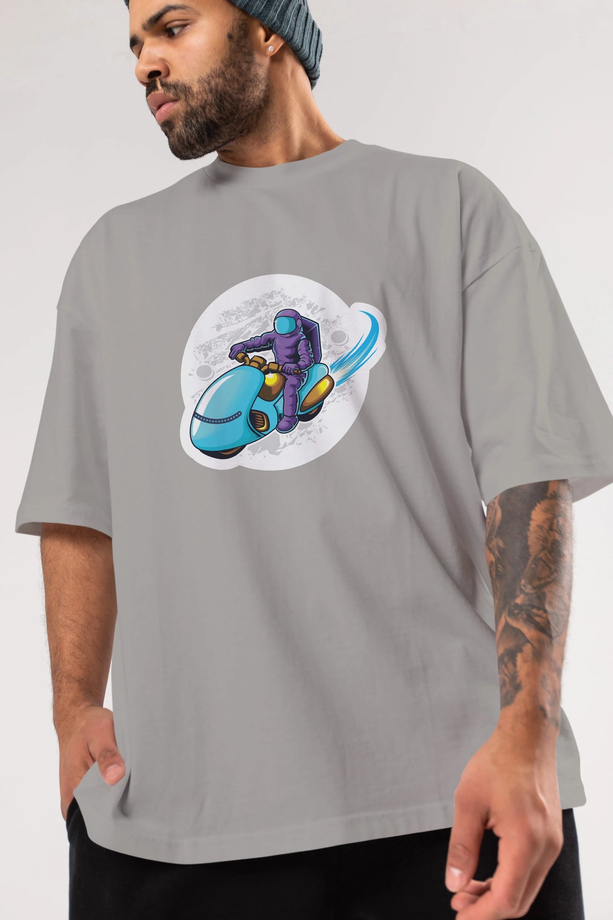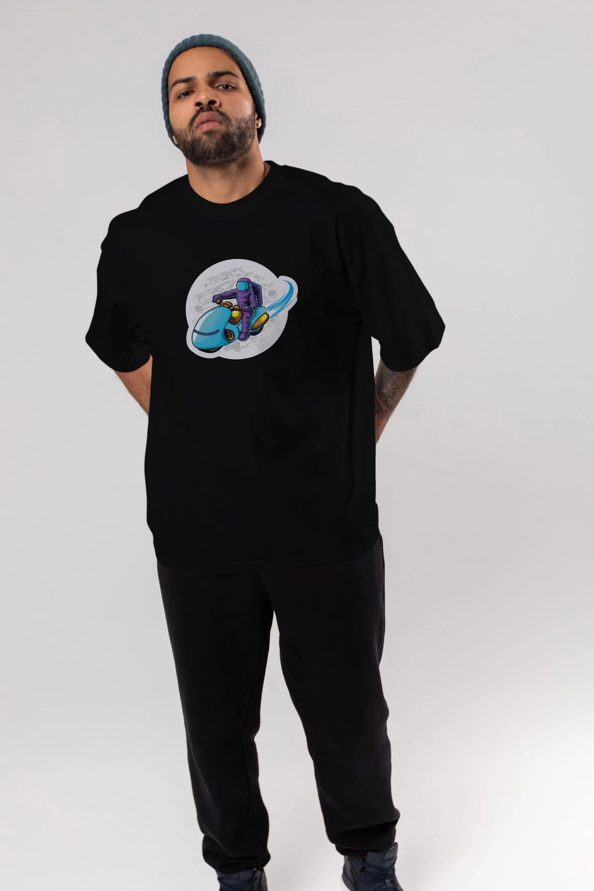 Astrorider in Space Sticker Ön Baskılı Oversize t-shirt Erkek Kadın Unisex