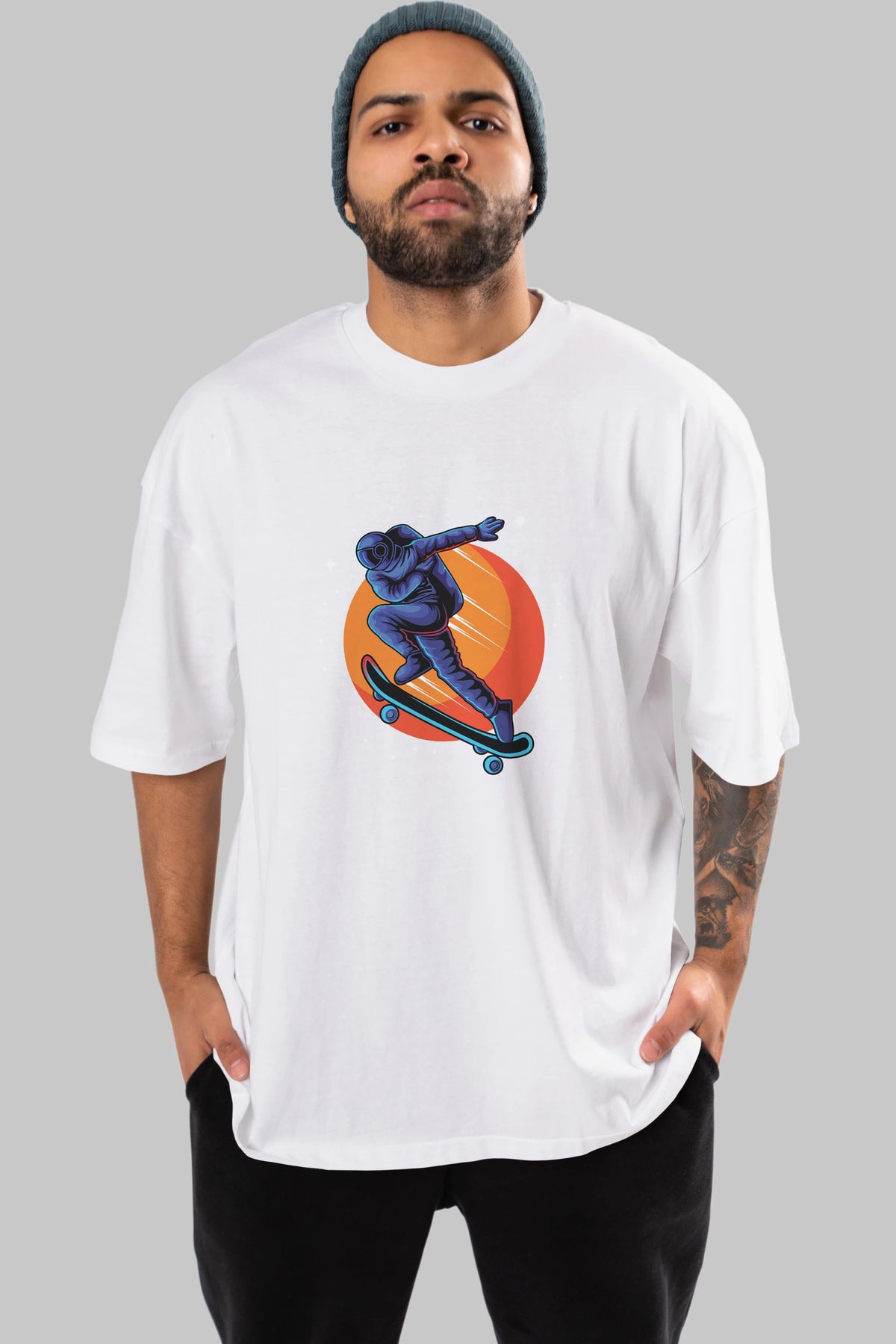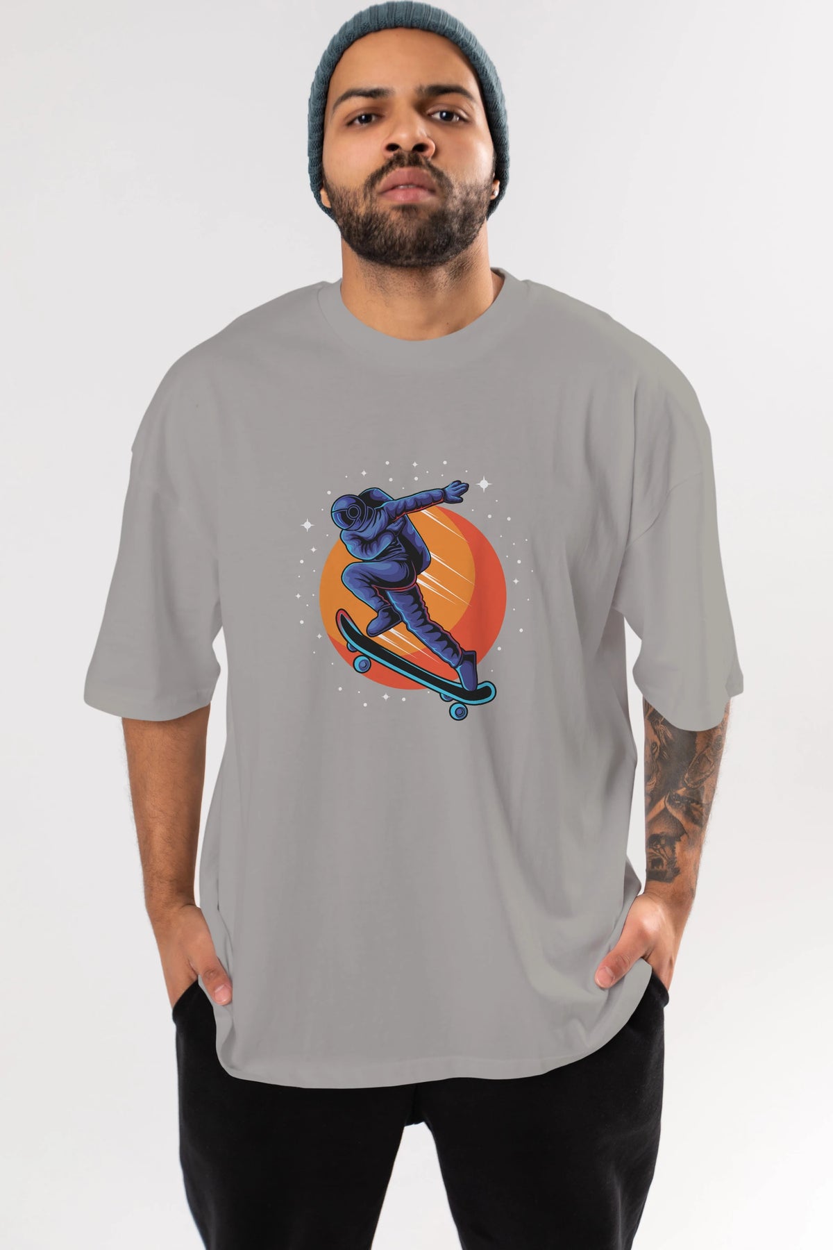 Astroskate Run Ön Baskılı Oversize t-shirt Erkek Kadın Unisex