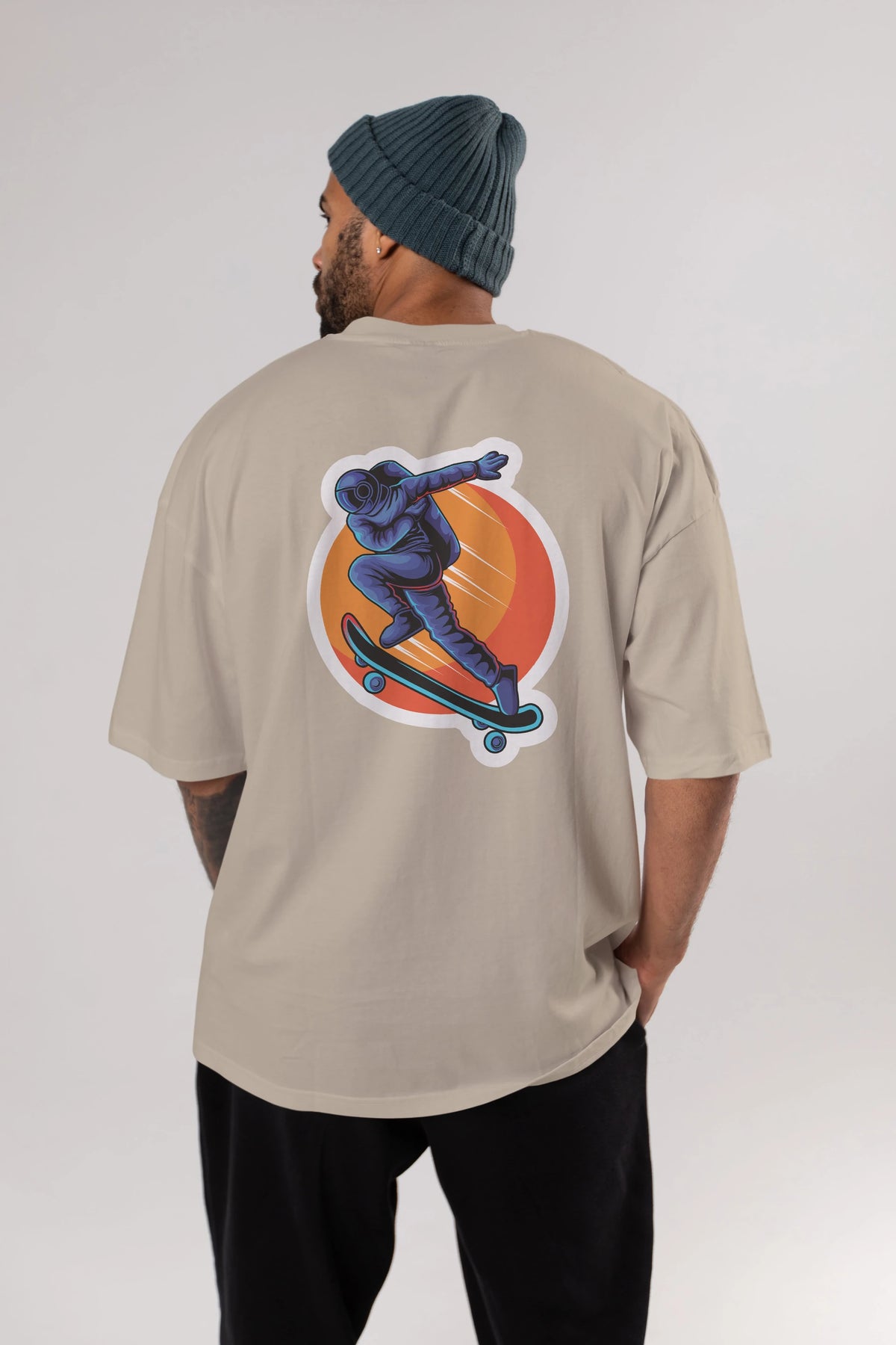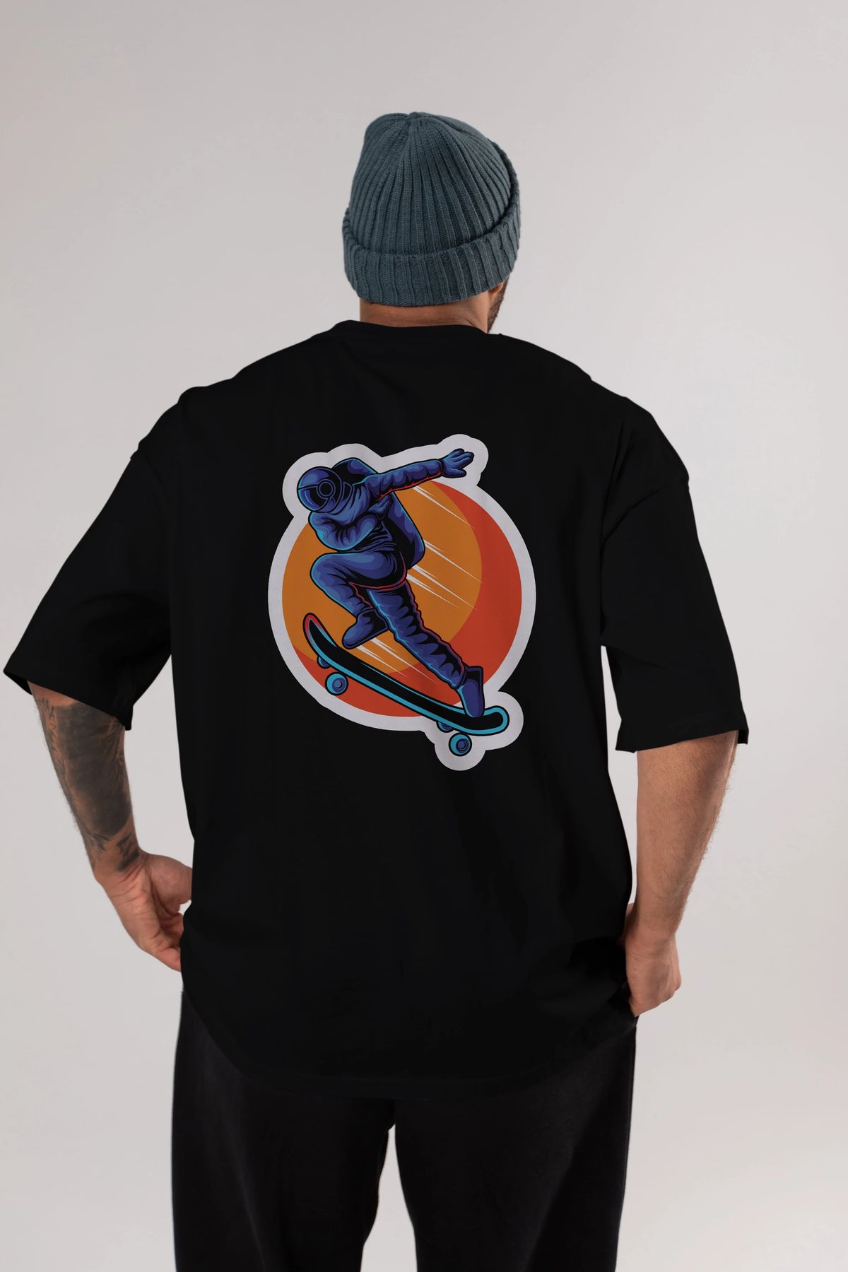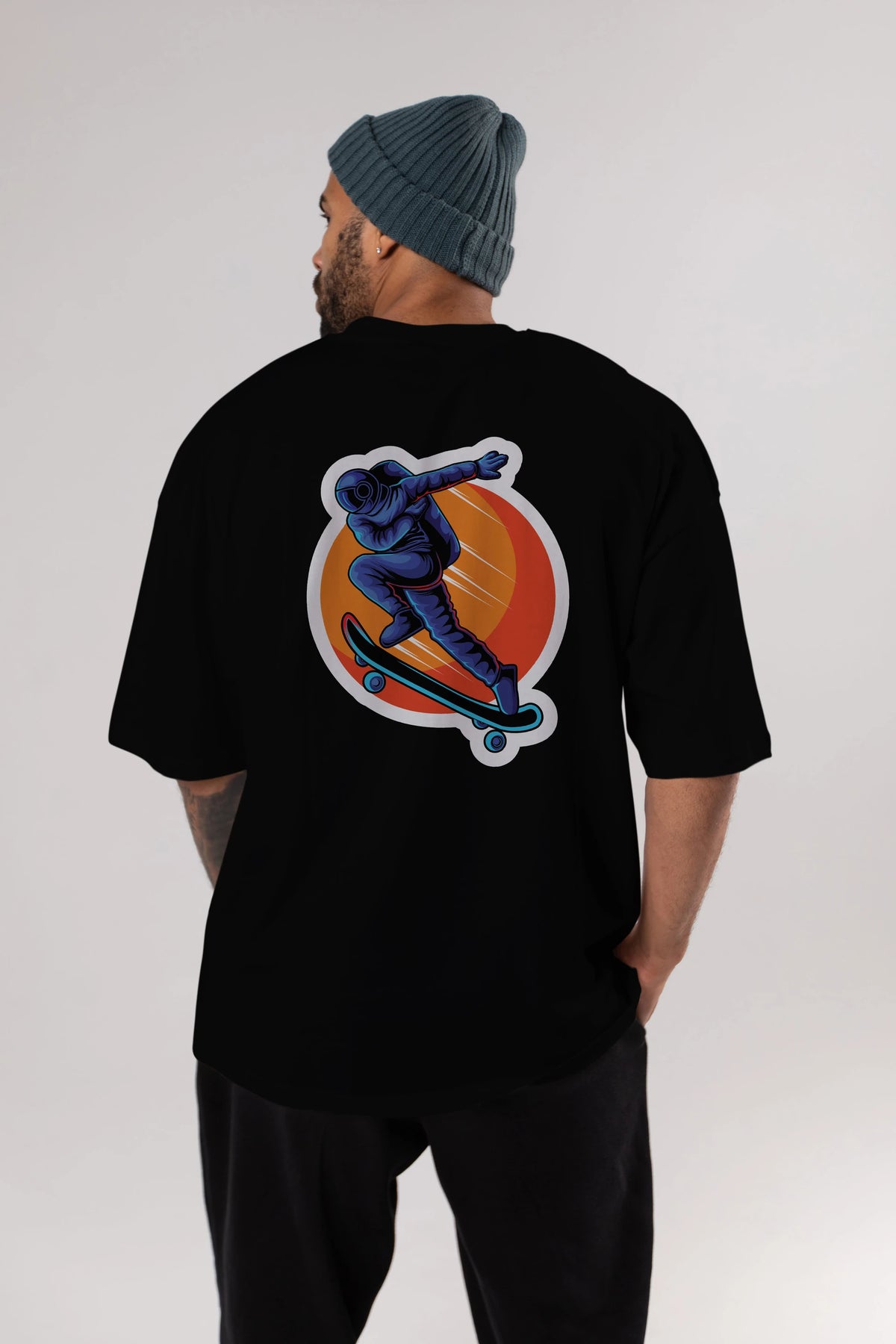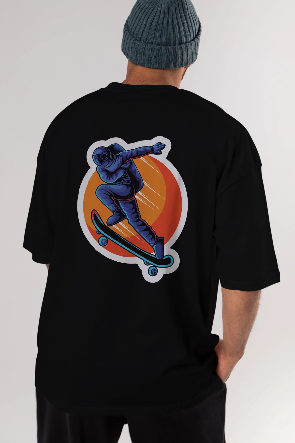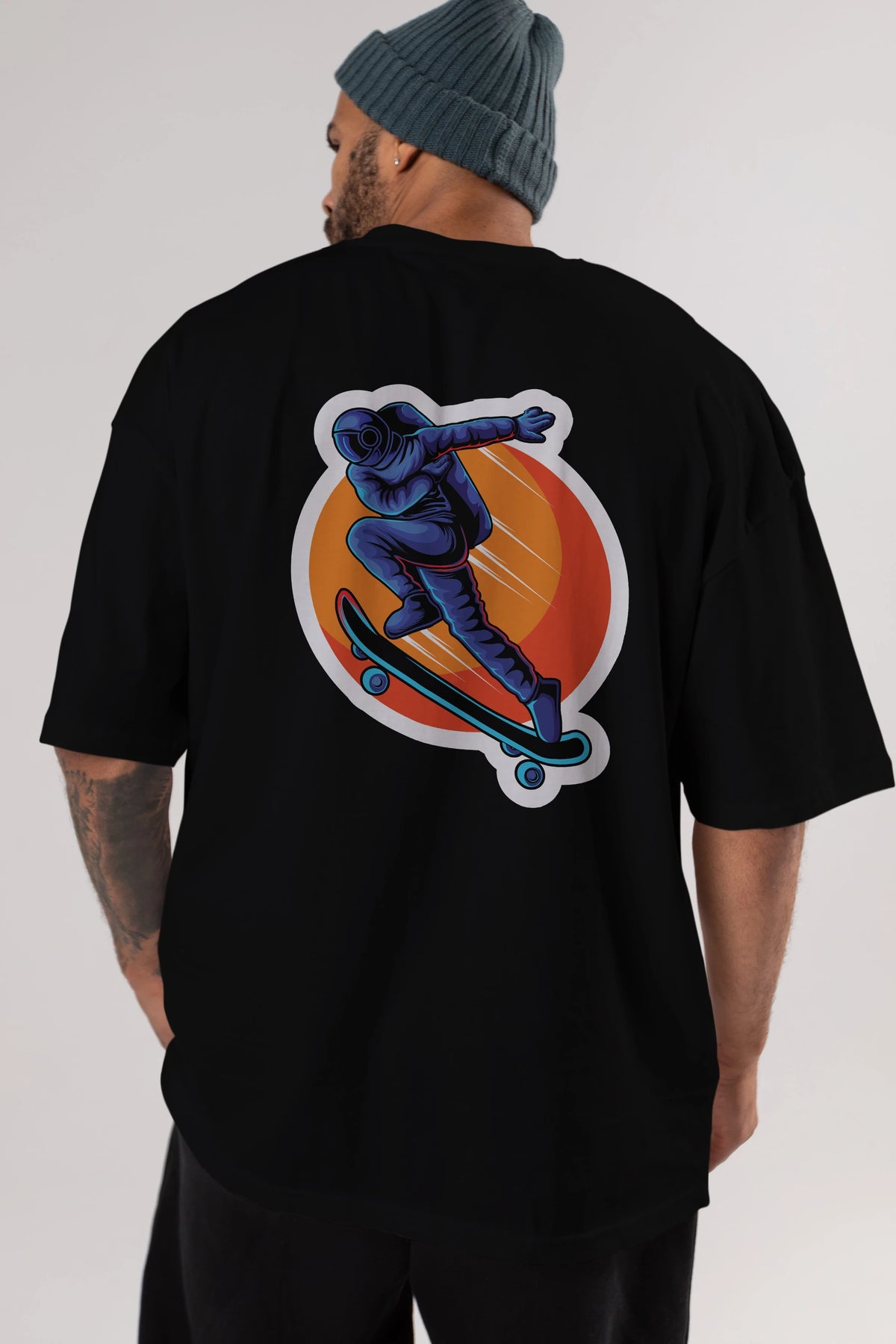 Astroskate Run Sticker Arka Baskılı Oversize t-shirt Erkek Kadın Unisex