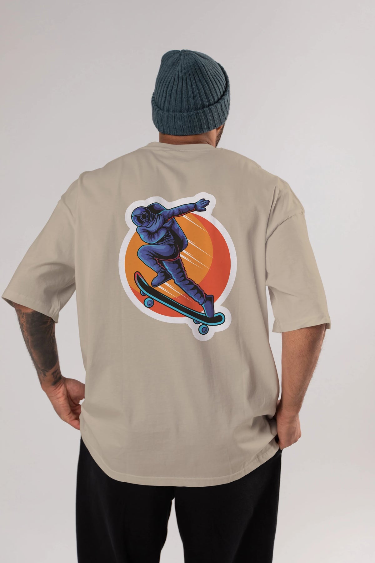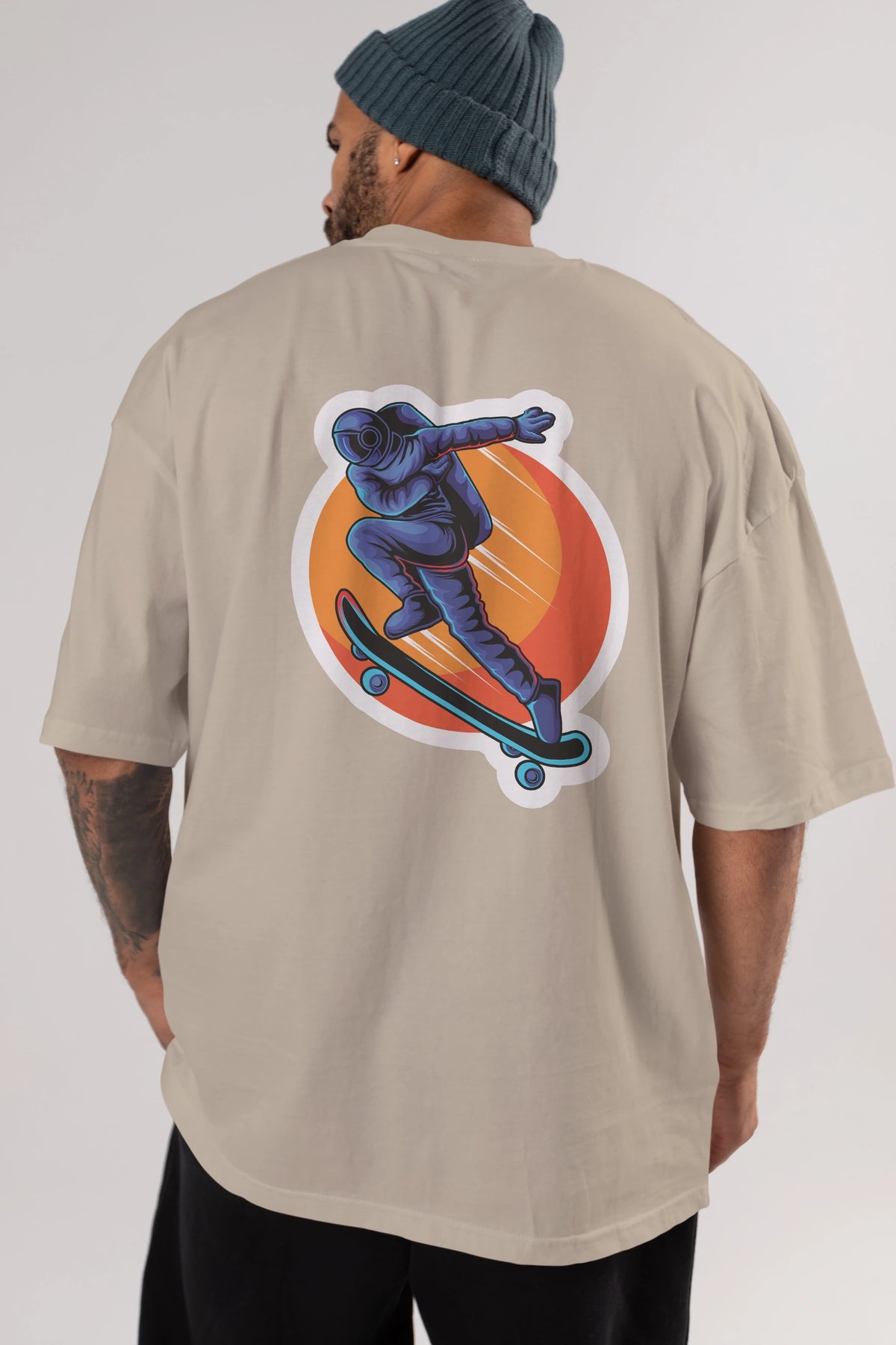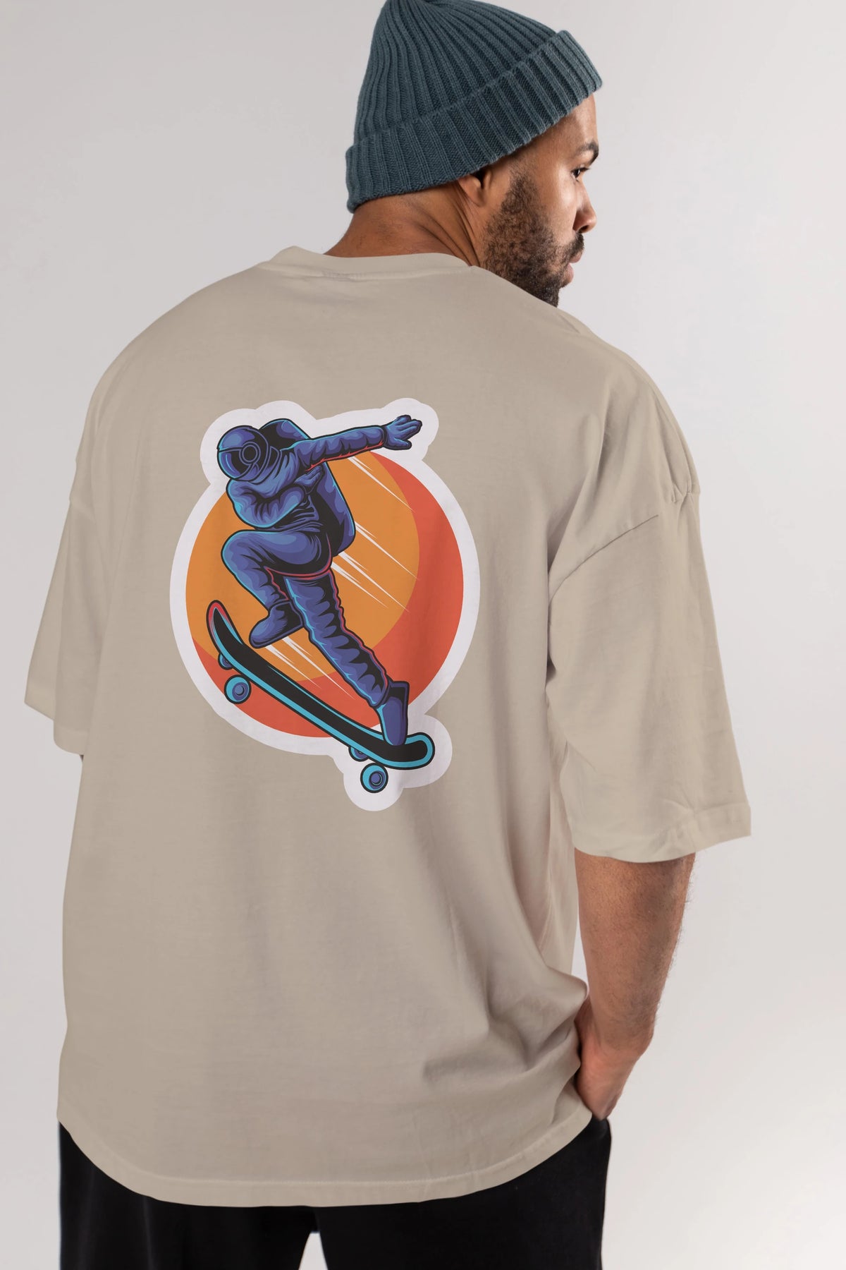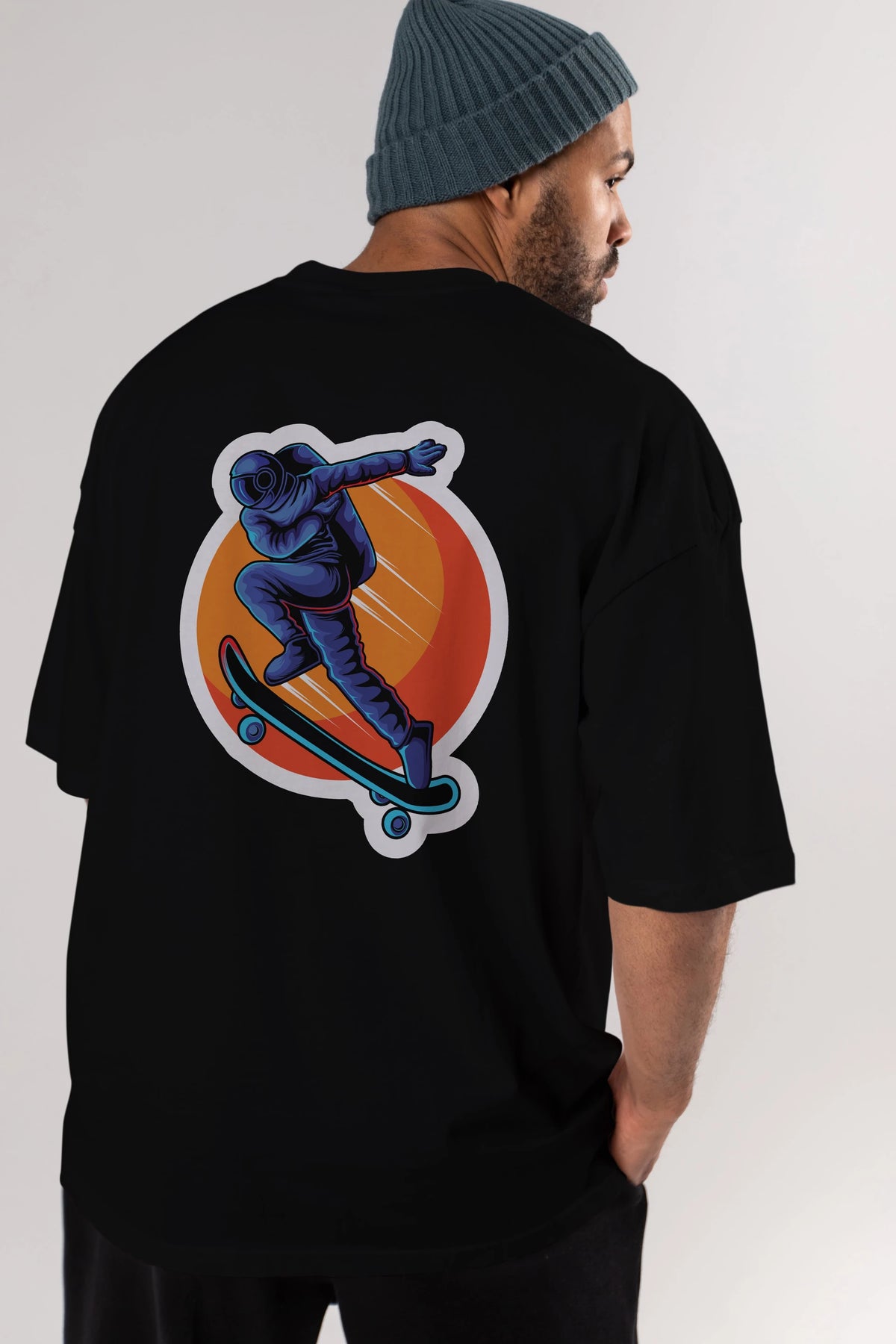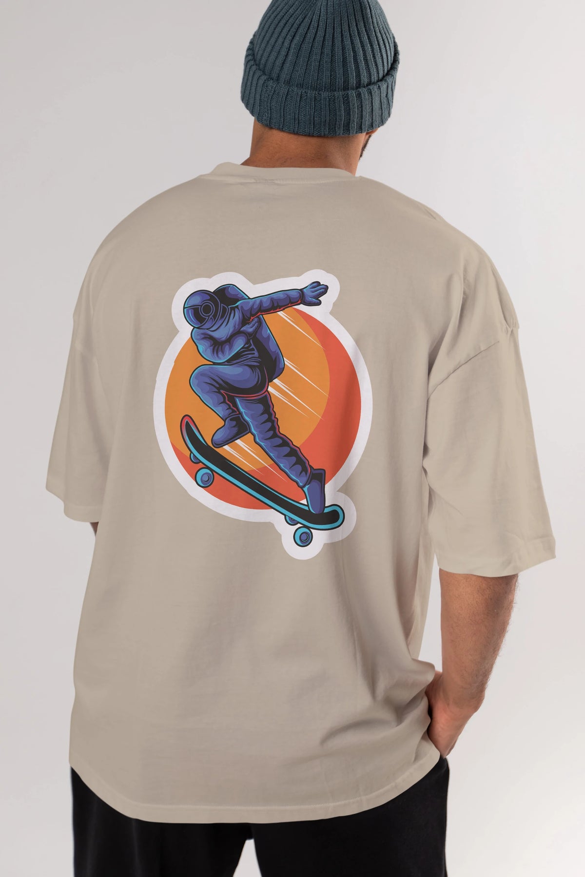 Astroskate Run Sticker Arka Baskılı Oversize t-shirt Erkek Kadın Unisex