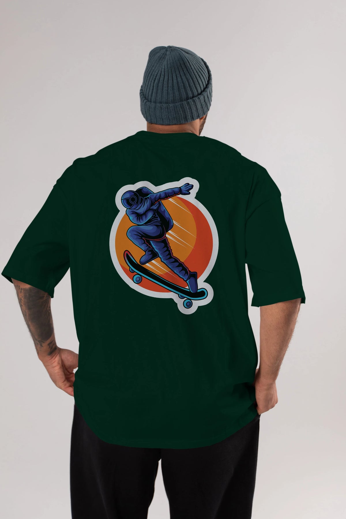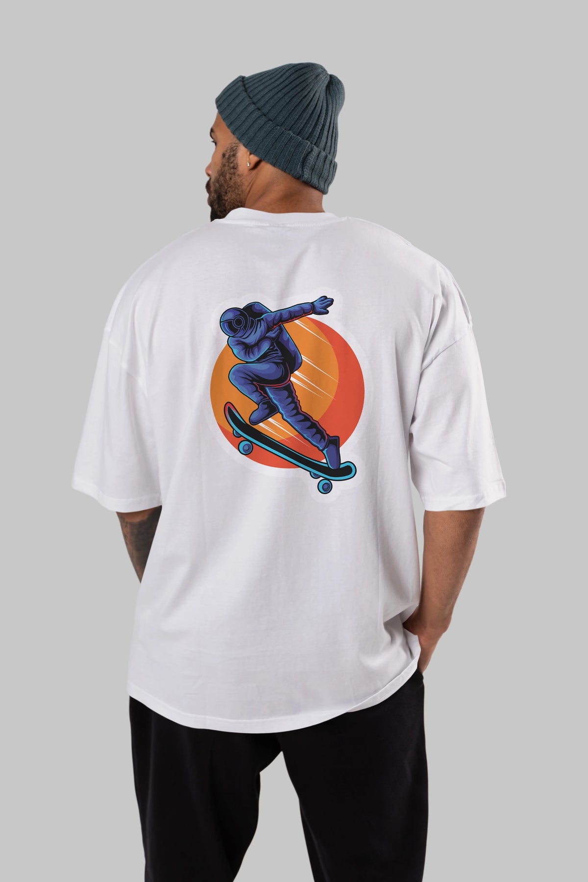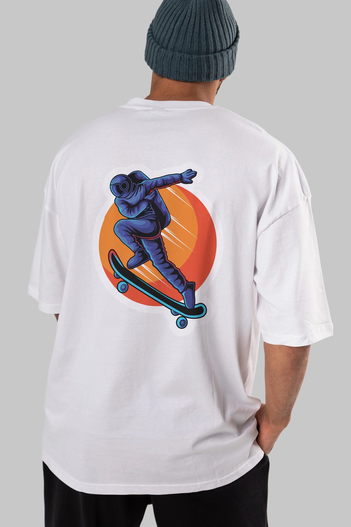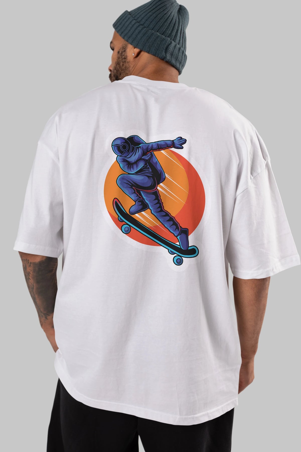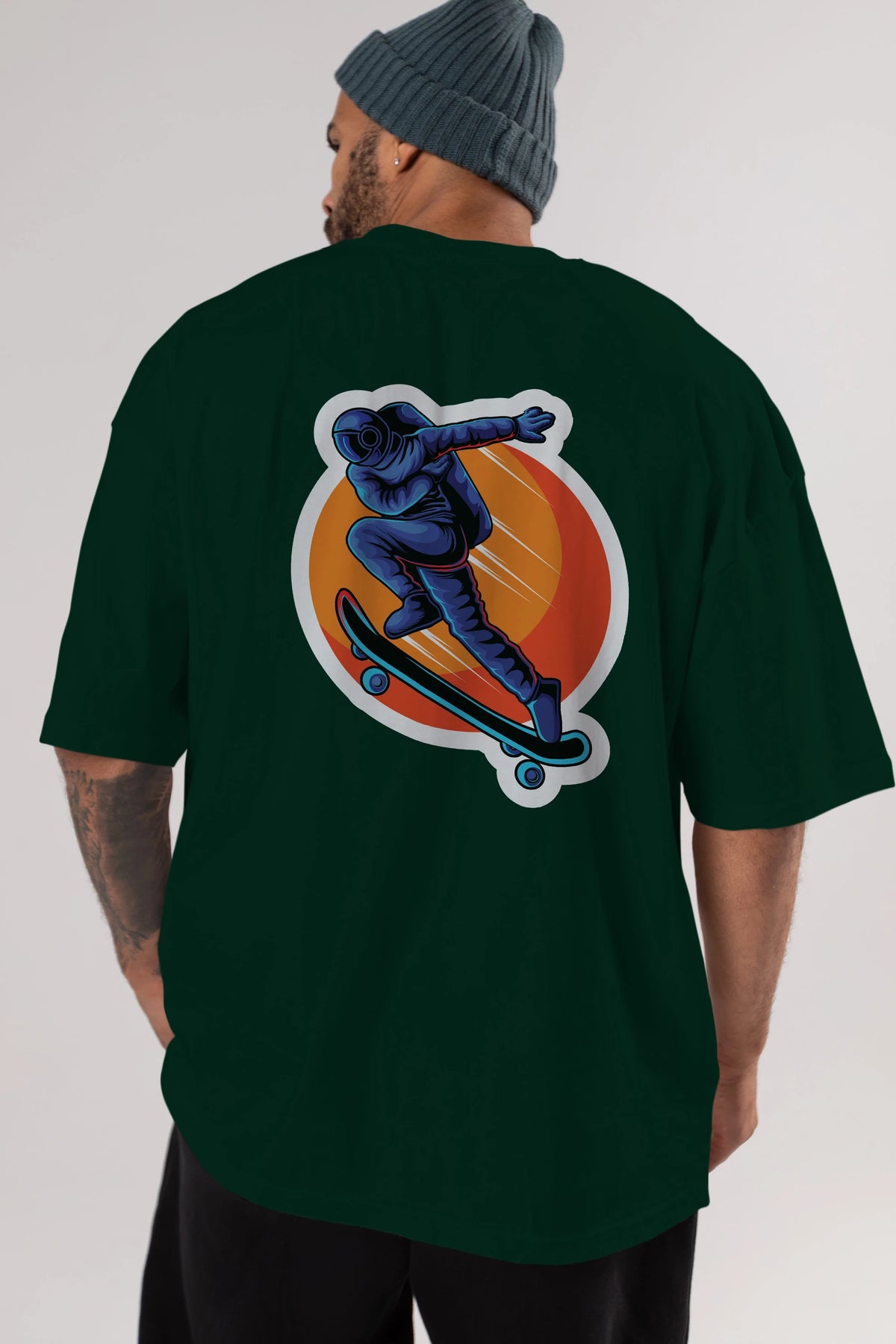 Astroskate Run Sticker Arka Baskılı Oversize t-shirt Erkek Kadın Unisex