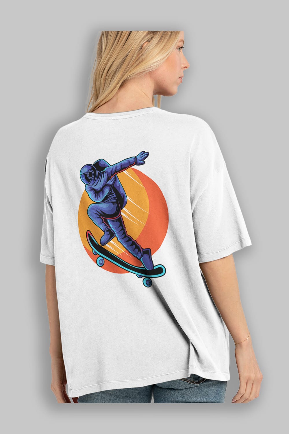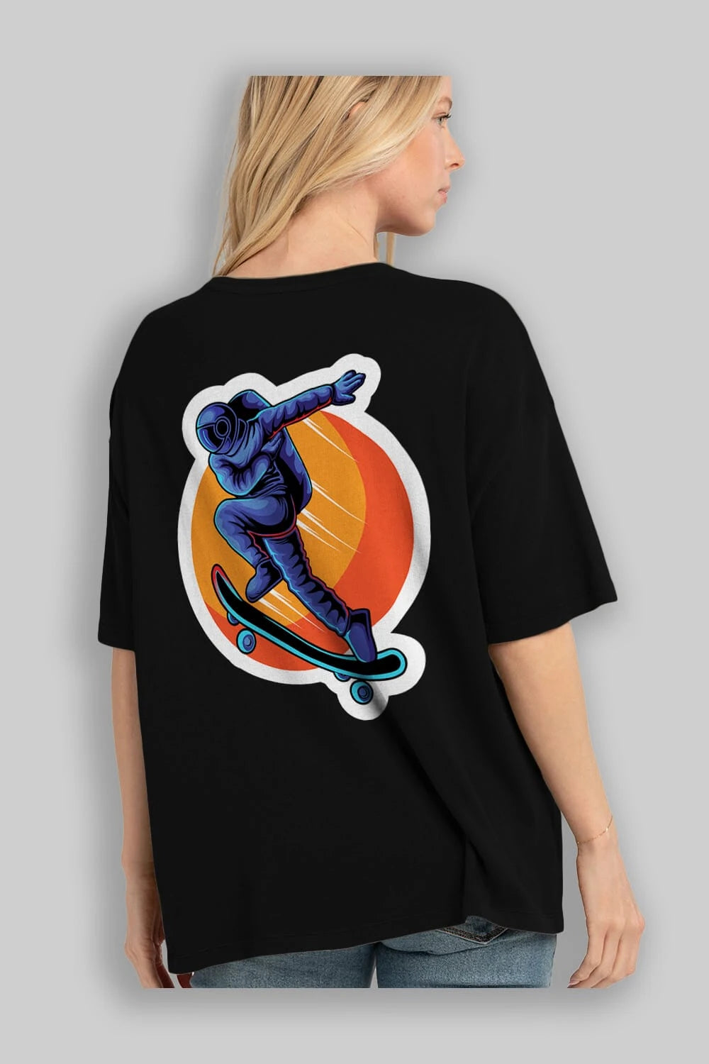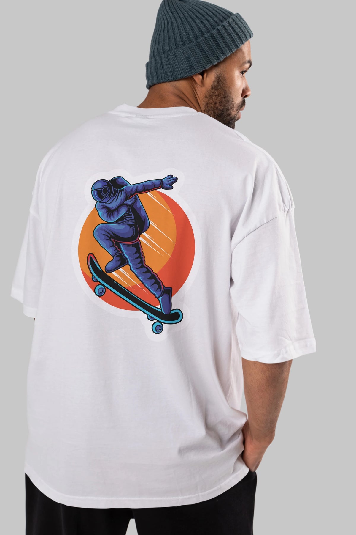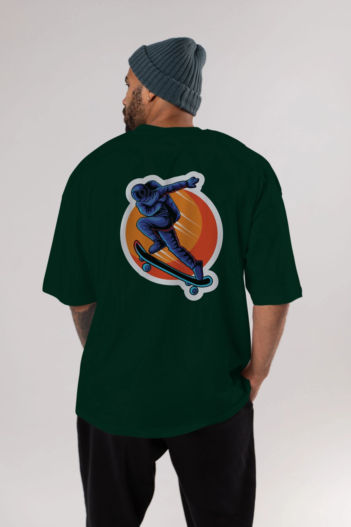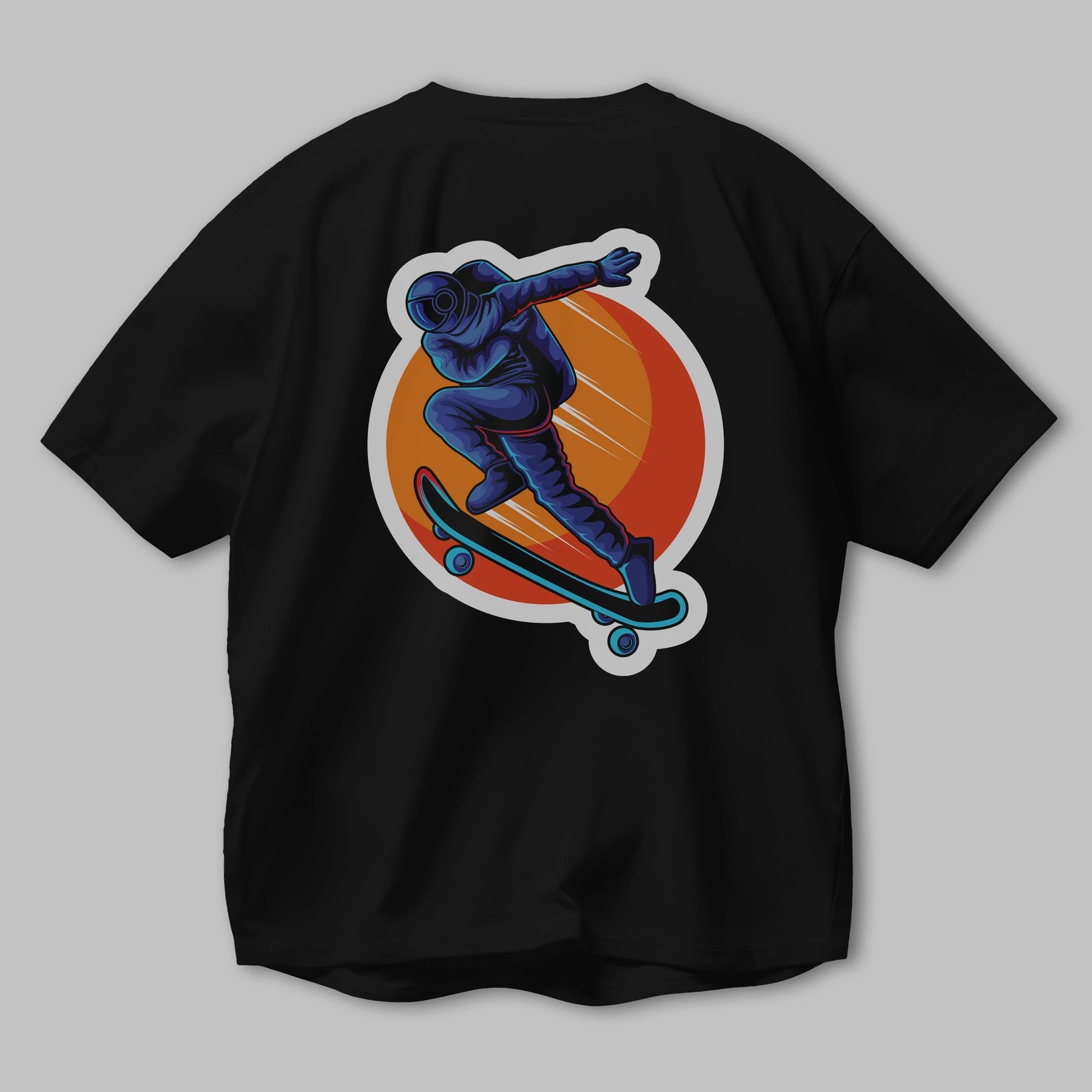 Astroskate Run Sticker Arka Baskılı Oversize t-shirt Erkek Kadın Unisex