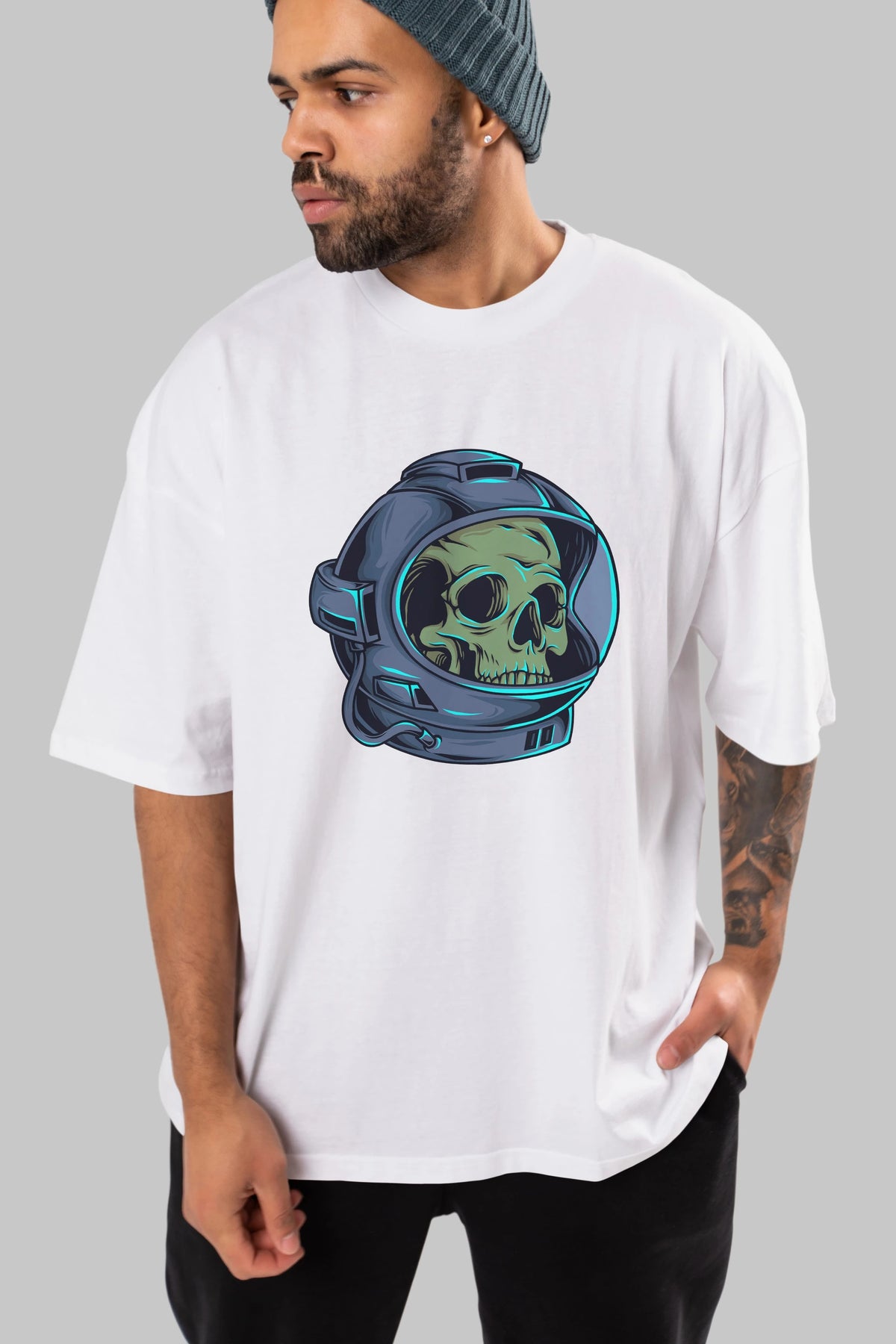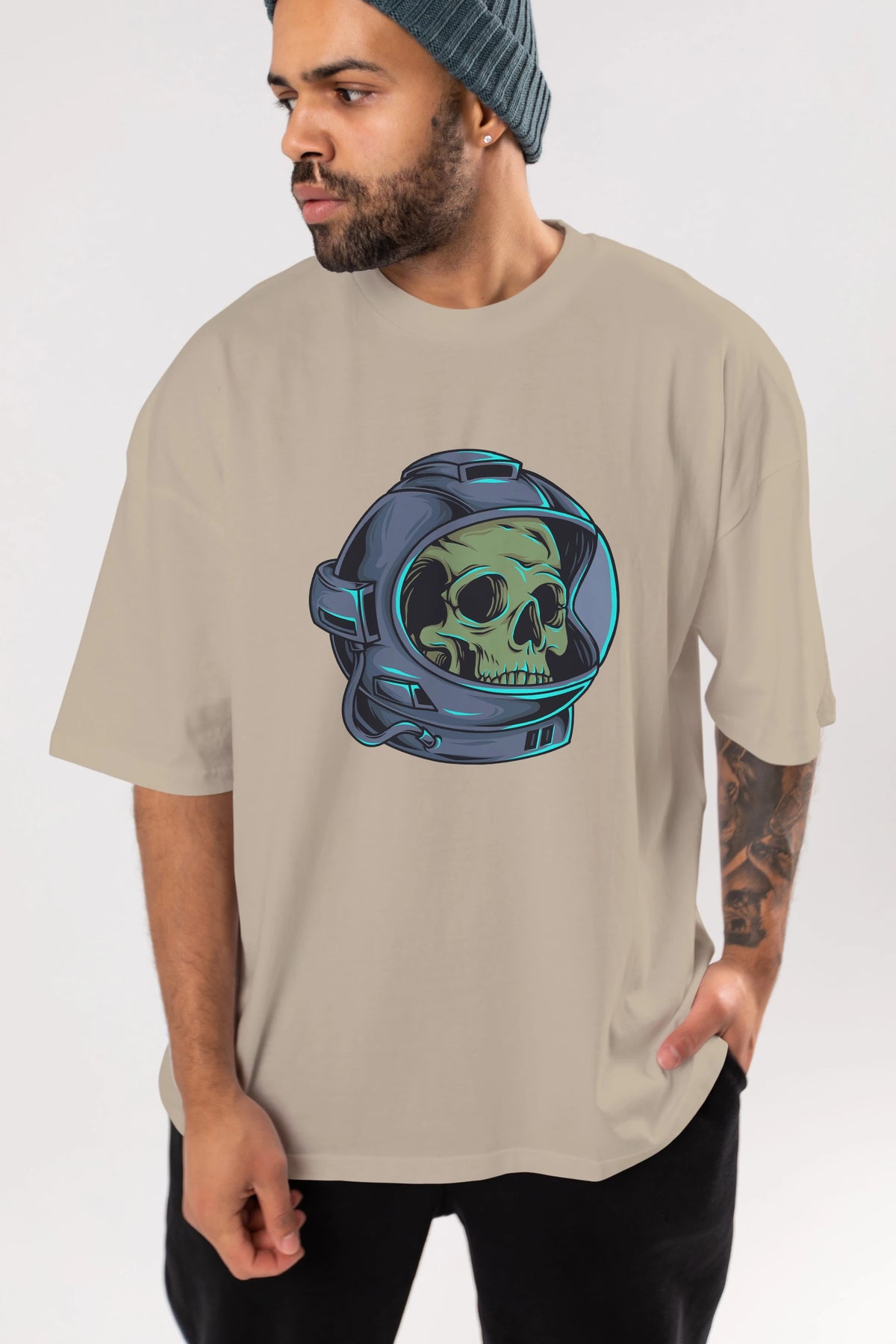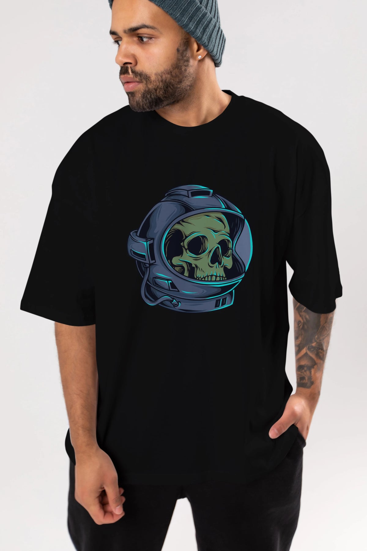 Astroskull Ön Baskılı Oversize t-shirt Erkek Kadın Unisex
