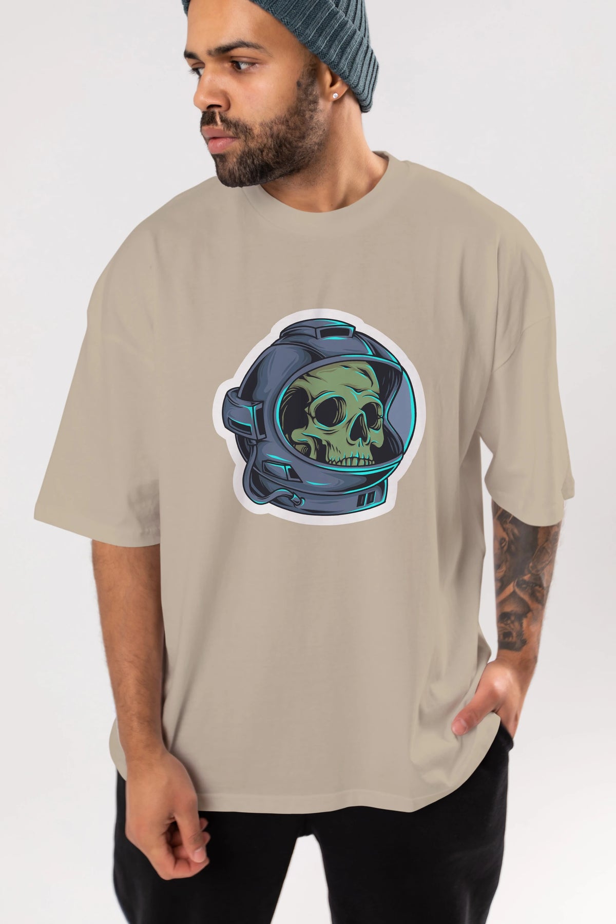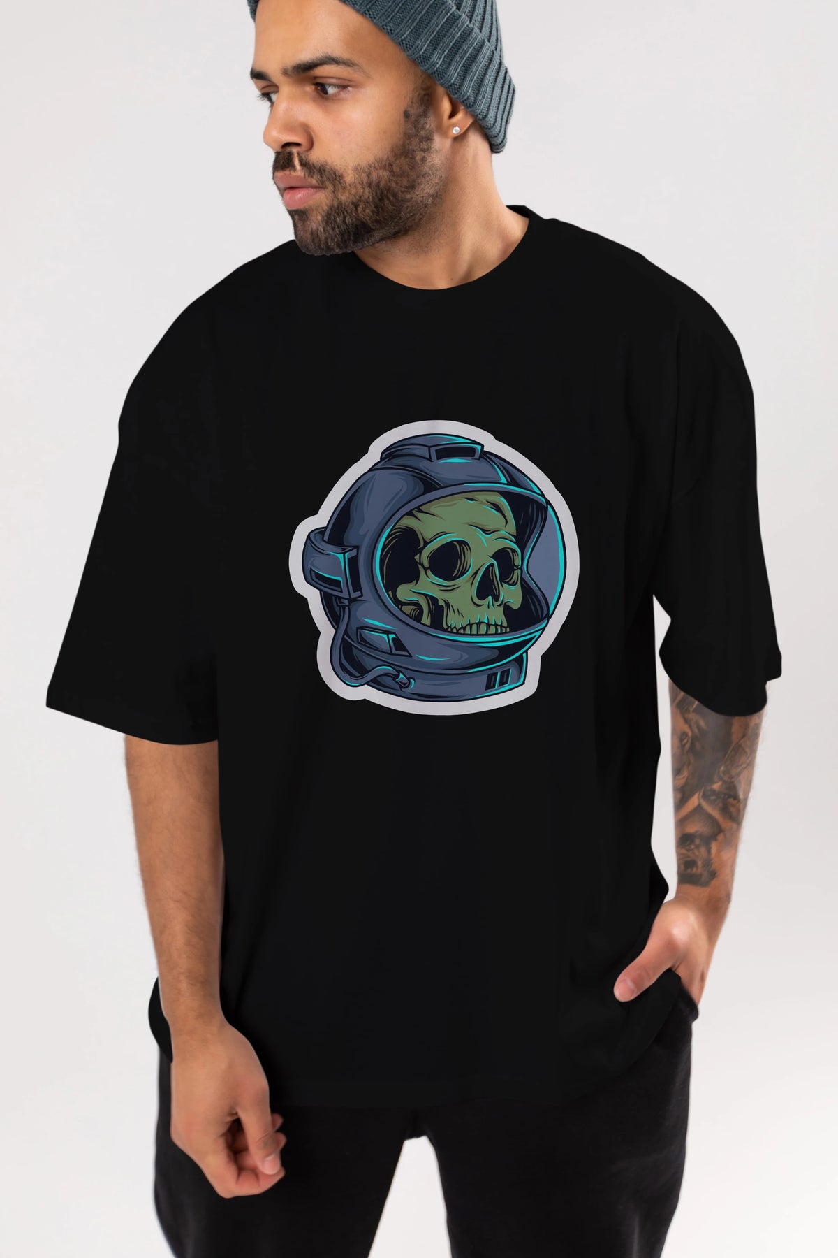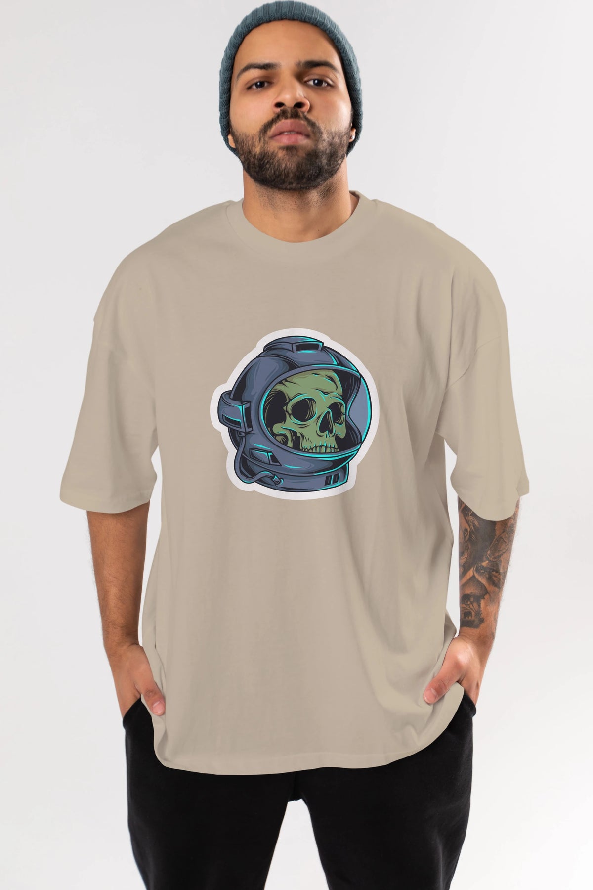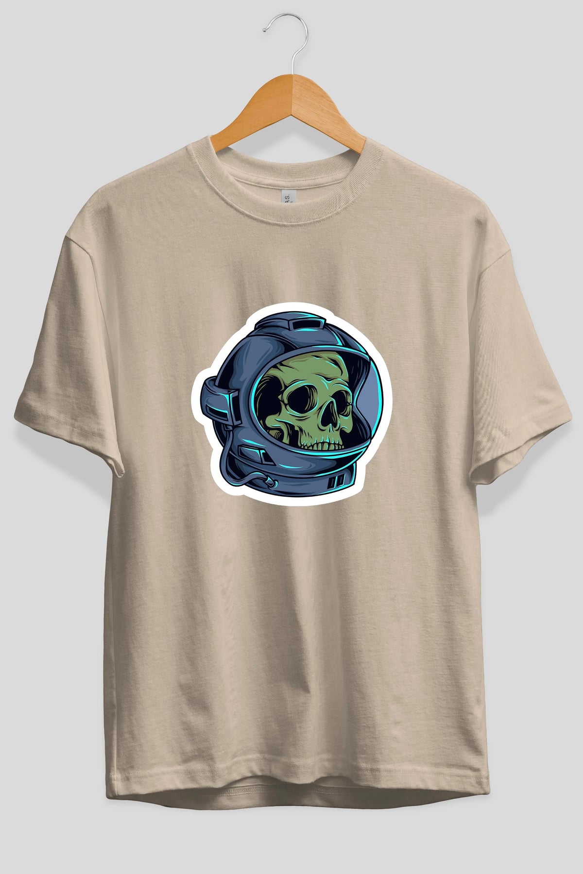 Astroskull Sticker Ön Baskılı Oversize t-shirt Erkek Kadın Unisex