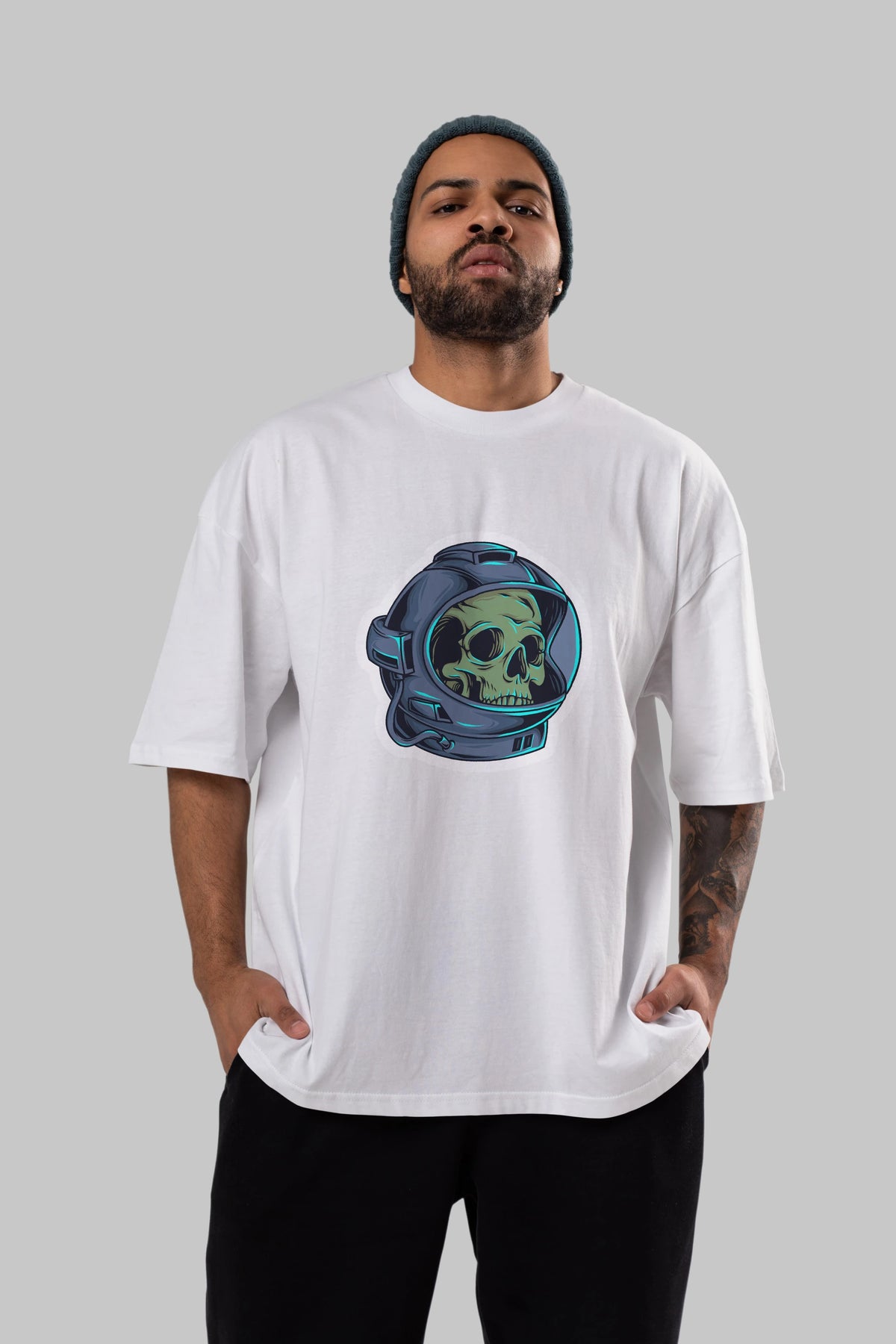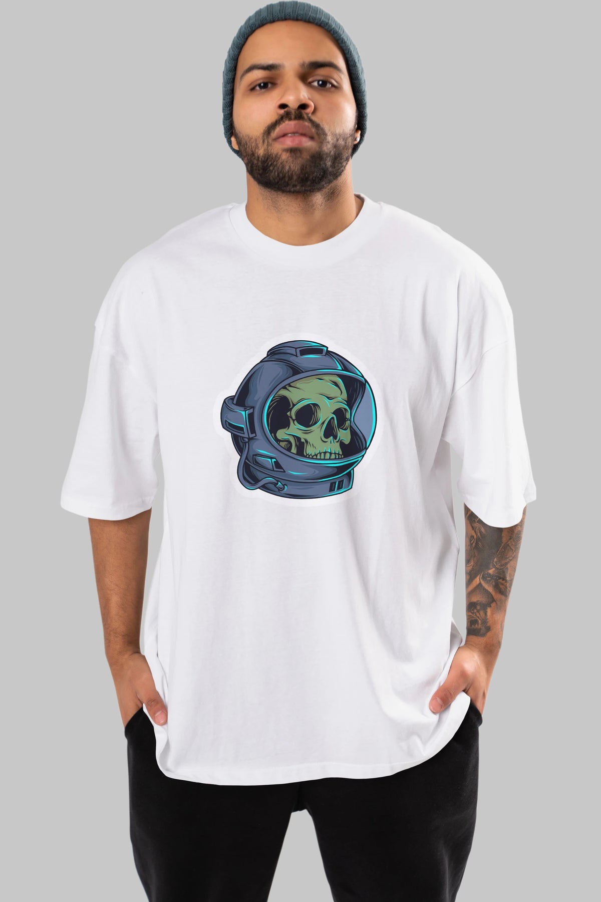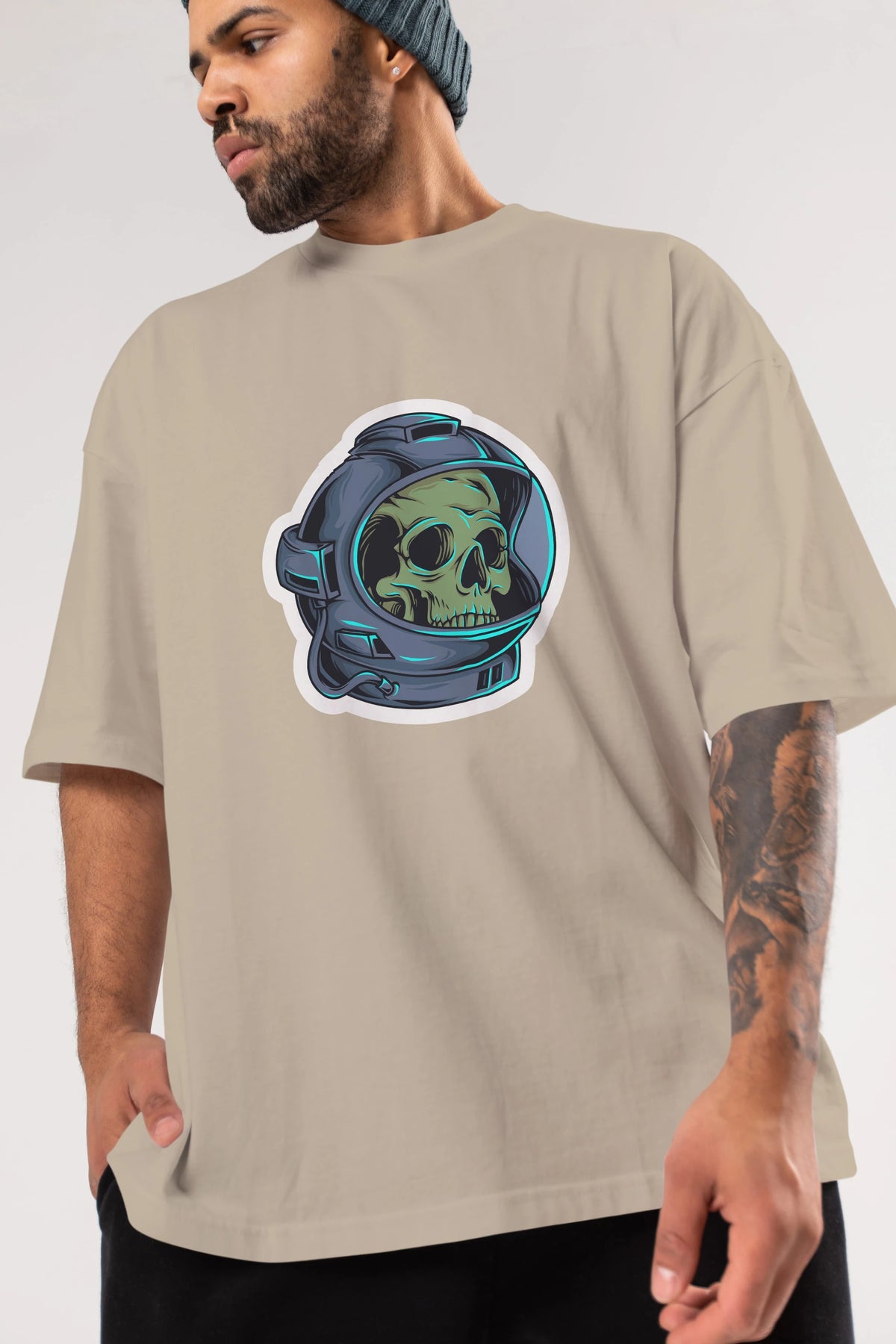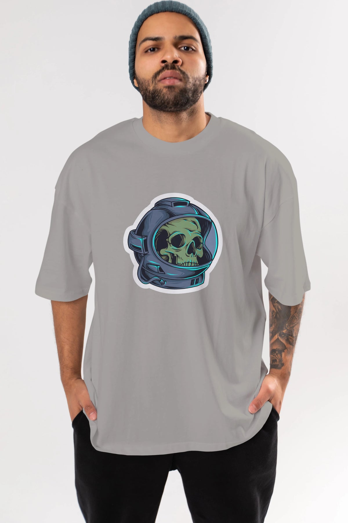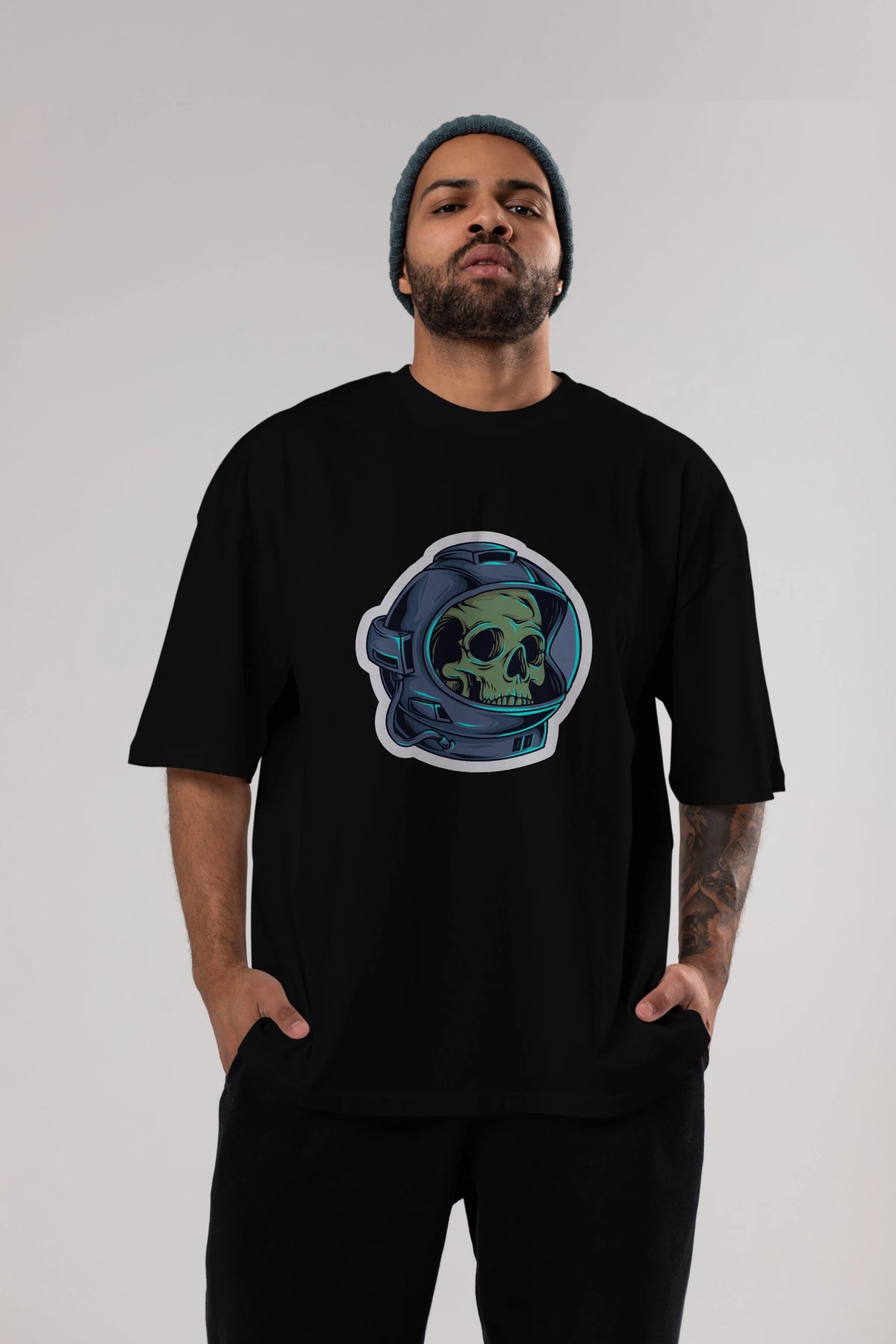 Astroskull Sticker Ön Baskılı Oversize t-shirt Erkek Kadın Unisex