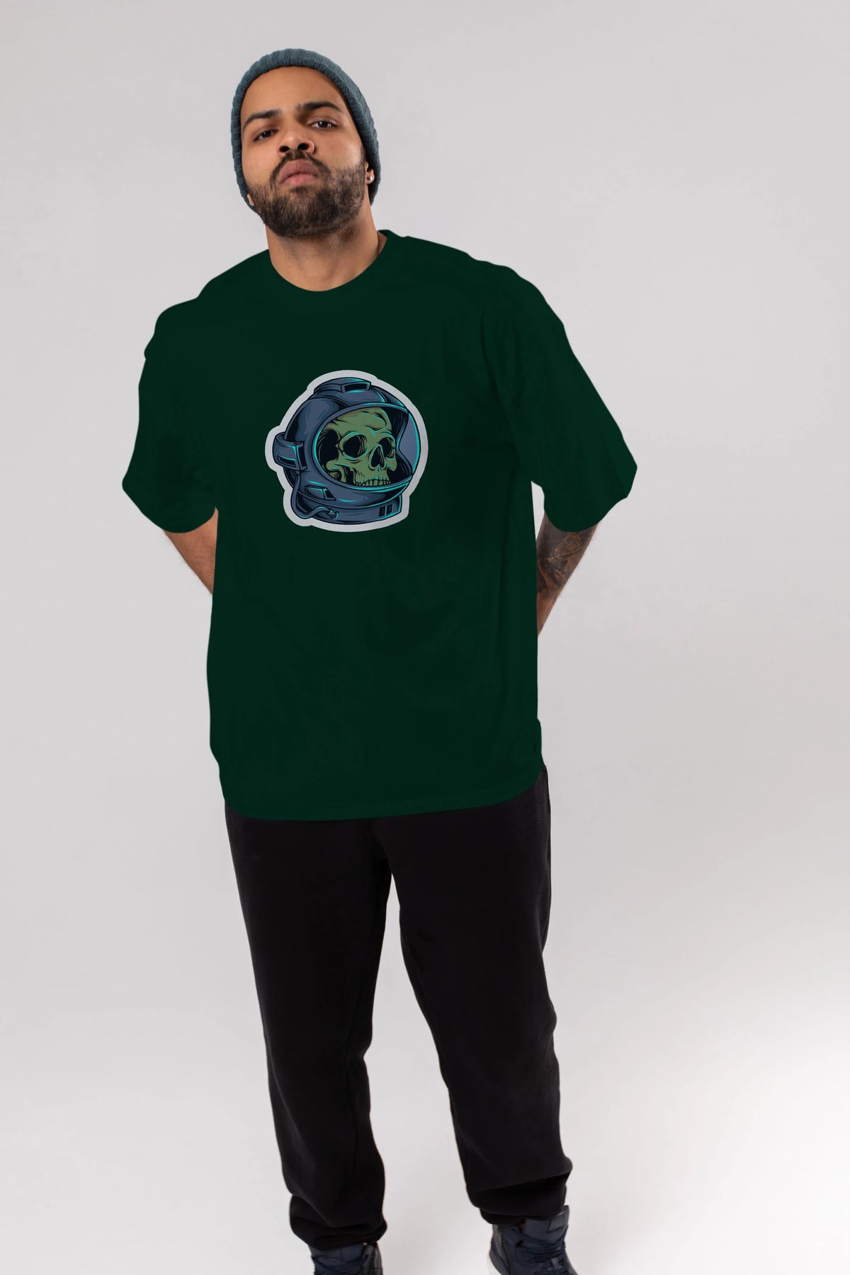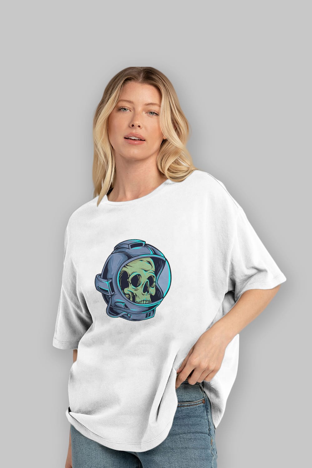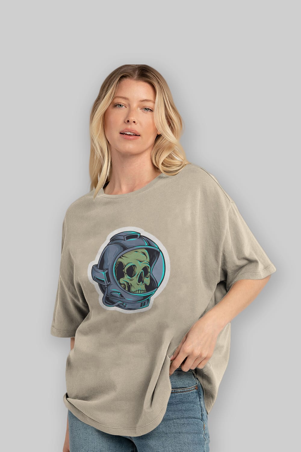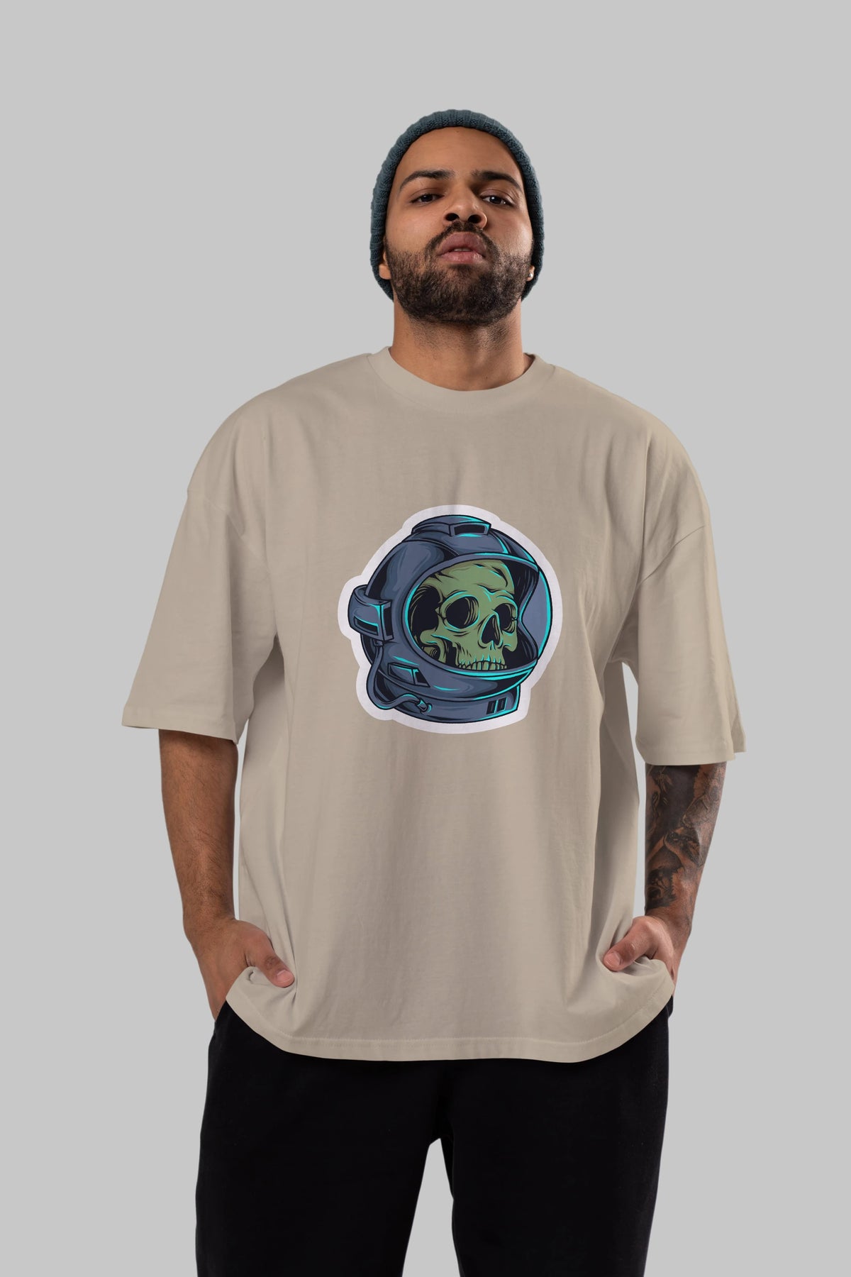 Astroskull Sticker Ön Baskılı Oversize t-shirt Erkek Kadın Unisex