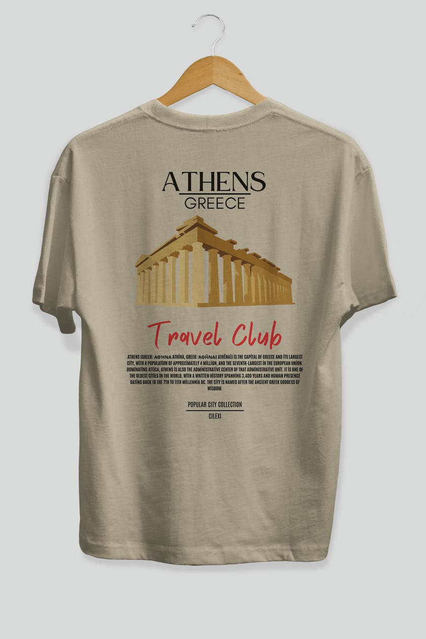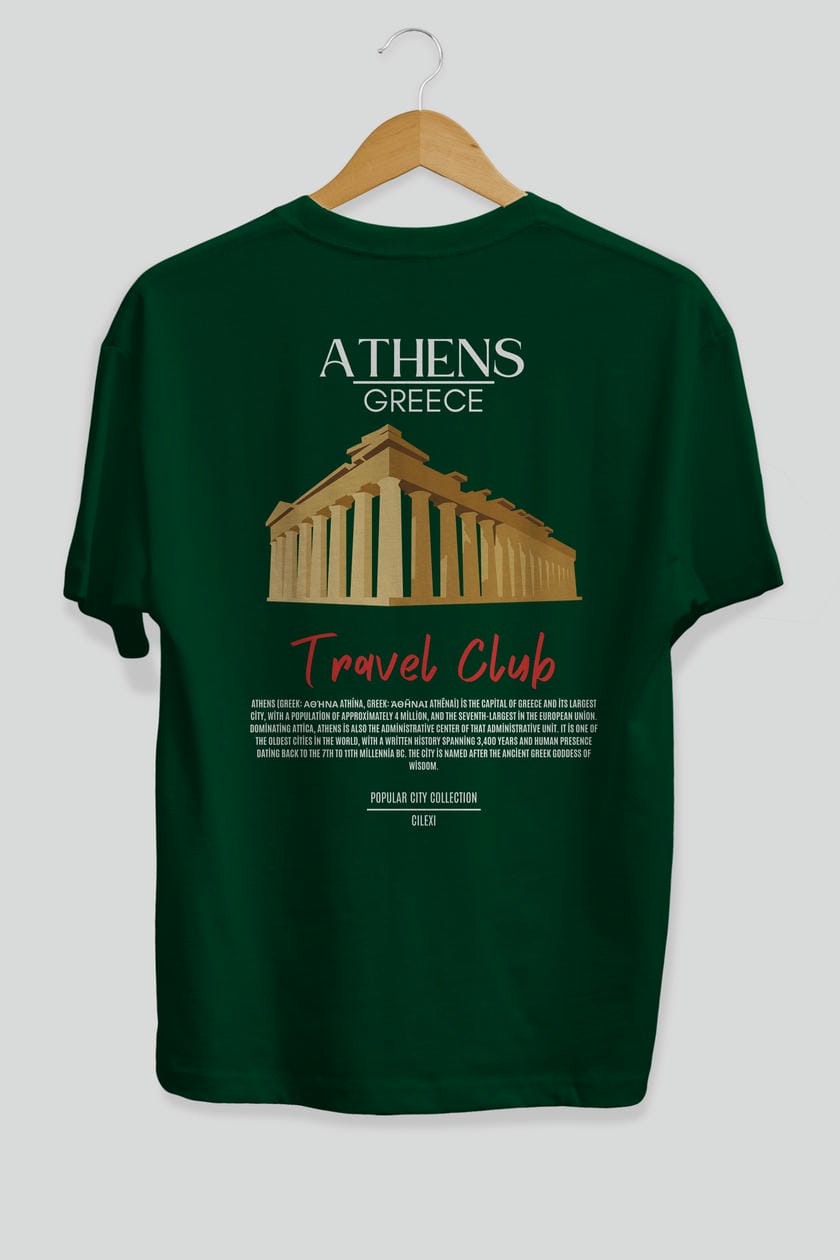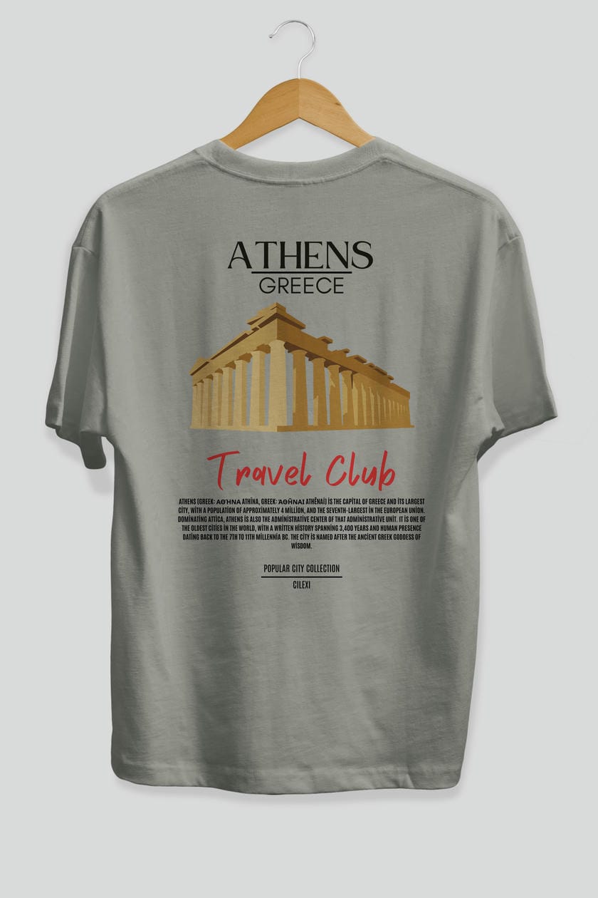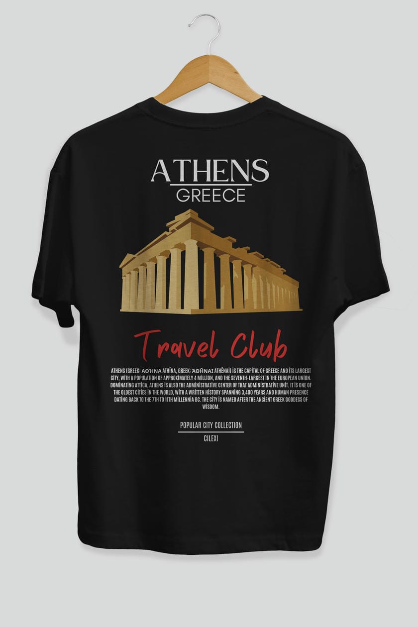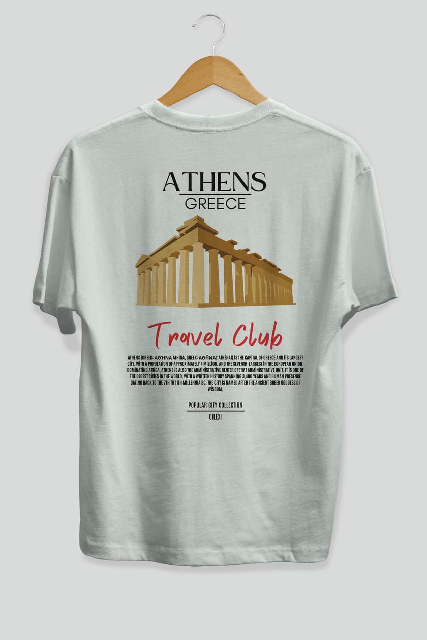 Athens Greece Arka Baskılı Oversize t-shirt Erkek Kadın Pamuk Bisiklet Yaka tişort