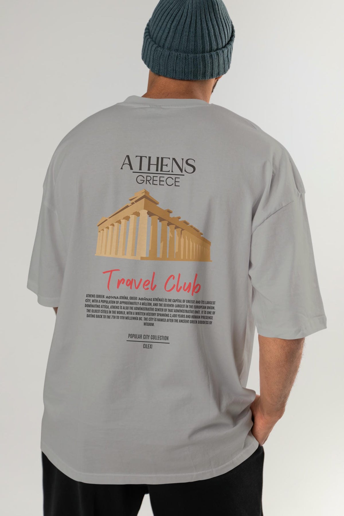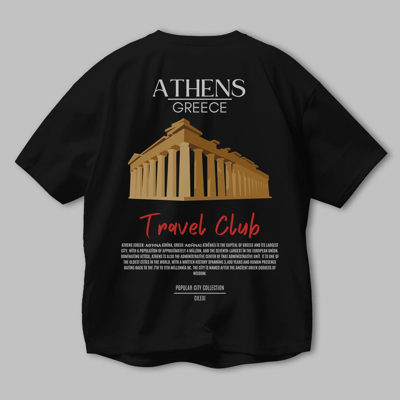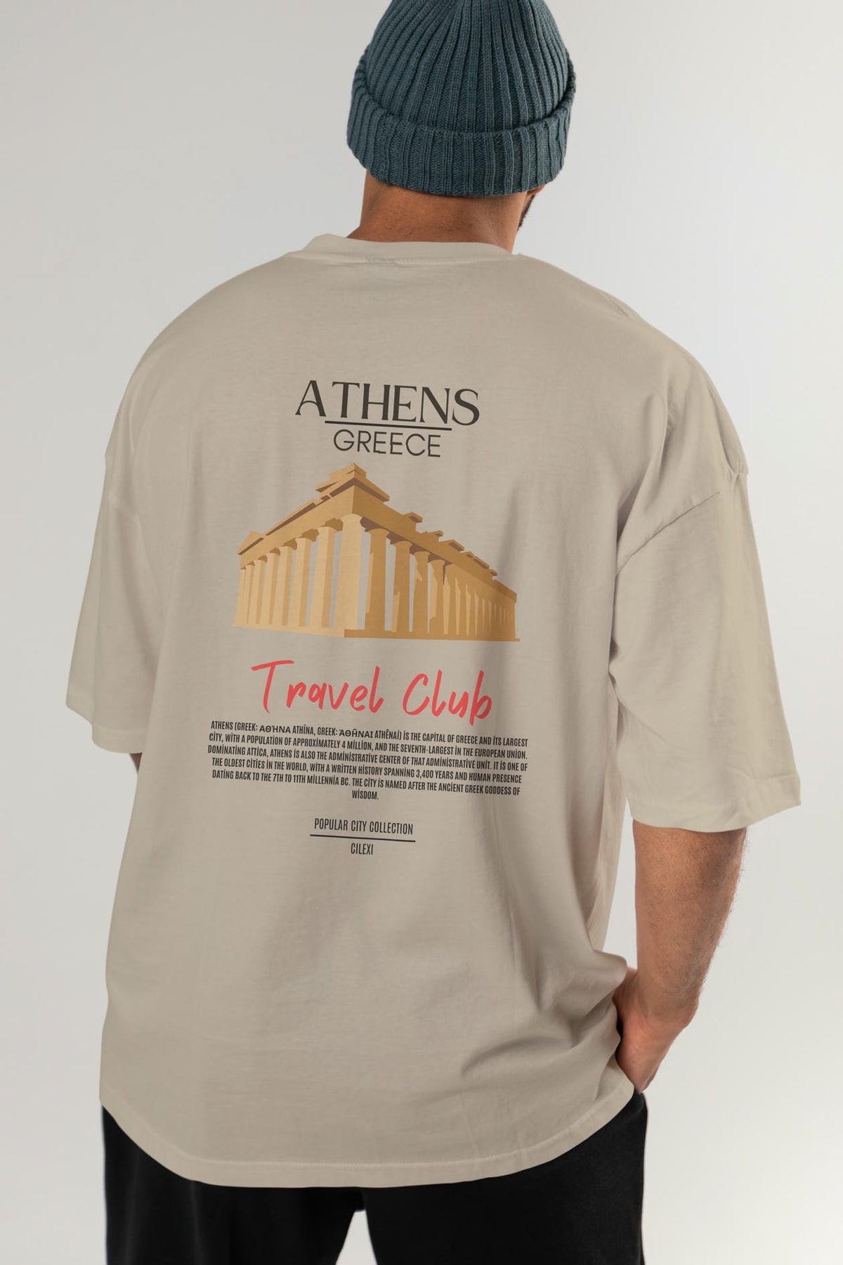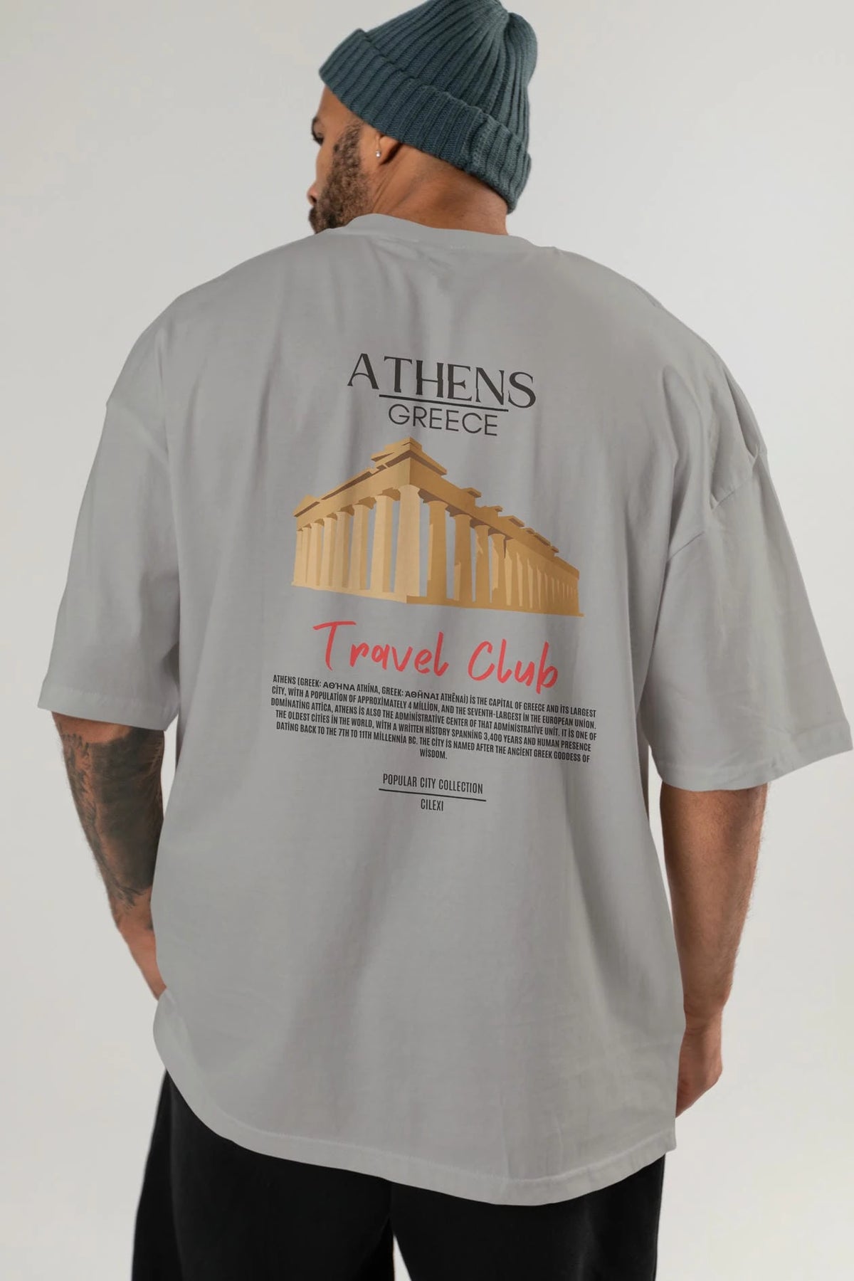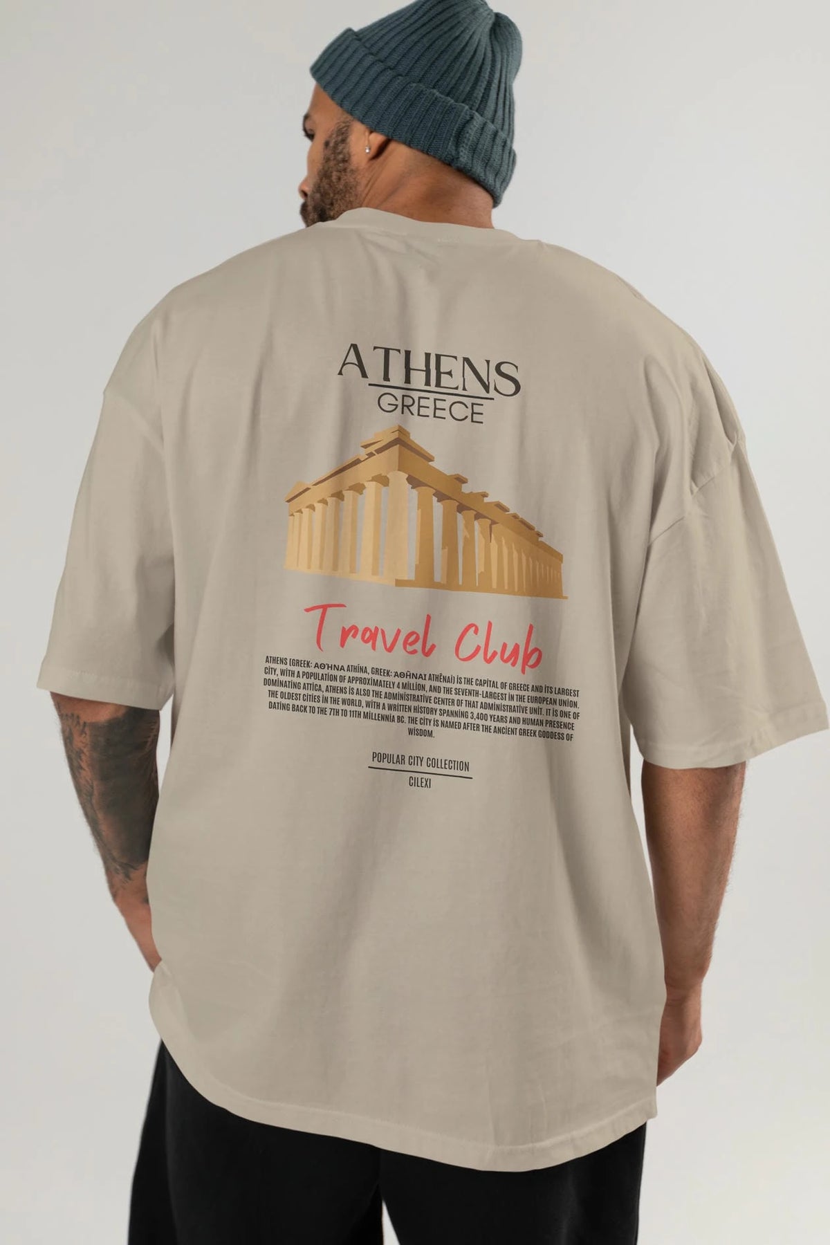 Athens Greece Arka Baskılı Oversize t-shirt Erkek Kadın Pamuk Bisiklet Yaka tişort
