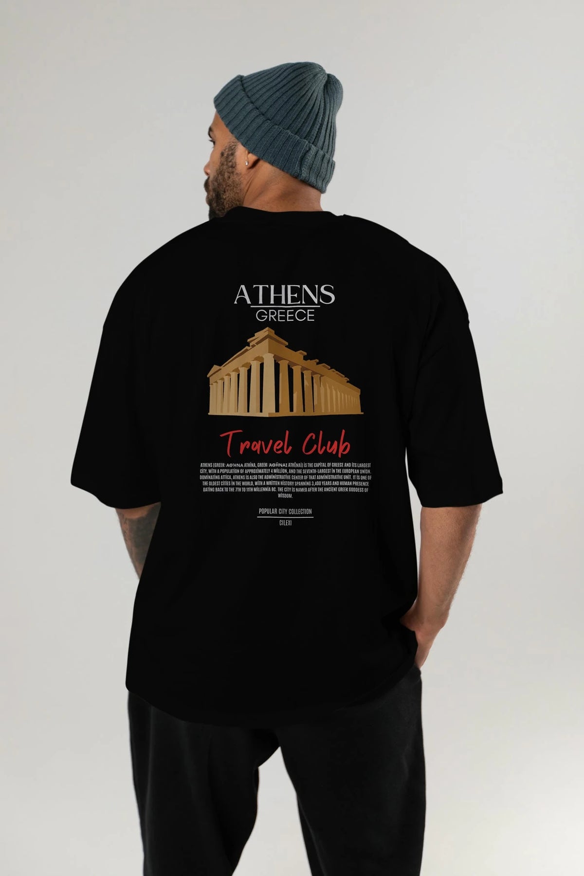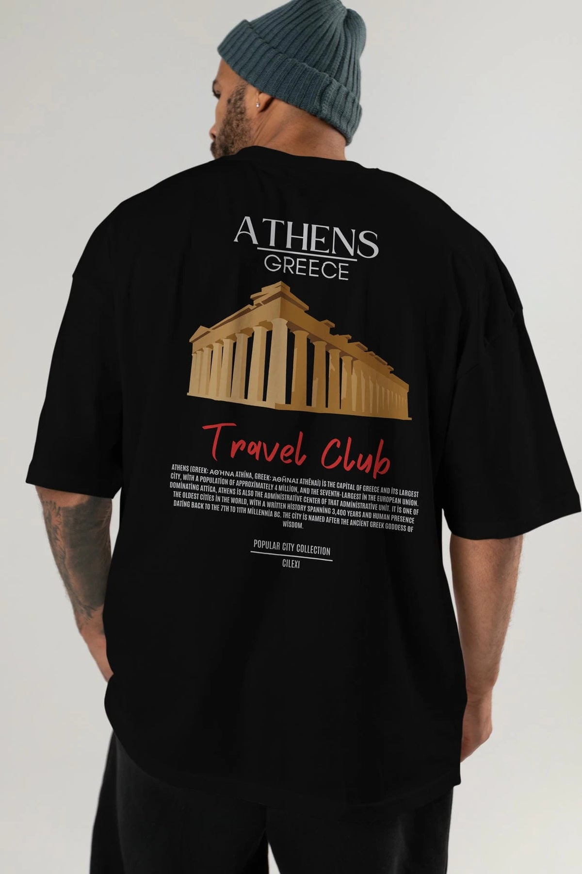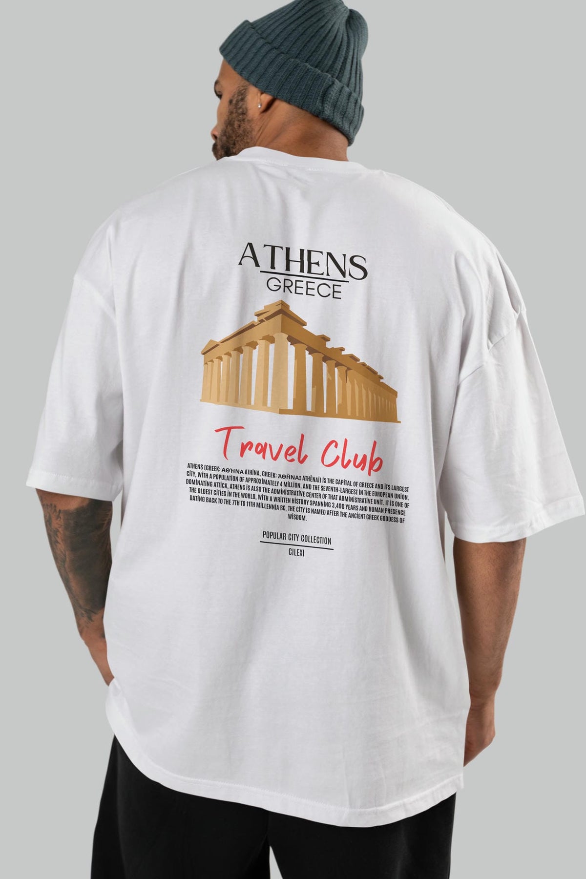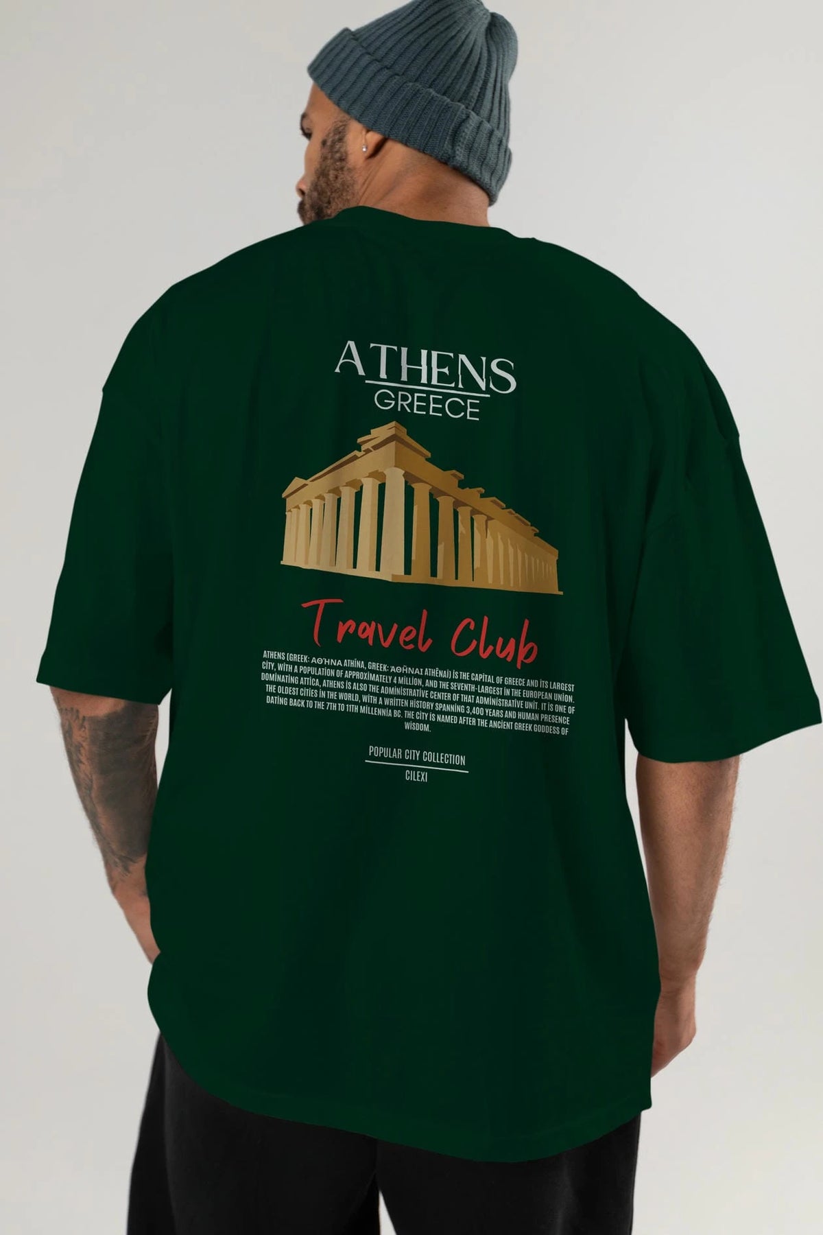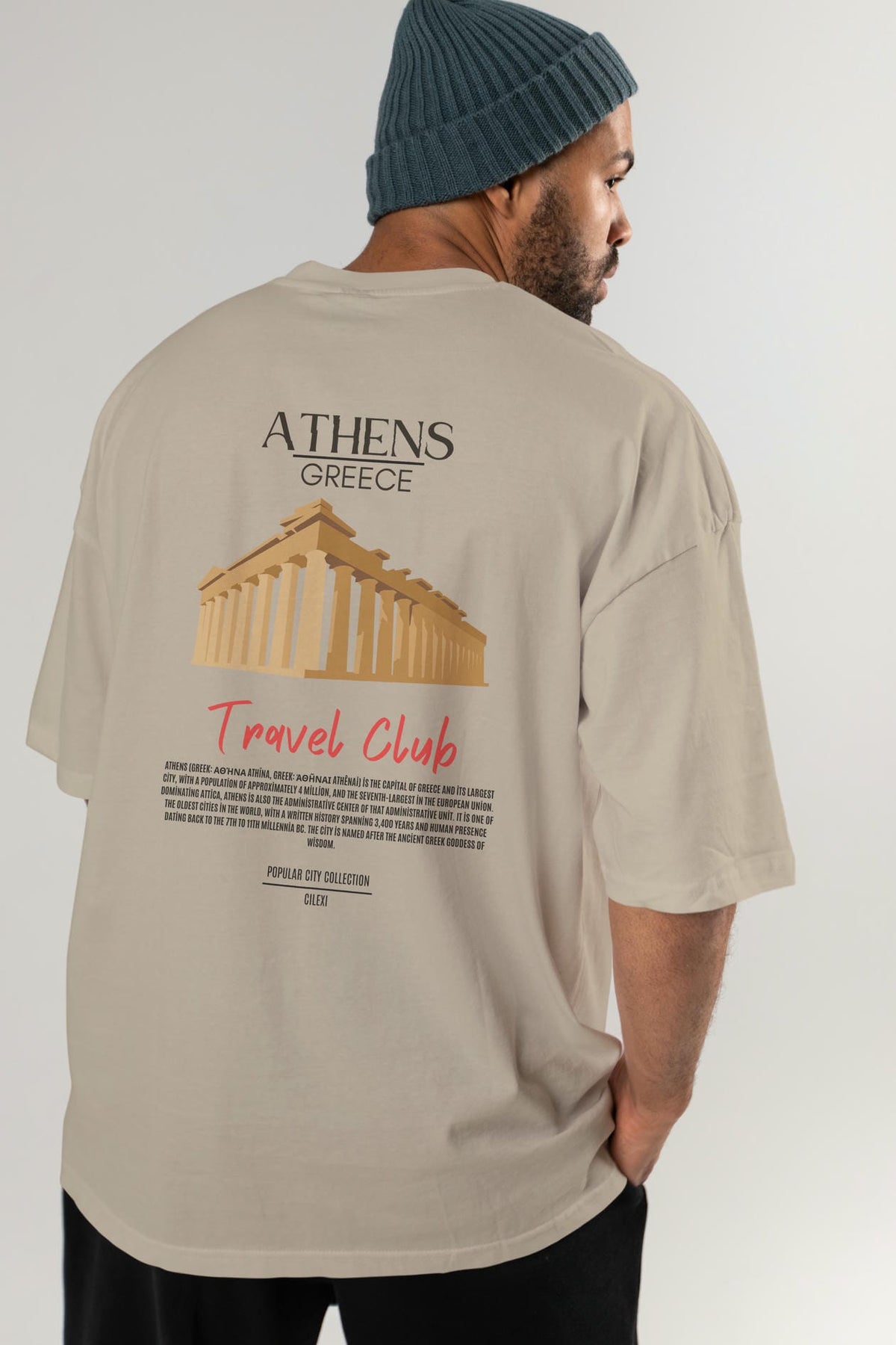 Athens Greece Arka Baskılı Oversize t-shirt Erkek Kadın Pamuk Bisiklet Yaka tişort