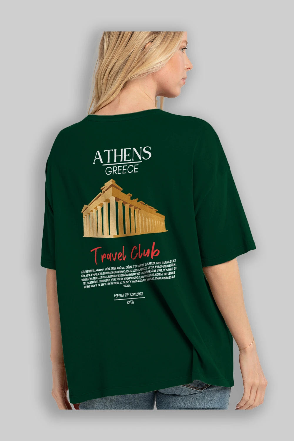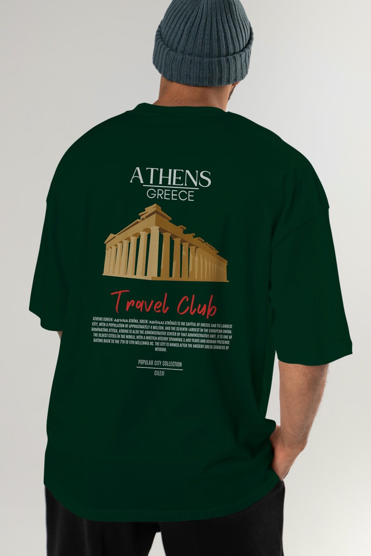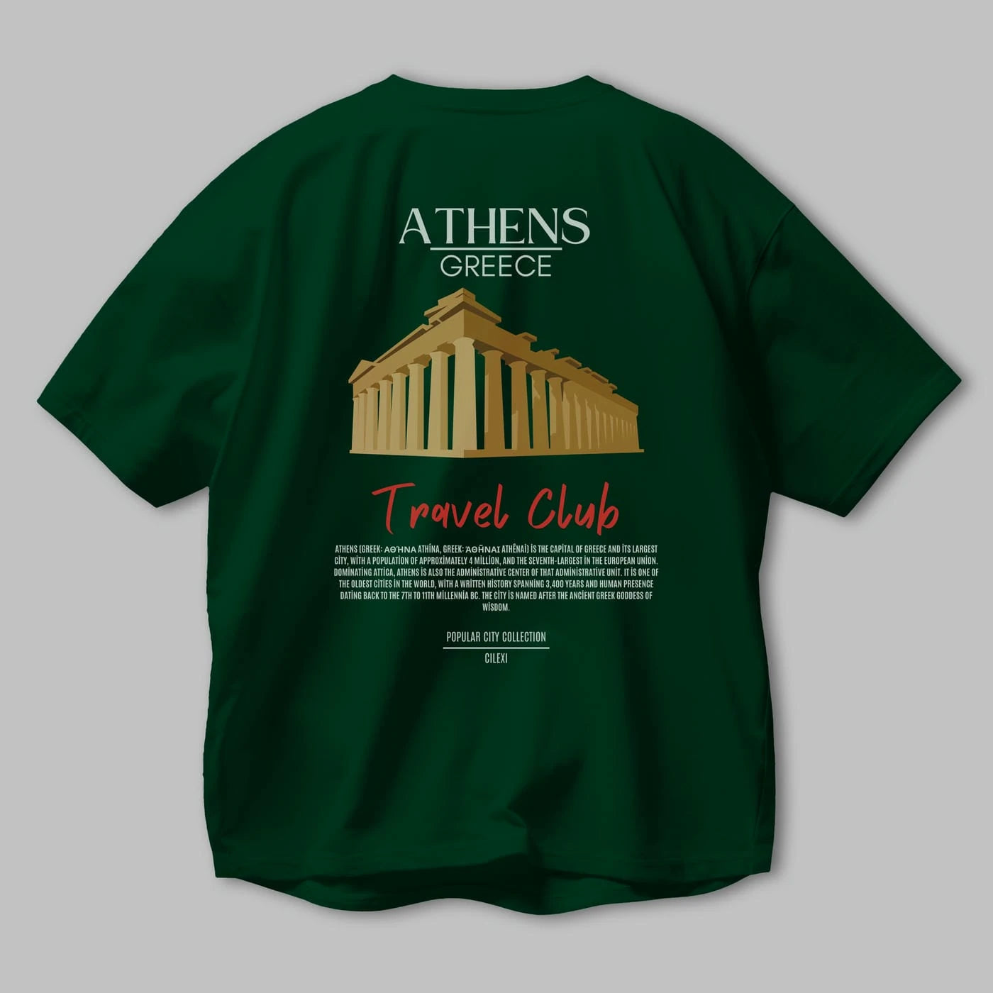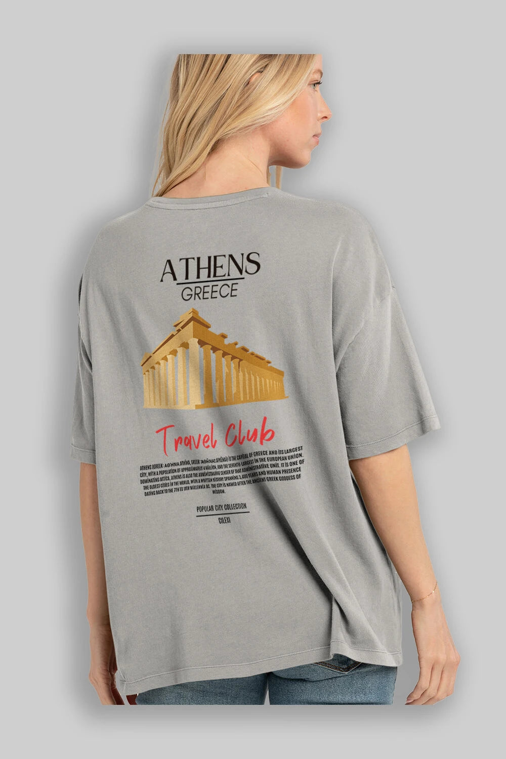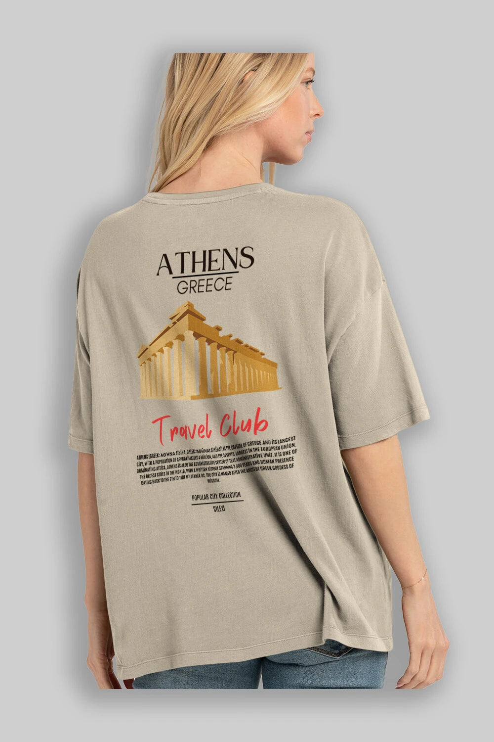 Athens Greece Arka Baskılı Oversize t-shirt Erkek Kadın Pamuk Bisiklet Yaka tişort