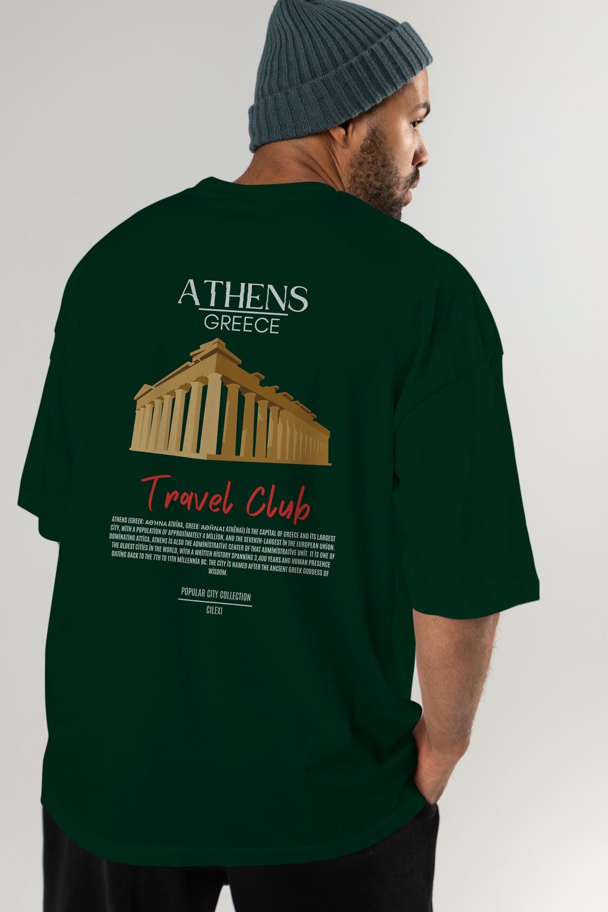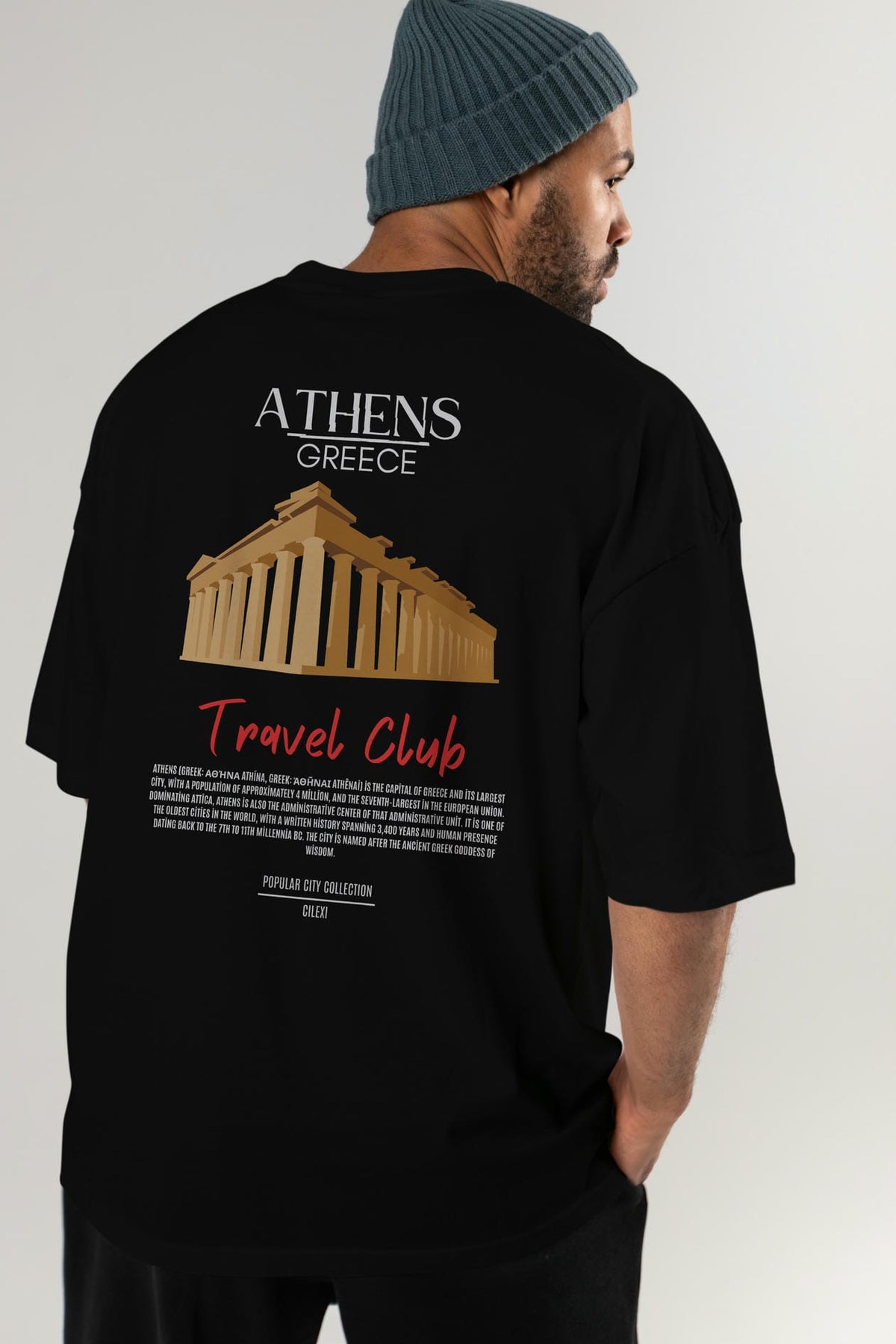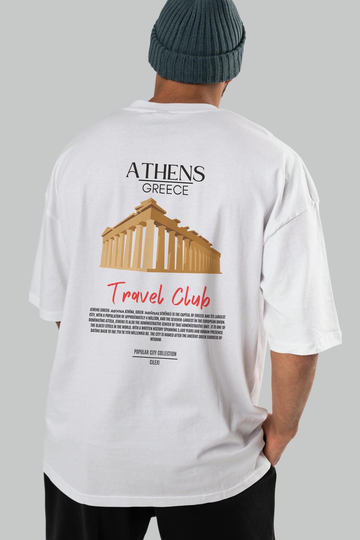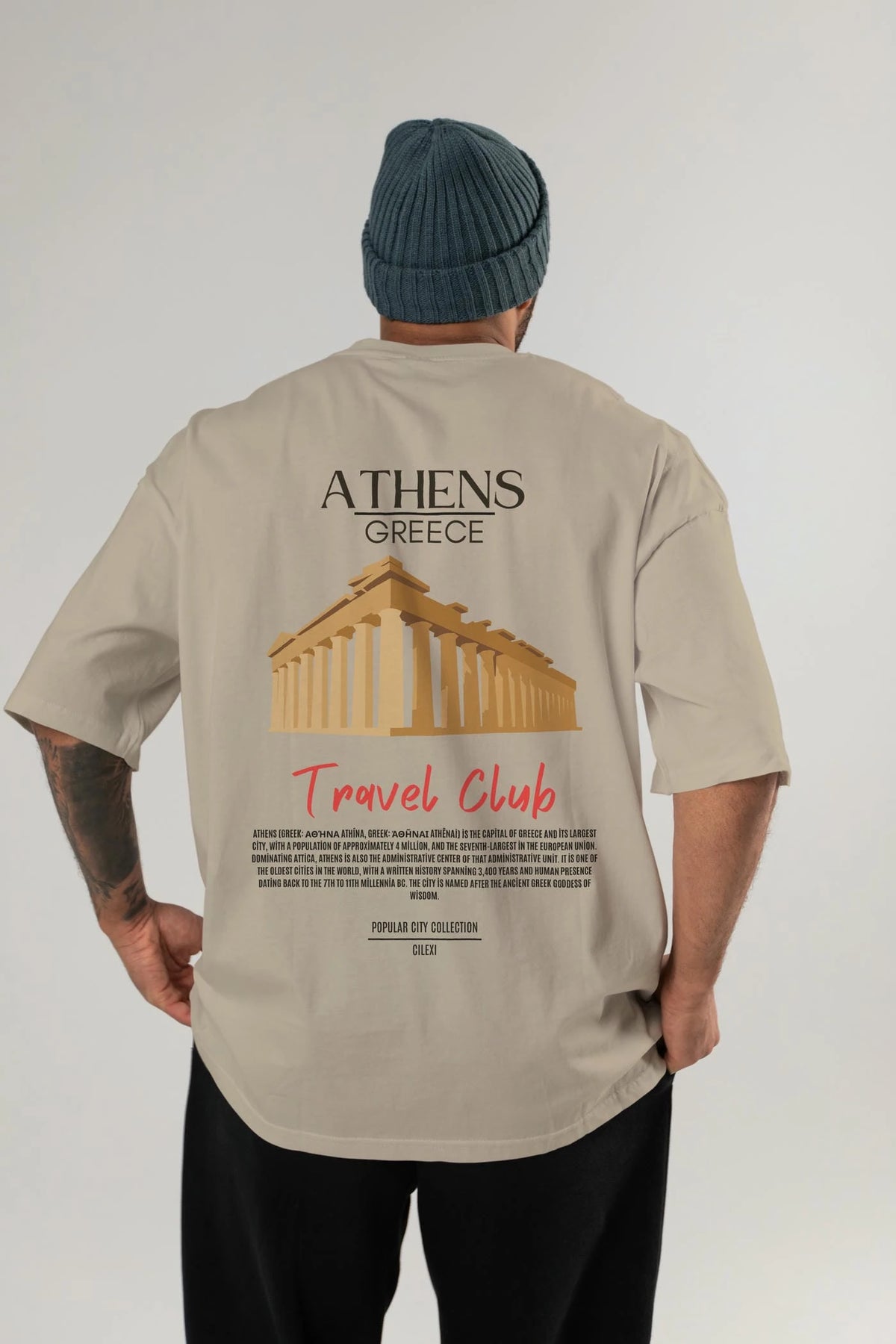 Athens Greece Arka Baskılı Oversize t-shirt Erkek Kadın Pamuk Bisiklet Yaka tişort