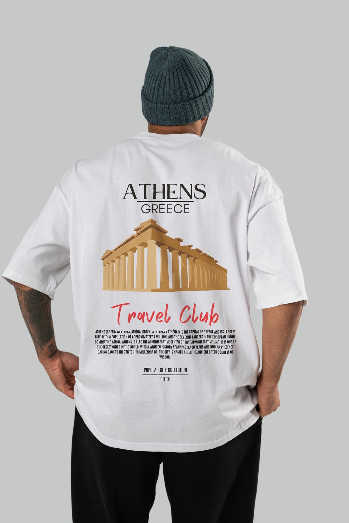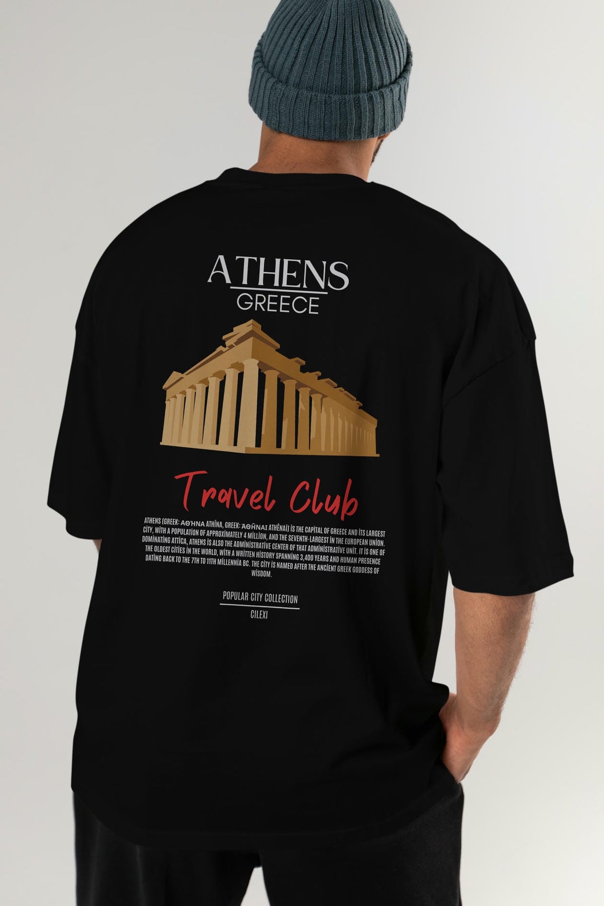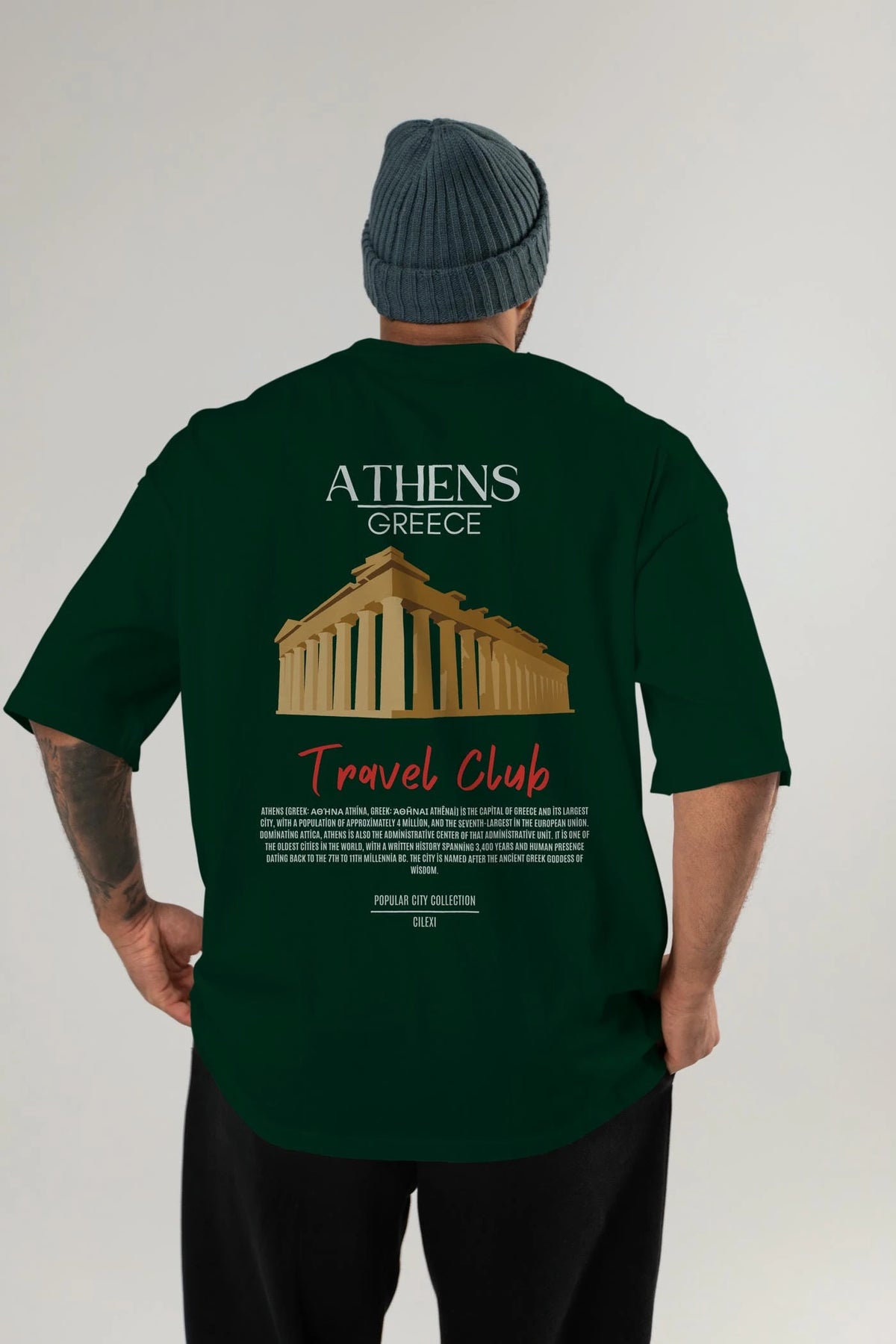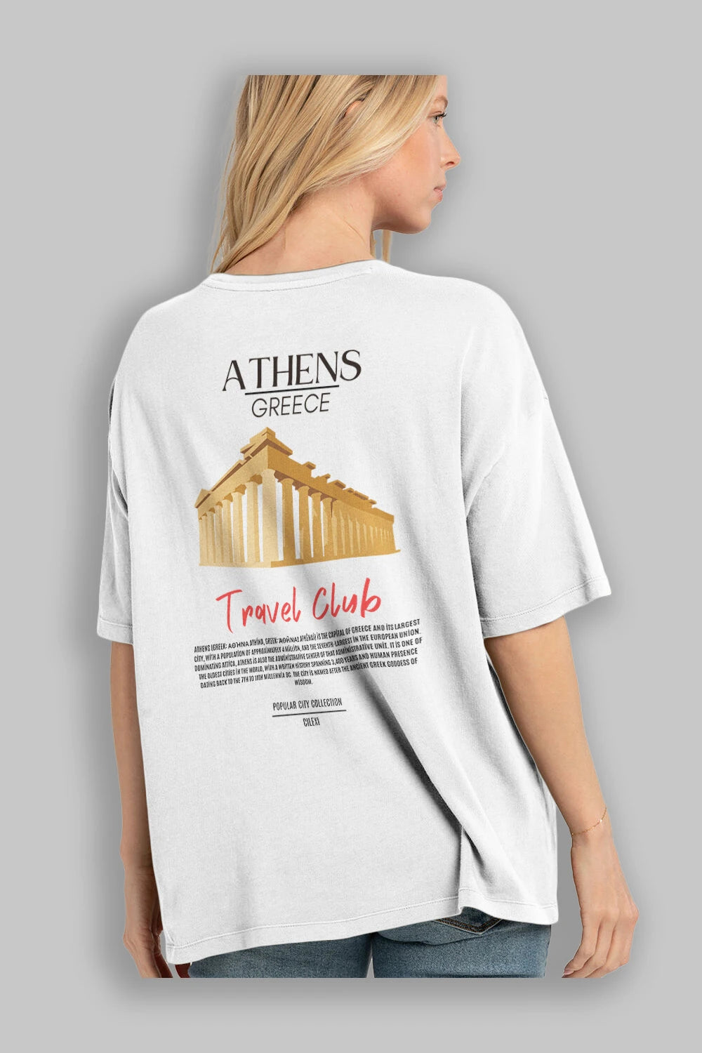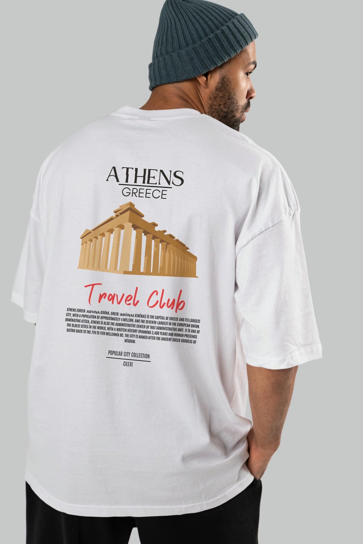 Athens Greece Arka Baskılı Oversize t-shirt Erkek Kadın Pamuk Bisiklet Yaka tişort