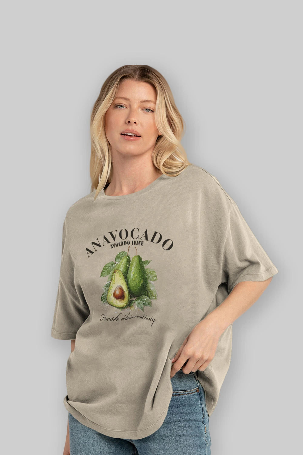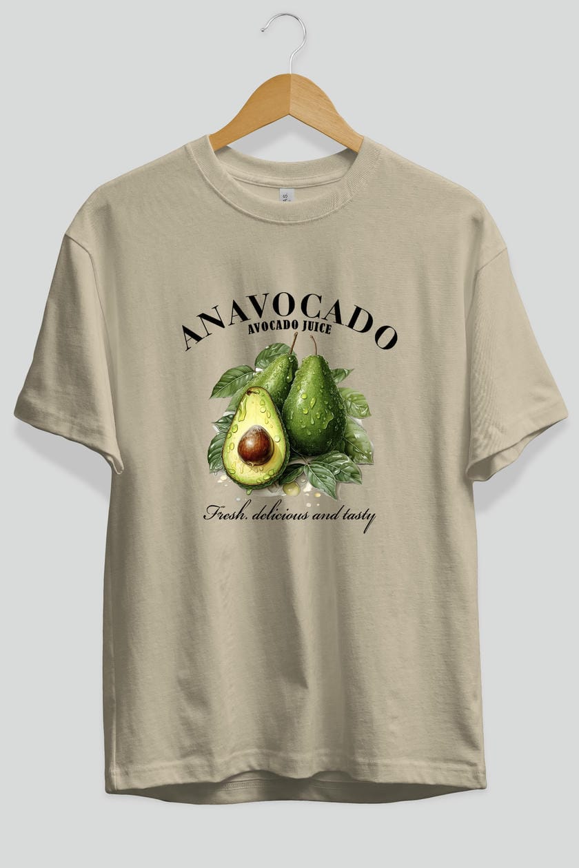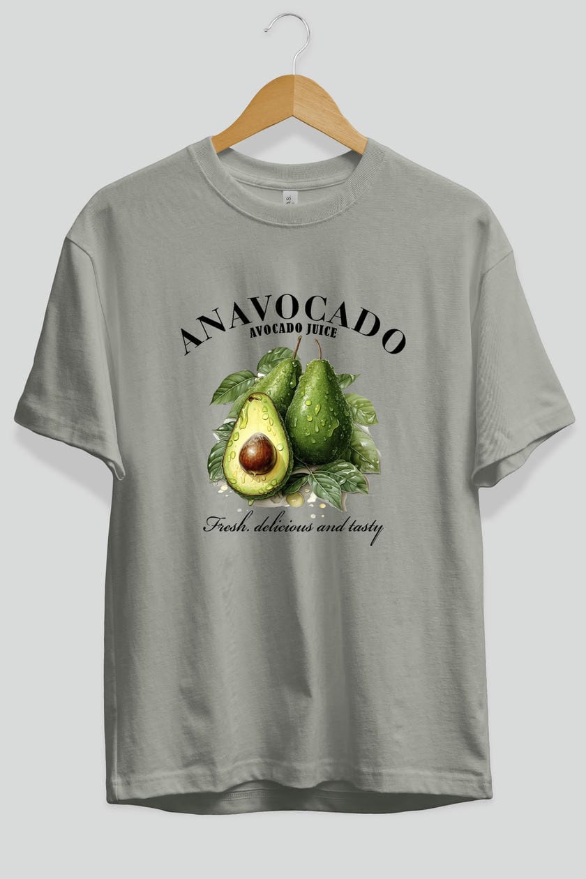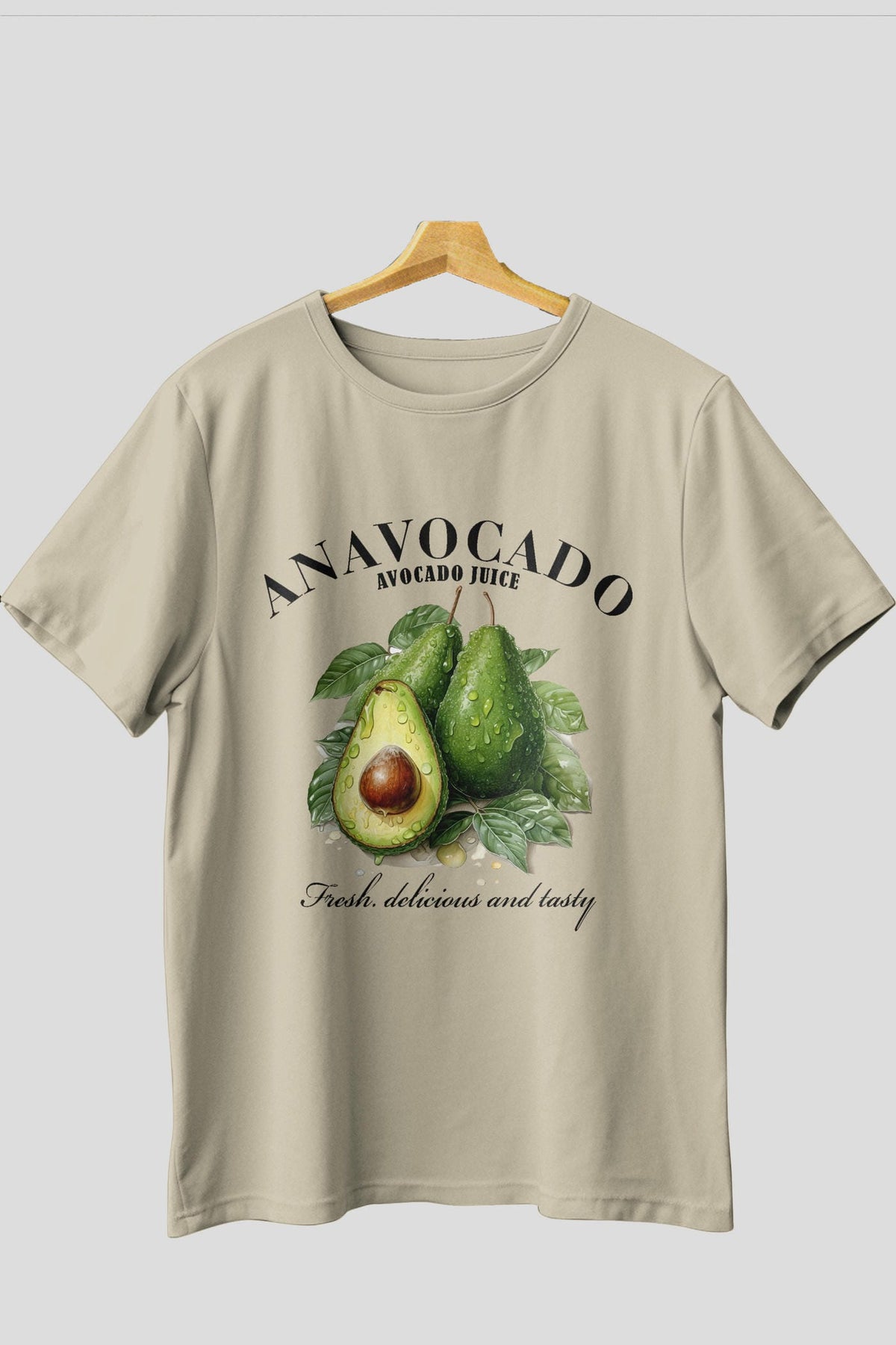 Avocado Avokado Ön Baskılı Oversize t-shirt Erkek Kadın Pamuk Bisiklet Yaka tişort