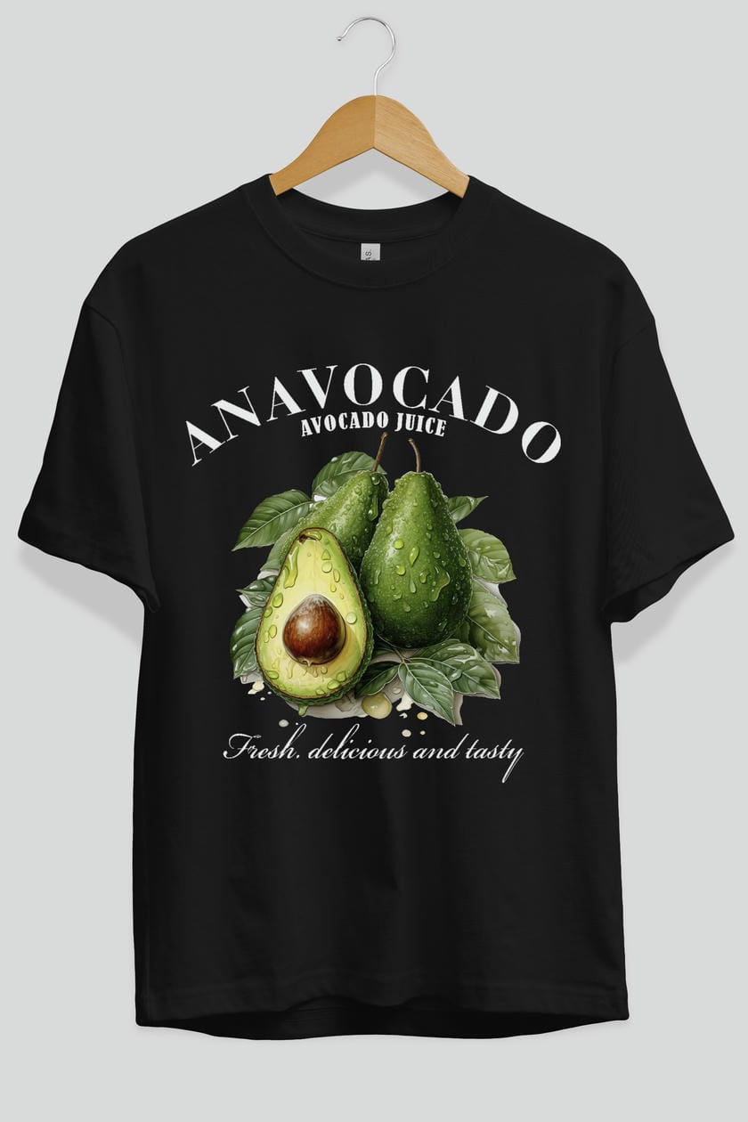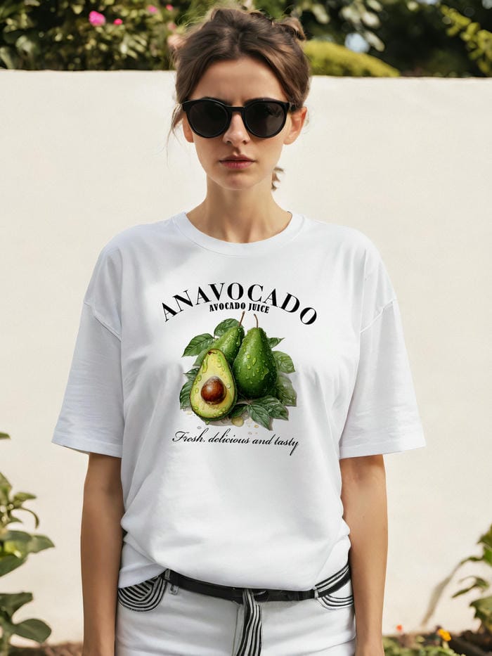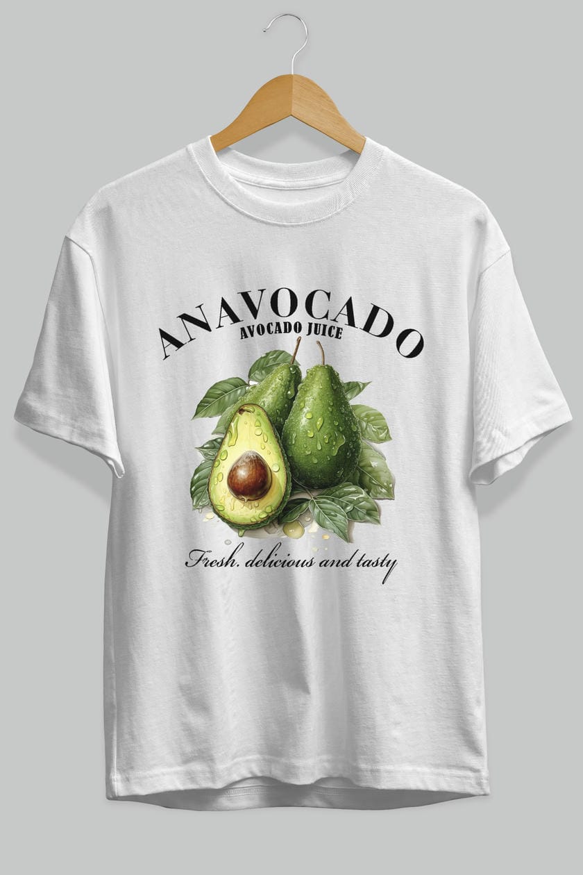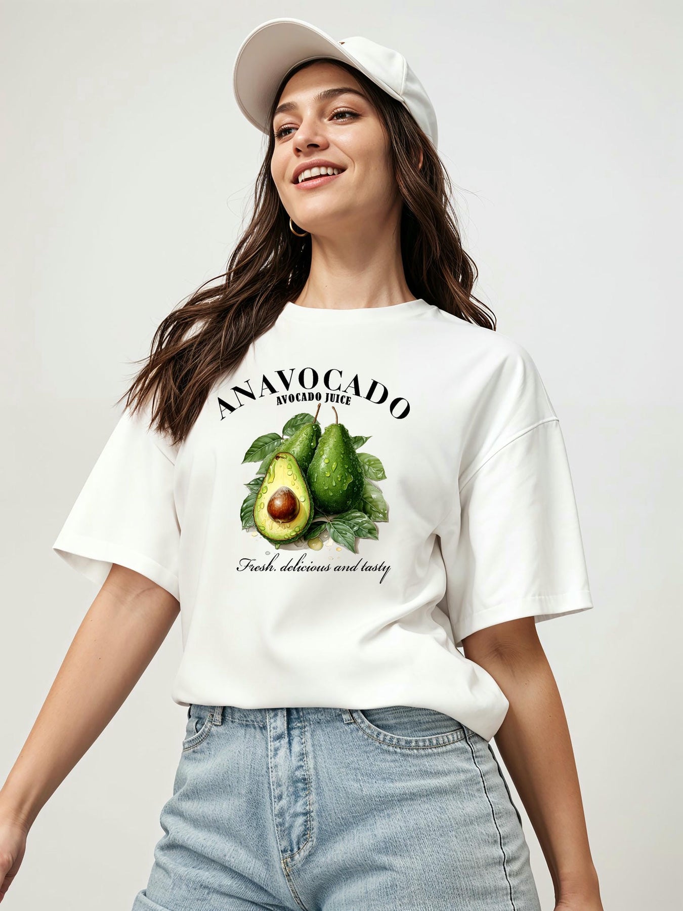 Avocado Avokado Ön Baskılı Oversize t-shirt Erkek Kadın Pamuk Bisiklet Yaka tişort