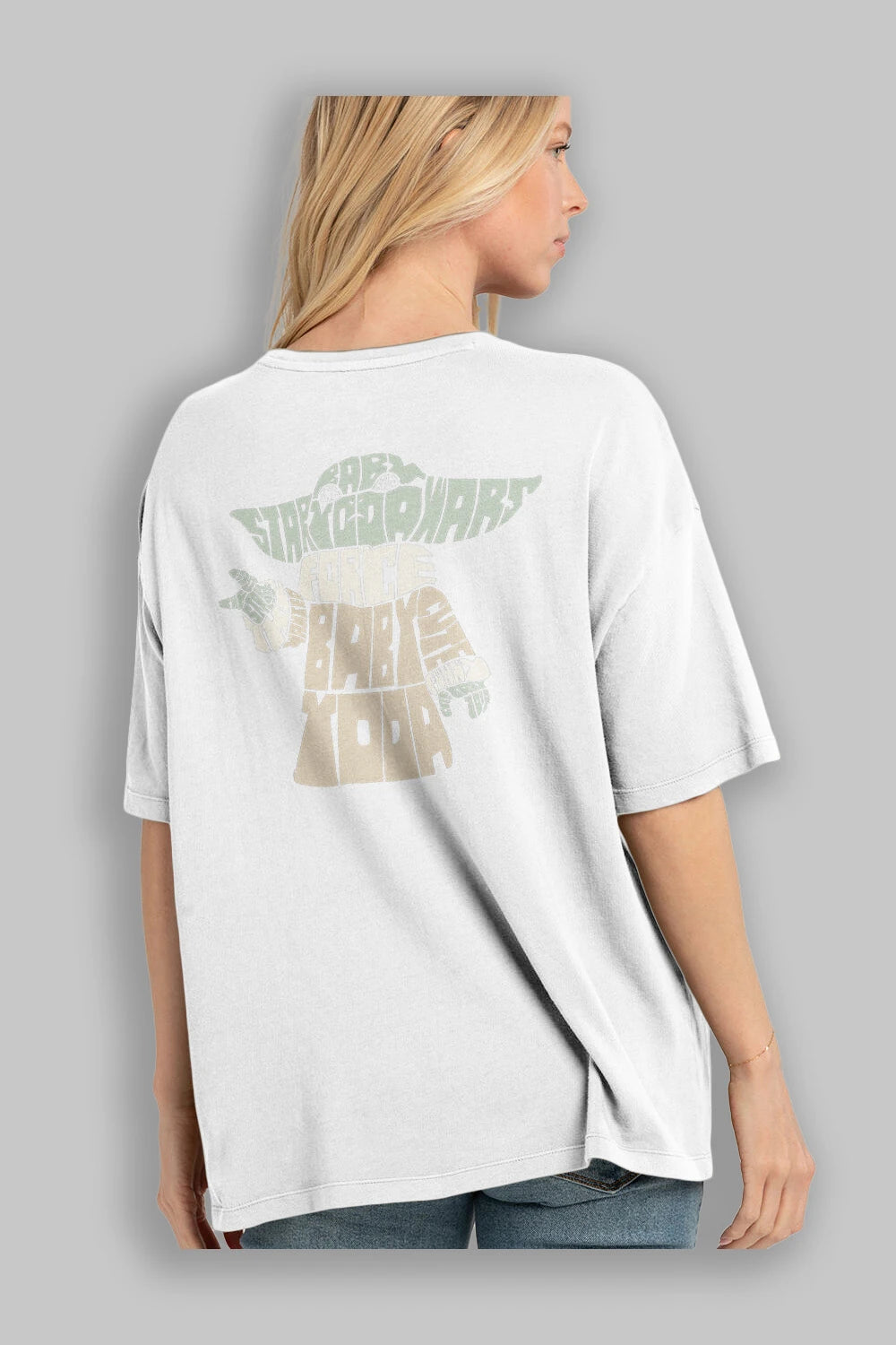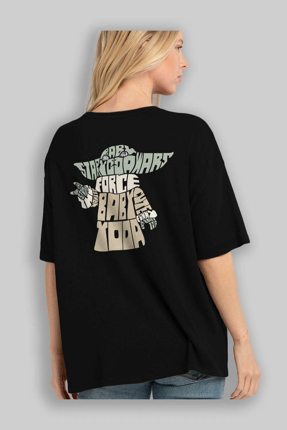 Baby Yoda Arka Baskılı Oversize t-shirt %100 pamuk Erkek Kadın Unisex