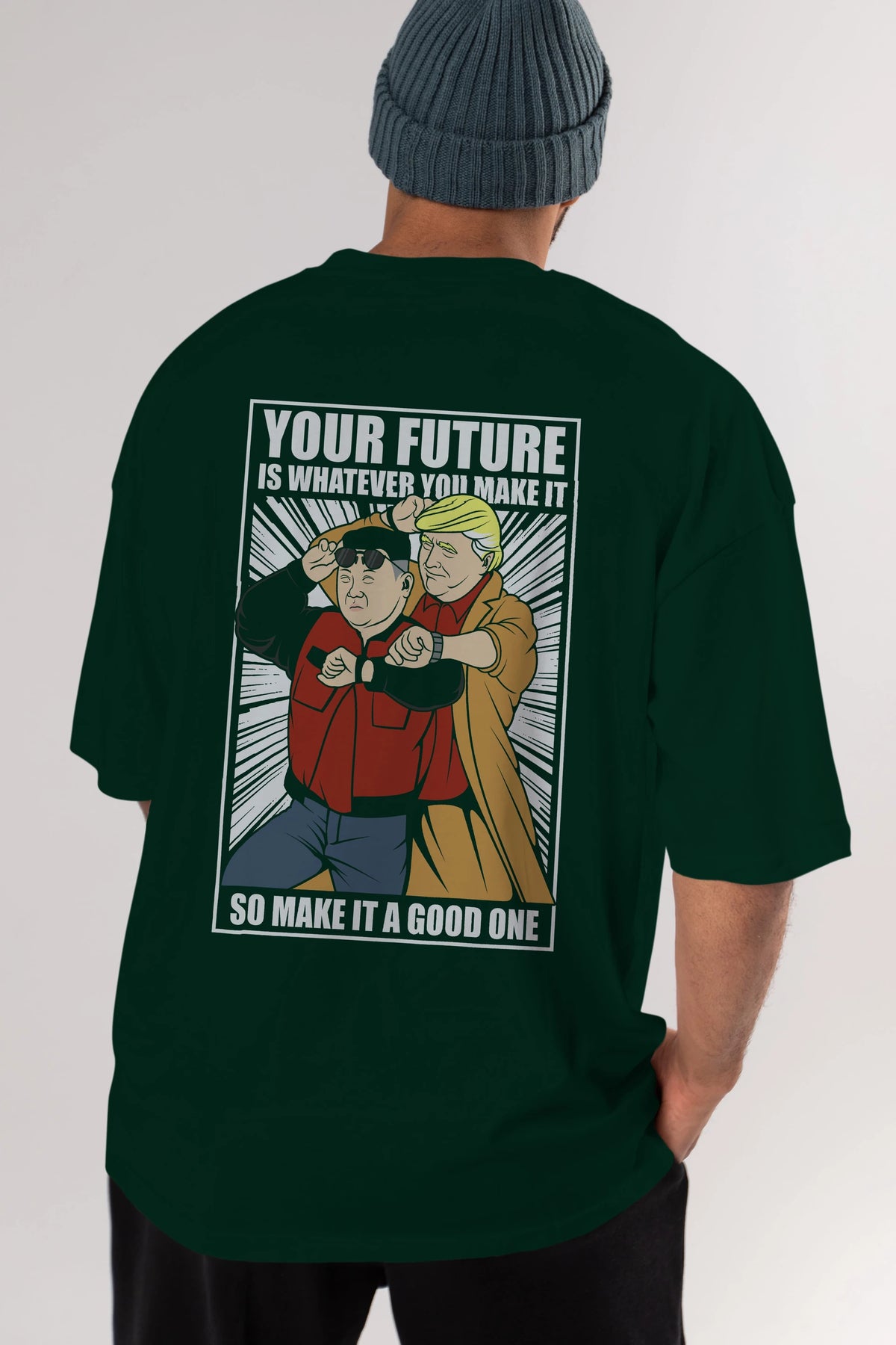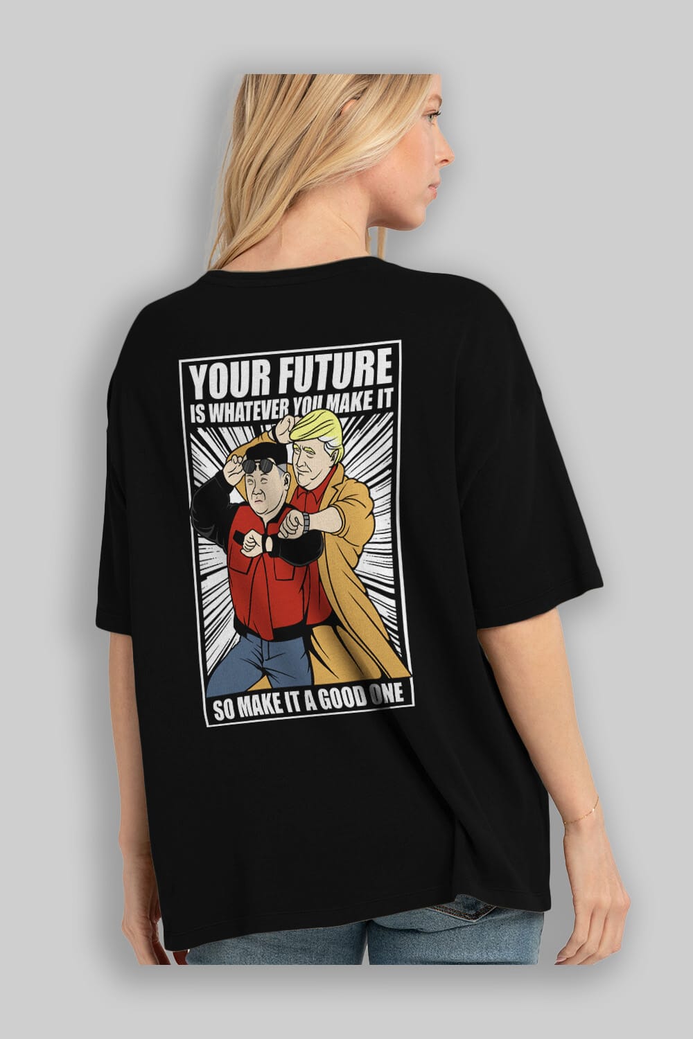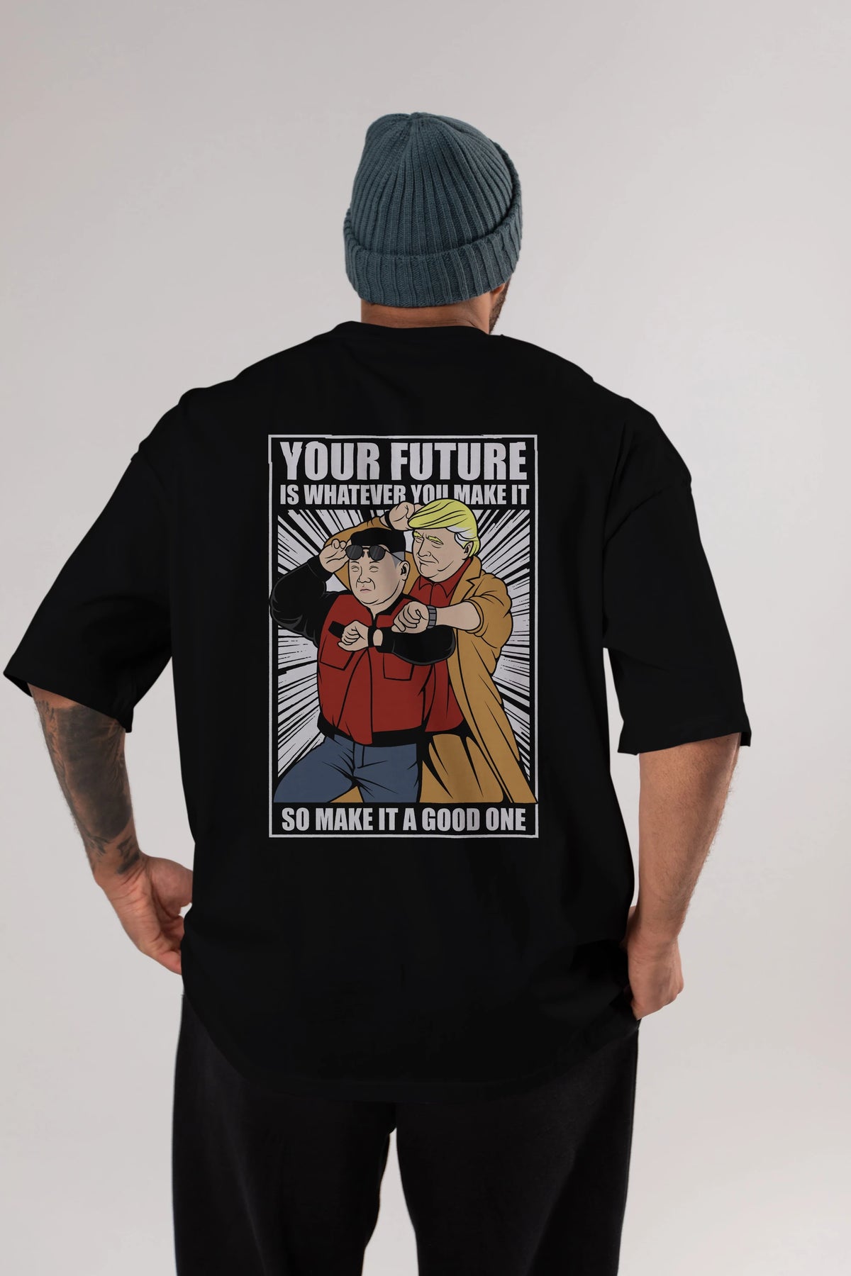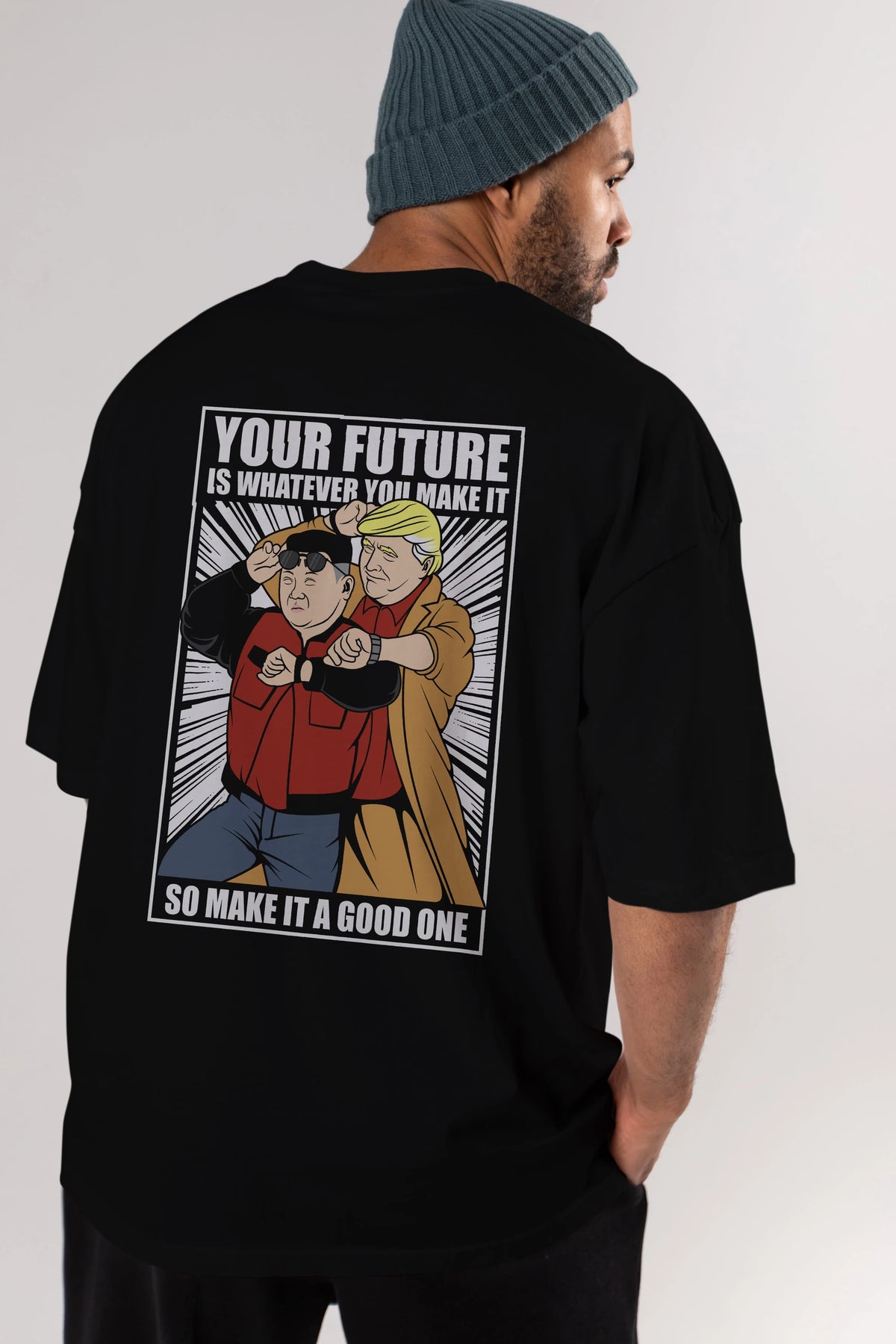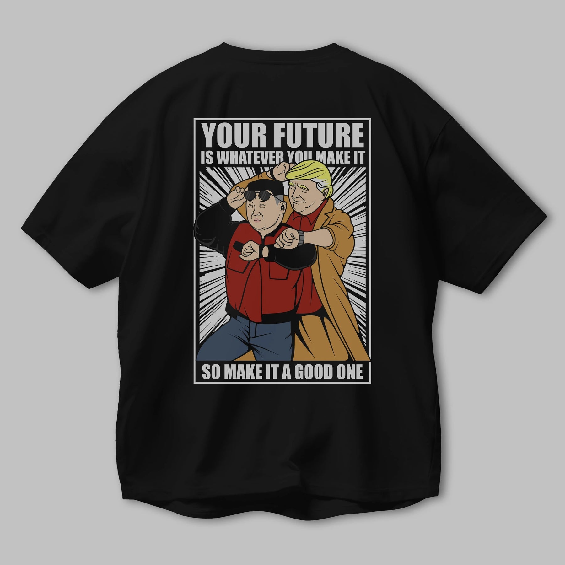 Back To The Future Jong Un Trump Arka Baskılı Oversize t-shirt Erkek Kadın Unisex %100 Pamuk tişort