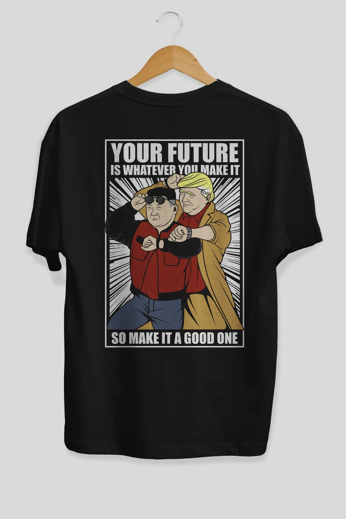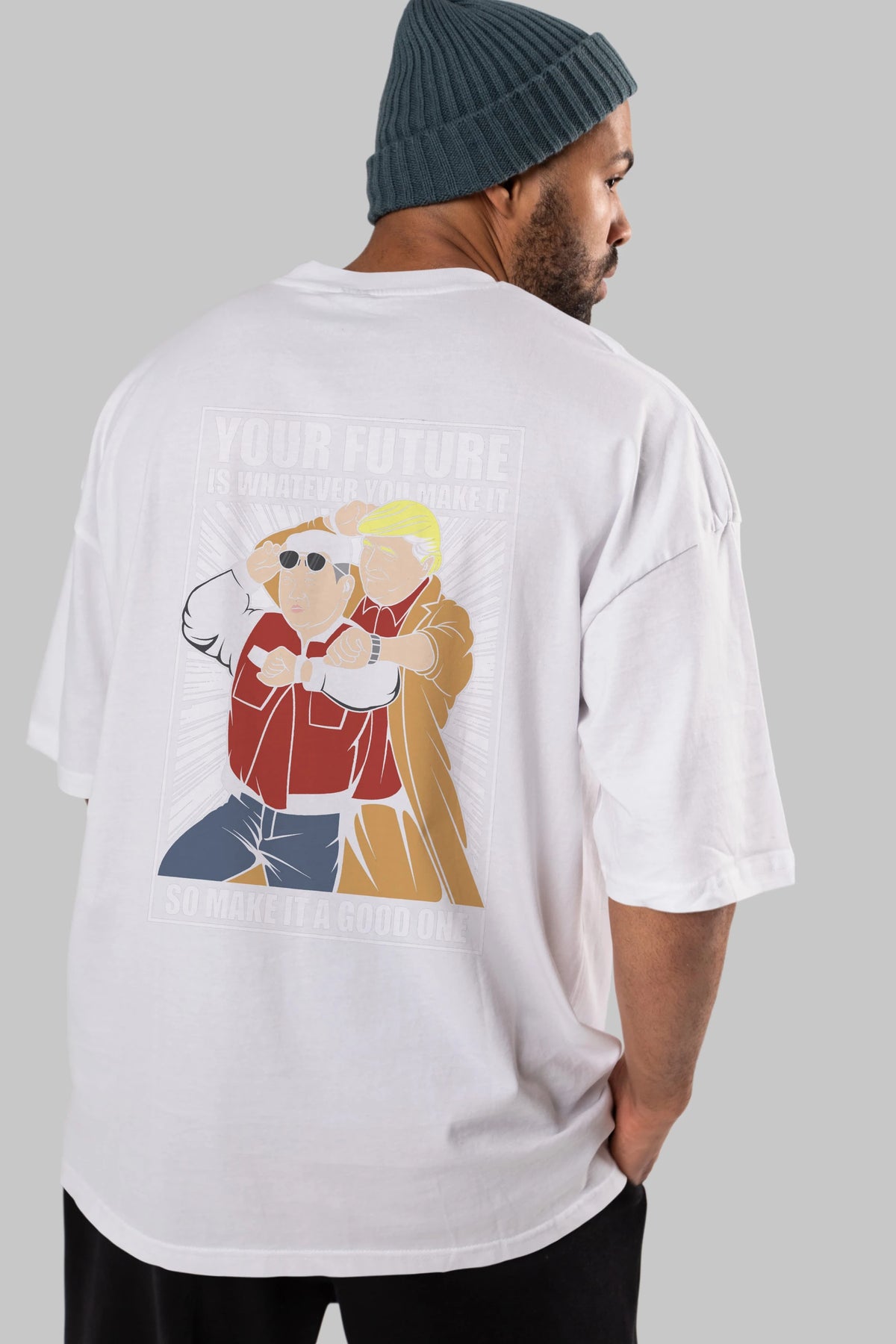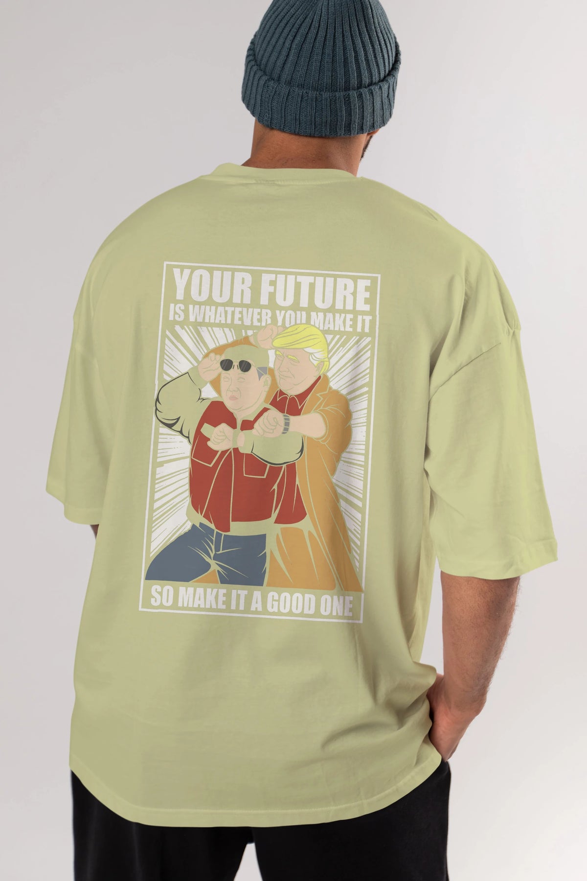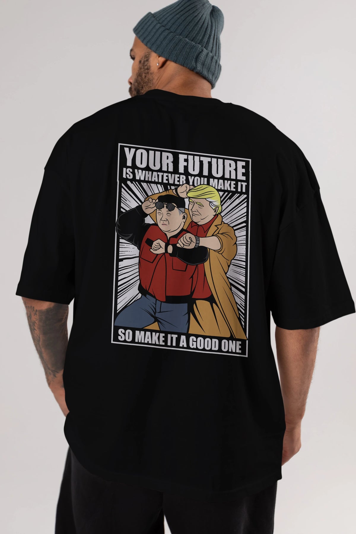 Back To The Future Jong Un Trump Arka Baskılı Oversize t-shirt Erkek Kadın Unisex %100 Pamuk tişort
