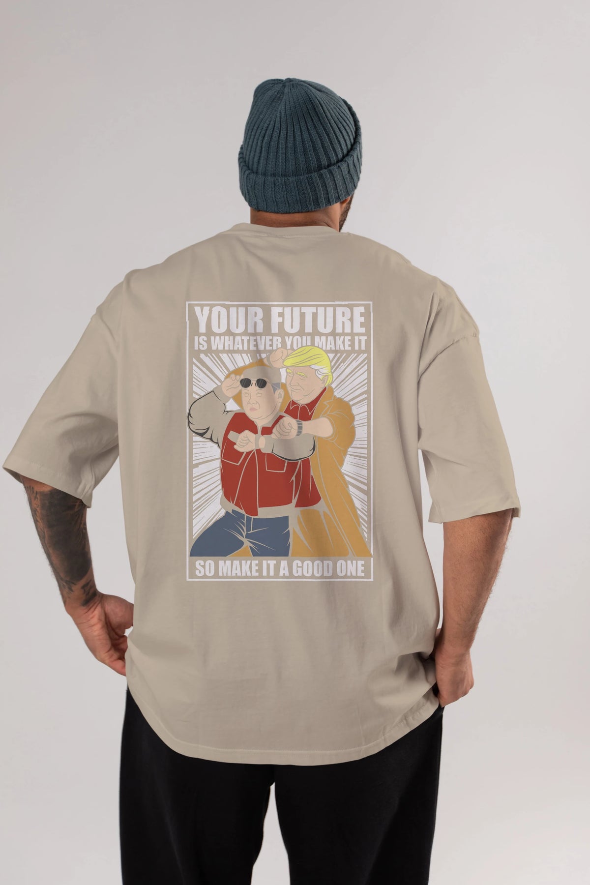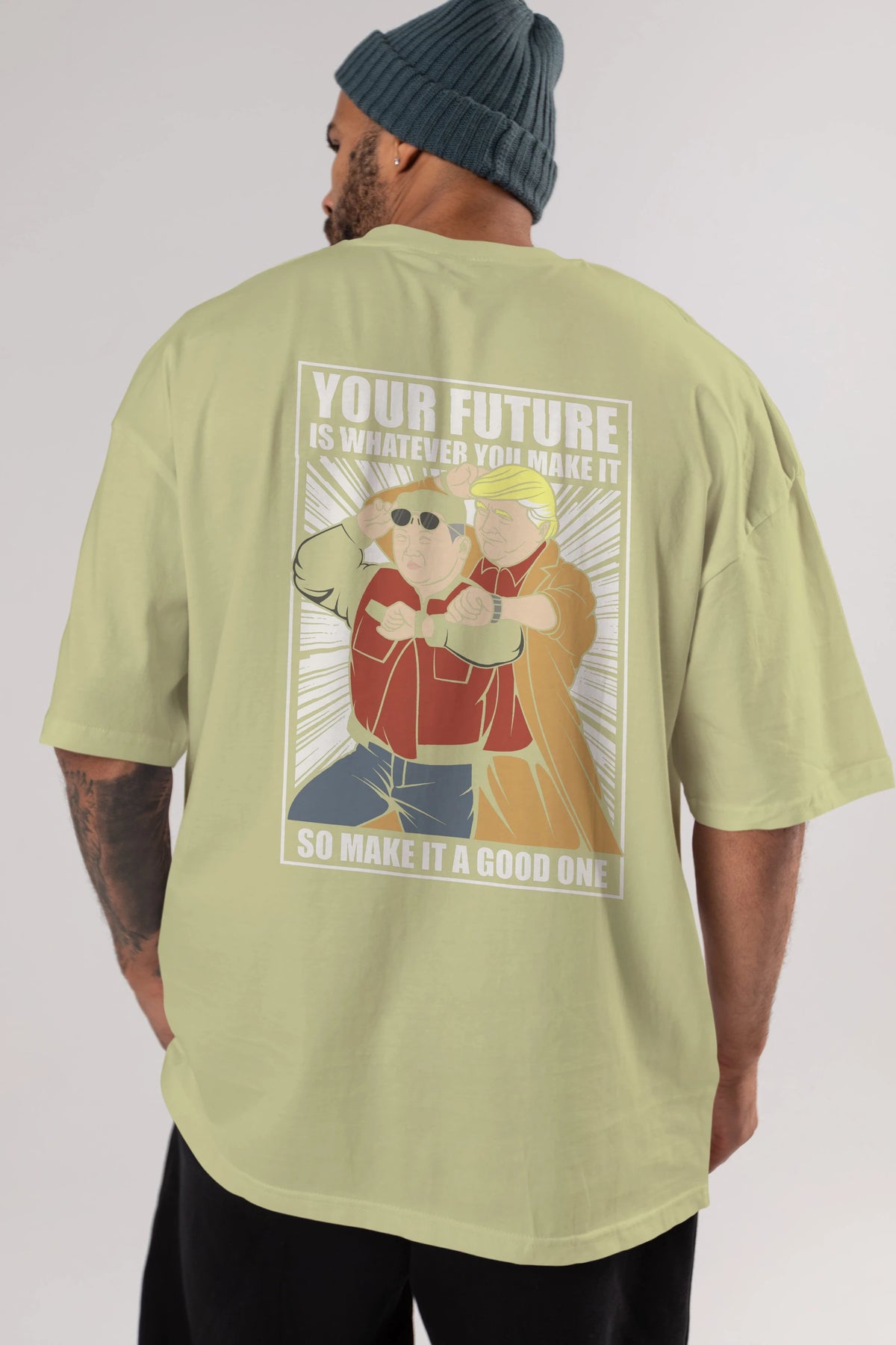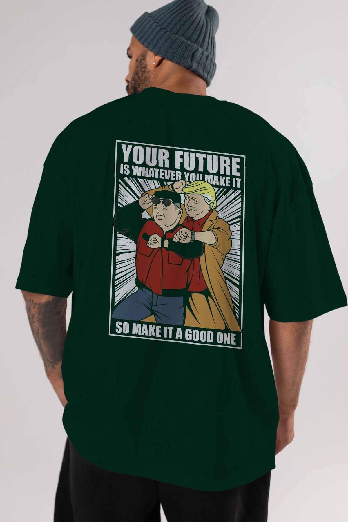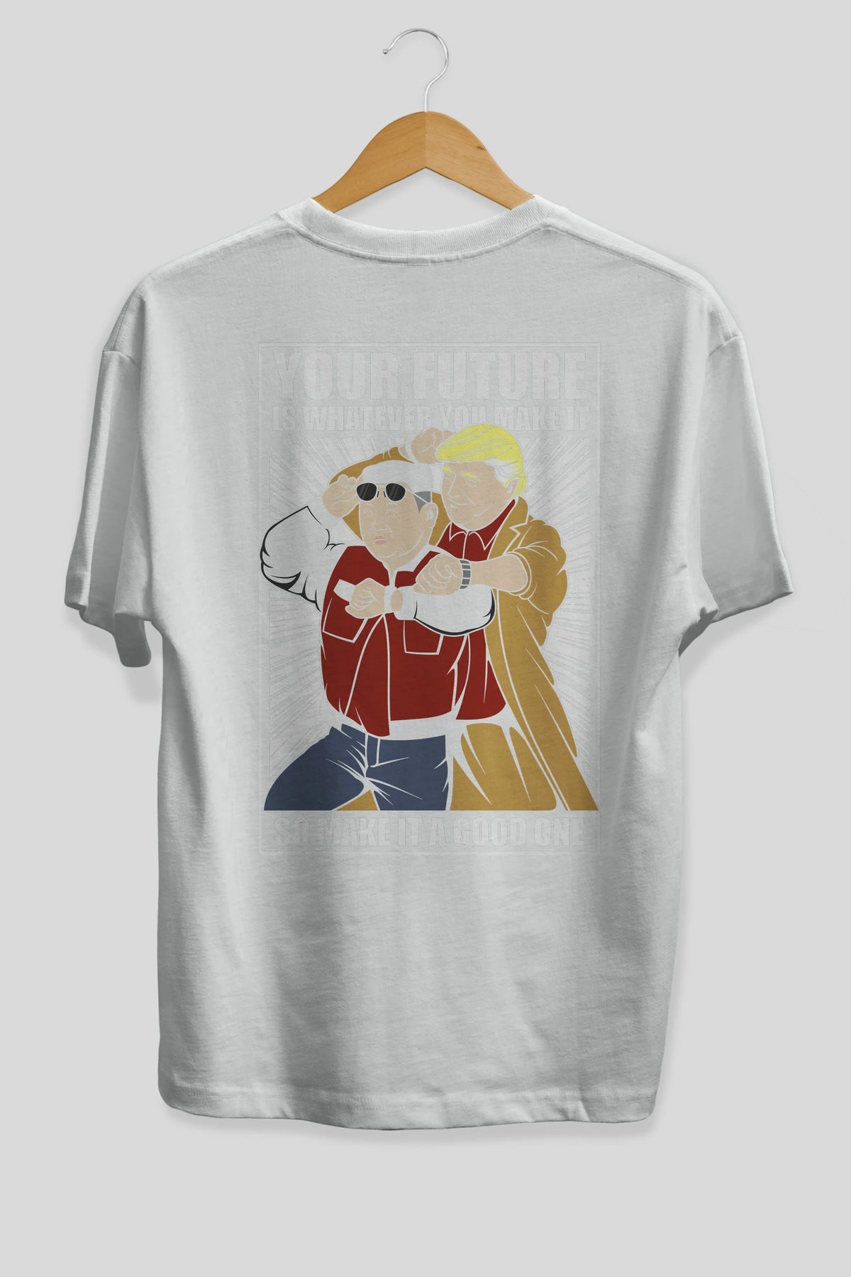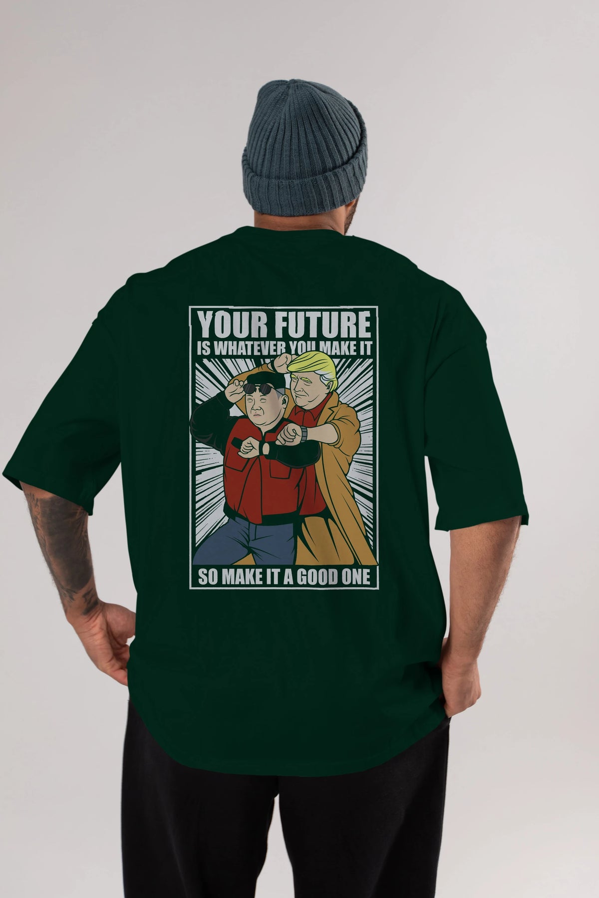 Back To The Future Jong Un Trump Arka Baskılı Oversize t-shirt Erkek Kadın Unisex %100 Pamuk tişort