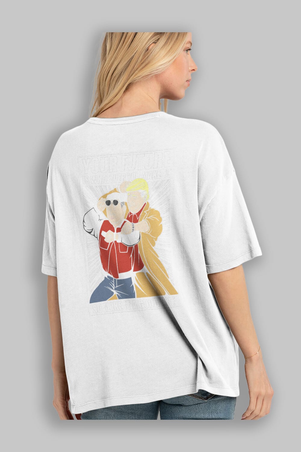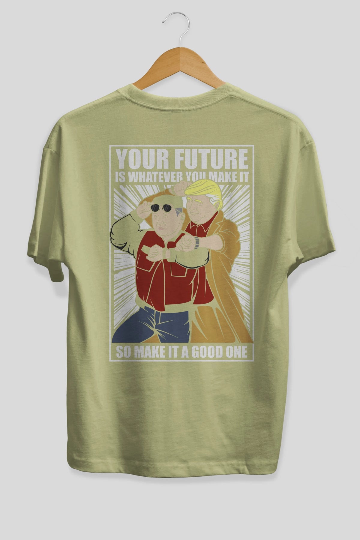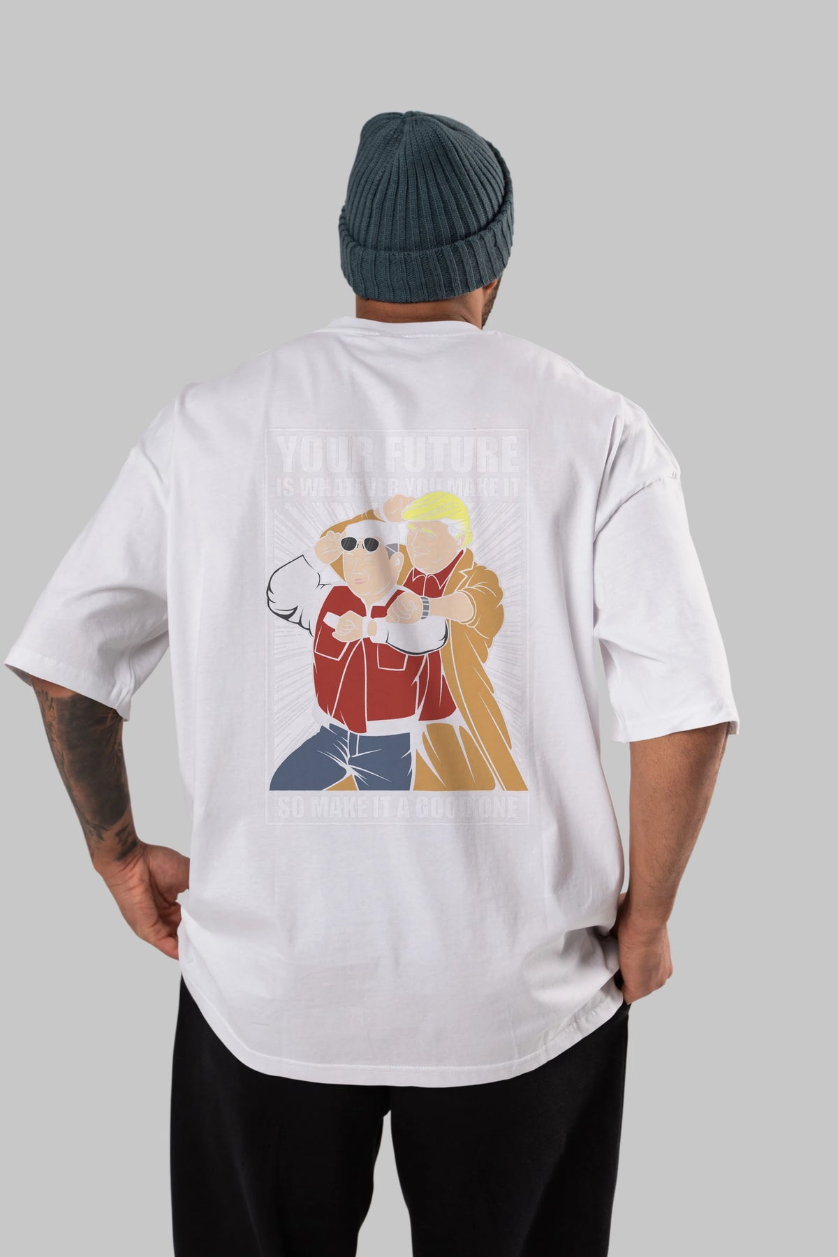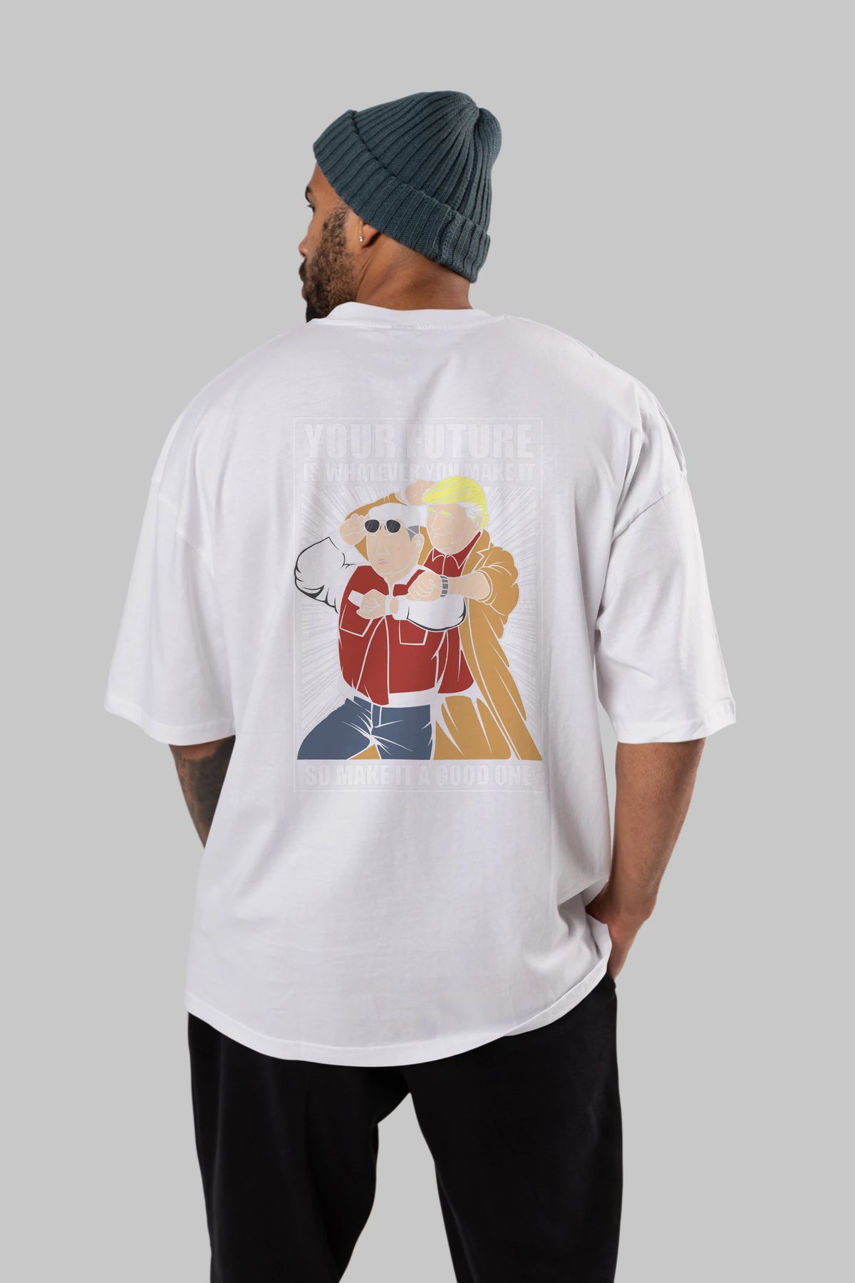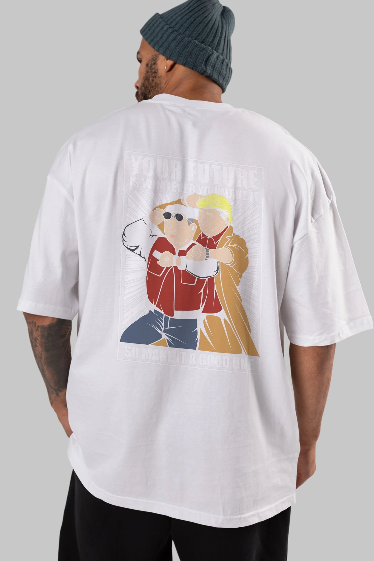 Back To The Future Jong Un Trump Arka Baskılı Oversize t-shirt Erkek Kadın Unisex %100 Pamuk tişort