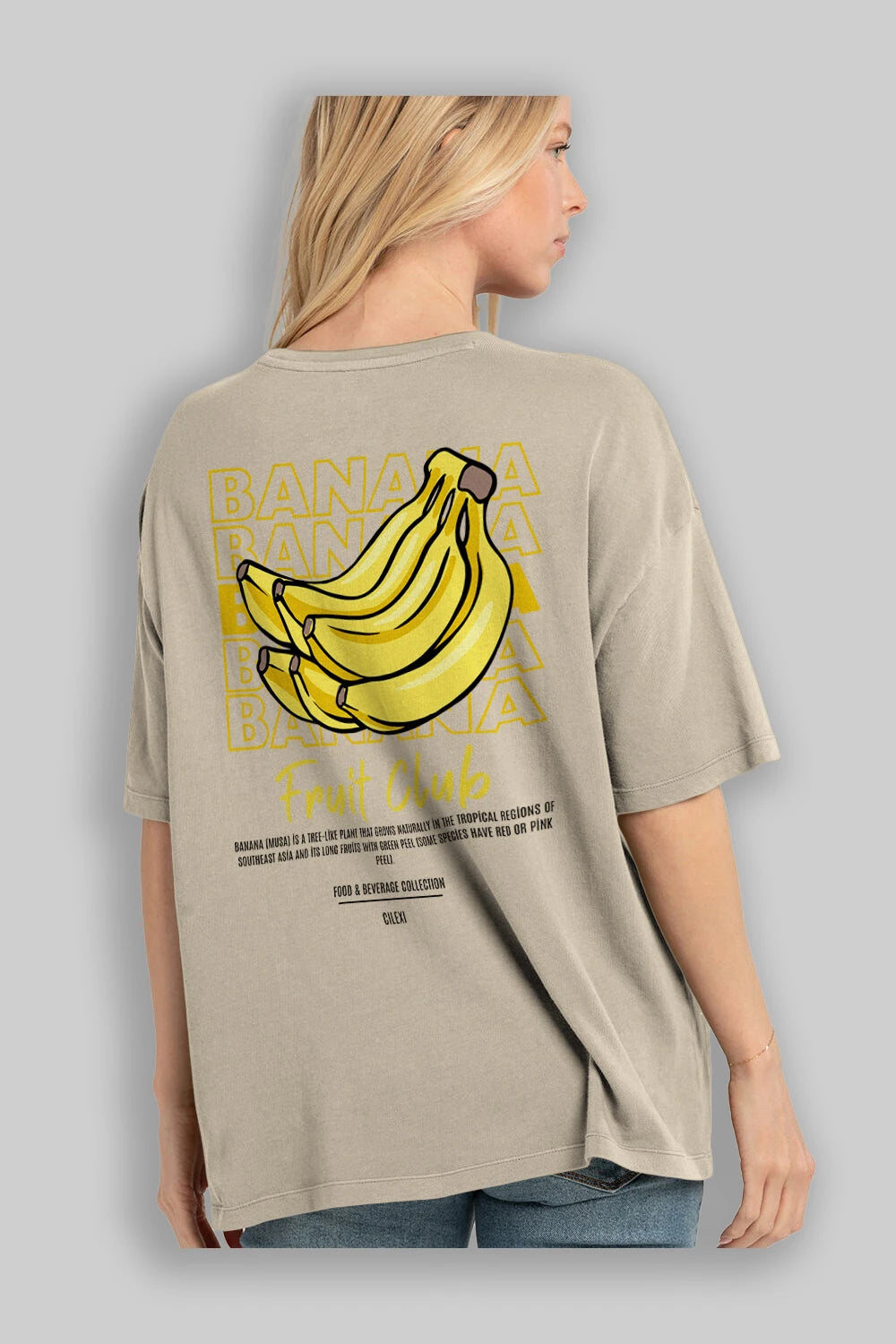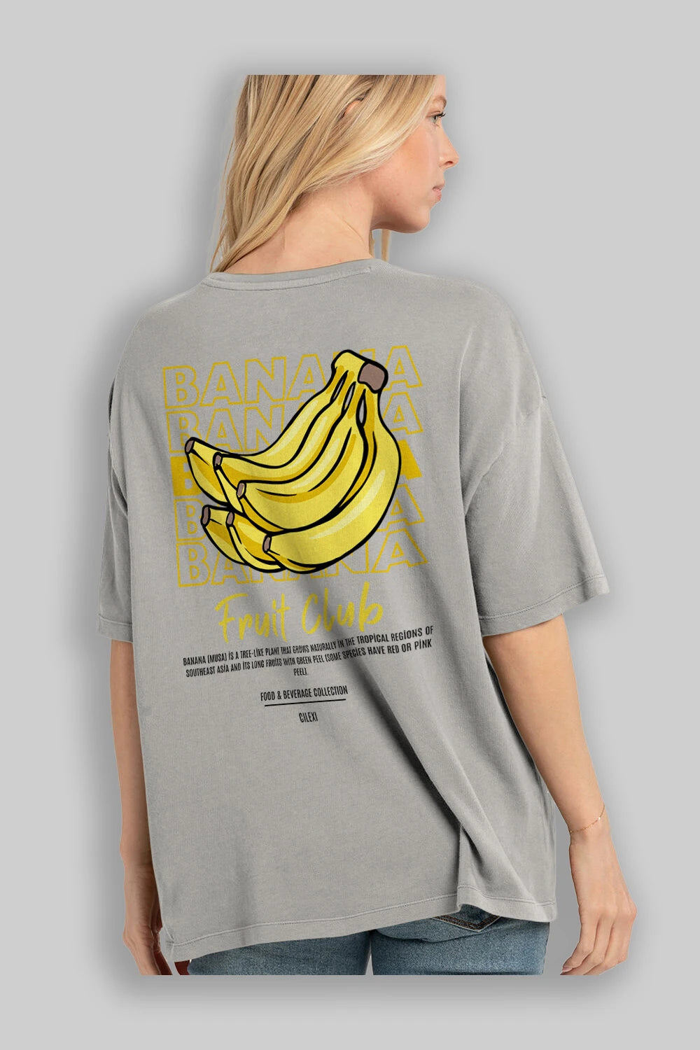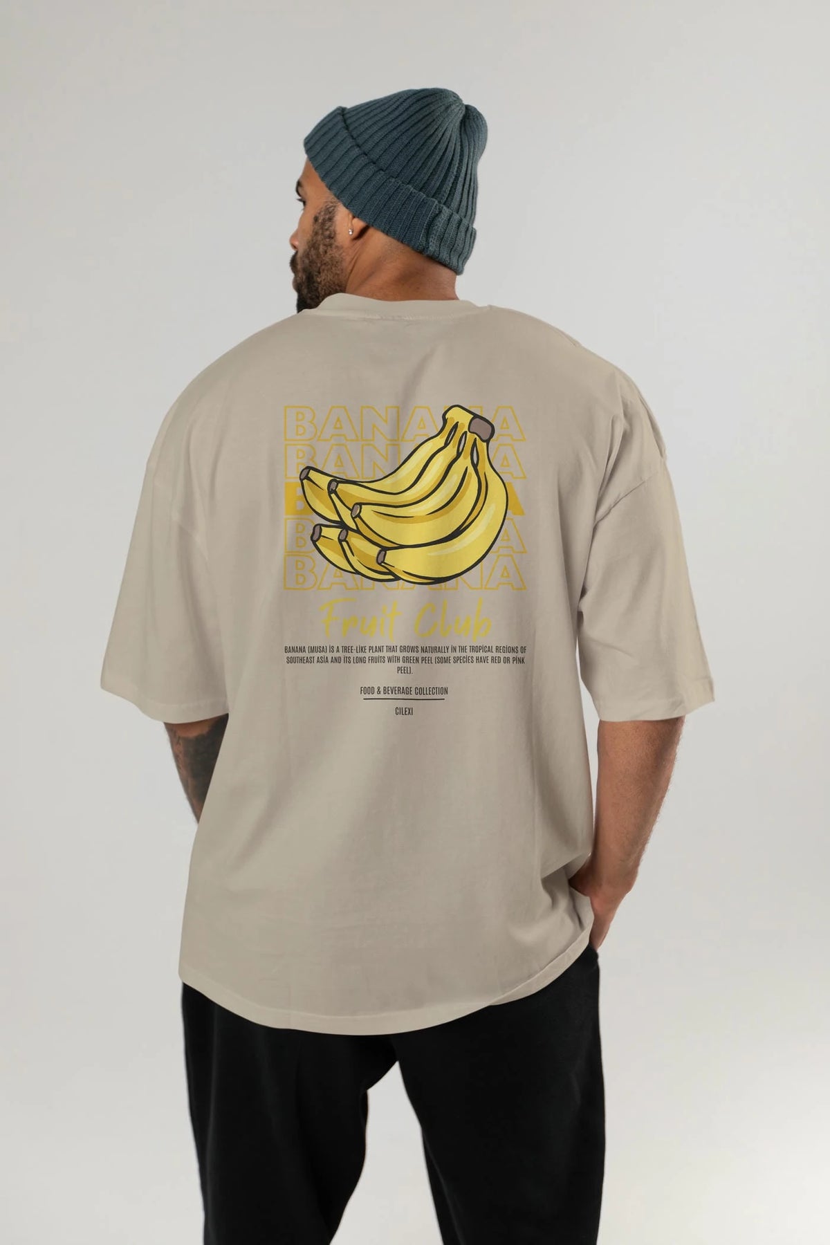 Banana Arka Baskılı Oversize t-shirt Erkek Kadın Pamuk Bisiklet Yaka tişort