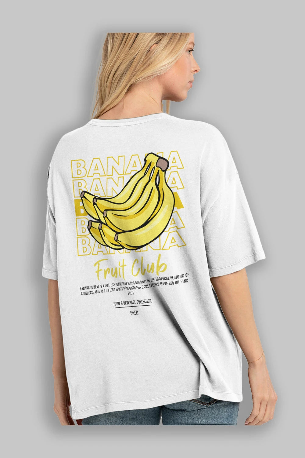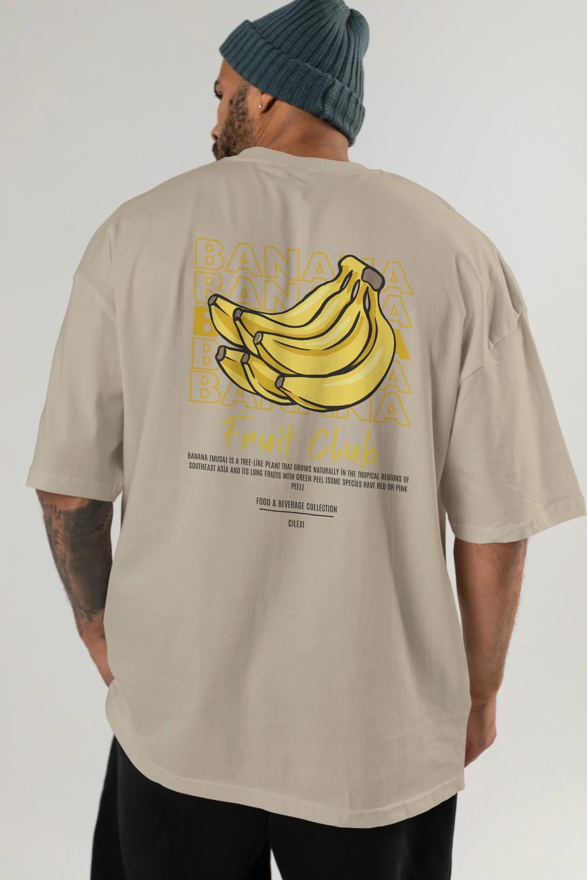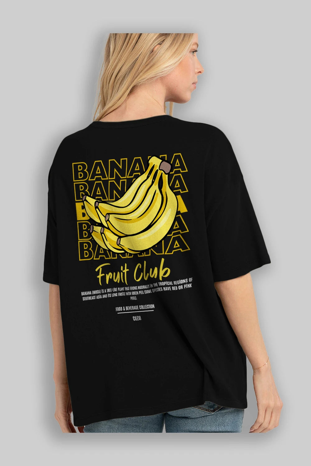 Banana Arka Baskılı Oversize t-shirt Erkek Kadın Pamuk Bisiklet Yaka tişort