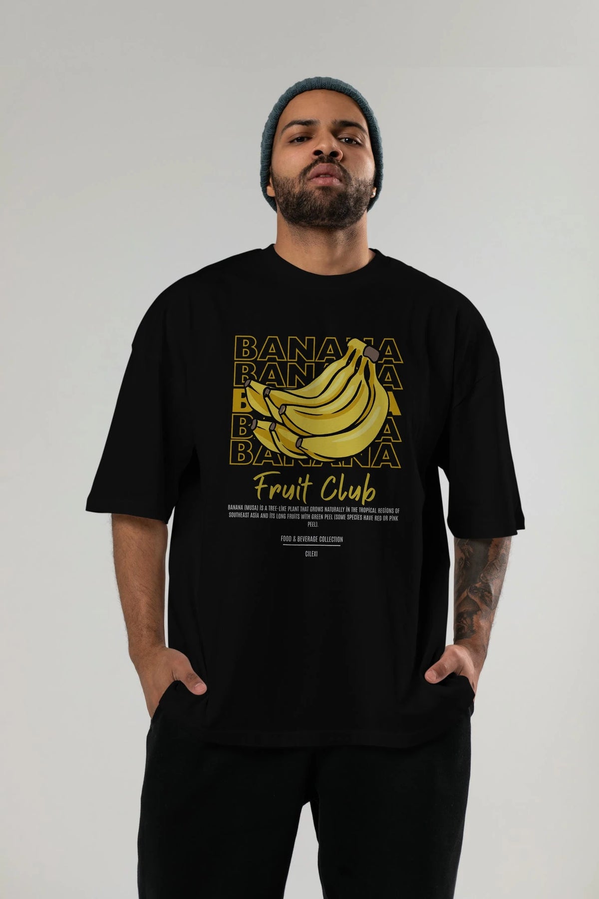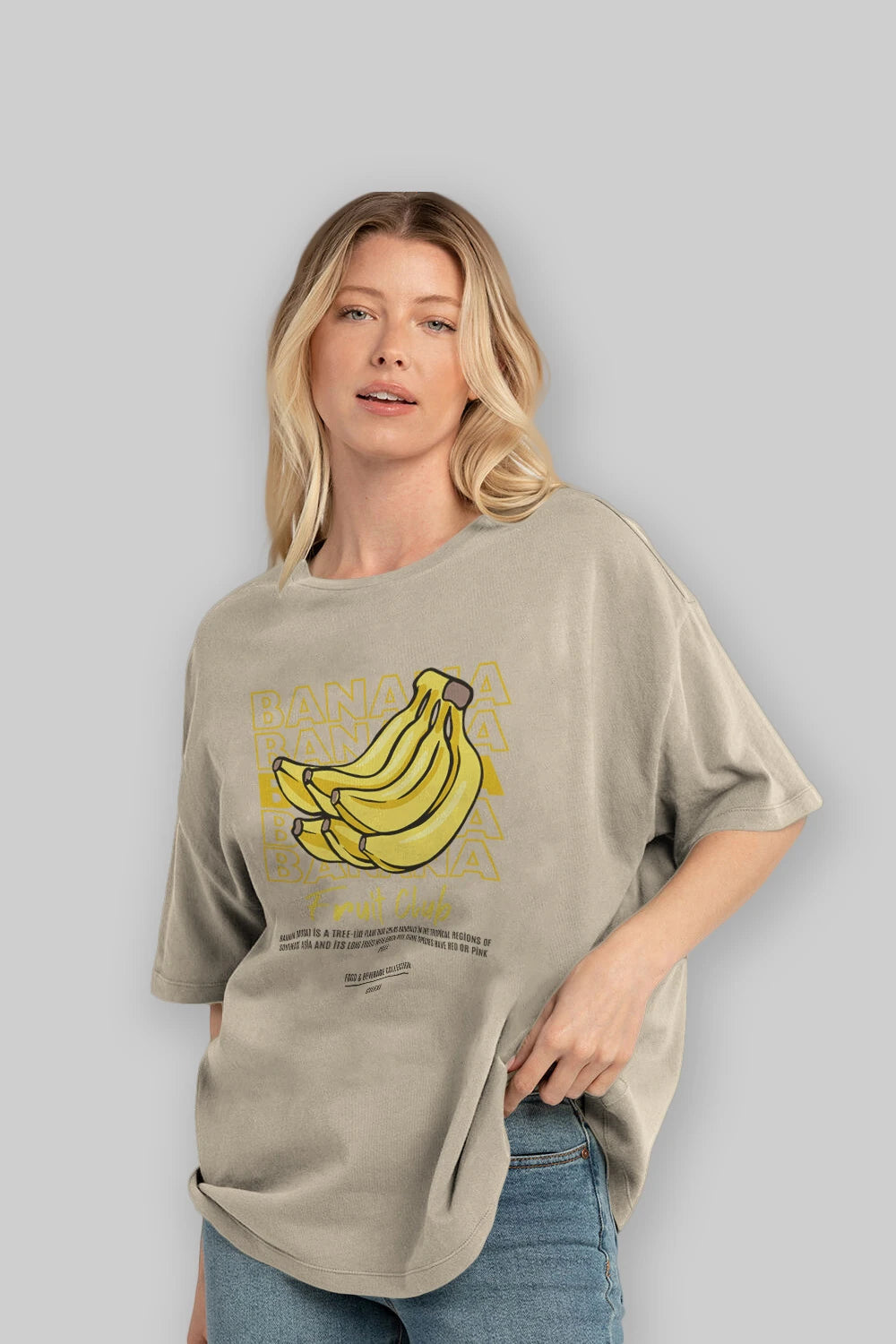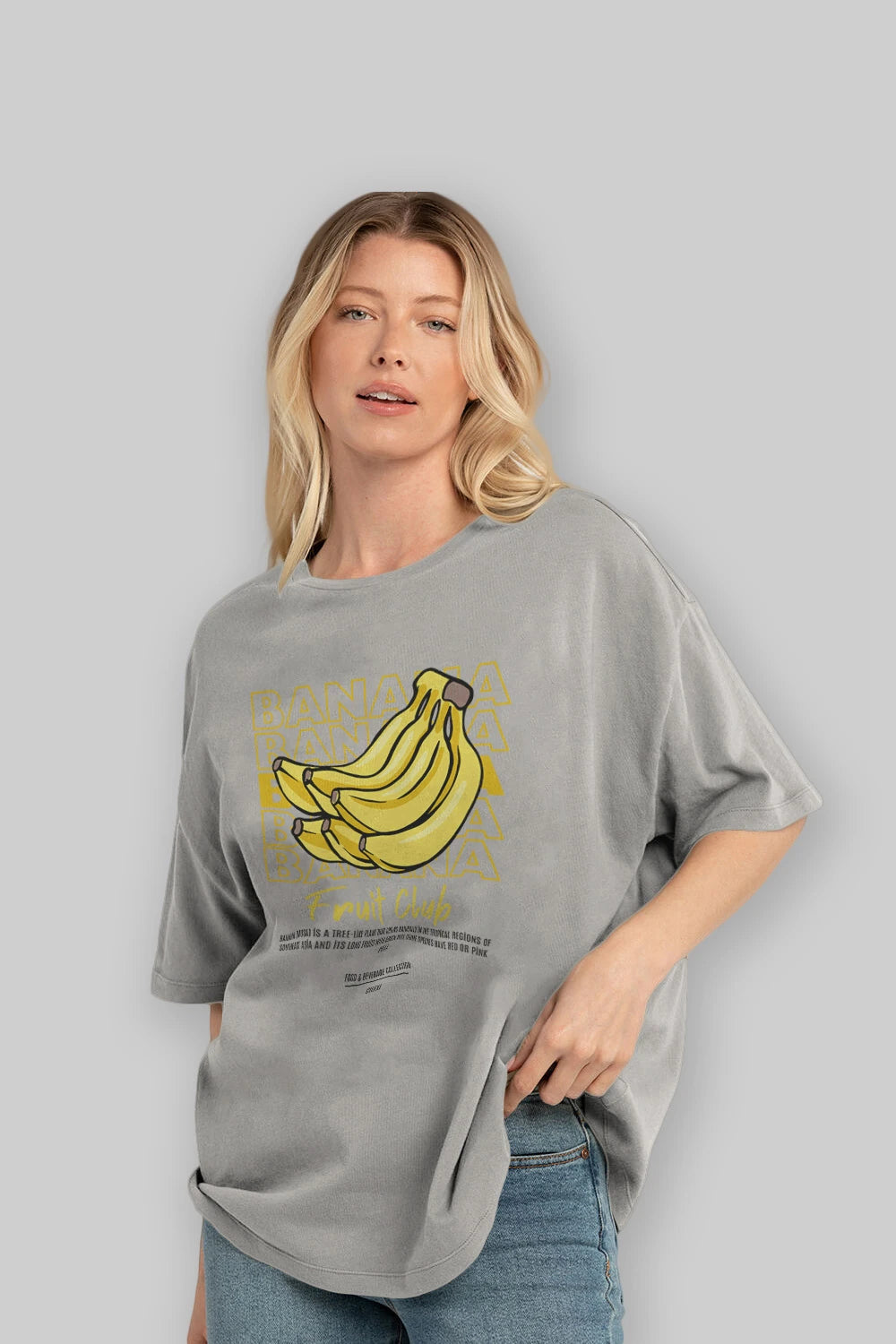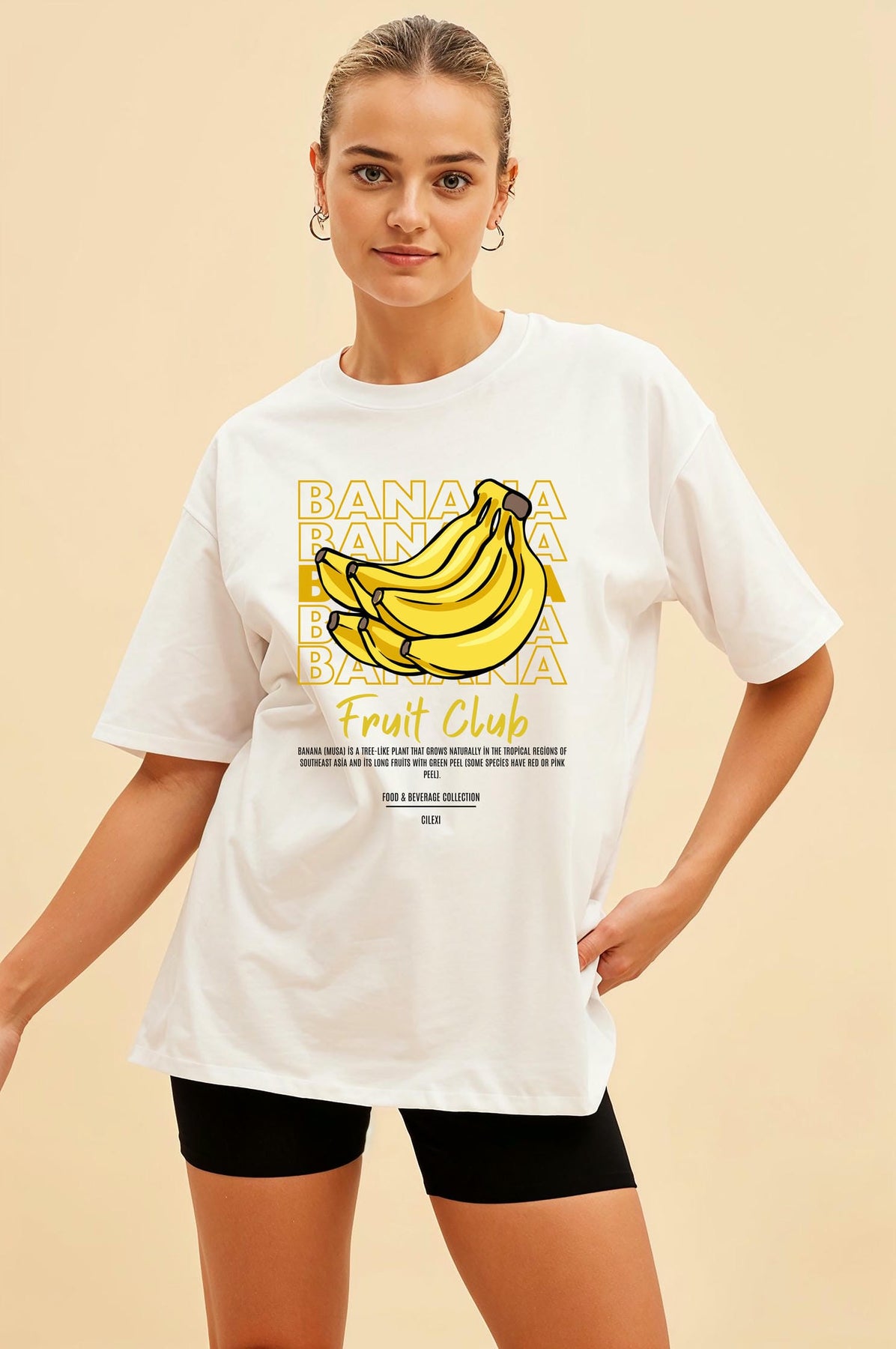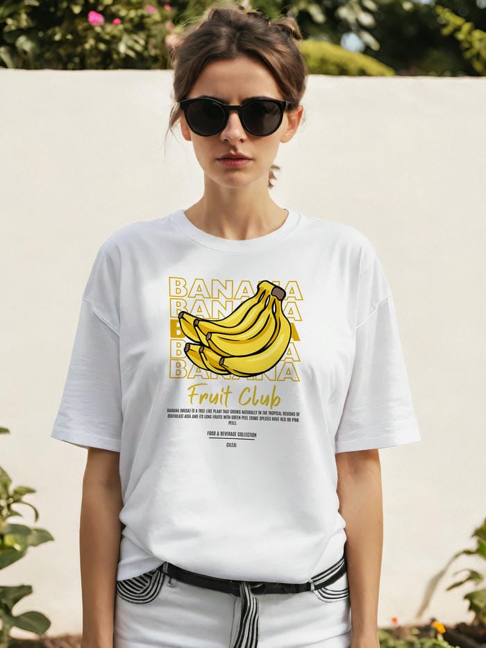 Banana Ön Baskılı Oversize t-shirt Erkek Kadın Pamuk Bisiklet Yaka tişort
