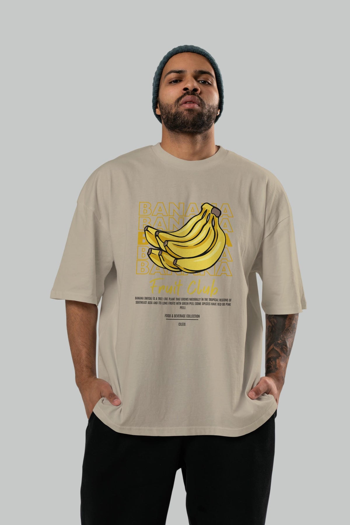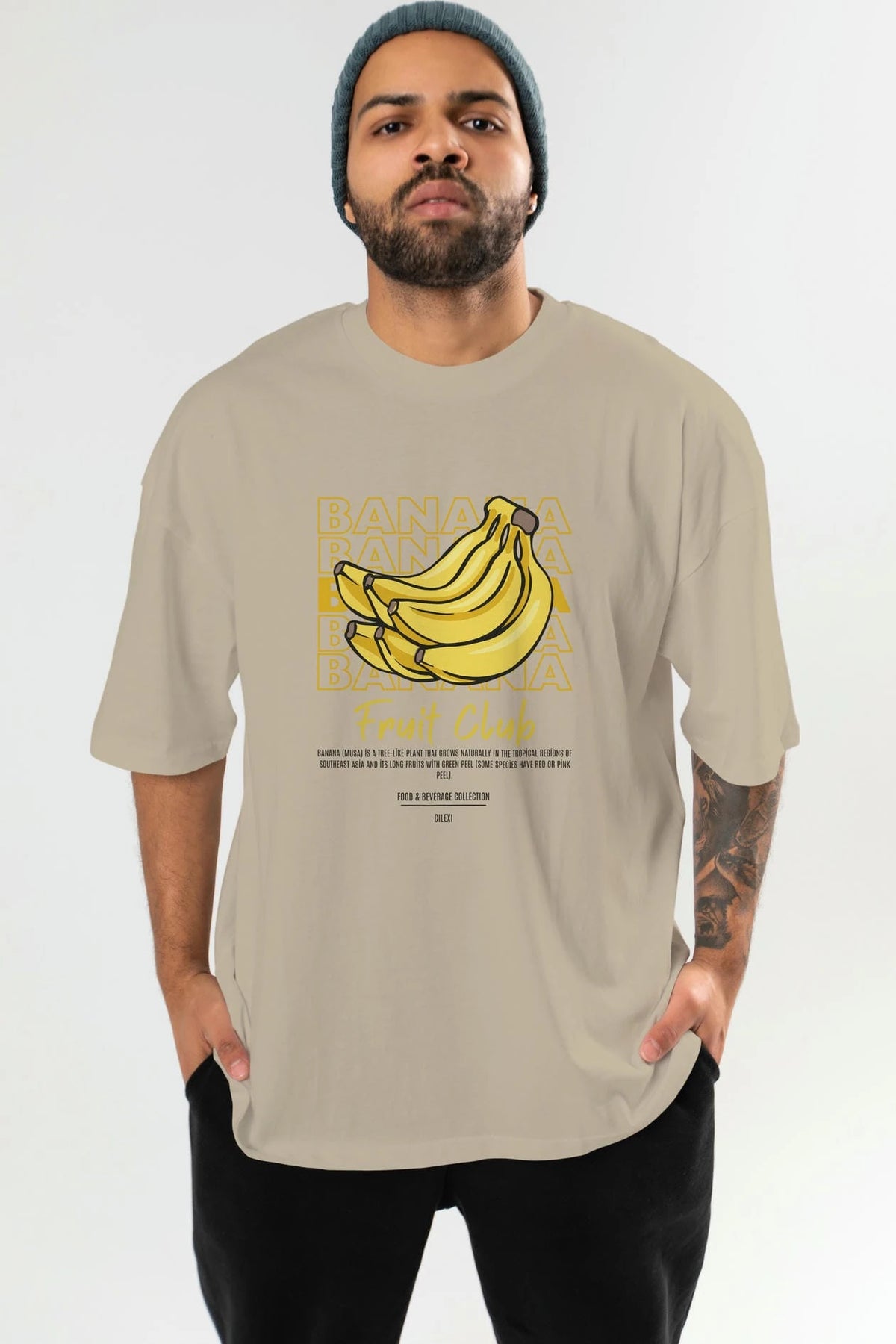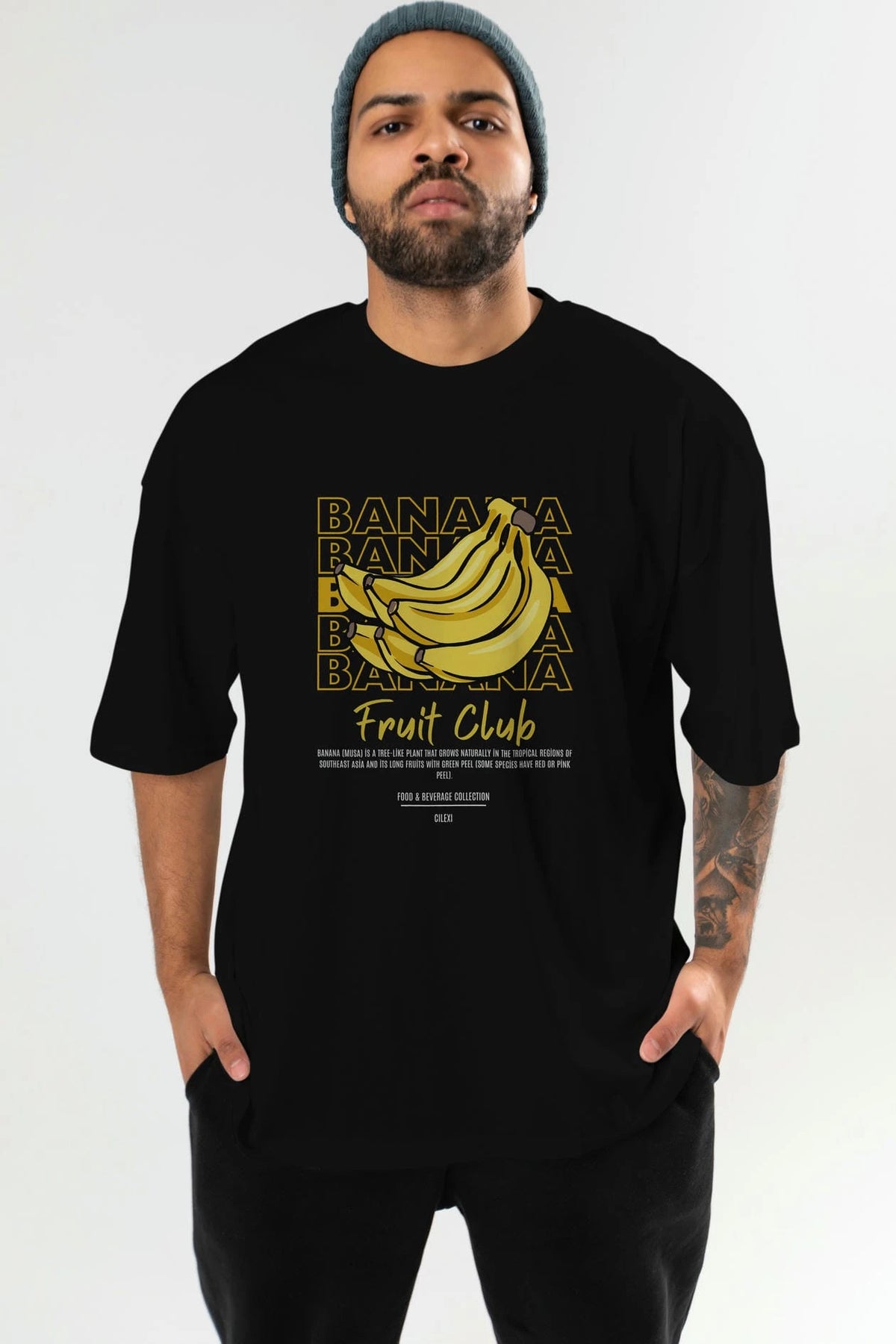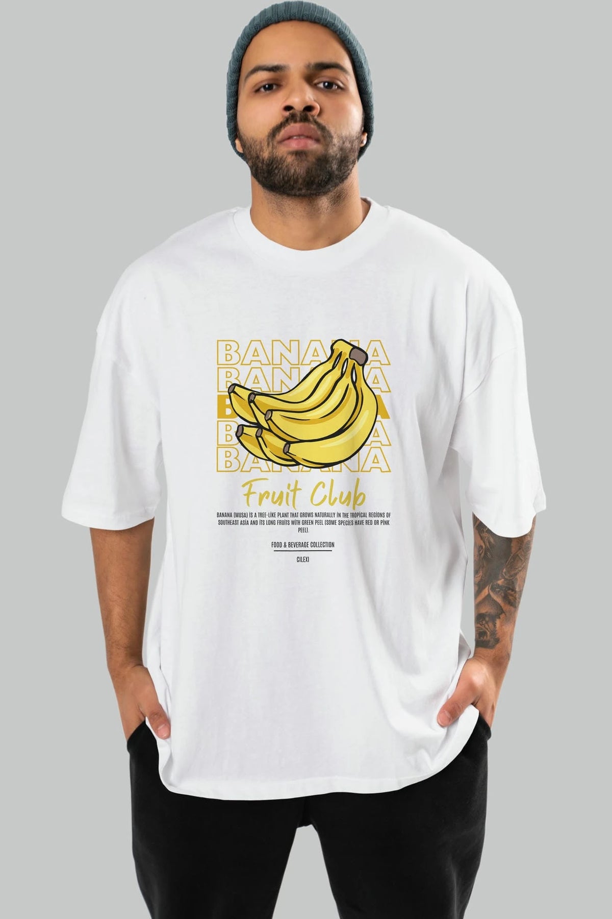 Banana Ön Baskılı Oversize t-shirt Erkek Kadın Pamuk Bisiklet Yaka tişort