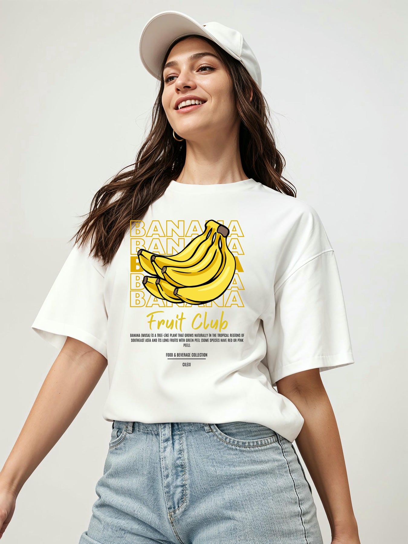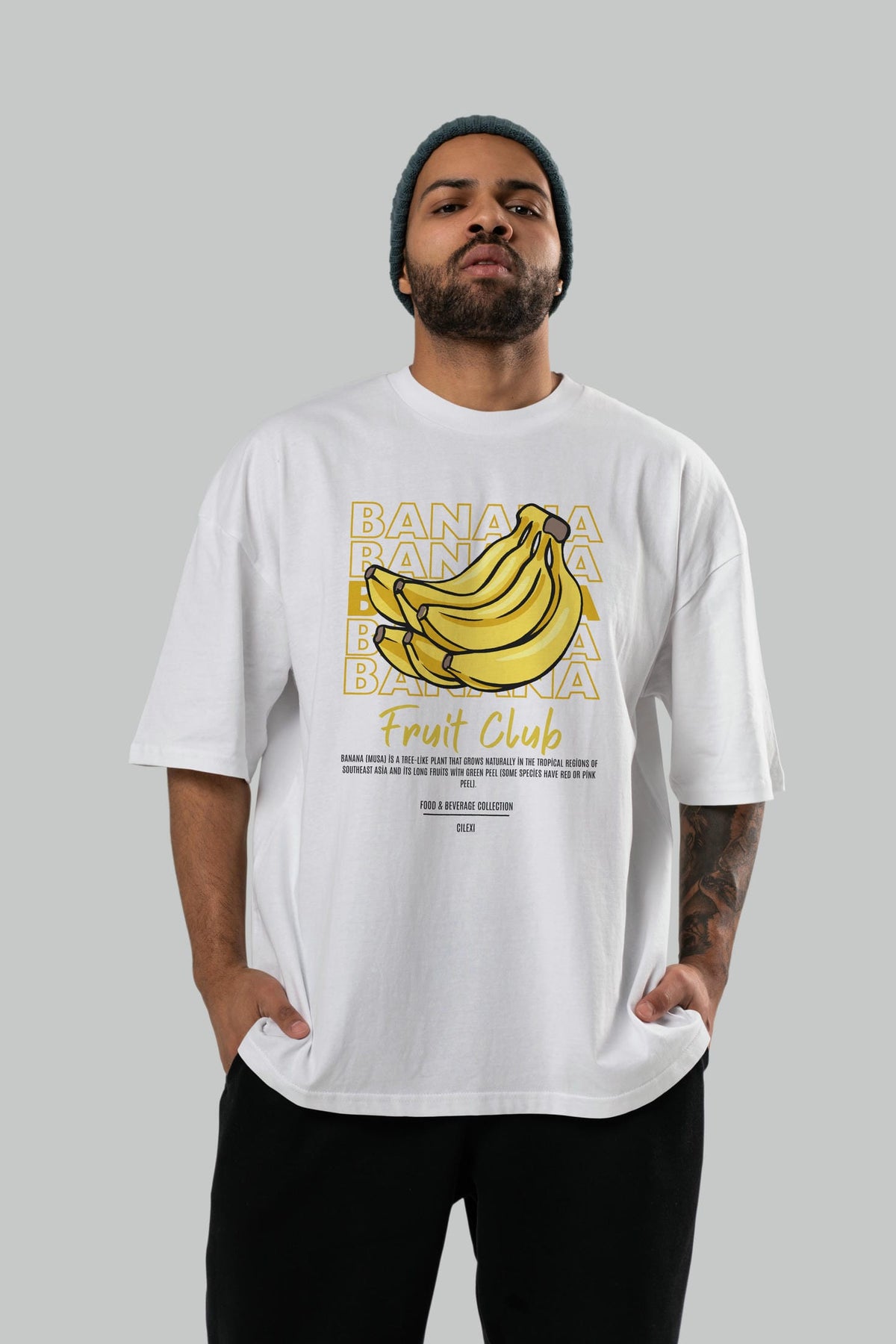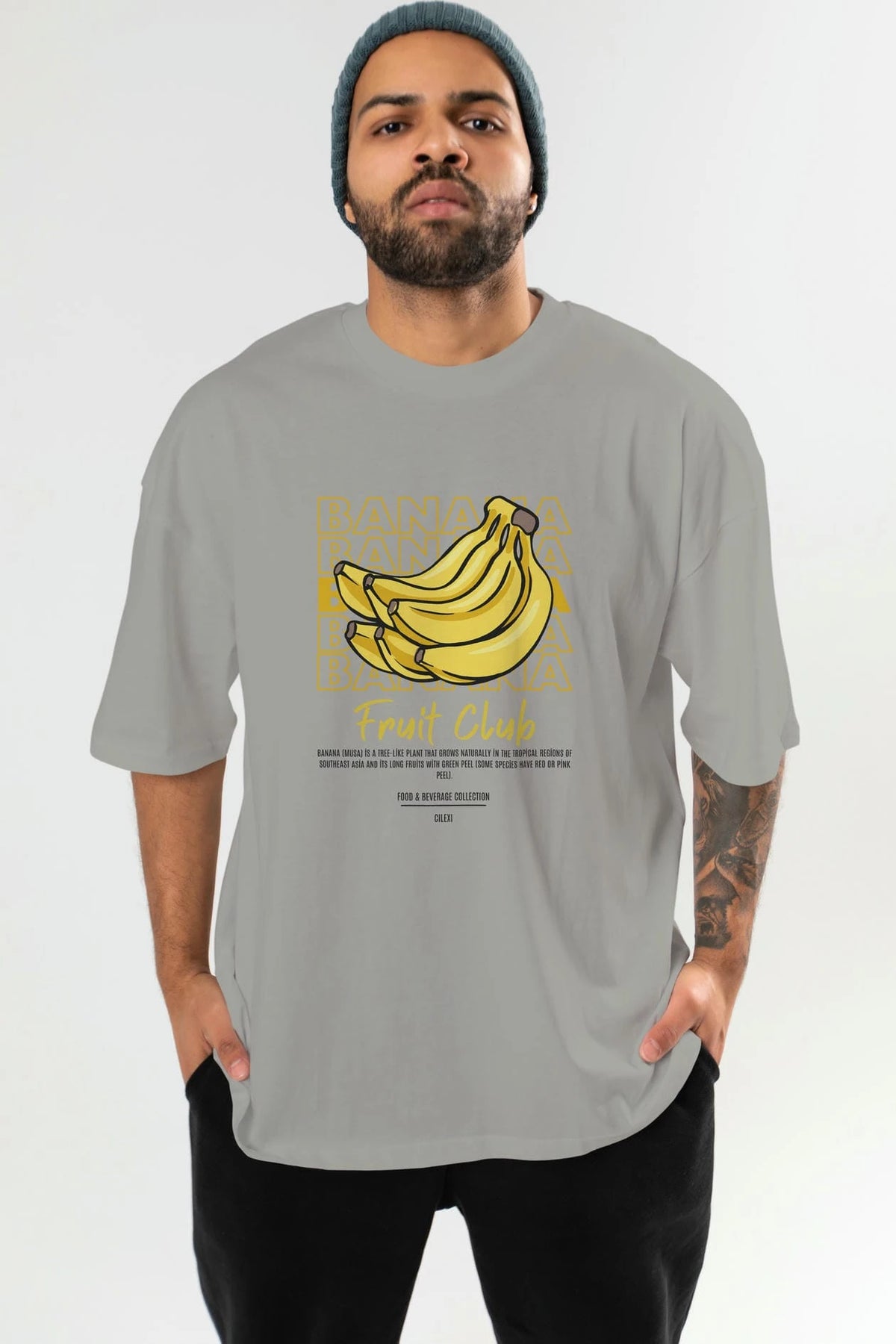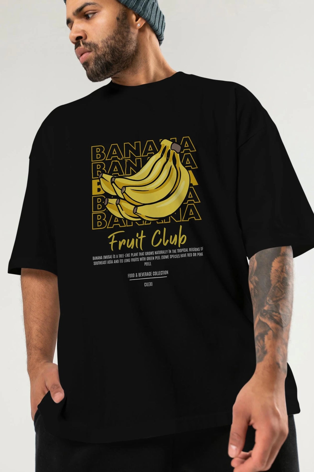 Banana Ön Baskılı Oversize t-shirt Erkek Kadın Pamuk Bisiklet Yaka tişort