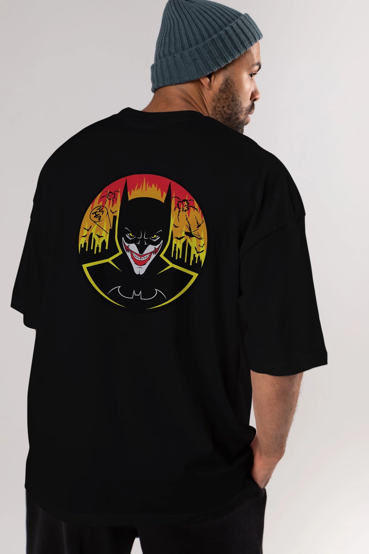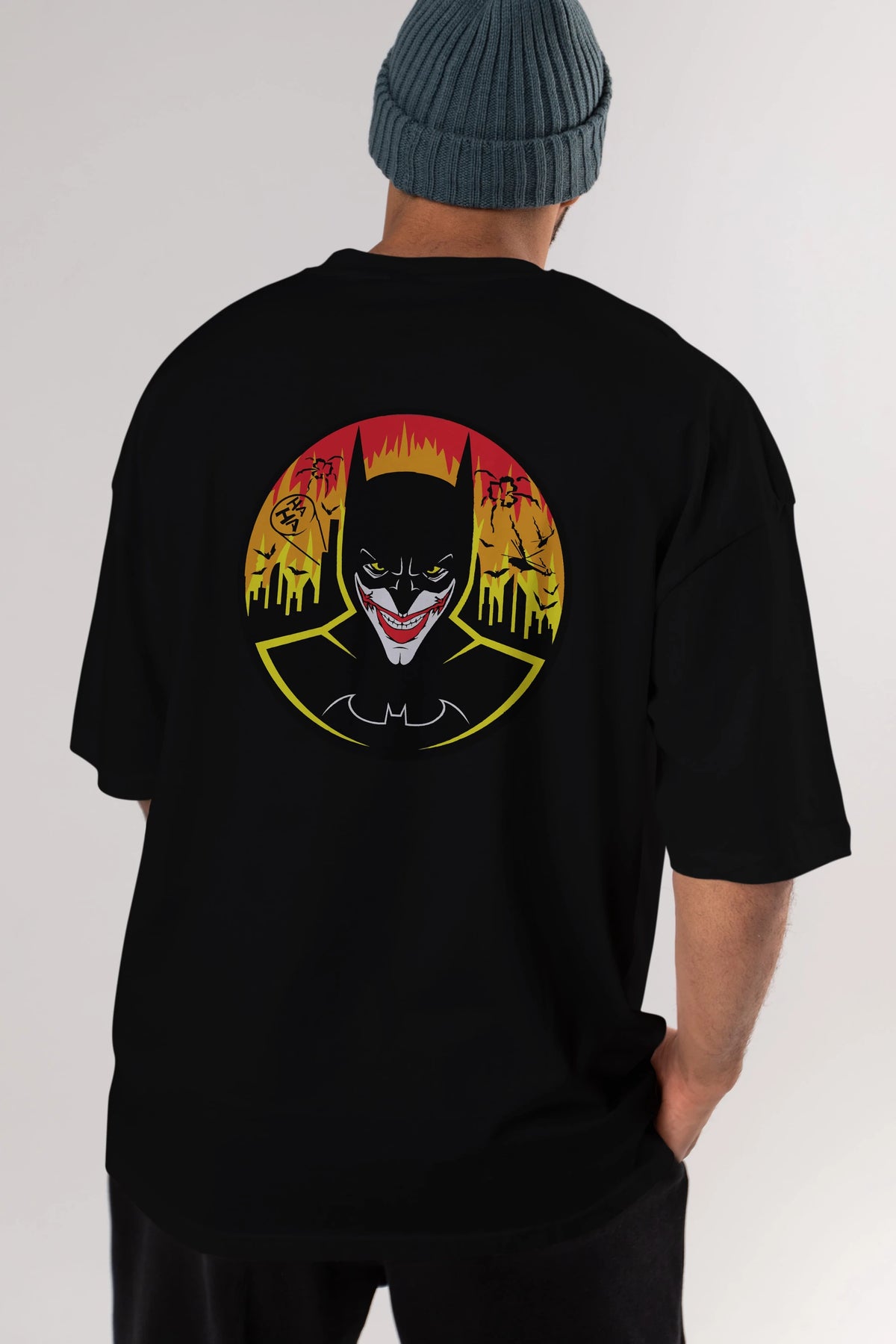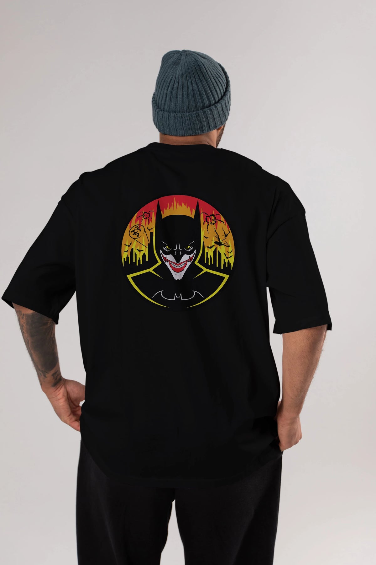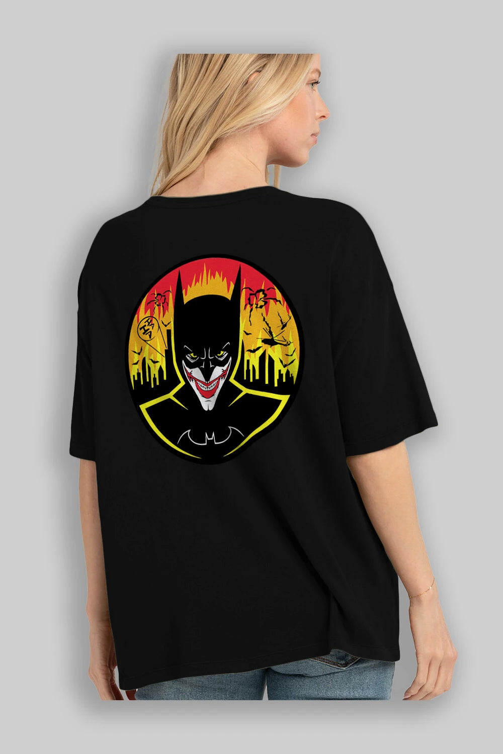Batman (1) Arka Baskılı Oversize t-shirt Erkek Kadın Unisex %100 Pamuk Bisiklet Yaka tişort