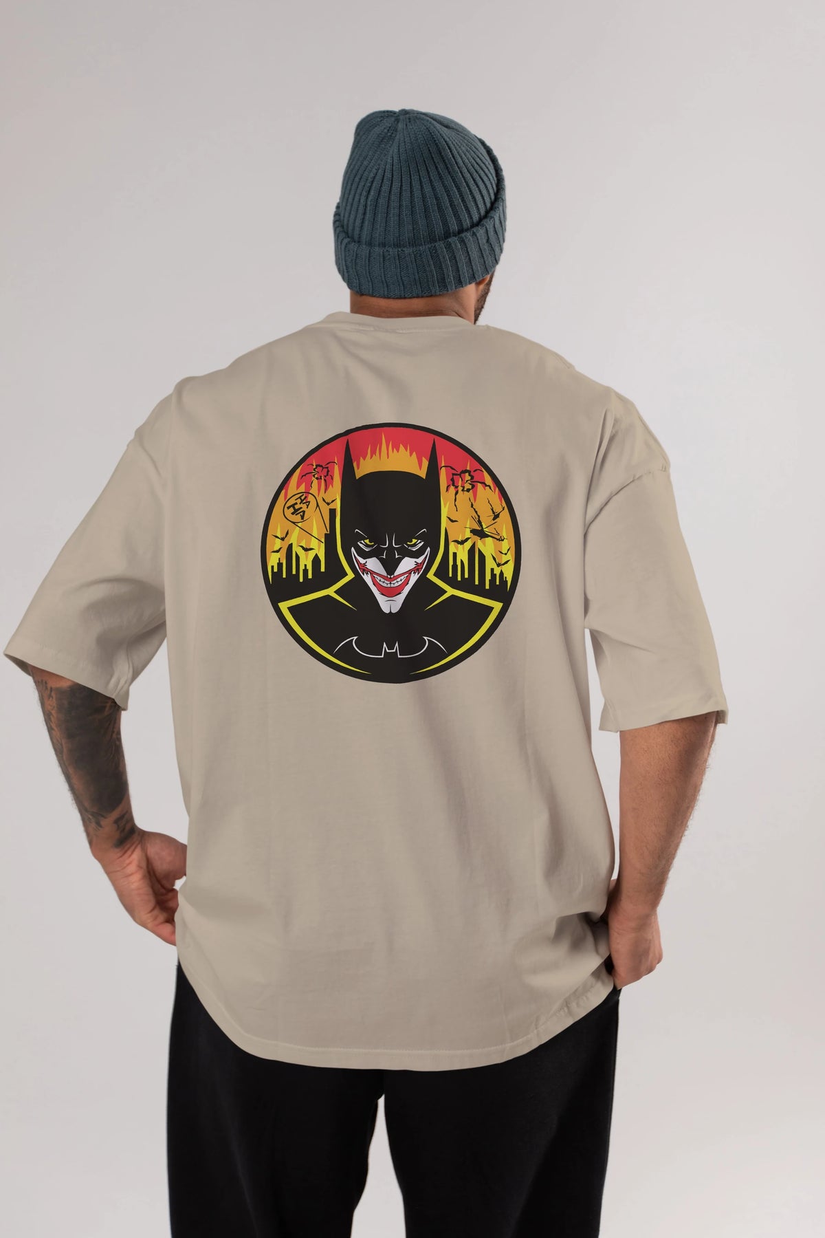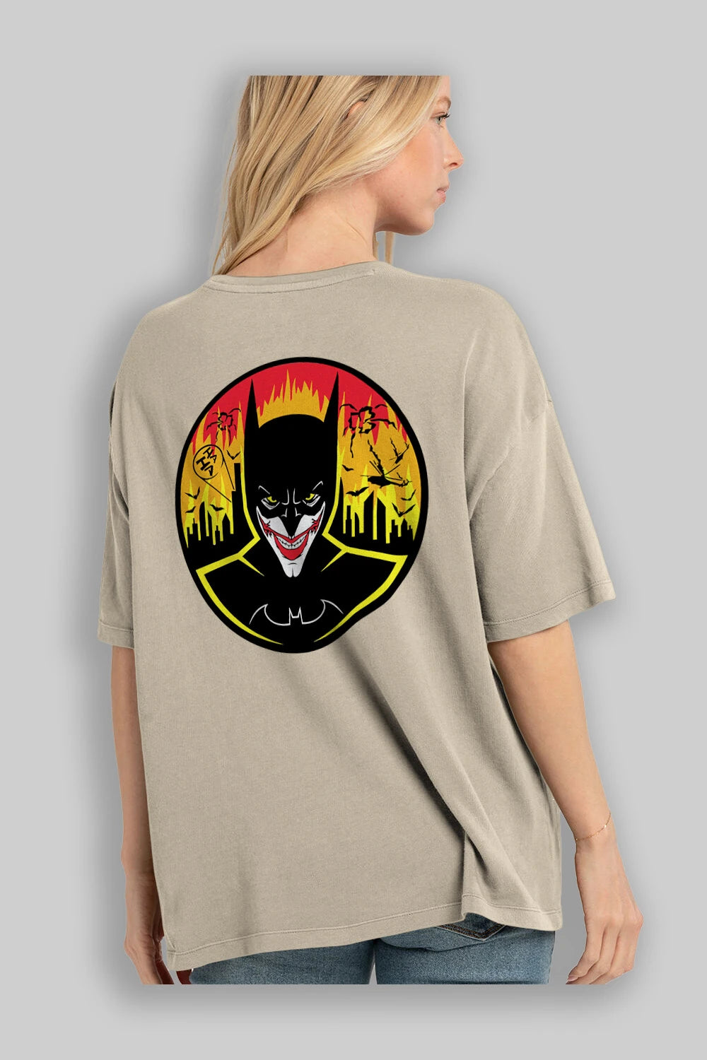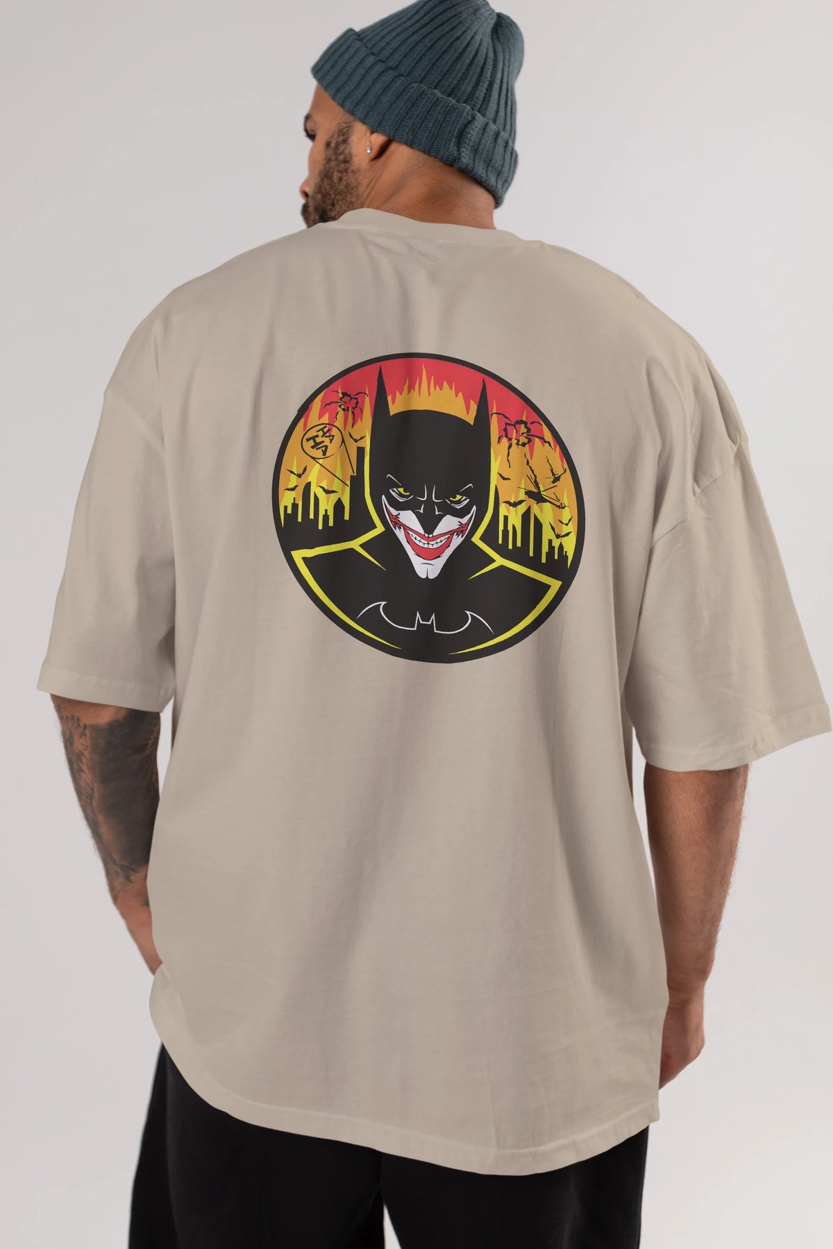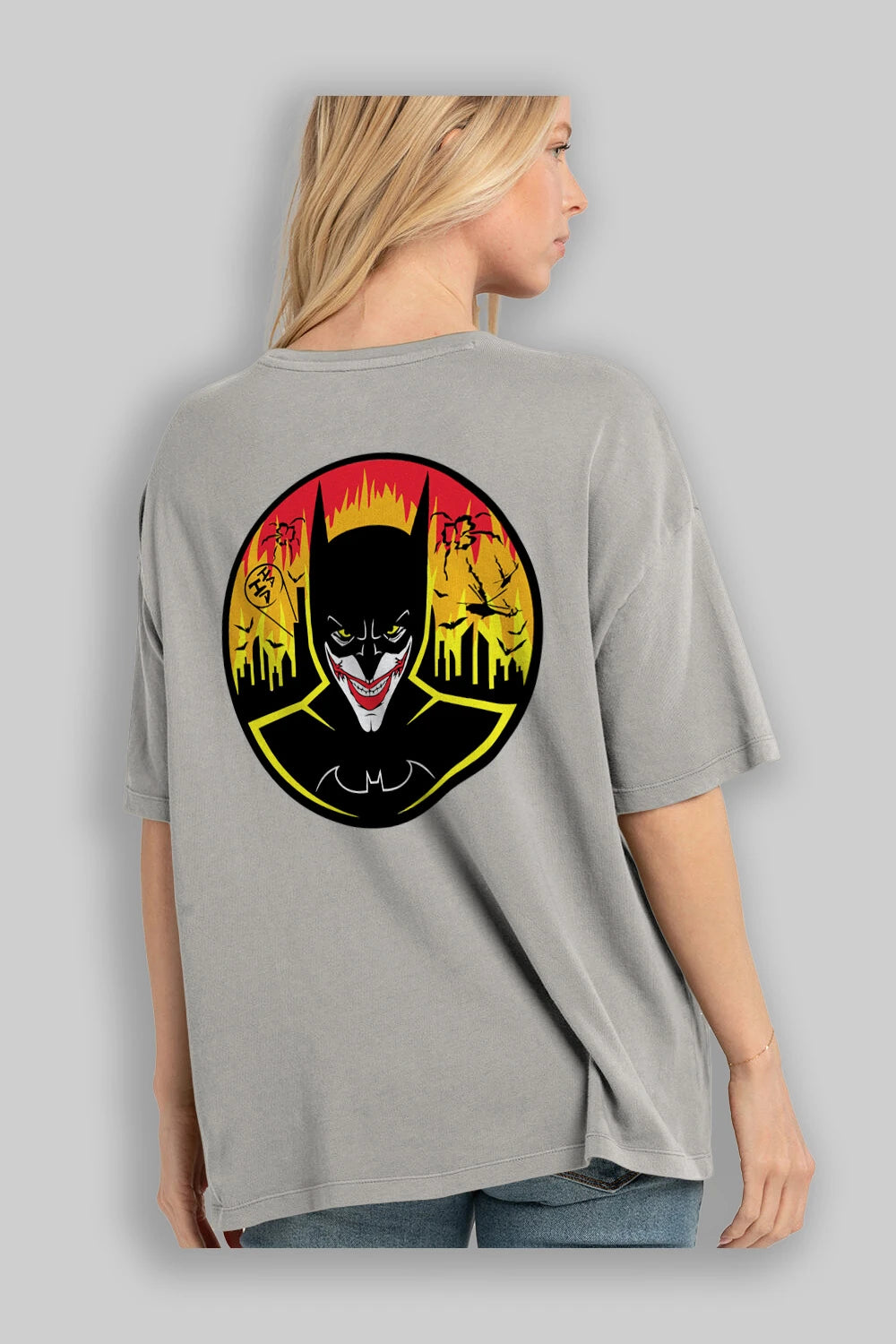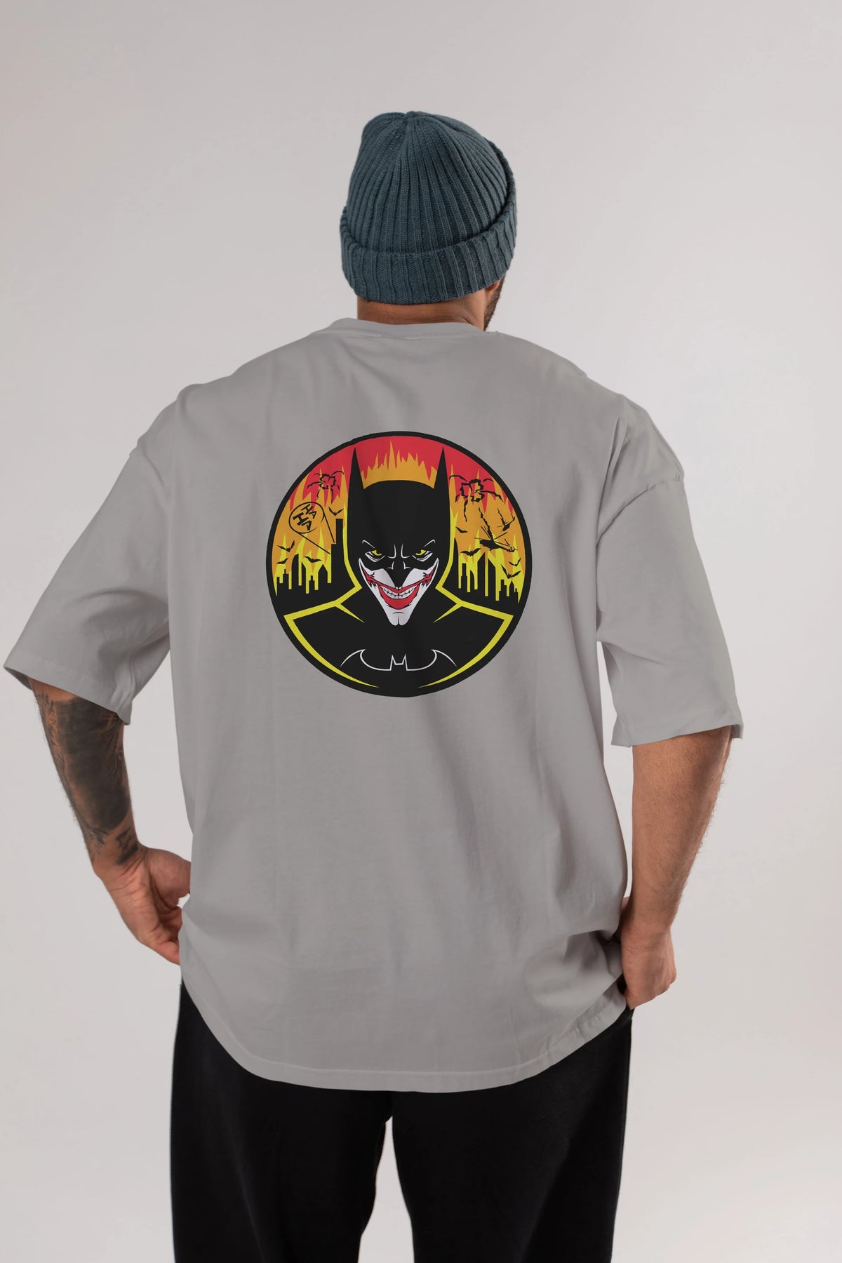 Batman (1) Arka Baskılı Oversize t-shirt Erkek Kadın Unisex %100 Pamuk Bisiklet Yaka tişort