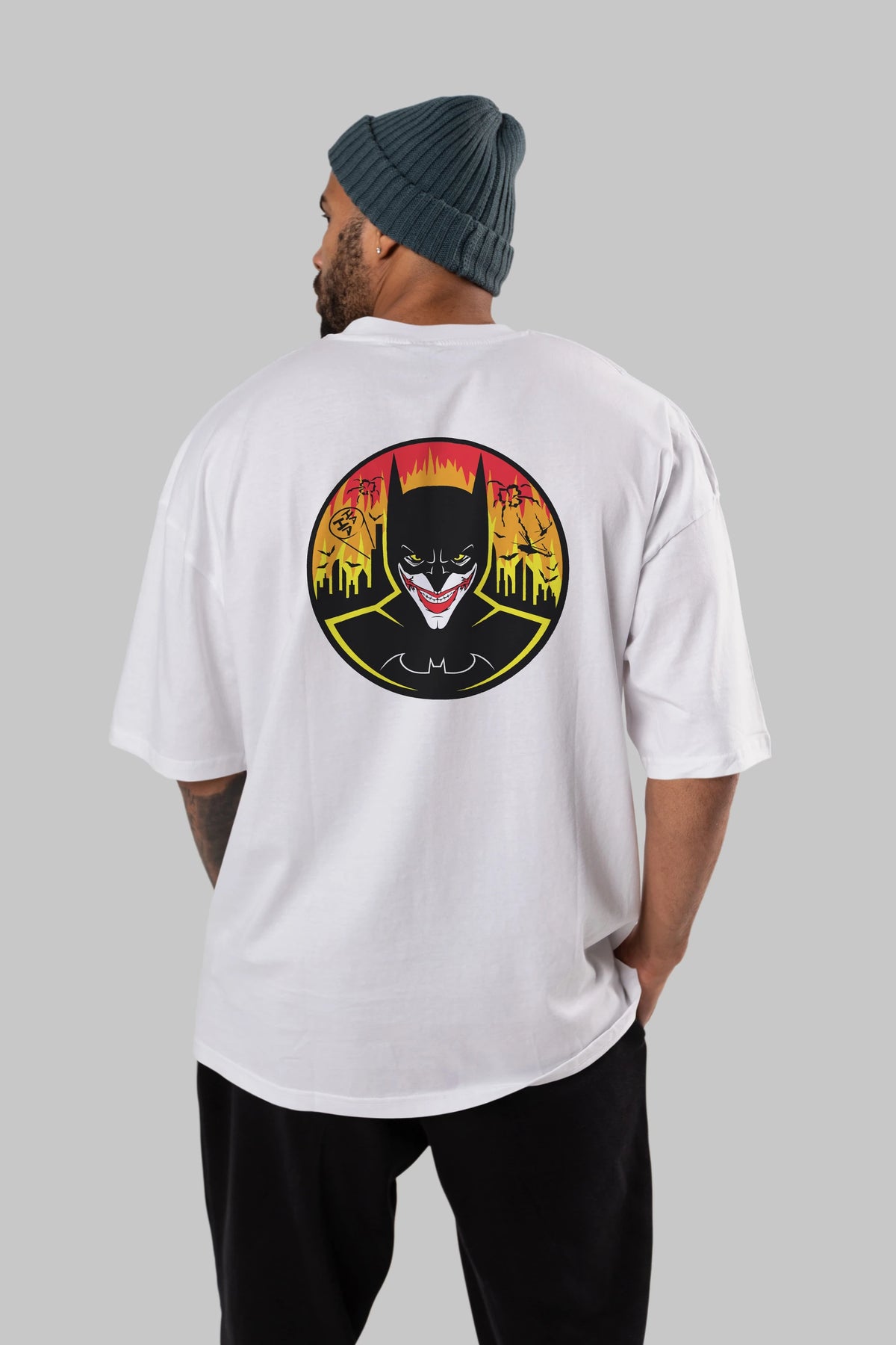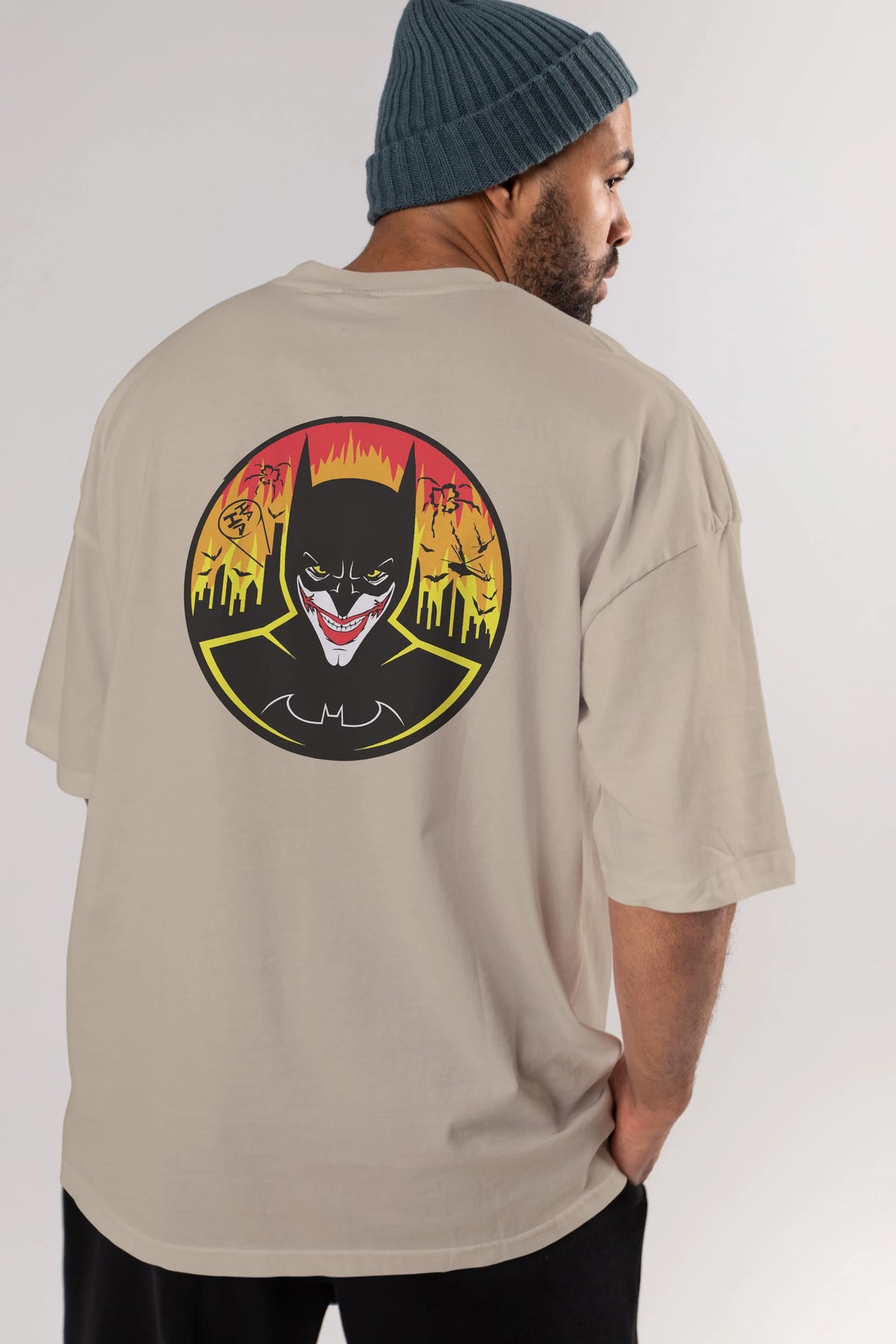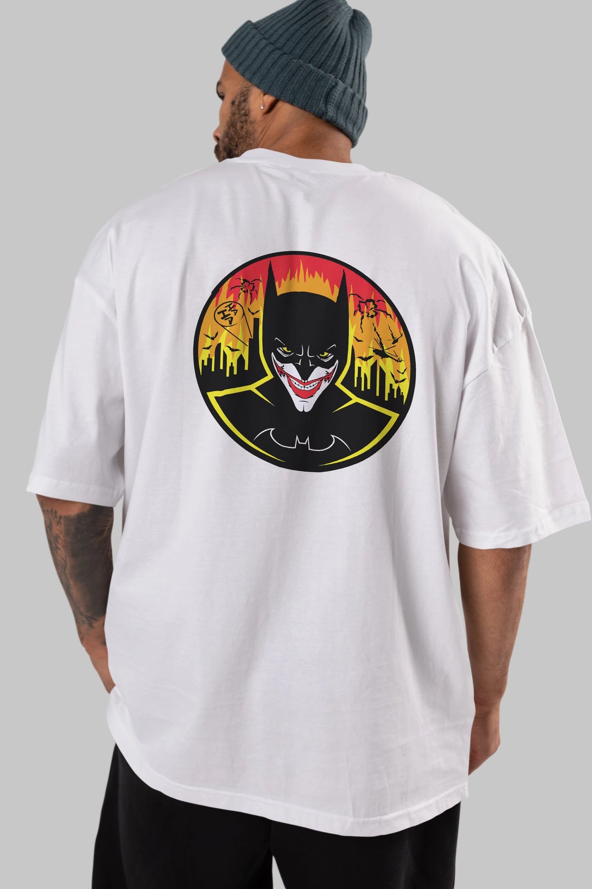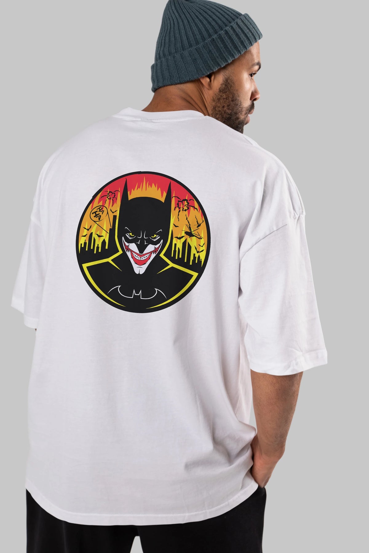 Batman (1) Arka Baskılı Oversize t-shirt Erkek Kadın Unisex %100 Pamuk Bisiklet Yaka tişort