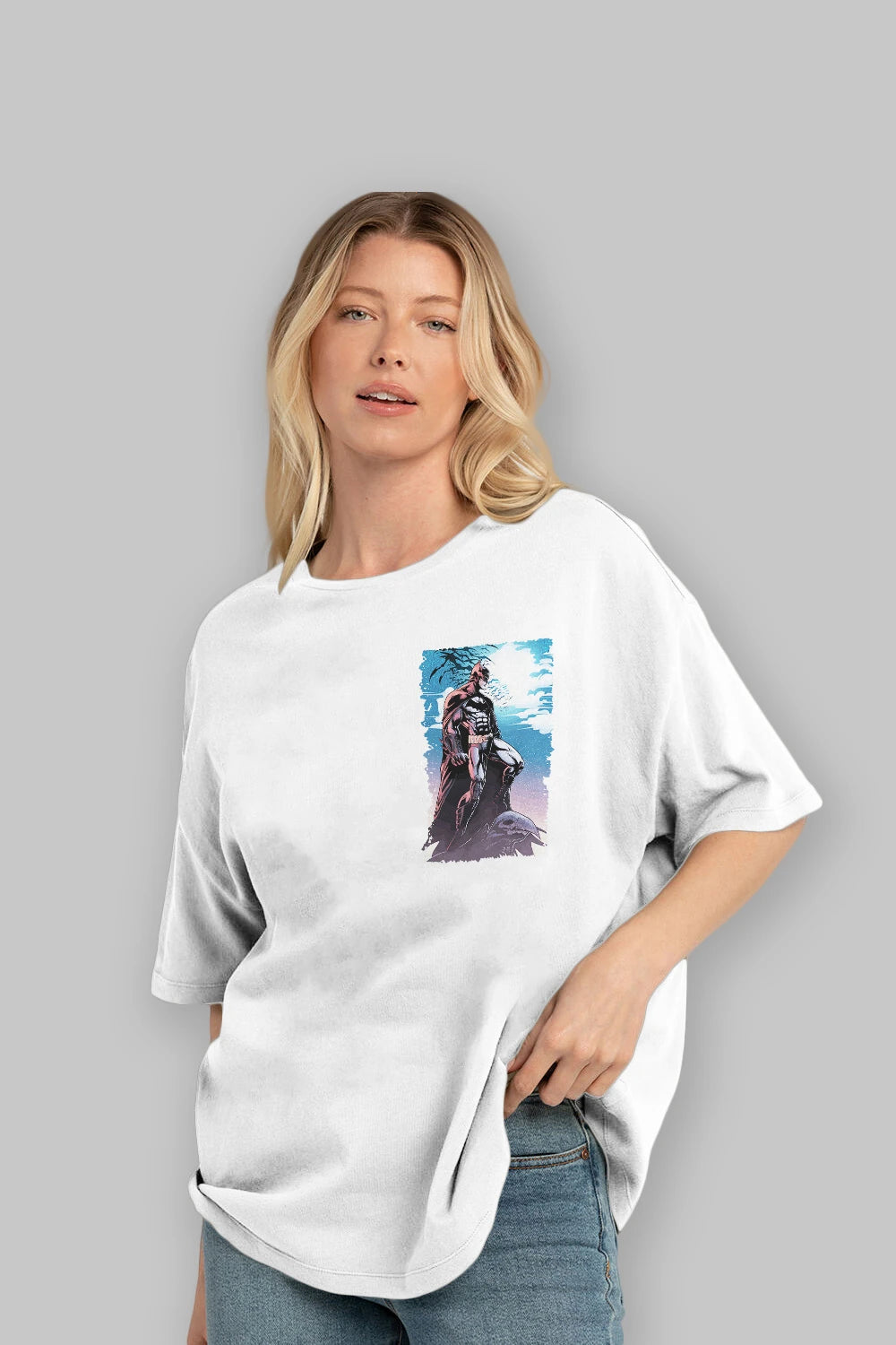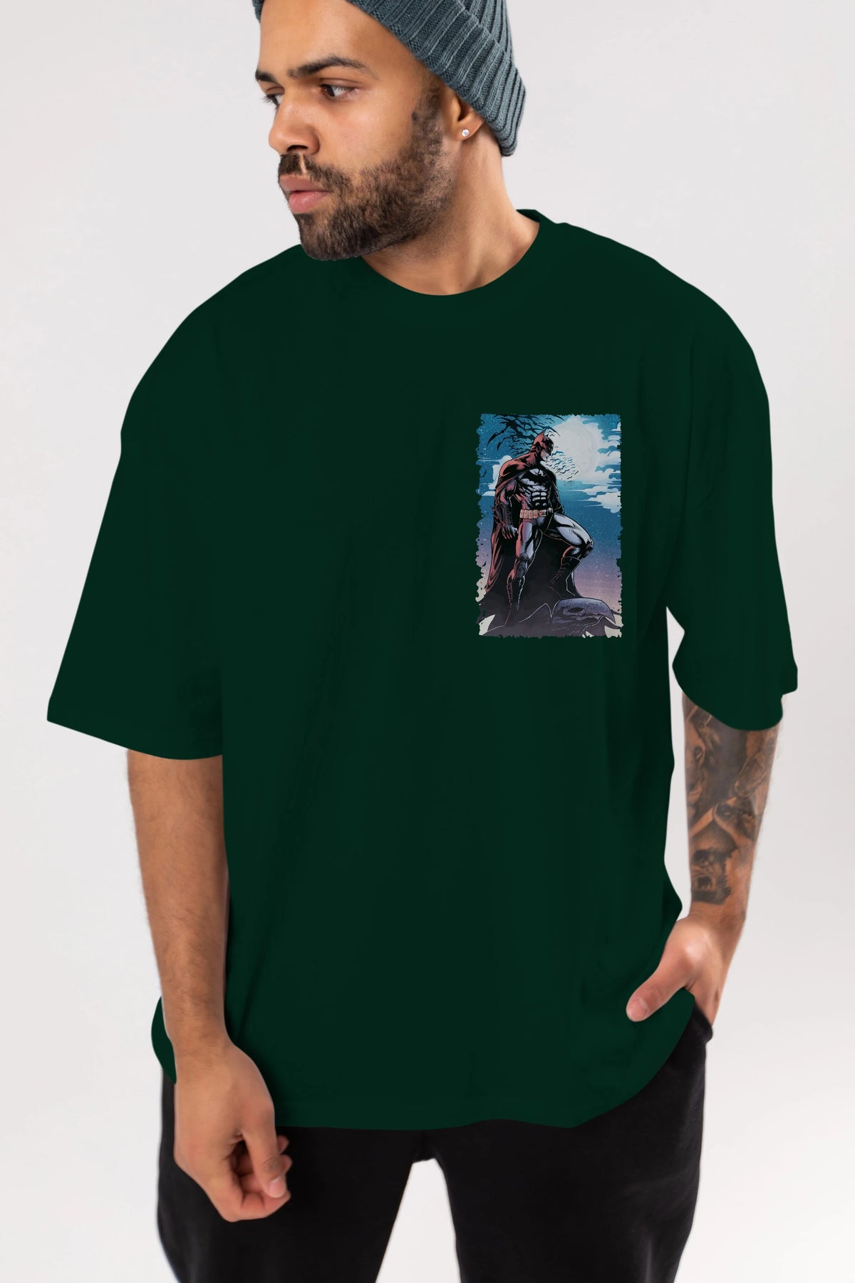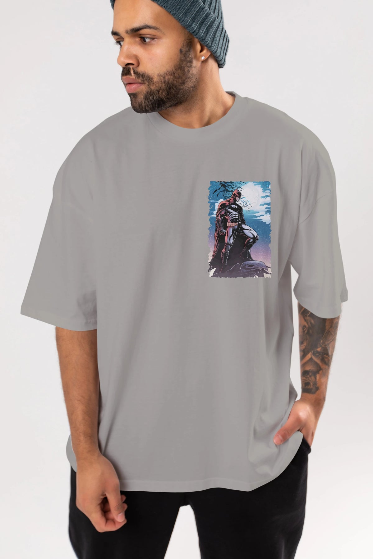 Batman (13) Ön Sol Baskılı Oversize t-shirt Erkek Kadın Unisex %100 Pamuk Bisiklet Yaka tişort