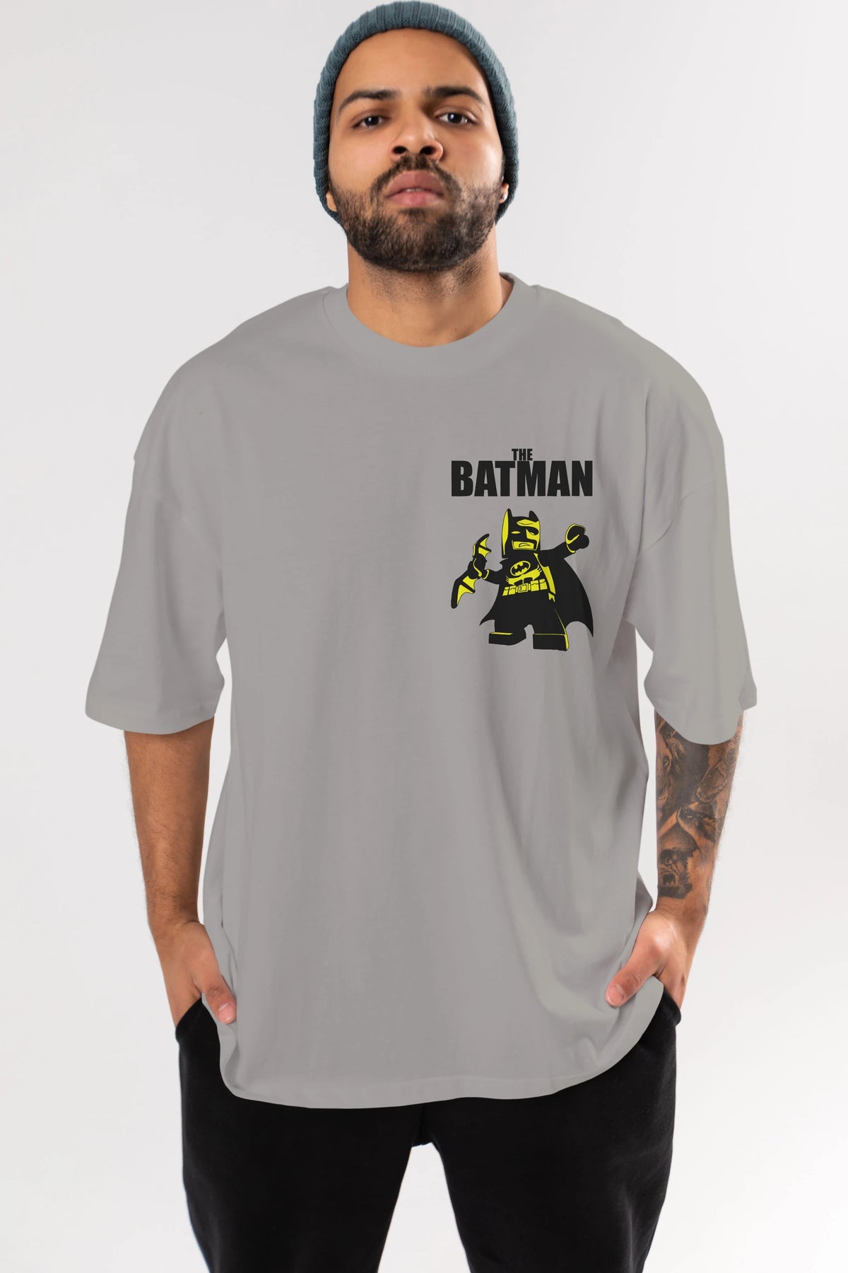 Batman (19) Ön Sol Baskılı Oversize t-shirt Erkek Kadın Unisex %100 Pamuk Bisiklet Yaka tişort