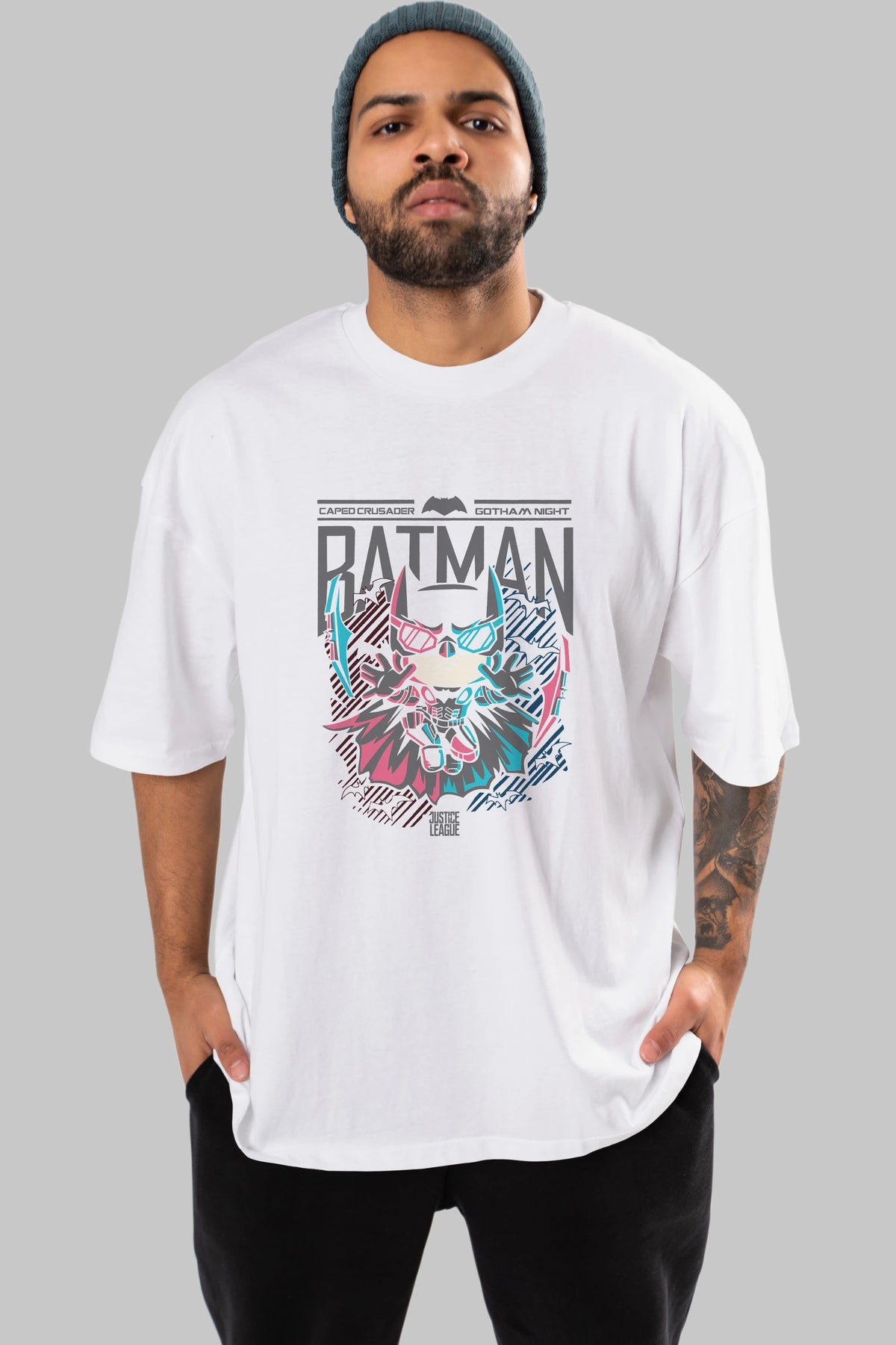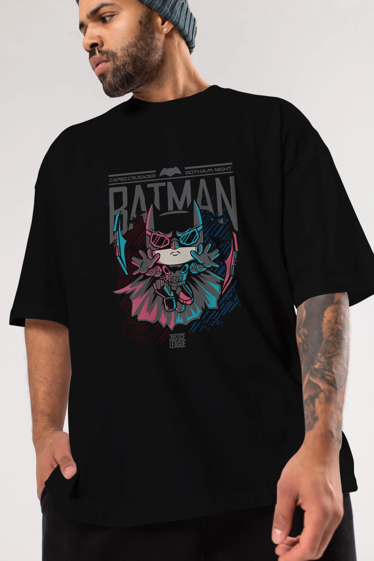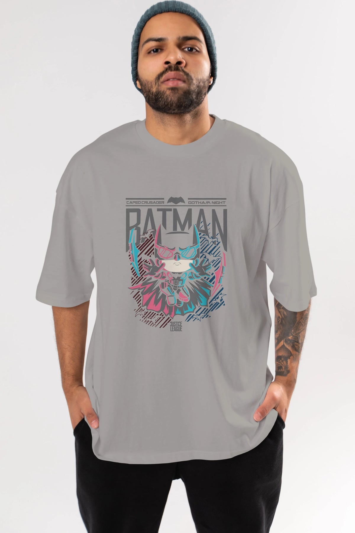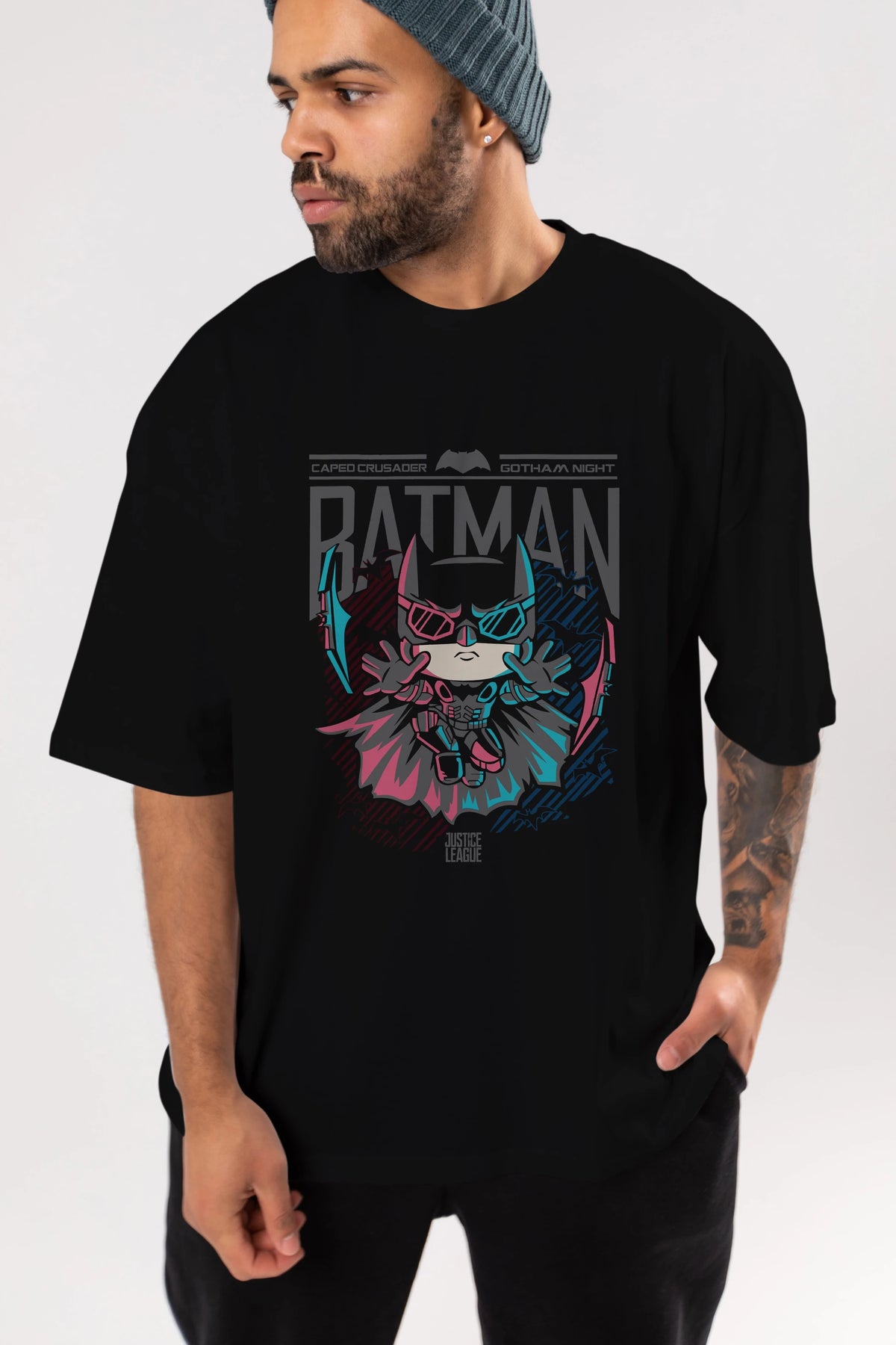 Batman Ön Baskılı Oversize t-shirt Erkek Kadın Unisex %100 Pamuk Bisiklet Yaka tişort