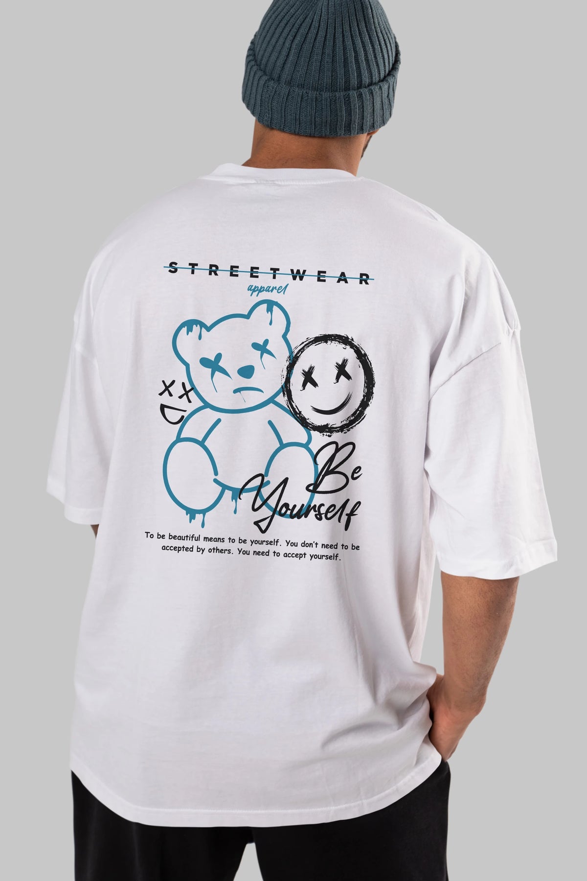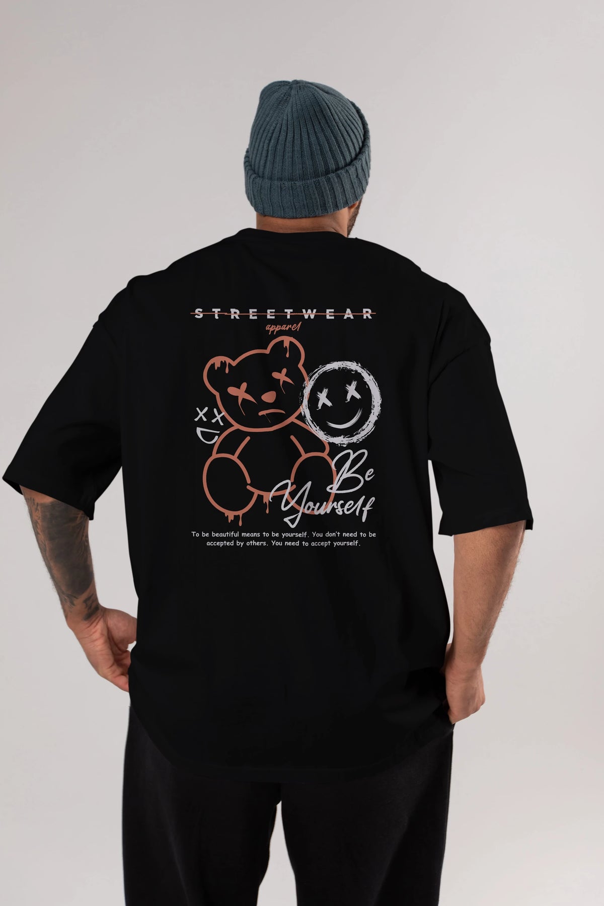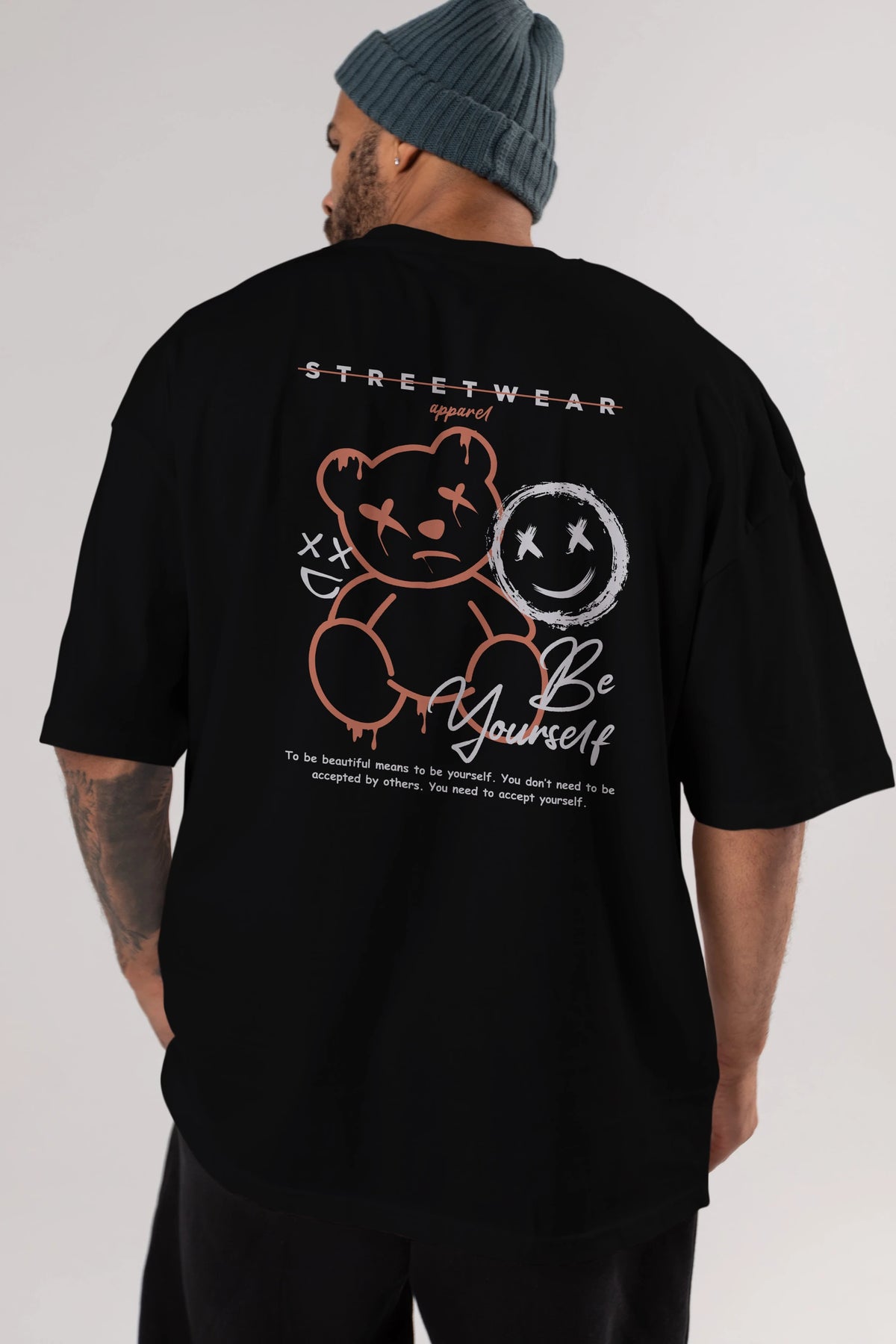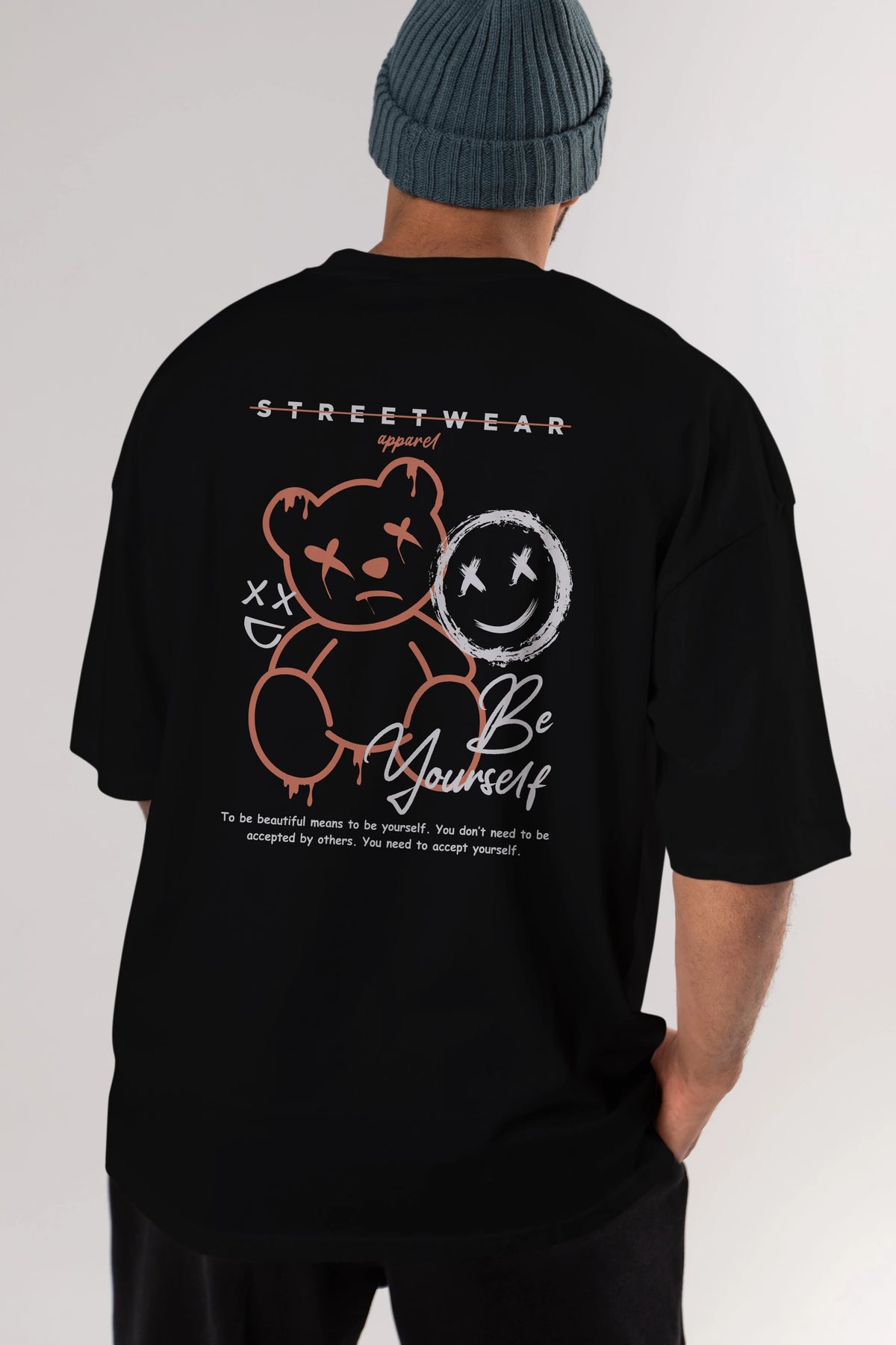 Be Yourself Bear Arka Baskılı Oversize t-shirt Erkek Kadın Unisex