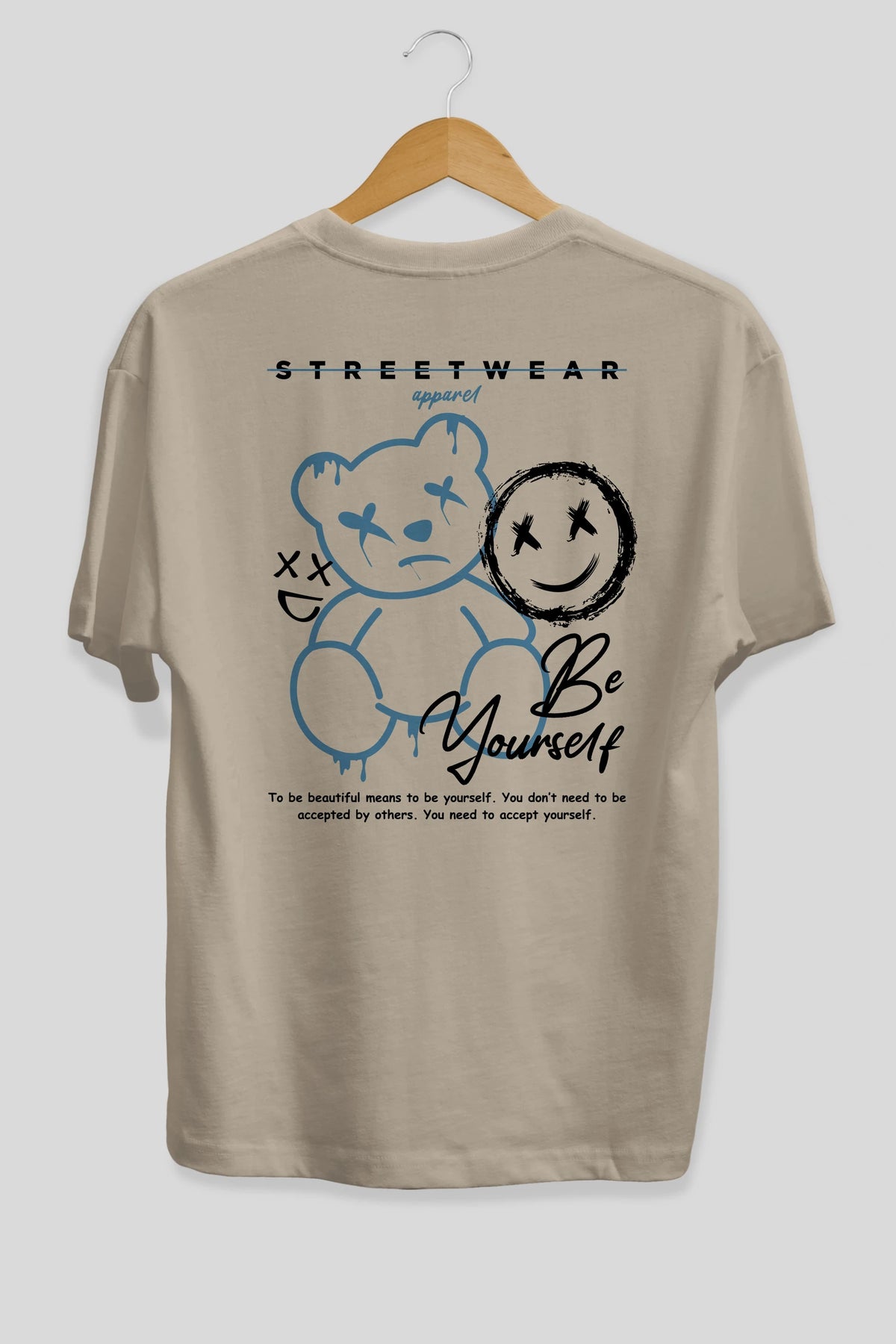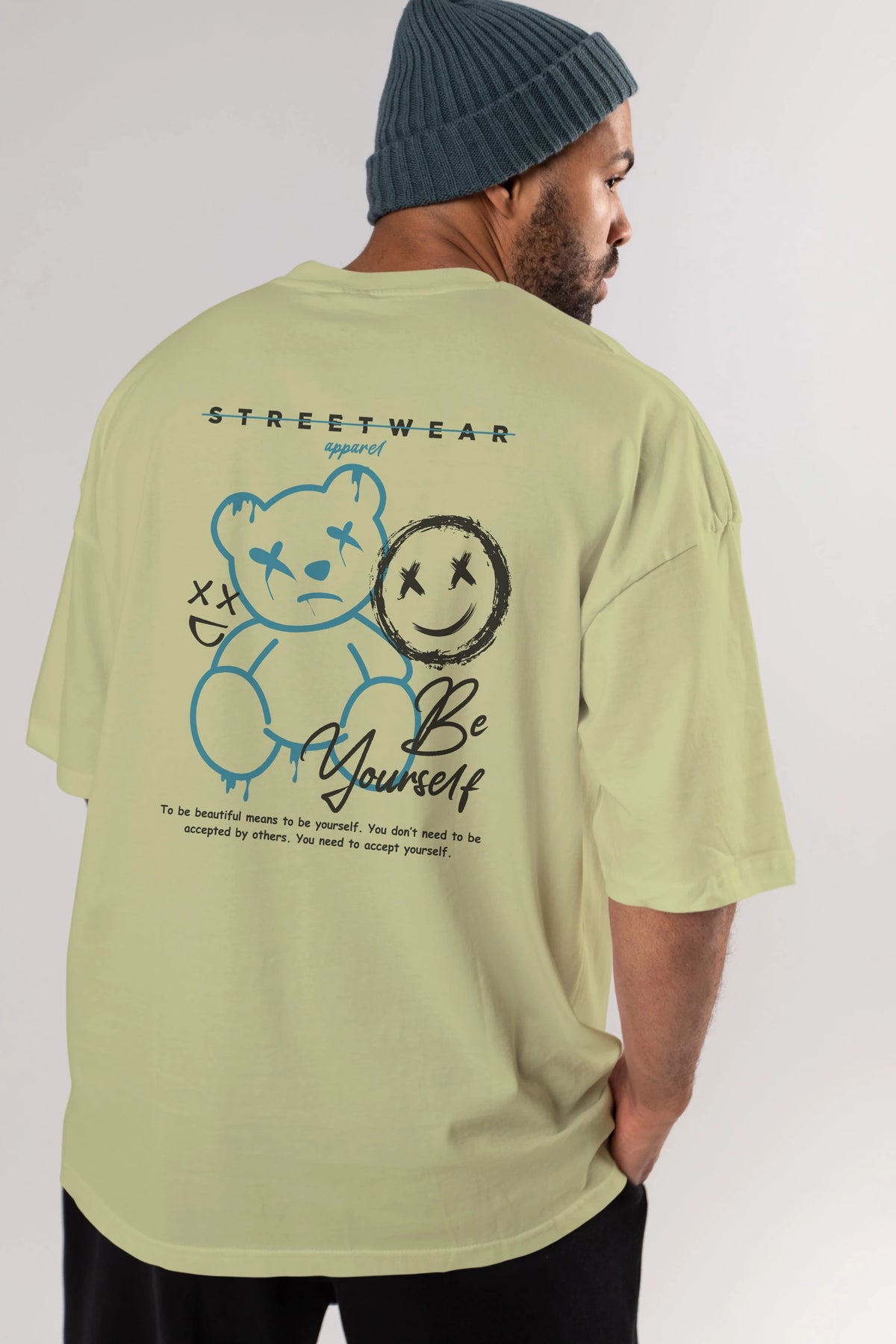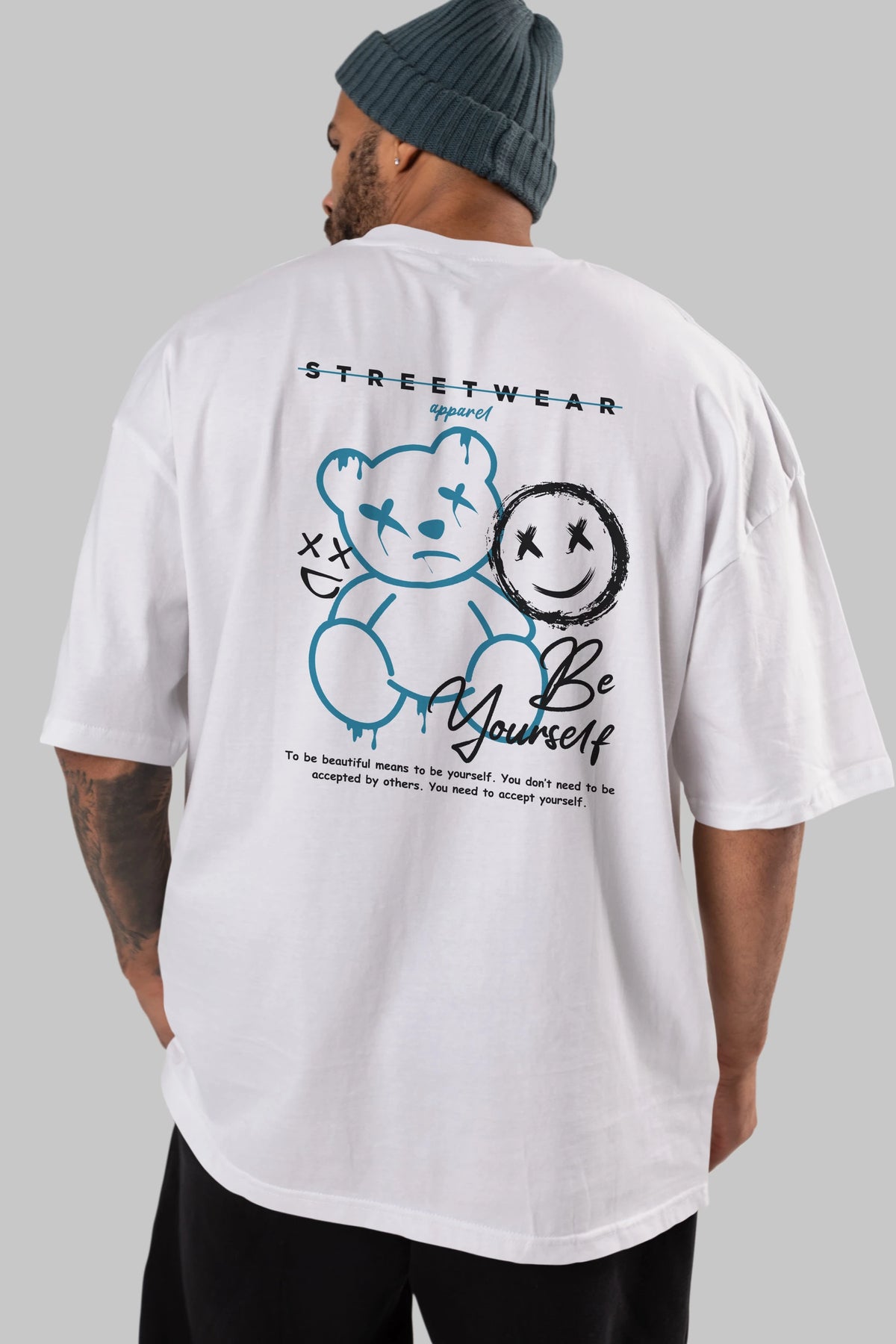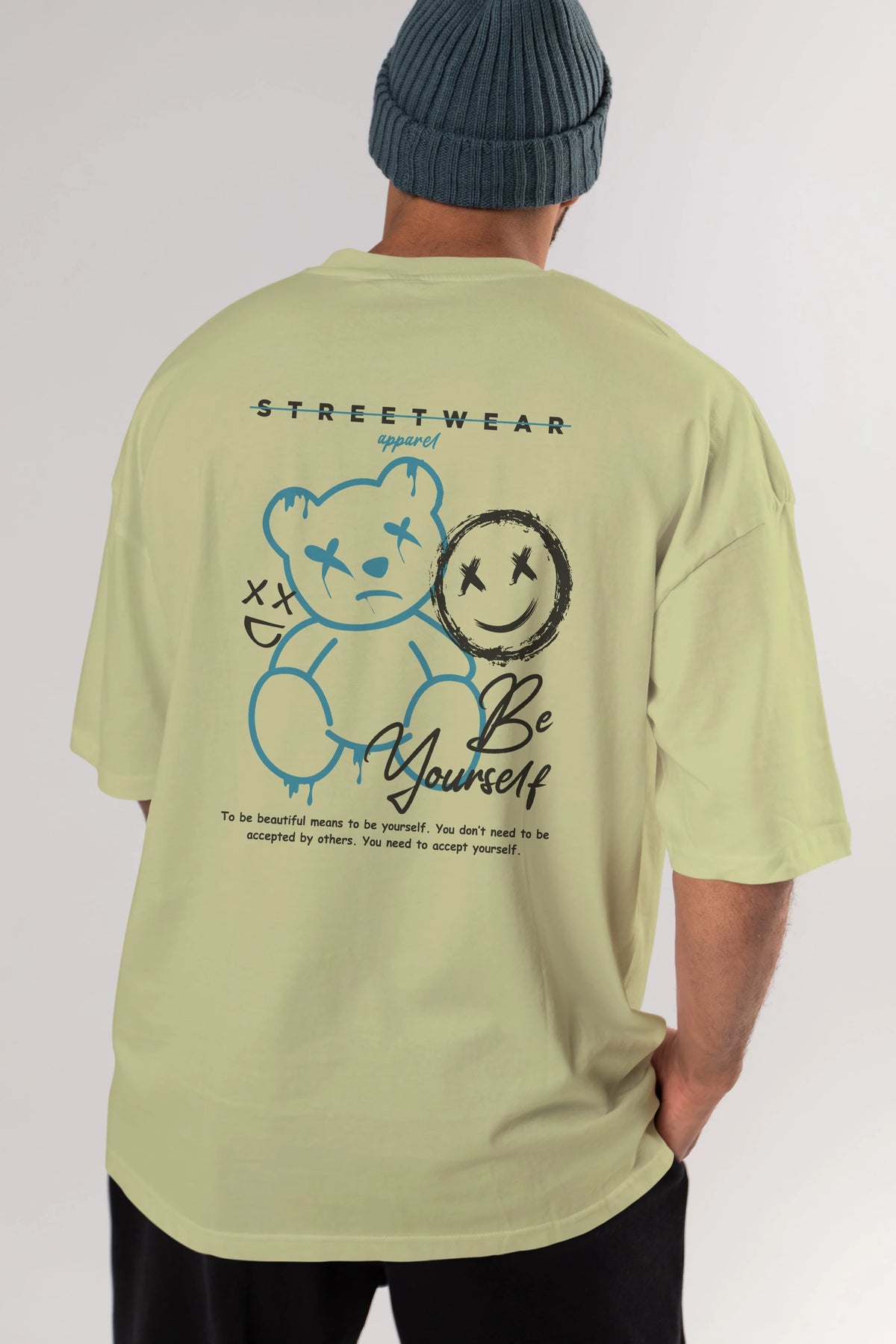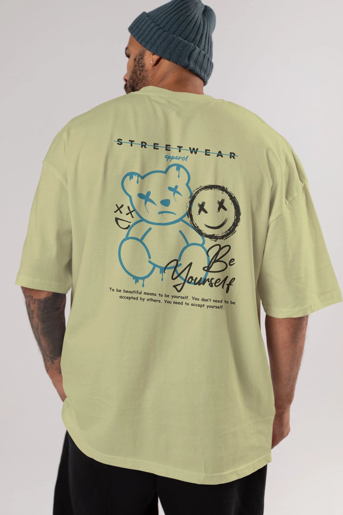 Be Yourself Bear Arka Baskılı Oversize t-shirt Erkek Kadın Unisex