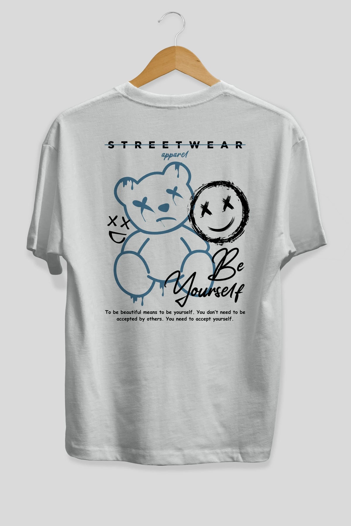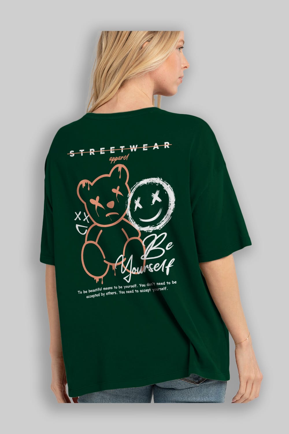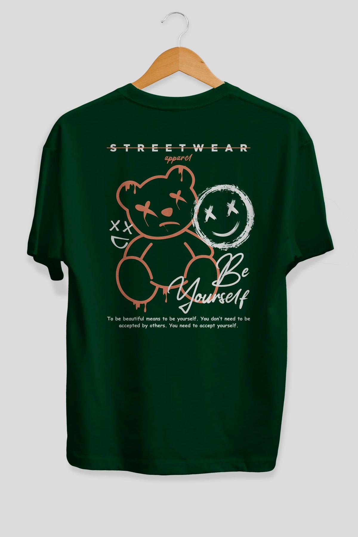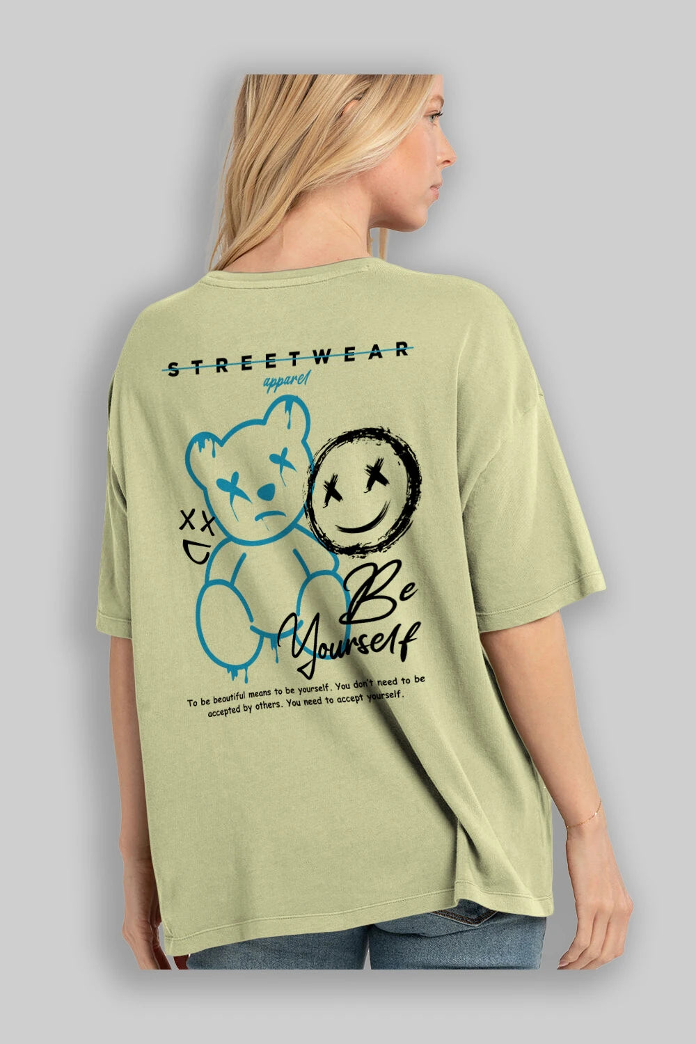 Be Yourself Bear Arka Baskılı Oversize t-shirt Erkek Kadın Unisex