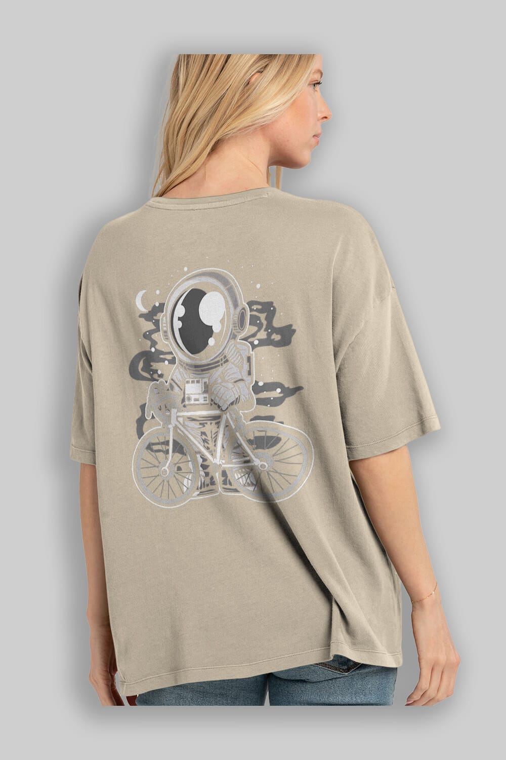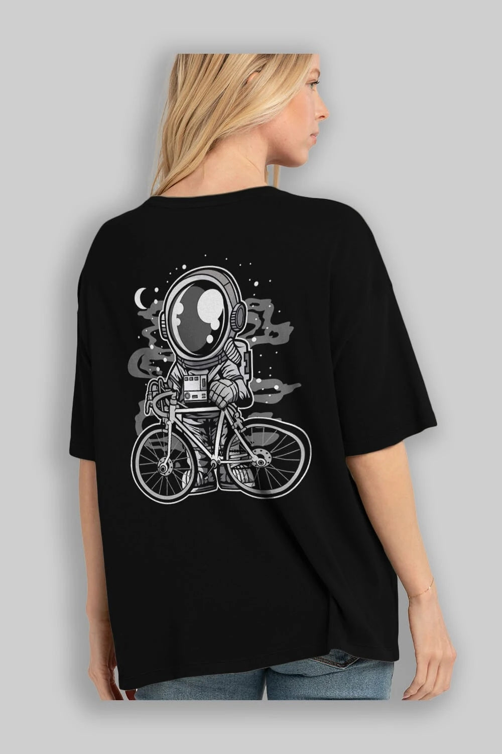 Bicycle Astronaut Arka Baskılı Oversize t-shirt Erkek Kadın Unisex